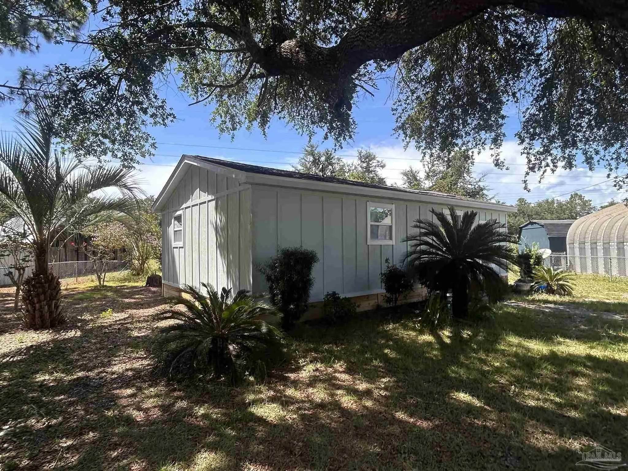 Newly renovated MF home Gulf Breeze property on nearly 1/3 acre of land. The growing midway East Bay Heights community has numerous newer homes and is adjacent to the new Soundside High School, which is currently under construction. The home has an open floor plan and has had a complete renovation ; new roof , new mini split system, new luxury vinyl flooring throughout, new Sheetrock, new tiled shower , new skylights, freshly painted interior, new board and batten exterior ,new front door, cabinets repainted, and a large new covered deck that is tied into the roof. The yard building has plumbing and electricity . No HOA and plenty of room to park a boat or RV. Conveniently located to Pensacola Beach , Navarre Beach, military bases , shopping and dining. Schedule a showing today!
