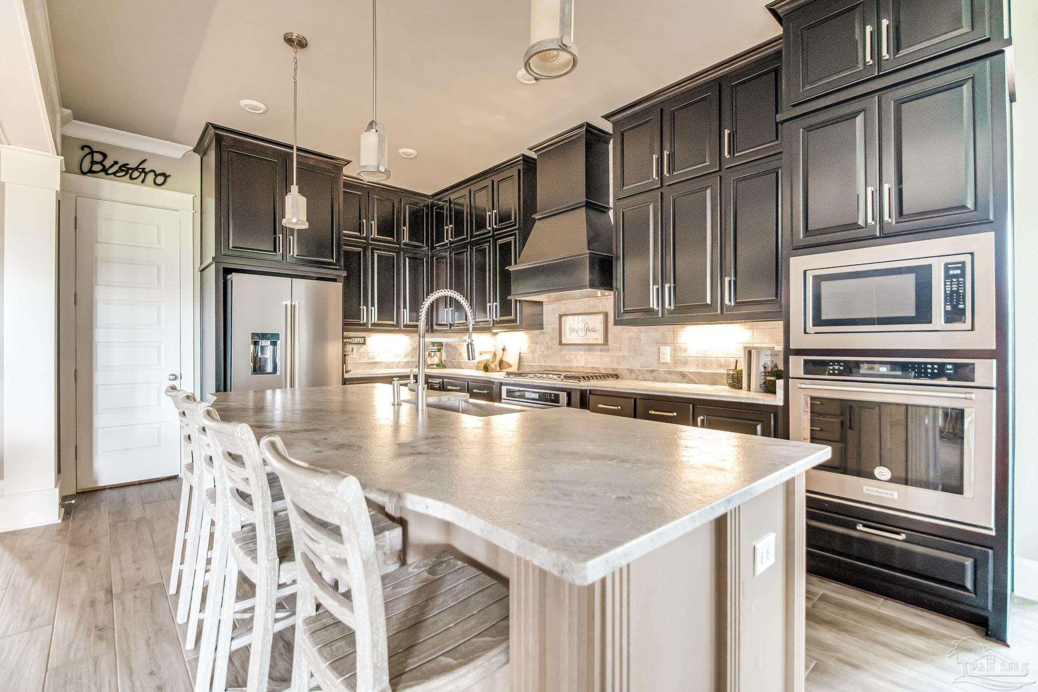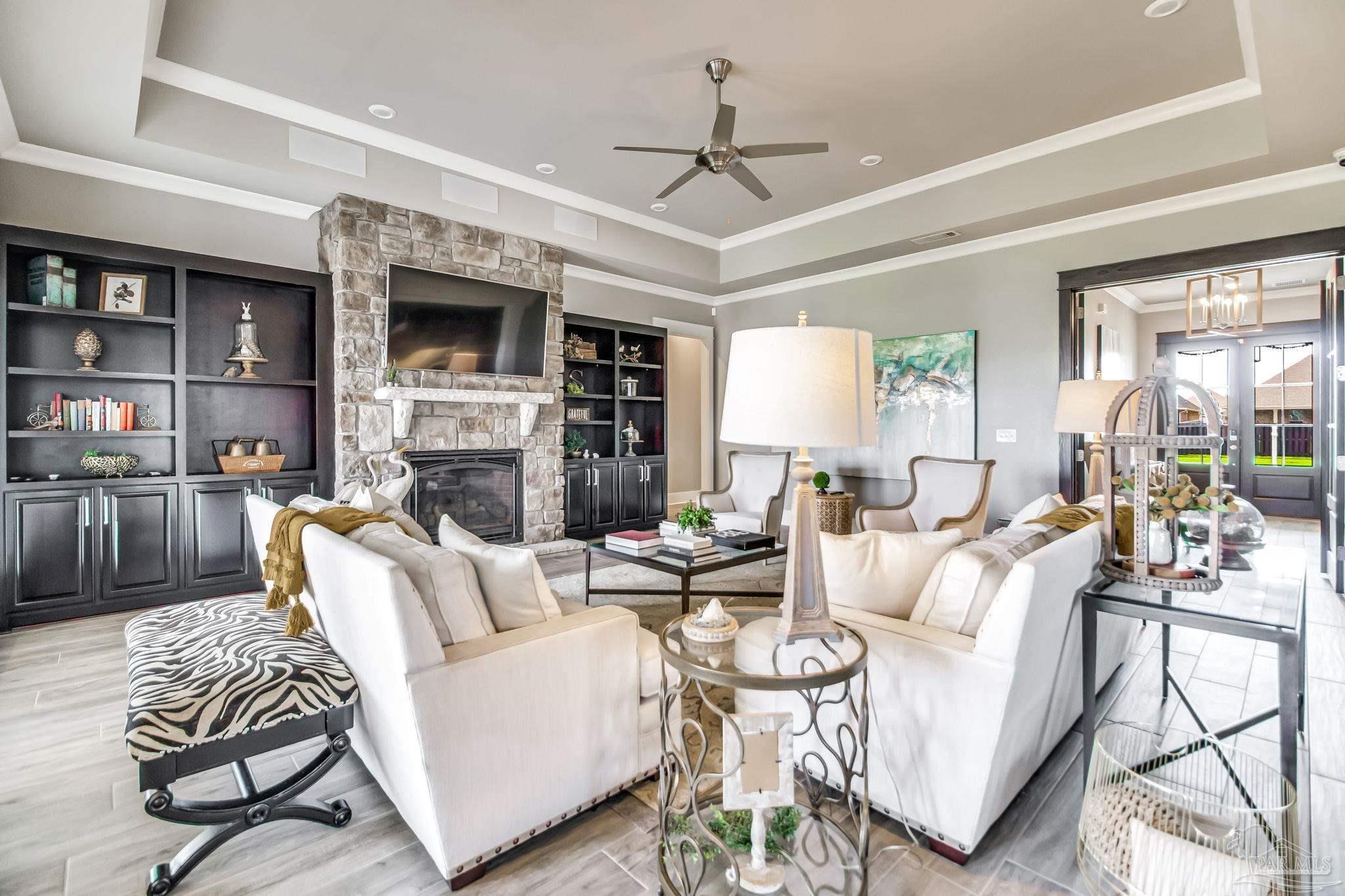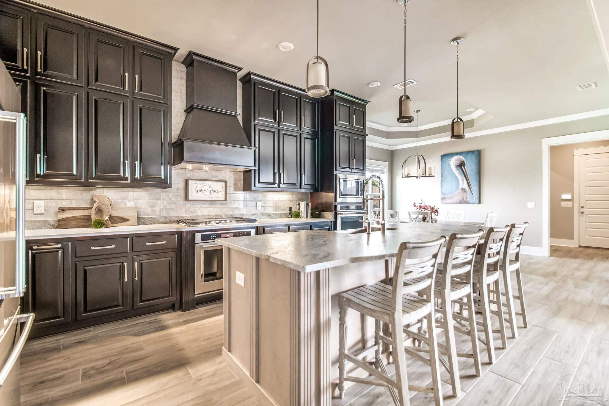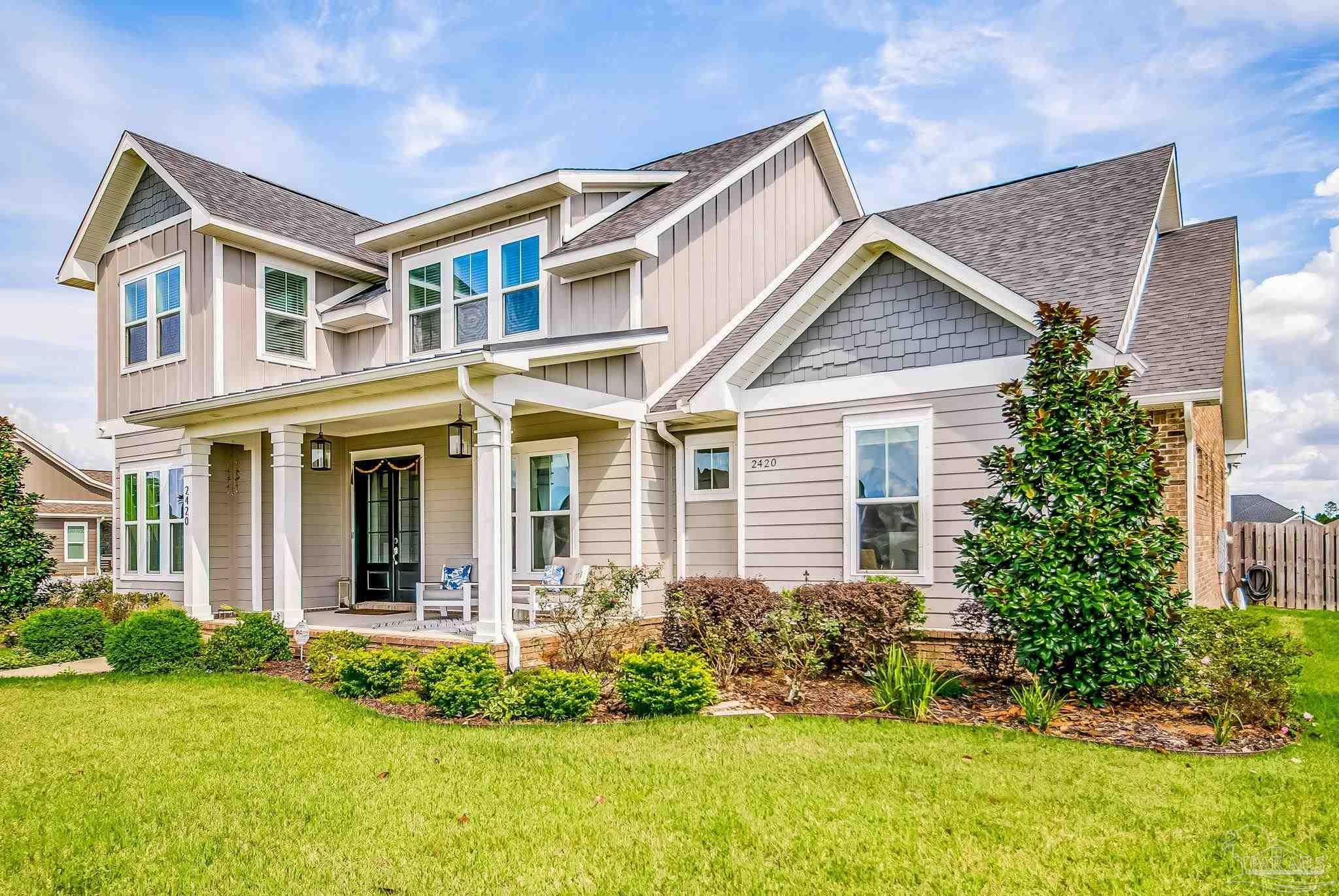 Don't miss out on this amazing deal on an exquisite custom home in the gated neighborhood of Carrington. This executive 4-bedroom, 3.5-bathroom Craftsman home is one you will want to see! Inside, you will enjoy 12-foot ceilings, as well as tray ceilings in the living room and master bedroom. Not to mention solid core 8-foot interior doors. The gourmet kitchen looks like its straight out of a magazine! Pictures don't do it justice! It boasts custom cabinetry, shiplap accents, a farmhouse sink, granite countertops, a five-burner gas range, and a brand new custom vent hood, and a large walk-in pantry. The spacious master suite offers alot of natural light including private patio access, recessed speakers, and a luxurious bathroom with a designer walk-in closet, tiled walk-in shower with body sprayers and rainfall showerhead, a free-standing soaking tub, and a double vanity. The great room features a gas stone fireplace, built in surround sound speakers, tray ceiling, wood-look tile flooring, and several large brand new glass doors leading to the expansive back porch with built-in outdoor kitchen, fireplace, with plenty of room for a pool or expanded outdoor space. The home is wired for a custom home theater system and even includes a state-of-the-art digital security system controlled by a master remote. This home includes a downstairs guest suite, perfect for a mother-in-law suite or spare bedroom. Upgrades include an upgraded Daikin HVAC system with a transferable 10-year warranty, upgraded irrigation system, and an advanced speaker system with smart home features. The lush Zoysia lawn adds curb appeal, and the rear-entry two-car garage provides private access. Located in a gated neighborhood with brand new amenities including a clubhouse, pool, basketball court, pickleball court, and more! This home recently appraised at $725,000 which means you have instant equity! Schedule your tour today to take advantage of this amazing home at an amazing price!