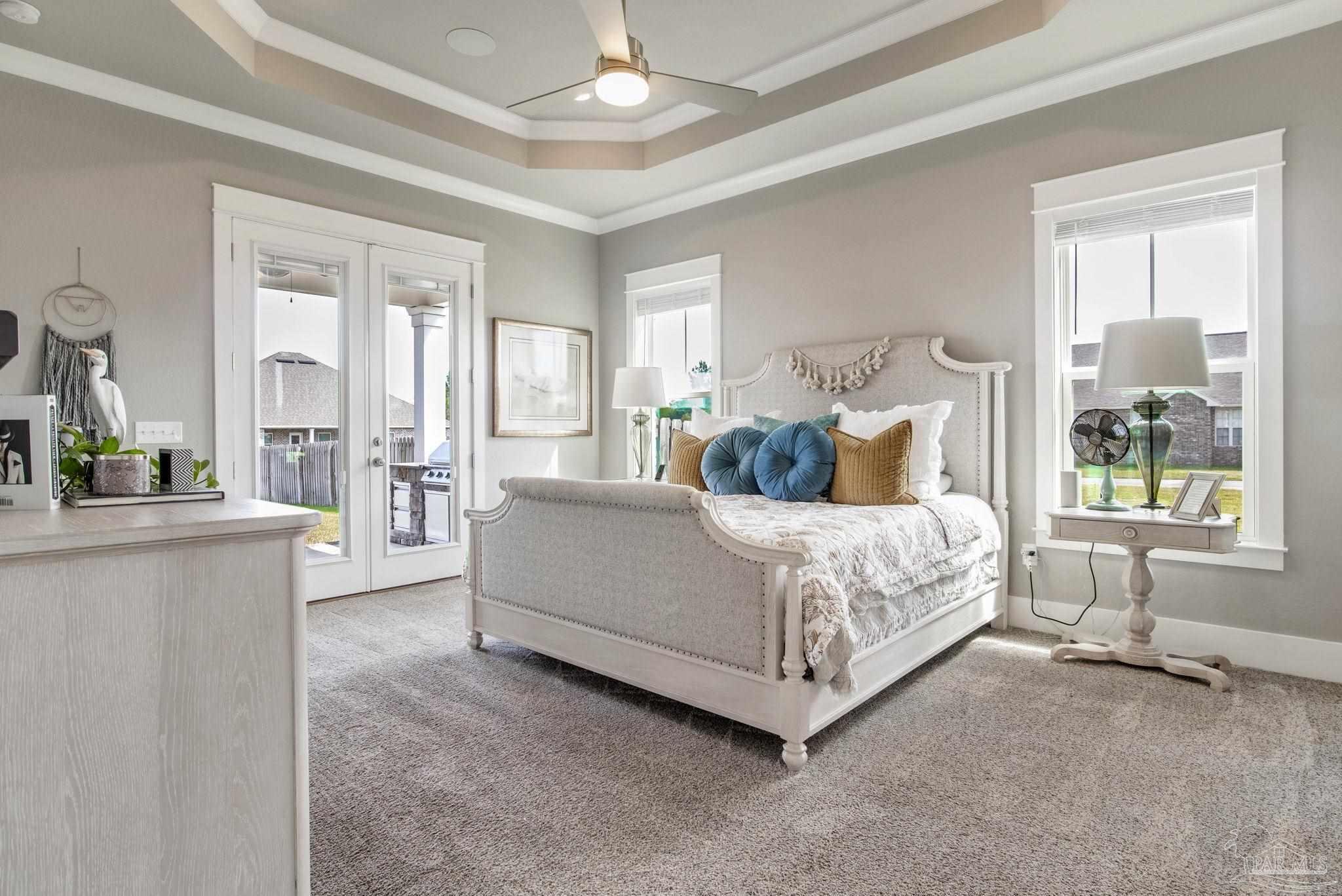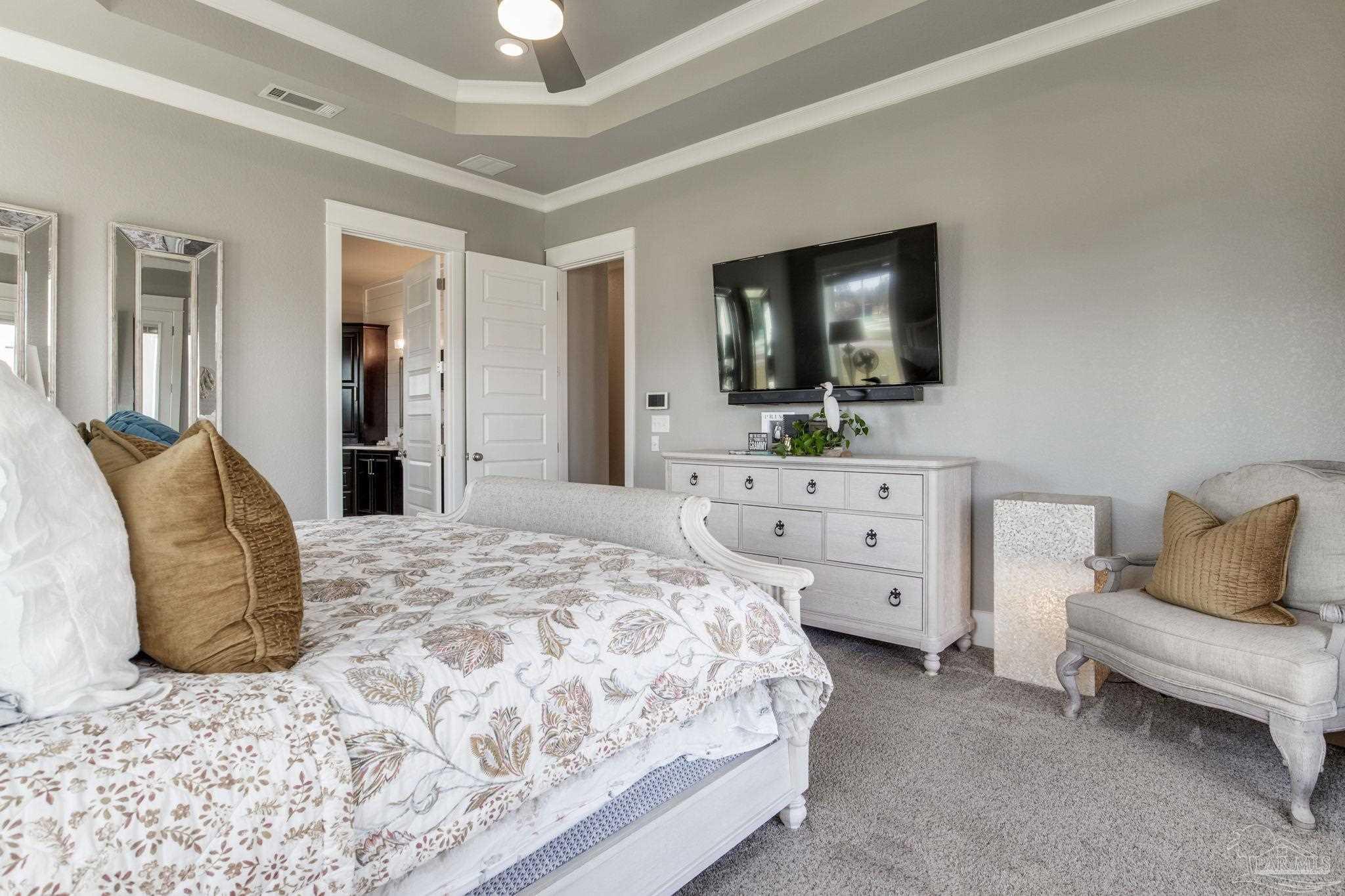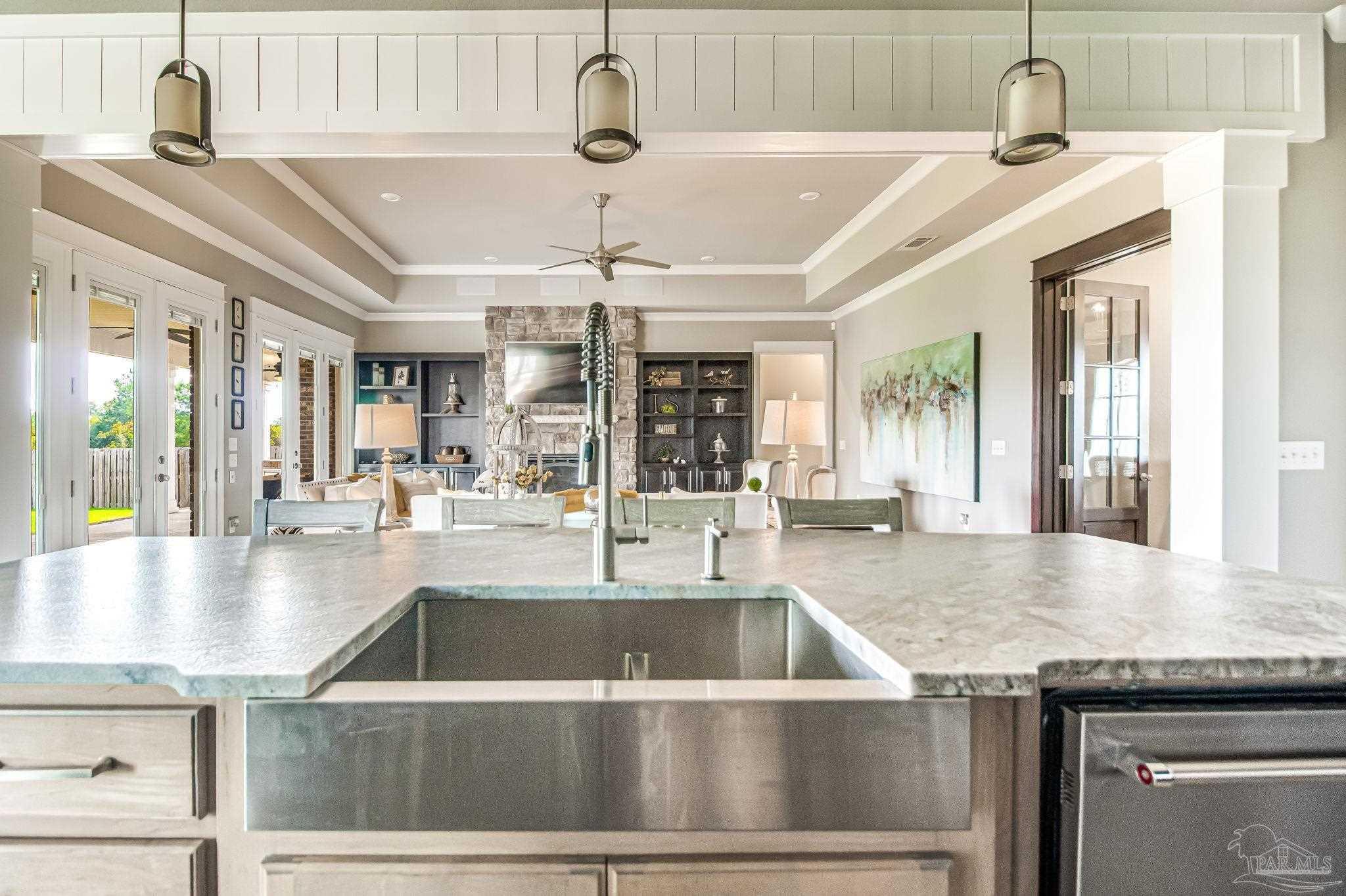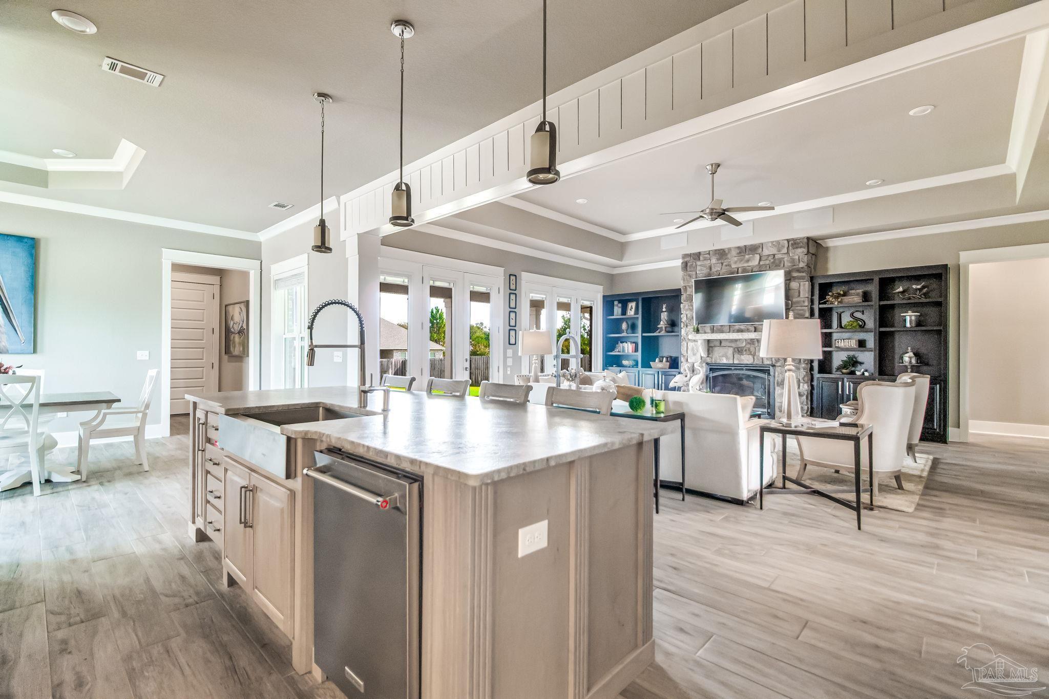 Don't miss out on this amazing deal on an exquisite custom home in the gated neighborhood of Carrington. This executive 4-bedroom, 3.5-bathroom Craftsman home is one you will want to see! Inside, you will enjoy 12-foot ceilings, as well as tray ceilings in the living room and master bedroom. Not to mention solid core 8-foot interior doors. The gourmet kitchen looks like its straight out of a magazine! Pictures don't do it justice! It boasts custom cabinetry, shiplap accents, a farmhouse sink, granite countertops, a five-burner gas range, and a brand new custom vent hood, and a large walk-in pantry. The spacious master suite offers alot of natural light including private patio access, recessed speakers, and a luxurious bathroom with a designer walk-in closet, tiled walk-in shower with body sprayers and rainfall showerhead, a free-standing soaking tub, and a double vanity. The great room features a gas stone fireplace, built in surround sound speakers, tray ceiling, wood-look tile flooring, and several large brand new glass doors leading to the expansive back porch with built-in outdoor kitchen, fireplace, with plenty of room for a pool or expanded outdoor space. The home is wired for a custom home theater system and even includes a state-of-the-art digital security system controlled by a master remote. This home includes a downstairs guest suite, perfect for a mother-in-law suite or spare bedroom. Upgrades include an upgraded Daikin HVAC system with a transferable 10-year warranty, upgraded irrigation system, and an advanced speaker system with smart home features. The lush Zoysia lawn adds curb appeal, and the rear-entry two-car garage provides private access. Located in a gated neighborhood with brand new amenities including a clubhouse, pool, basketball court, pickleball court, and more! This home recently appraised at $725,000 which means you have instant equity! Schedule your tour today to take advantage of this amazing home at an amazing price!