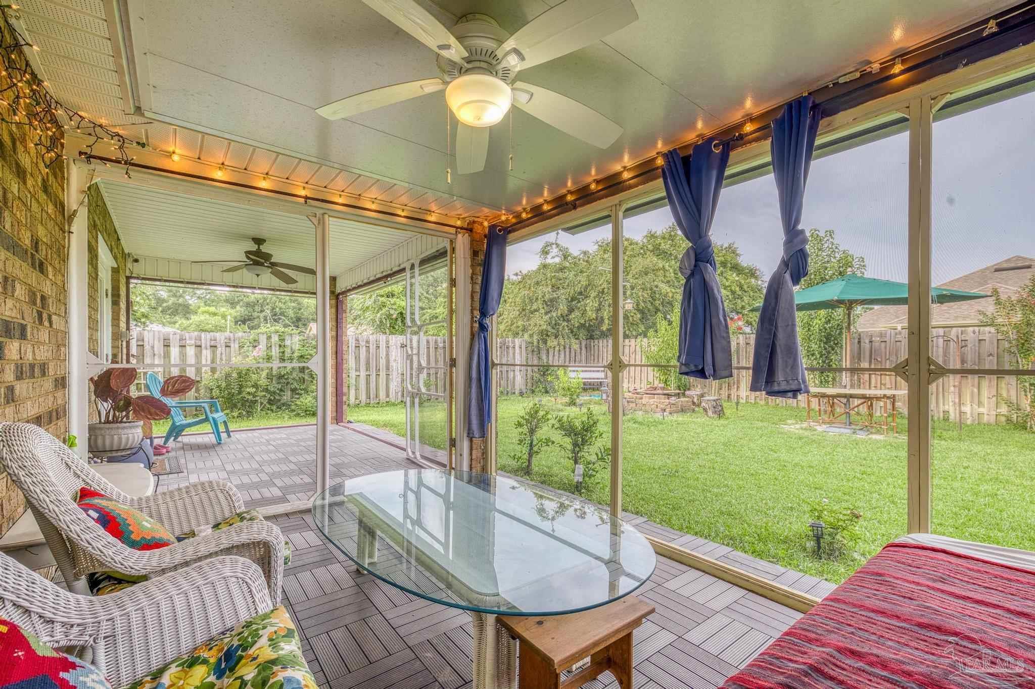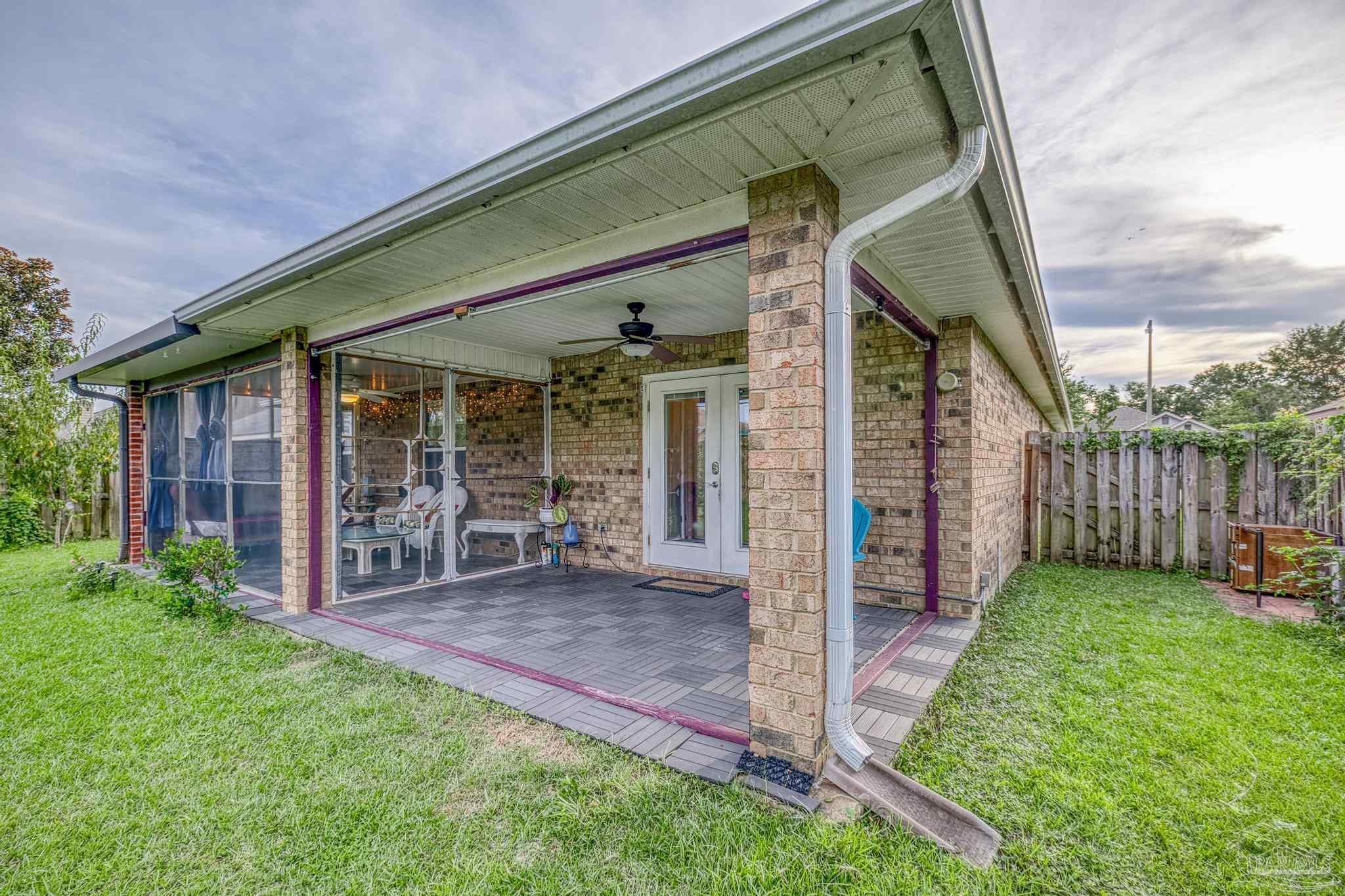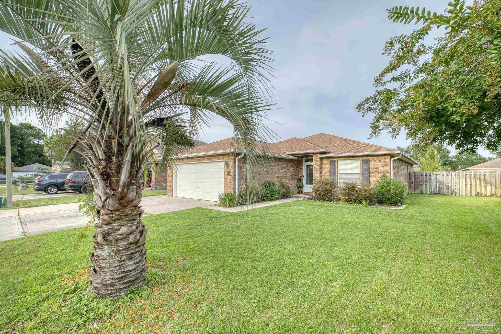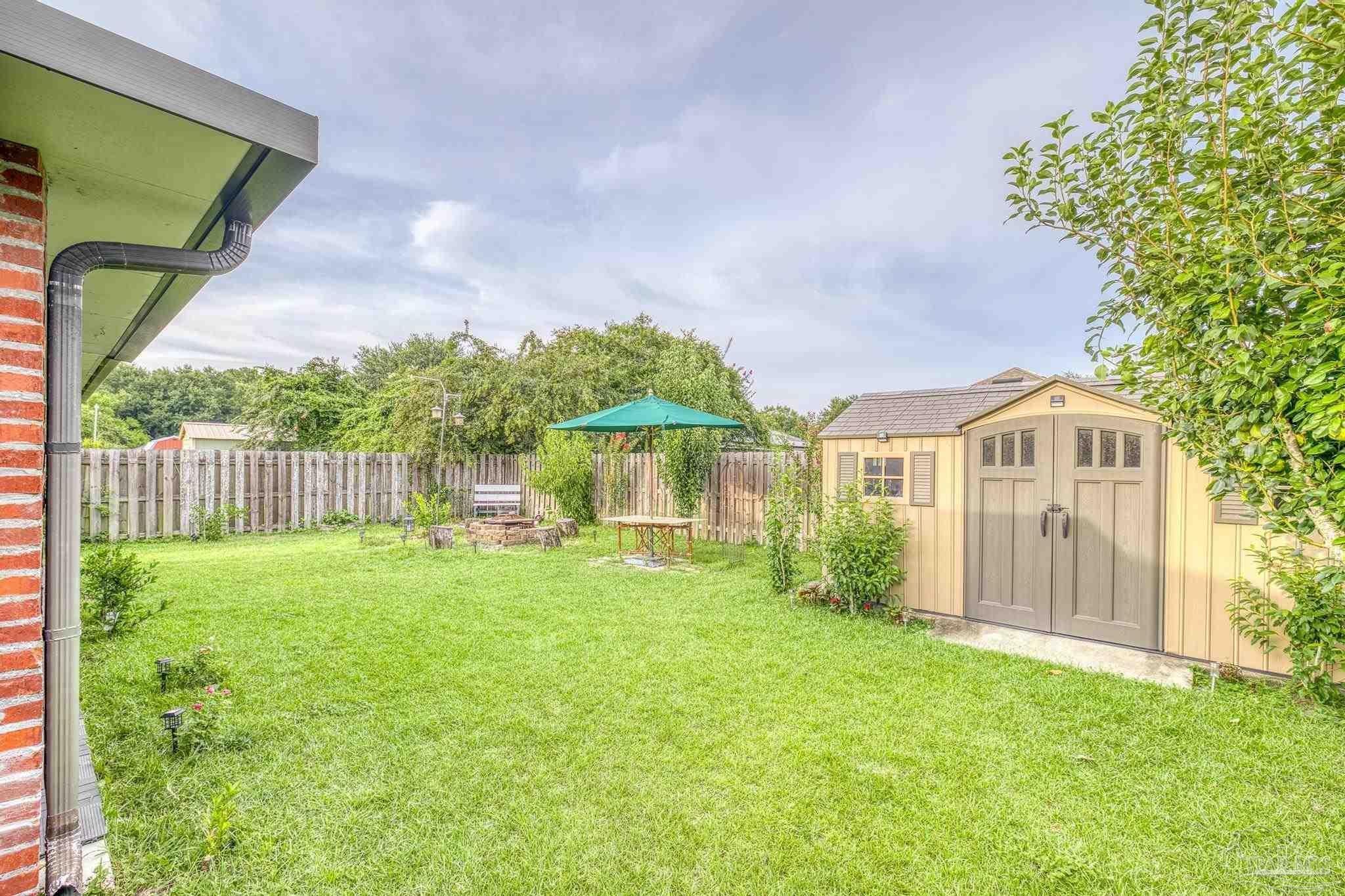 This beautifully cared-for 3-bedroom, 2-bath brick home offers comfort, convenience, and peace of mind with major updates already complete—including a 2-year-old roof, HVAC system less than a year old, and a 2-year-old water heater. A lush, manicured front lawn and thoughtfully designed landscaping create strong curb appeal from the moment you arrive. Inside, the open-concept living area features high ceilings and easy-to-maintain tile flooring, creating a bright and inviting space that flows seamlessly into the dining area and kitchen. There's room for a full dining table, plus a breakfast bar fantastic for casual meals. The kitchen offers stainless steel appliances, a large pantry, and ample cabinet space to keep everything organized. A split floor plan ensures privacy, with the spacious primary suite on one side of the home, complete with a soaking tub, separate shower, and walk-in closet. Two additional bedrooms and a full bath are located on the opposite side—ideal for family or guests. Out back, enjoy the best of indoor-outdoor living with a large covered patio that’s half screened-in for relaxing bug-free evenings, and half open to the backyard—fantastic for grilling, entertaining, or soaking up the sunshine. The fully fenced yard offers plenty of grassy space, a firepit for cozy nights, and a yard building for extra storage. This home truly combines functionality, comfort, and charm—ready for you to move in and enjoy!