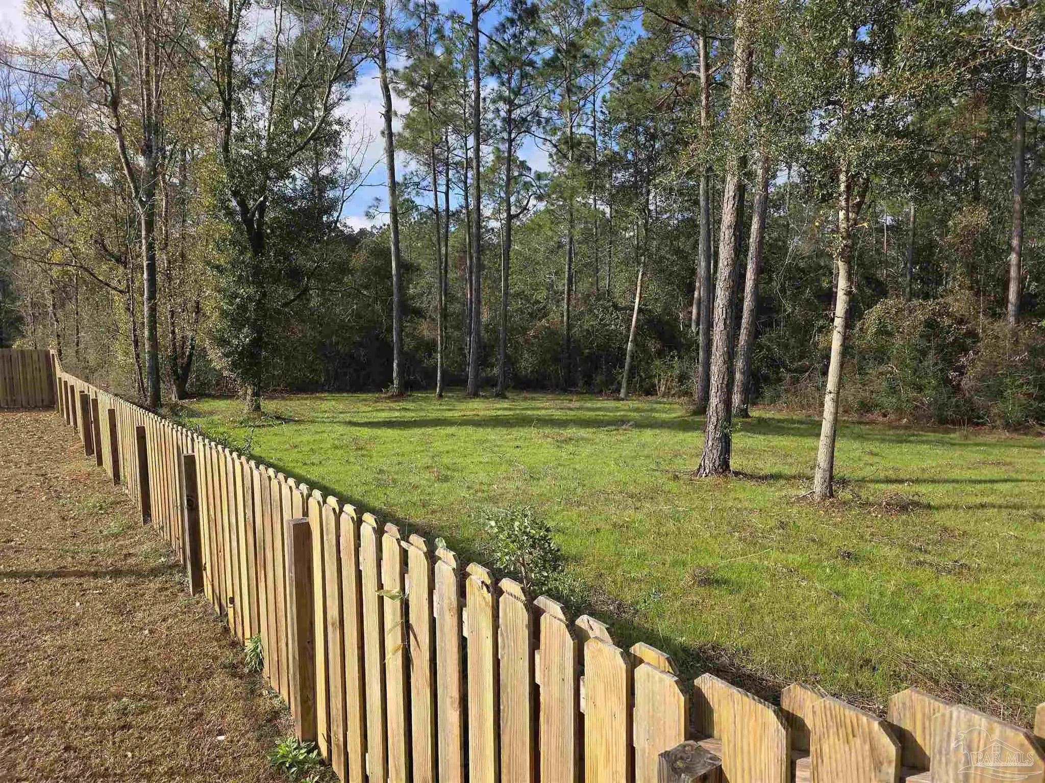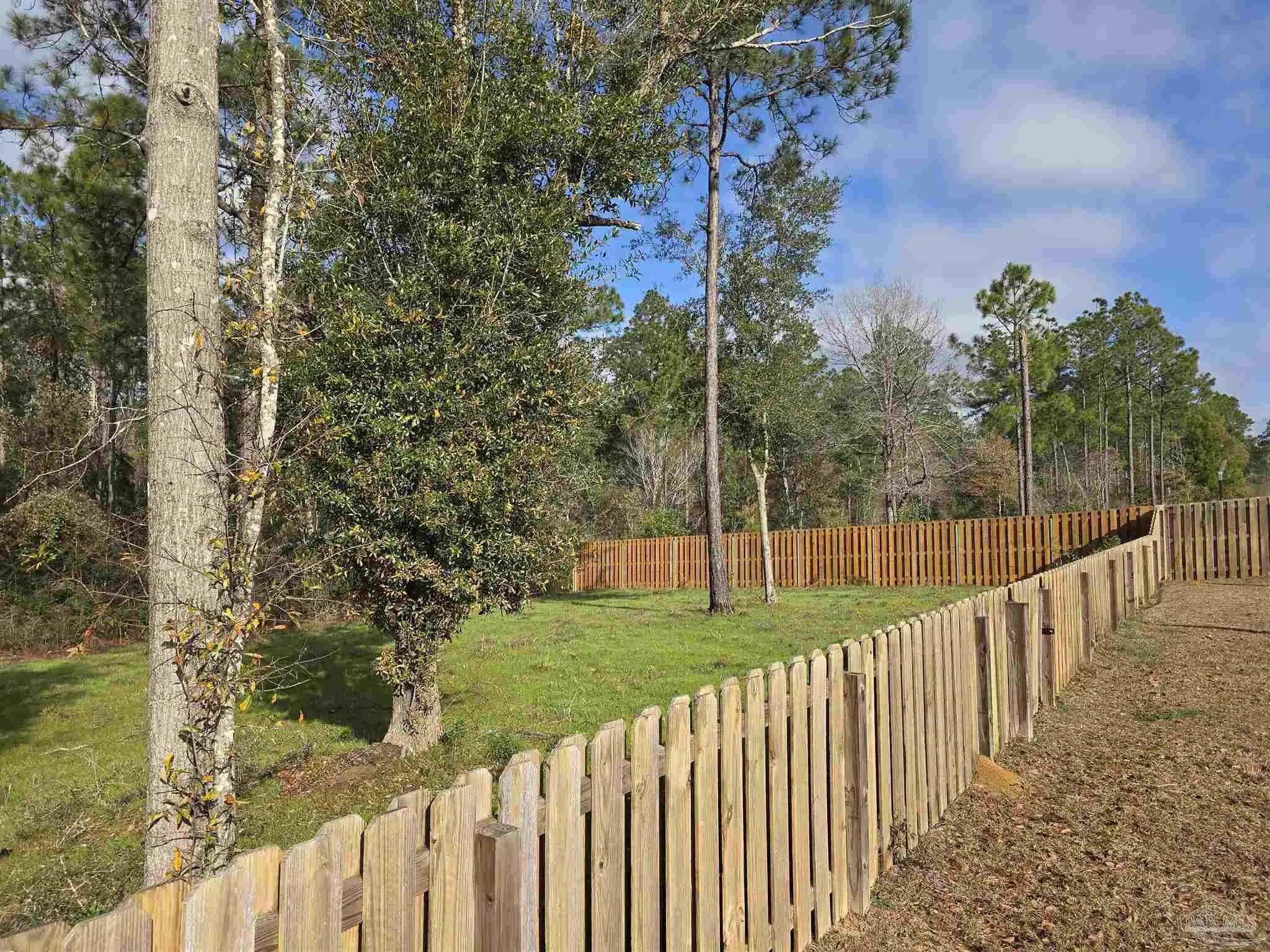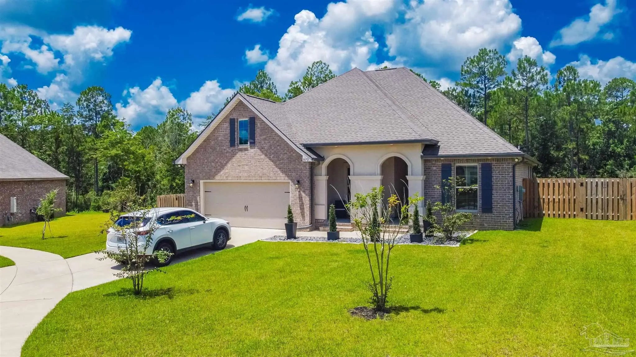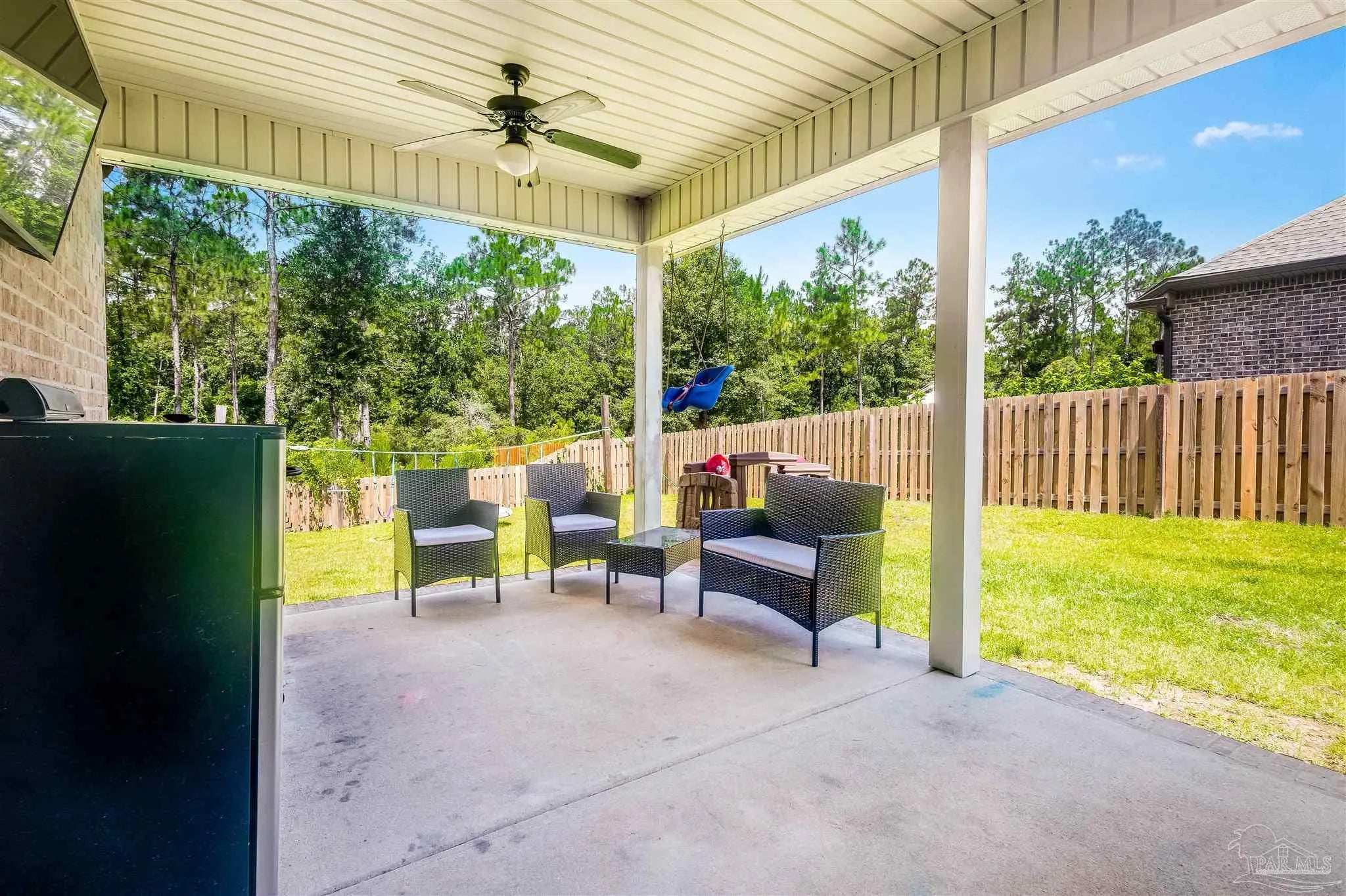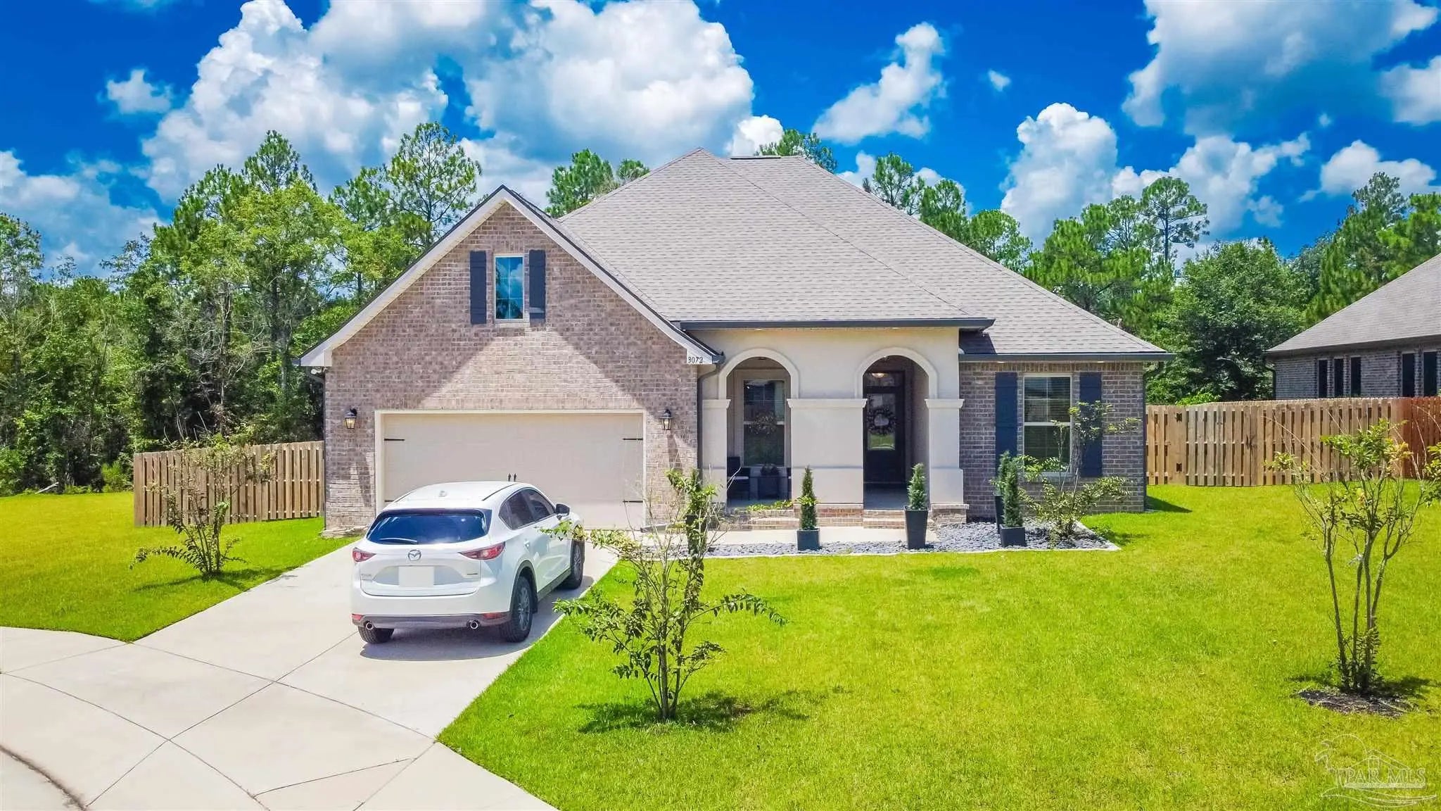 BACK ON THE MARKET! Come see this beautiful home in a gated community in Cantonment! Located in the Iron Rock neighborhood, this 2,719 square foot, 5 bedroom/3 bath home showcases an outdoor space with a large covered patio with built-in fans and a privacy fenced backyard. The property also extends past the fence line and has been cleared. The interior features an open floor plan with high ceilings, a sitting area that could be used as an office/study, a spacious living area with a gas fireplace, and a formal dining space. The eat-in kitchen opens up to the living area and includes stainless steel appliances as well as a gas stove, a large island with a breakfast bar, walk-in pantry and quartz countertops. The main bedroom suite, located off the kitchen, features a walk-in closet, double vanity, garden tub and separate shower. The community’s amenities are within walking distance from the property and include a large swimming pool, a covered outdoor clubhouse with bathhouse facilities, basketball court with pickleball, nature trails, and more. The property is located within 4.5 miles of I-10, within 6 miles of the Navy Federal Credit Union campus, and within 17 miles of Downtown Pensacola. Don’t miss this opportunity and schedule your showing today!