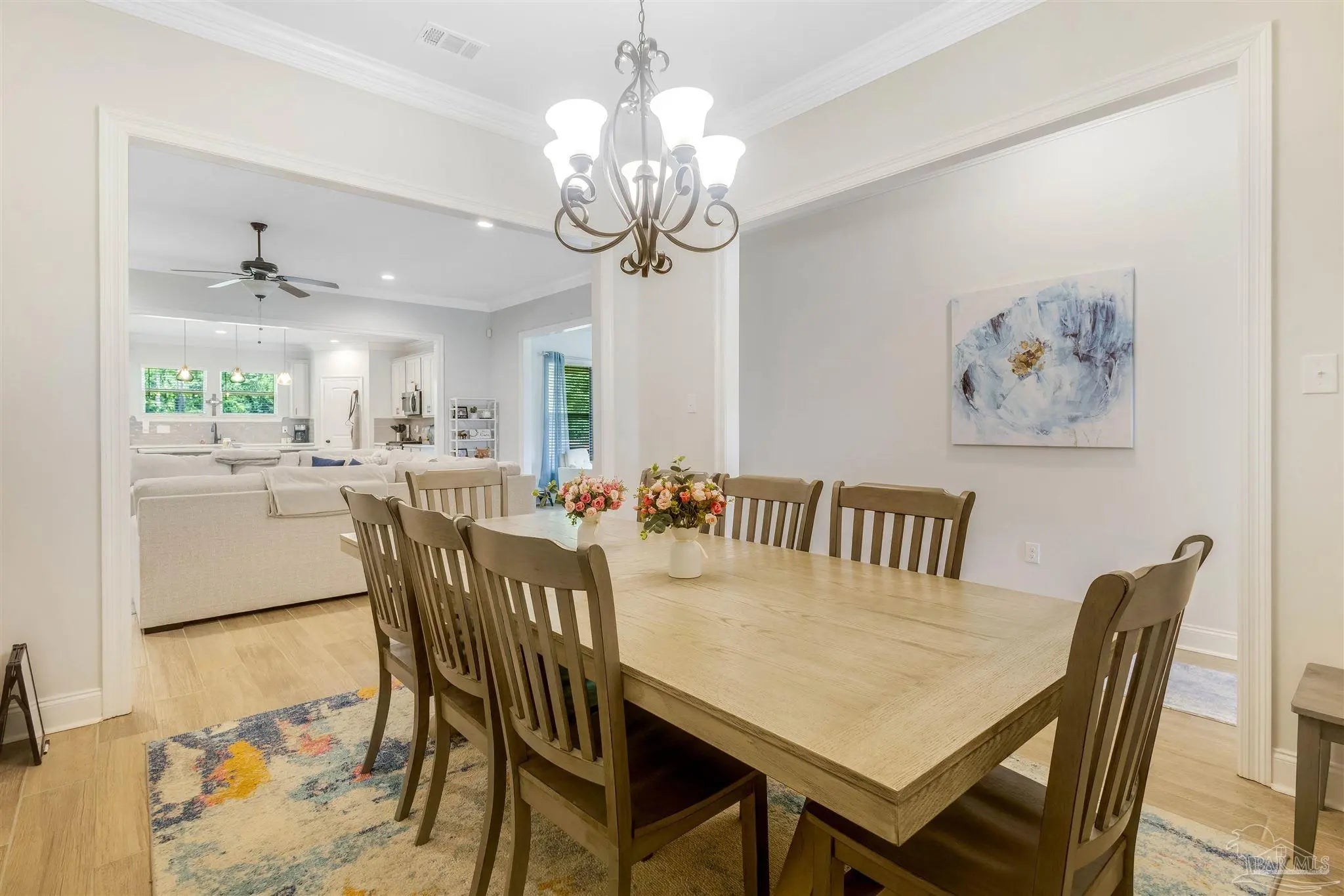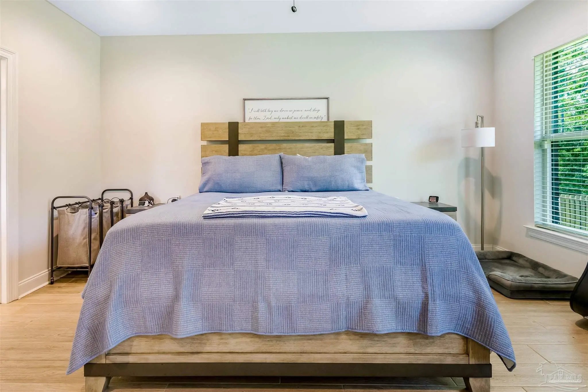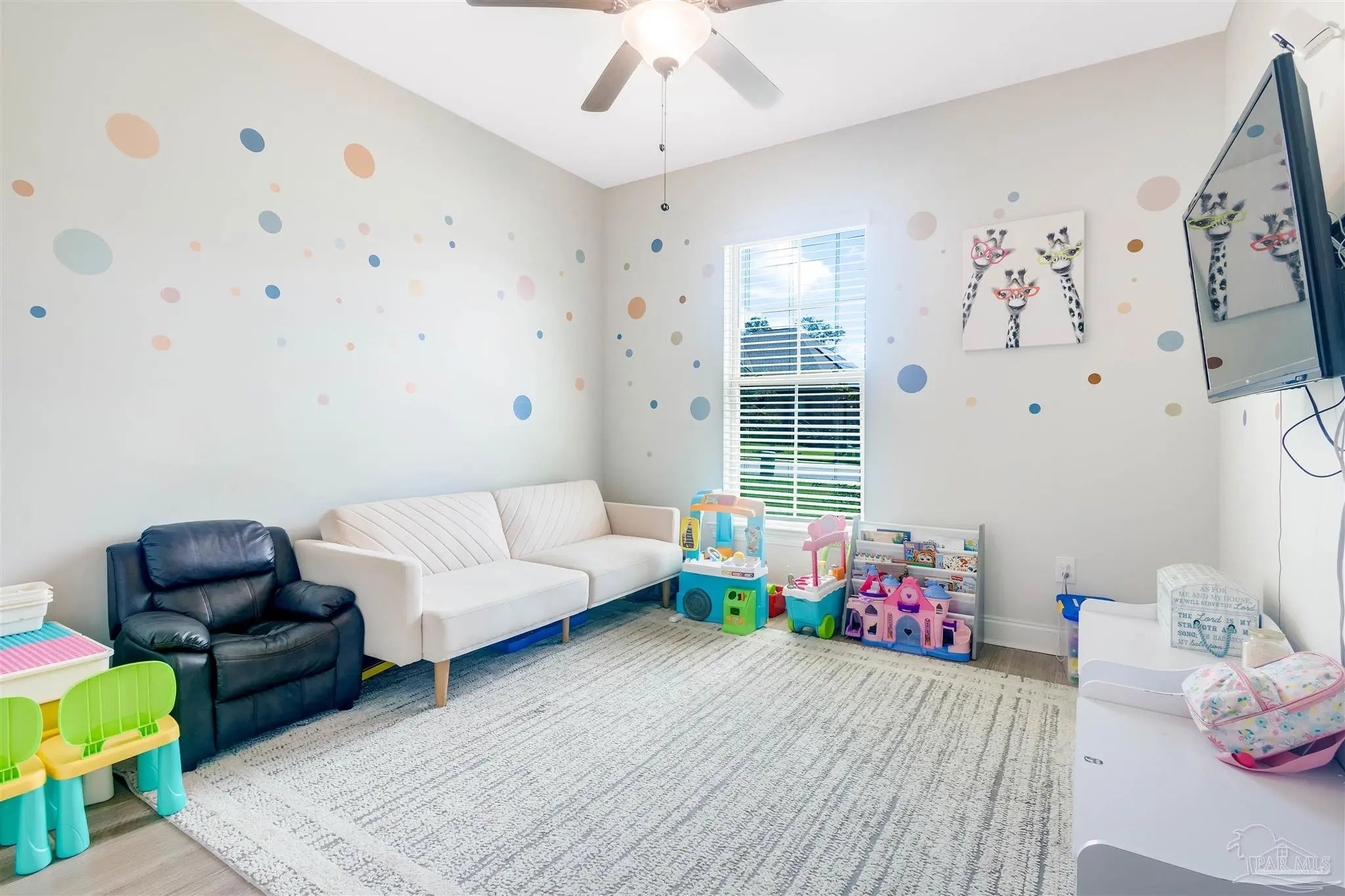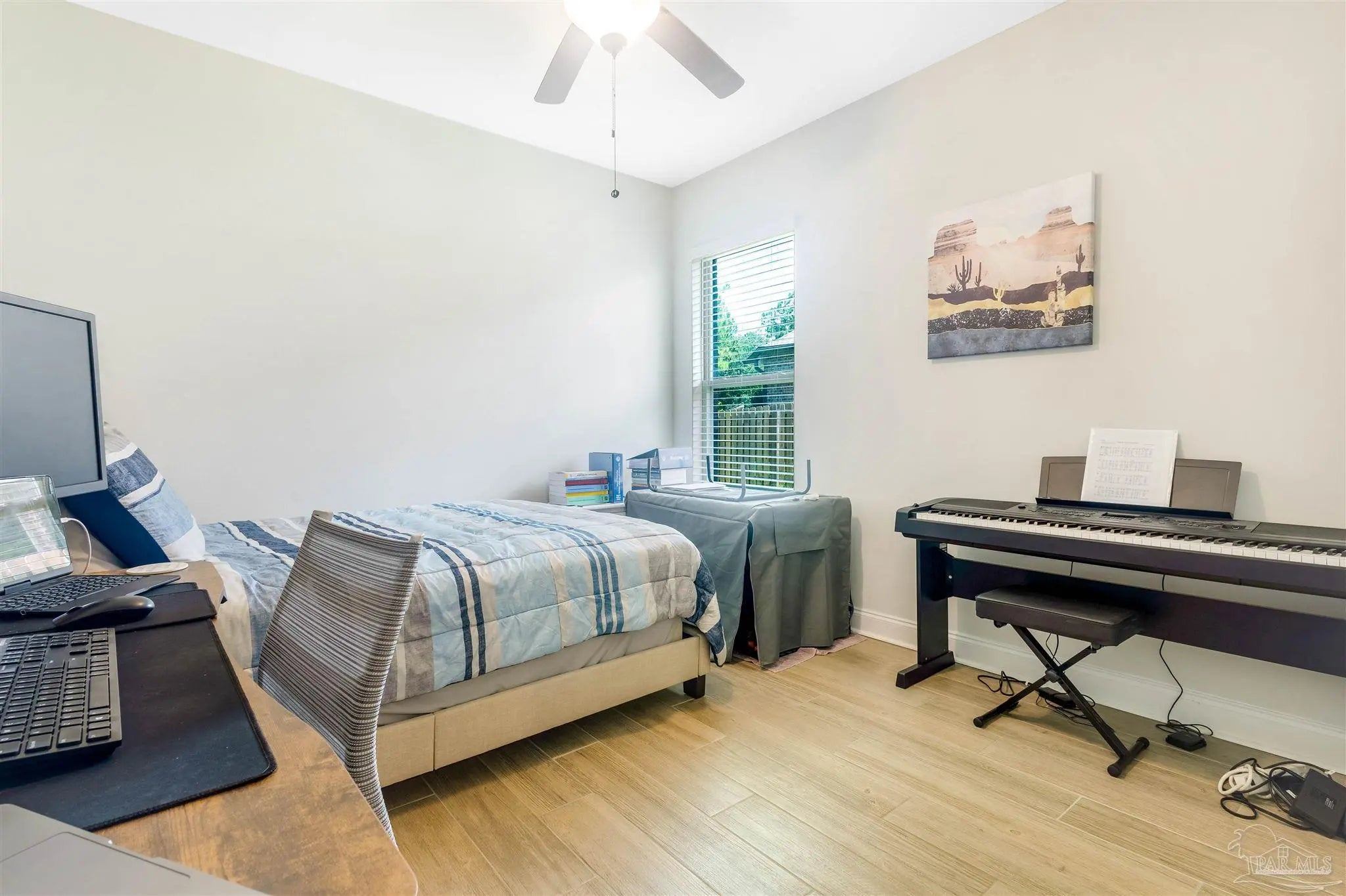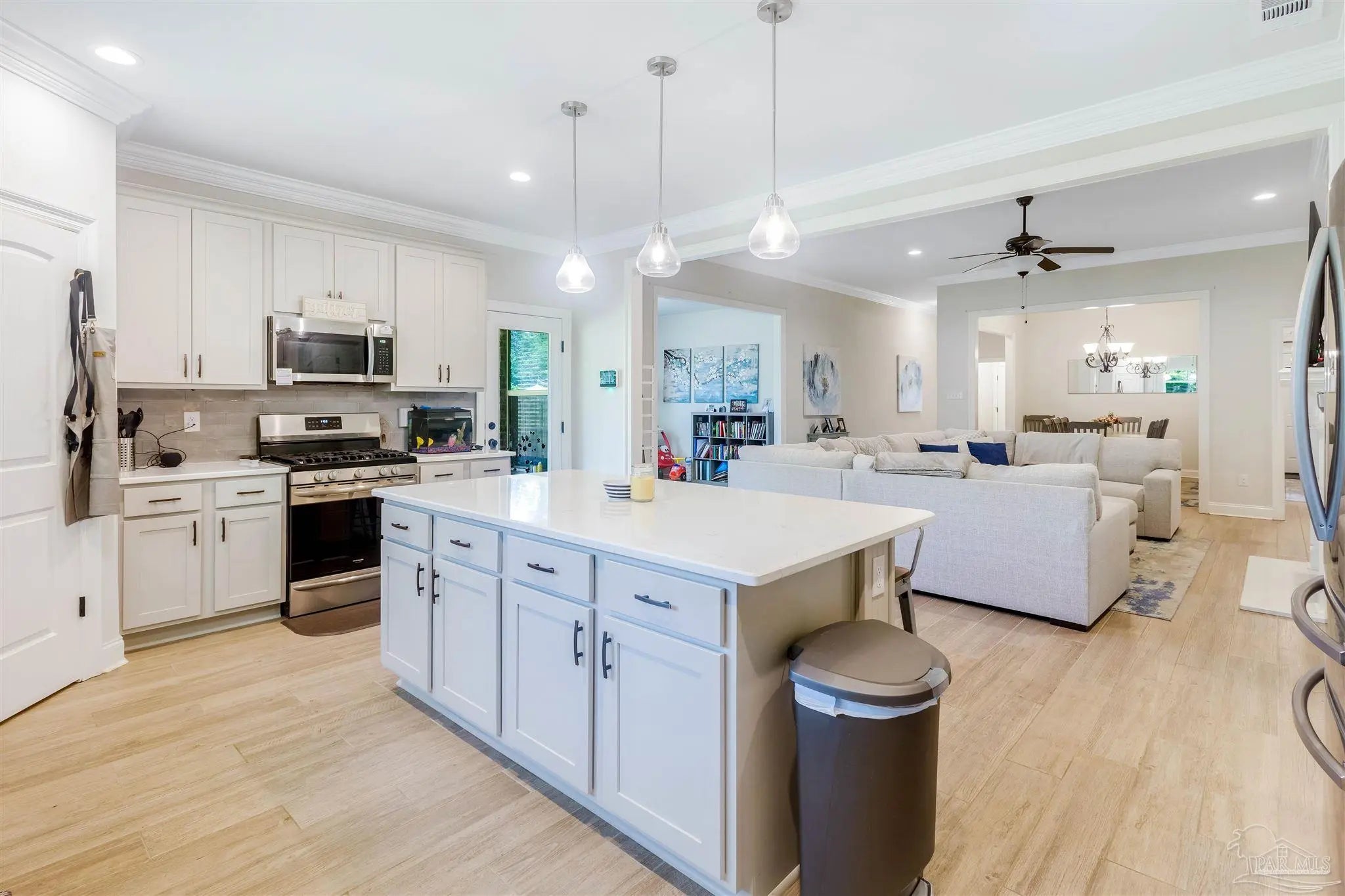 BACK ON THE MARKET! Come see this beautiful home in a gated community in Cantonment! Located in the Iron Rock neighborhood, this 2,719 square foot, 5 bedroom/3 bath home showcases an outdoor space with a large covered patio with built-in fans and a privacy fenced backyard. The property also extends past the fence line and has been cleared. The interior features an open floor plan with high ceilings, a sitting area that could be used as an office/study, a spacious living area with a gas fireplace, and a formal dining space. The eat-in kitchen opens up to the living area and includes stainless steel appliances as well as a gas stove, a large island with a breakfast bar, walk-in pantry and quartz countertops. The main bedroom suite, located off the kitchen, features a walk-in closet, double vanity, garden tub and separate shower. The community’s amenities are within walking distance from the property and include a large swimming pool, a covered outdoor clubhouse with bathhouse facilities, basketball court with pickleball, nature trails, and more. The property is located within 4.5 miles of I-10, within 6 miles of the Navy Federal Credit Union campus, and within 17 miles of Downtown Pensacola. Don’t miss this opportunity and schedule your showing today!