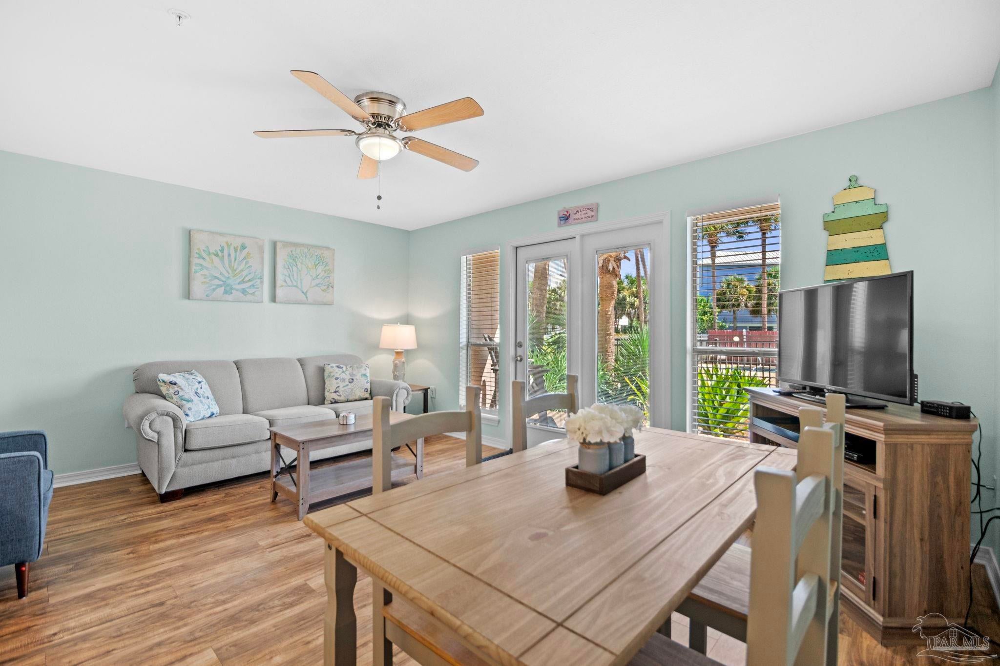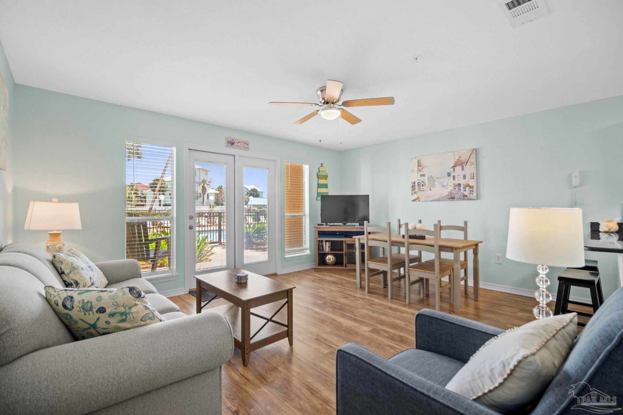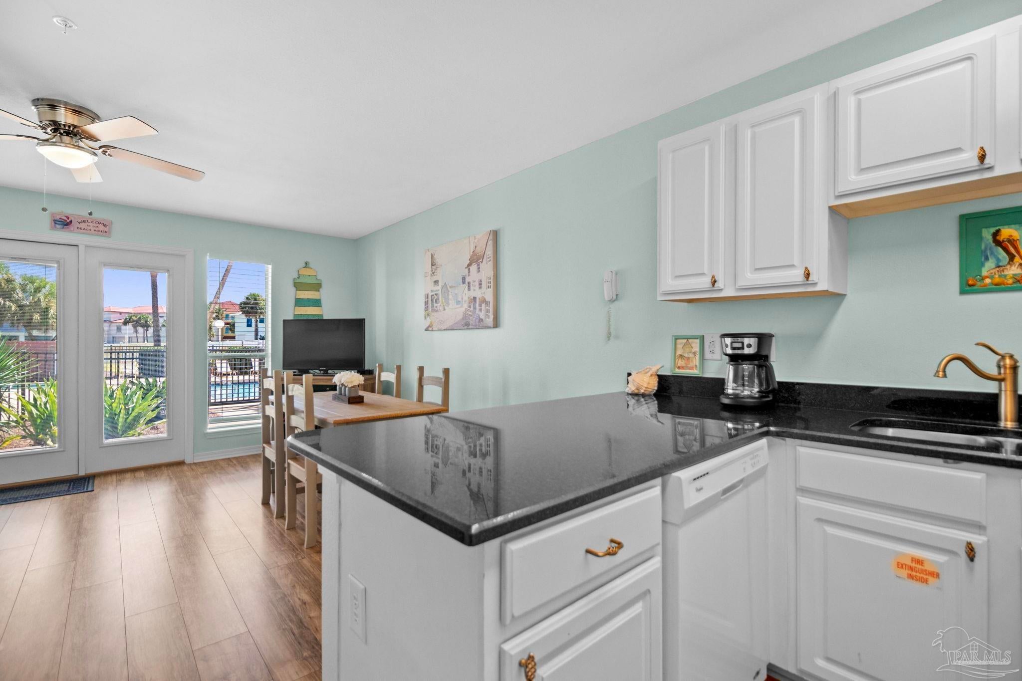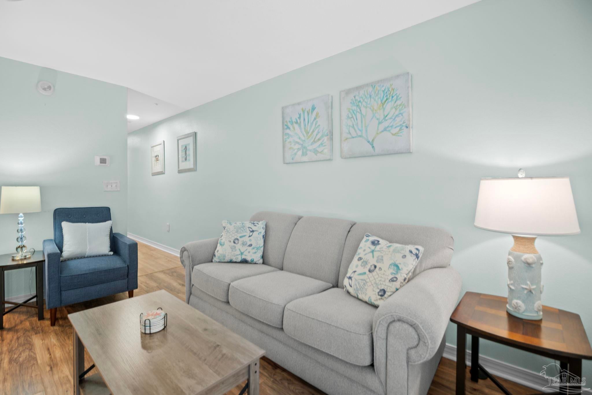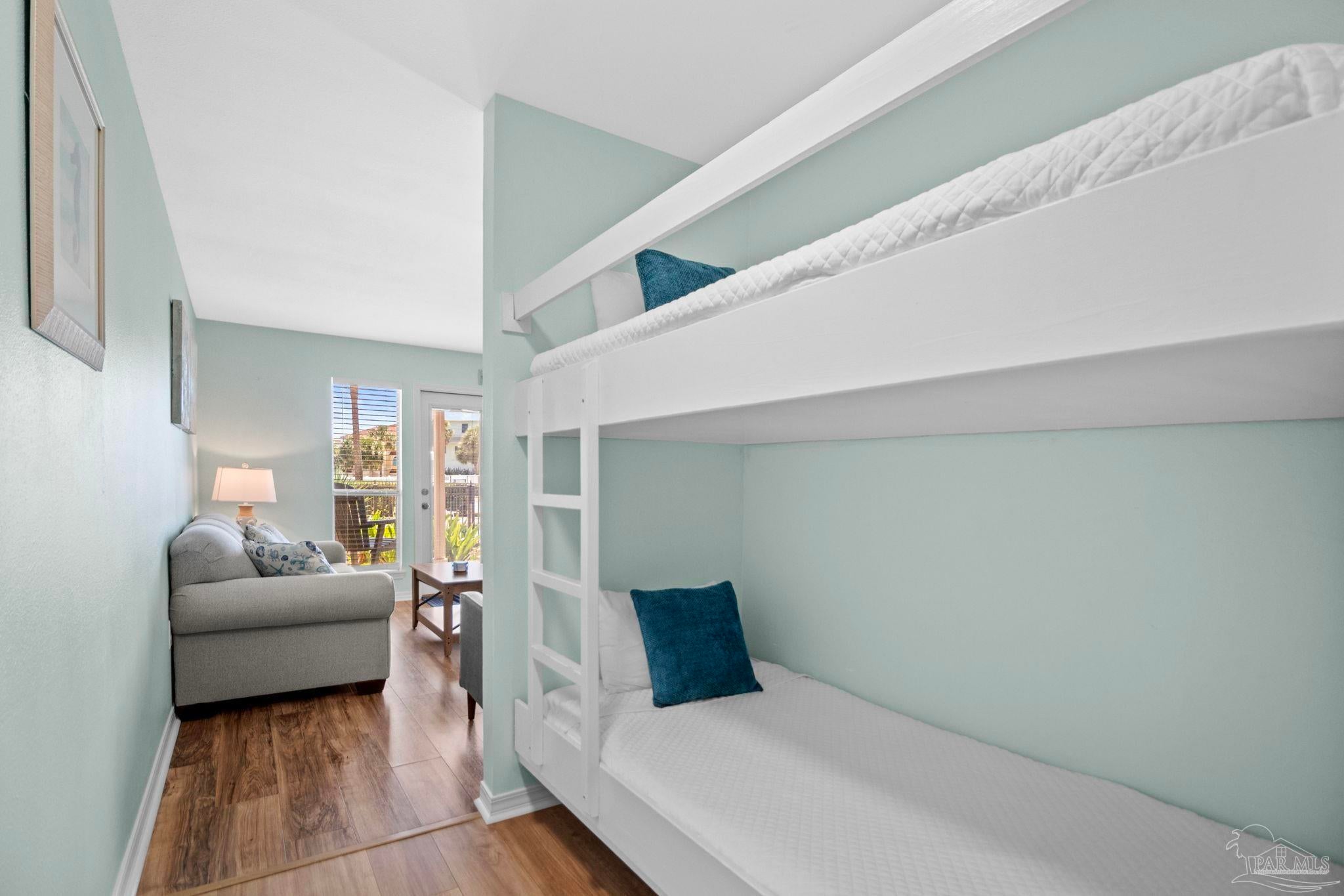 Experience coastal living at its finest in this beautifully updated, fully furnished 1-bedroom, 1-bath condo at Grand Caribbean East in stunning Perdido Key. Whether you're looking for a smart rental investment or a serene personal retreat, this ground-floor unit checks all the boxes. Enter to discover a chic coastal-inspired interior with a soft, airy color scheme, coastal furnishings, and durable wood composite flooring that extends throughout the space. No carpet means less sand, less hassle! The smart layout includes a private bedroom suite, built-in twin captain’s bunks in the hallway, and a sleeper sofa in the living area offering comfortable accommodations. Also worth noting is the in-unit washer and dryer, making beachside laundry a total breeze! Enjoy the convenience of a private patio with direct access to the pool and picnic area, the perfect for relaxing or entertaining. Grand Caribbean offers exclusive amenities including a seasonally heated outdoor pool, hot tub, grill area, and a peaceful freshwater pond. Best of all, there’s a dedicated beach walkway and close proximity to the unspoiled beauty of Gulf Islands National Seashore. Located just minutes from NAS Pensacola’s back gate, Orange Beach, shopping, dining, and the beach, this is the ideal spot for your next chapter on the Gulf Coast.