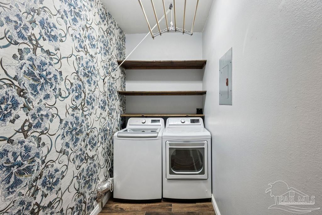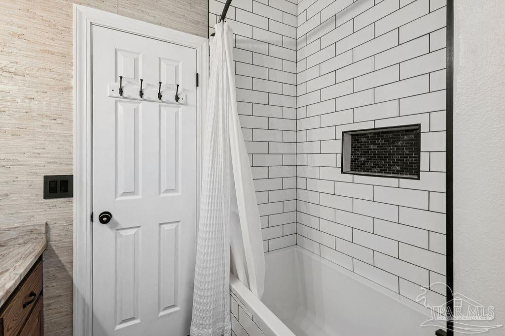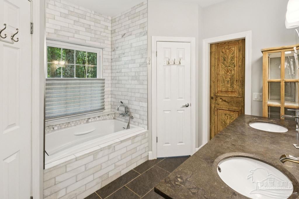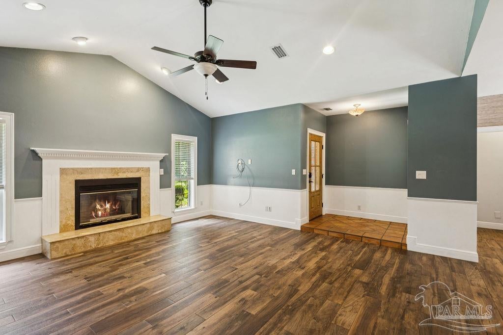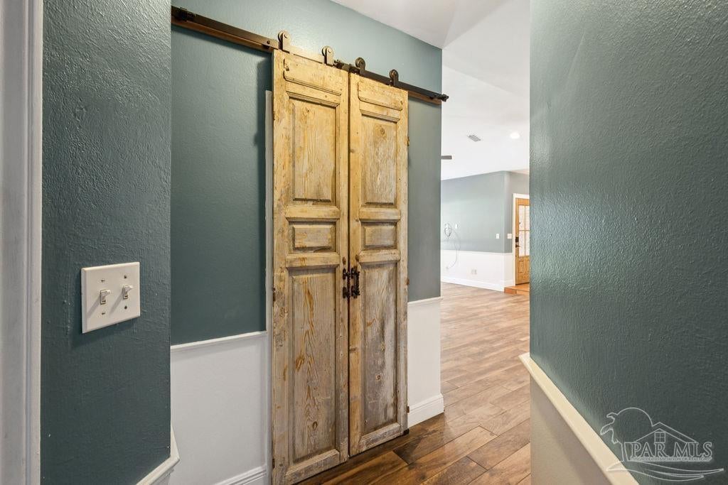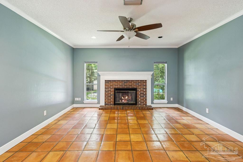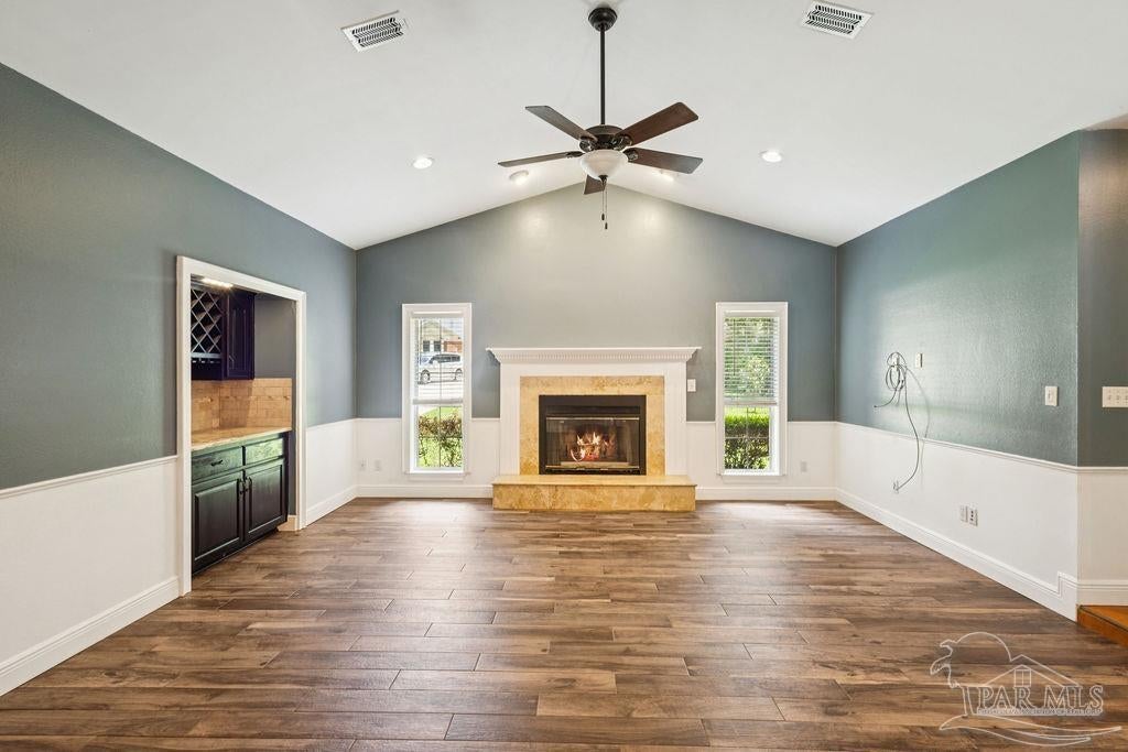 Charming Pool Home in Woodbine Springs Plantation with Unique Custom Features Beautifully updated 3BR/2BA home on nearly half an acre in sought-after Woodbine Springs Plantation—known for its tranquil setting, community playgrounds, and 55-acre private lake. This home offers character and comfort with authentic Mexican tile in the foyer and family room, wood-look tile throughout, vaulted ceiling in living room, and two wood-burning fireplaces (both inspected and recapped). The kitchen was fully renovated in 2019 with new appliances, painted cabinetry, tiled backsplash, and a beverage fridge. A custom coffee bar features a water spigot and built-in pet bowl station. The primary suite includes a private office and a fully updated bath with Italian blue marble counters, marble walk-in shower, and a Bain Ultra tub with 42 jets, chromatherapy, and aromatherapy. Two additional bedrooms and a full bath with updated cabinetry and subway tile are located on the opposite side of the home. Enjoy outdoor living with a fenced backyard, tiki bar (power, mini fridge, and new metal roof), deck, fire pit, and an in-ground pool with salt system (salt cell new April 2025, liner approx. 5 years old) and new Polaris that will convey. A charming antique Egyptian door leads to the laundry room with a 2023 washer/dryer that conveys Additional Features: • Roof (2019) • HVAC (2015, professionally maintained) • Water Heater (2022/2023) • Gutters • Fully Fenced