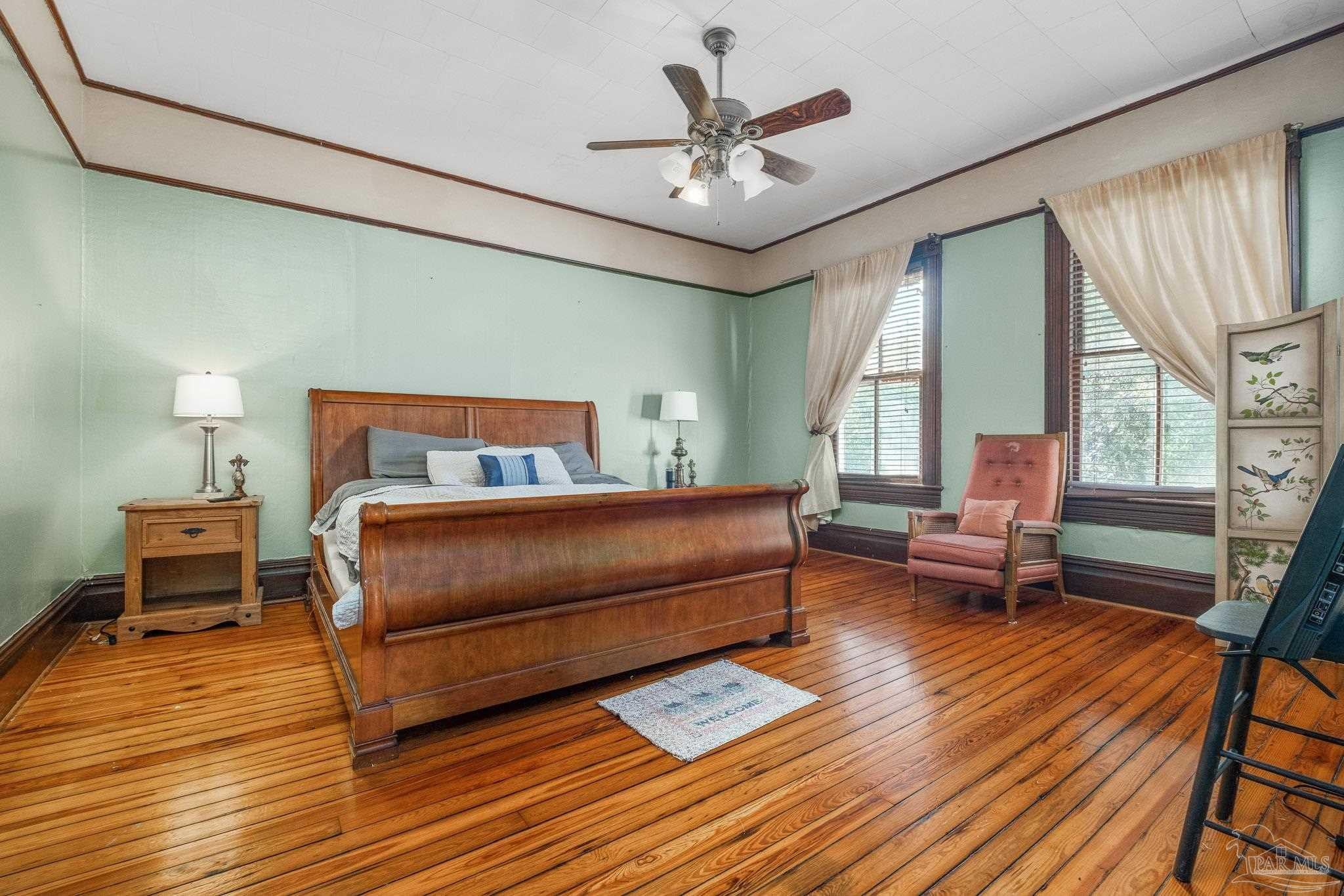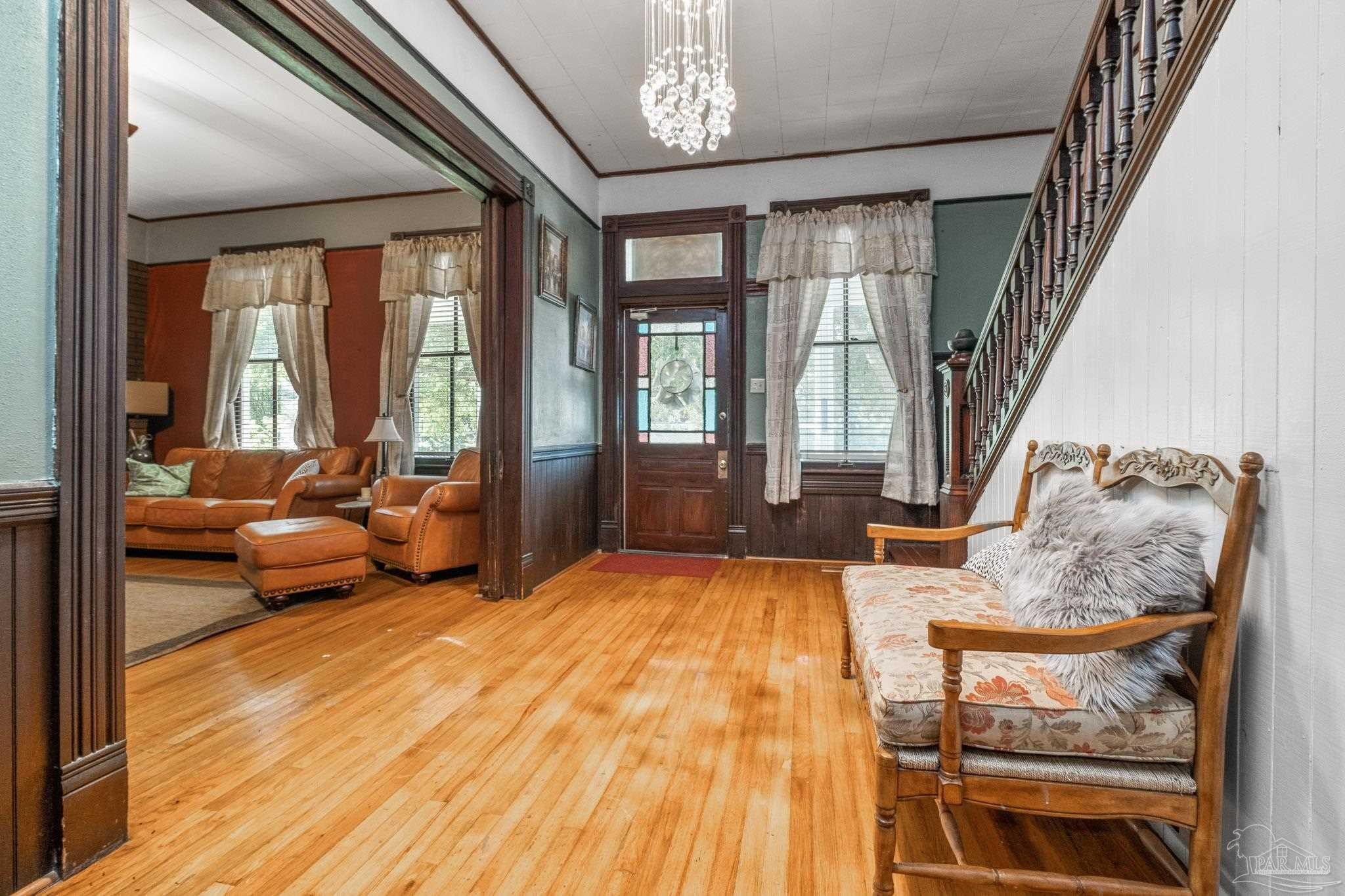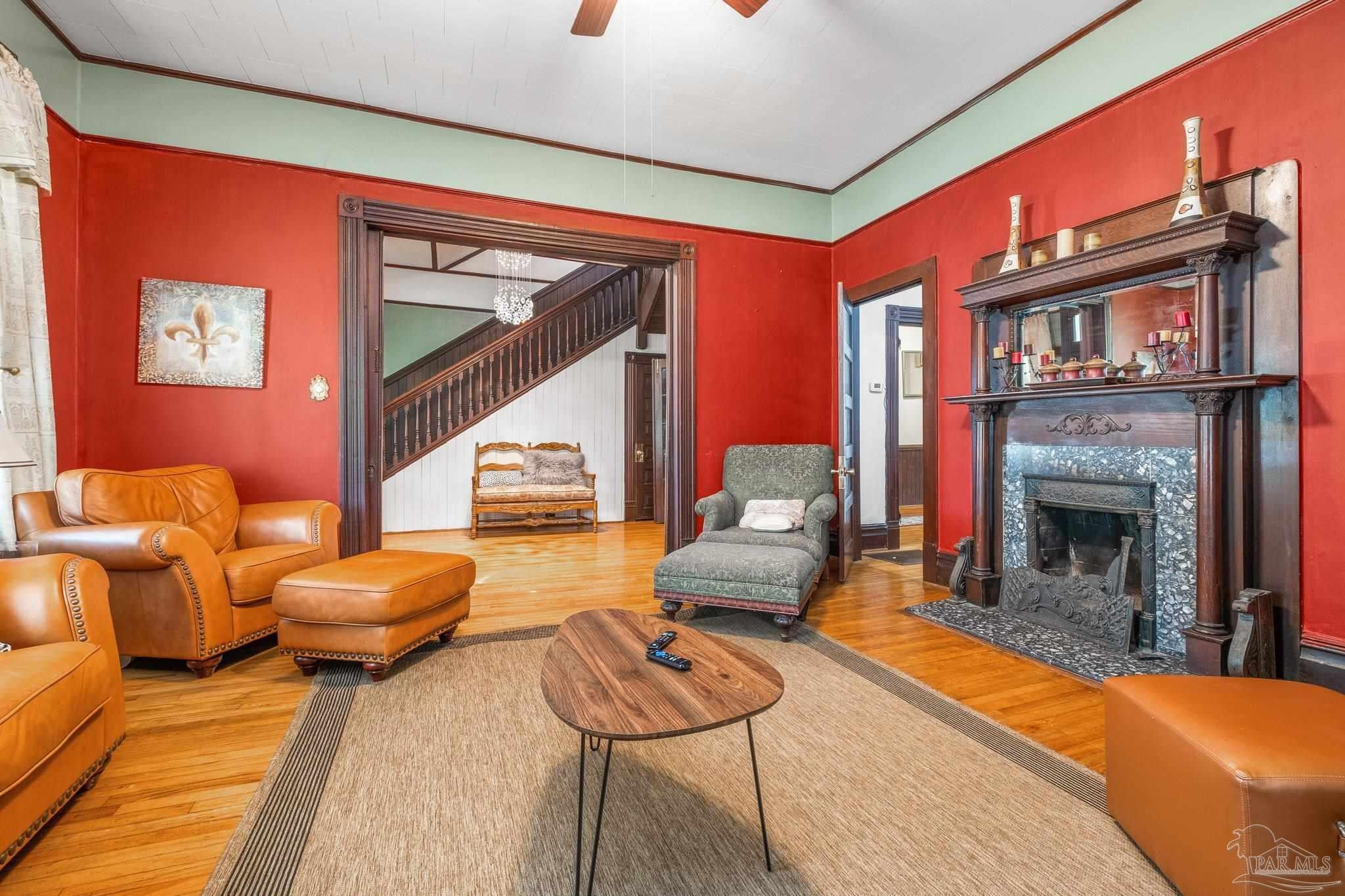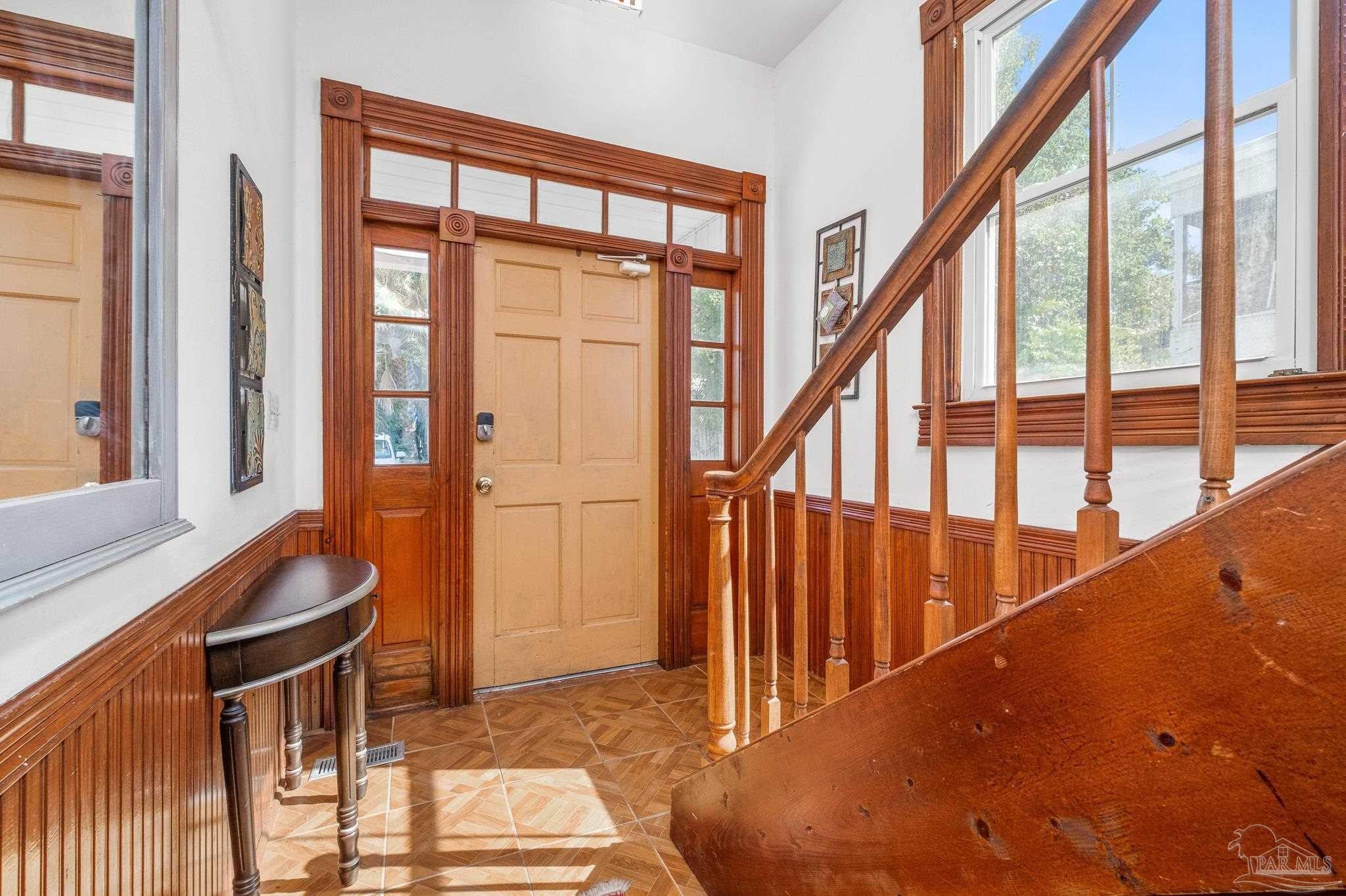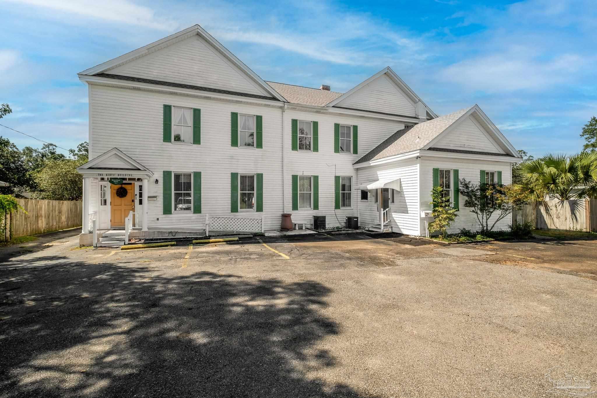 This hard to find two-story 1900 Victorian marvel boasts an impressive 13 bedrooms and 5 bathrooms(3 full 2 half), setting the stage for potentially grand living and endless possibilities. 2 Marbled double mantle fireplaces, one was a coal burning, 5 original stained glass windows, 10 ft ceilings. Home is built with red wood studs, thick solid wood chair railing. Potentially a bed & breakfast, or an esteemed law office, this residence. Elegant Craftsmanship. Step inside, and be welcomed by the majestic embrace of original oak and heart pine floors that infuse each corner with warmth and character. The spacious layout is complemented by an expansive butler's pantry, seamlessly fusing practicality with old-world sophistication. Embrace the Southern lifestyle on the inviting front porch, where gentle breezes beckon you to unwind while facing the South, sets the scene for sipping sweet tea enjoying Southern breezes. A side courtyard adorned with fruit trees, creating a serene oasis that perfectly complements the Victorian masterpiece. Convenience and Access. Ample Private off-street parking, adding to its practicality and desirability. With a history of serving as both distinguished office space and a successful Airbnb, this home embodies adaptability and prestige. A Neighborhood Steeped in History. Conveniently situated near Historic Downtown Pensacola and the picturesque Pensacola Bay, this potentially enchanting residence offers proximity to charming shops, gourmet dining, and cultural landmarks, enhancing your quality of life and embracing the essence of the area's rich heritage. Come and explore the blend of history, sophistication, and limitless potential that await within this iconic Victorian house. Some History on the Kirtz Building Build was completed 1860, major additions 1900 and 1973. upgrades: from 2004 through 2007. include 4 HVAC units 2024, added insulation, 22 windows, wiring 400 amp service and plumbing updates, some foam insulation, ,2021 roof.