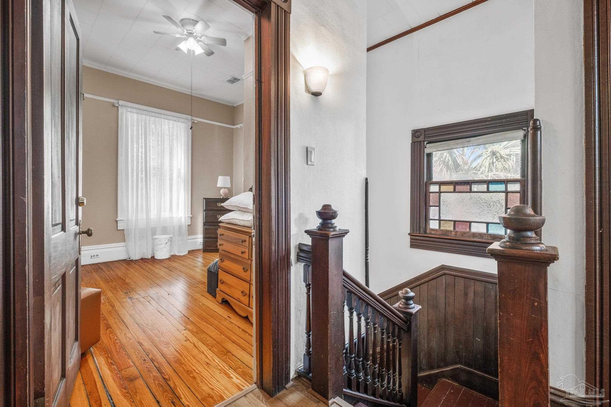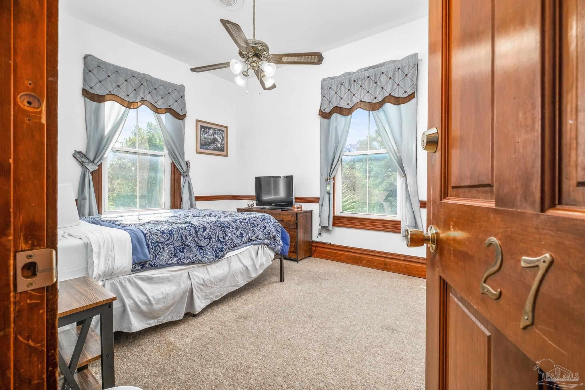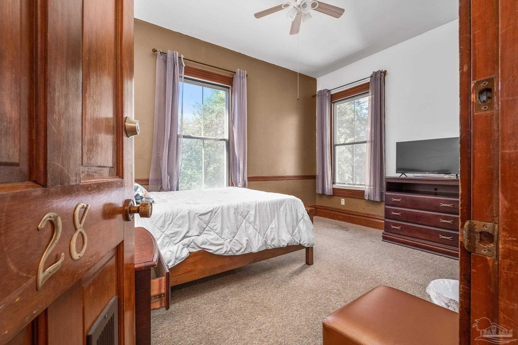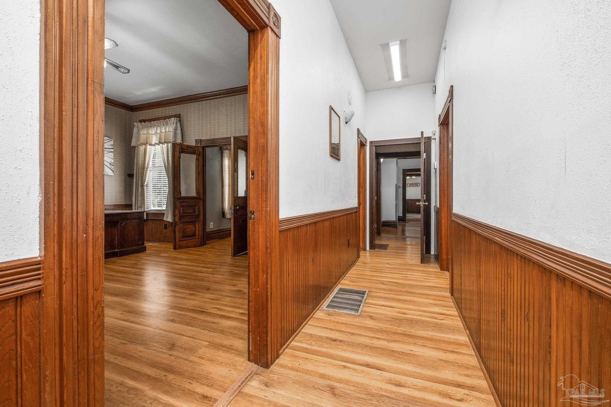 This hard to find two-story 1900 Victorian marvel boasts an impressive 13 bedrooms and 5 bathrooms(3 full 2 half), setting the stage for potentially grand living and endless possibilities. 2 Marbled double mantle fireplaces, one was a coal burning, 5 original stained glass windows, 10 ft ceilings. Home is built with red wood studs, thick solid wood chair railing. Potentially a bed & breakfast, or an esteemed law office, this residence. Elegant Craftsmanship. Step inside, and be welcomed by the majestic embrace of original oak and heart pine floors that infuse each corner with warmth and character. The spacious layout is complemented by an expansive butler's pantry, seamlessly fusing practicality with old-world sophistication. Embrace the Southern lifestyle on the inviting front porch, where gentle breezes beckon you to unwind while facing the South, sets the scene for sipping sweet tea enjoying Southern breezes. A side courtyard adorned with fruit trees, creating a serene oasis that perfectly complements the Victorian masterpiece. Convenience and Access. Ample Private off-street parking, adding to its practicality and desirability. With a history of serving as both distinguished office space and a successful Airbnb, this home embodies adaptability and prestige. A Neighborhood Steeped in History. Conveniently situated near Historic Downtown Pensacola and the picturesque Pensacola Bay, this potentially enchanting residence offers proximity to charming shops, gourmet dining, and cultural landmarks, enhancing your quality of life and embracing the essence of the area's rich heritage. Come and explore the blend of history, sophistication, and limitless potential that await within this iconic Victorian house. Some History on the Kirtz Building Build was completed 1860, major additions 1900 and 1973. upgrades: from 2004 through 2007. include 4 HVAC units 2024, added insulation, 22 windows, wiring 400 amp service and plumbing updates, some foam insulation, ,2021 roof.