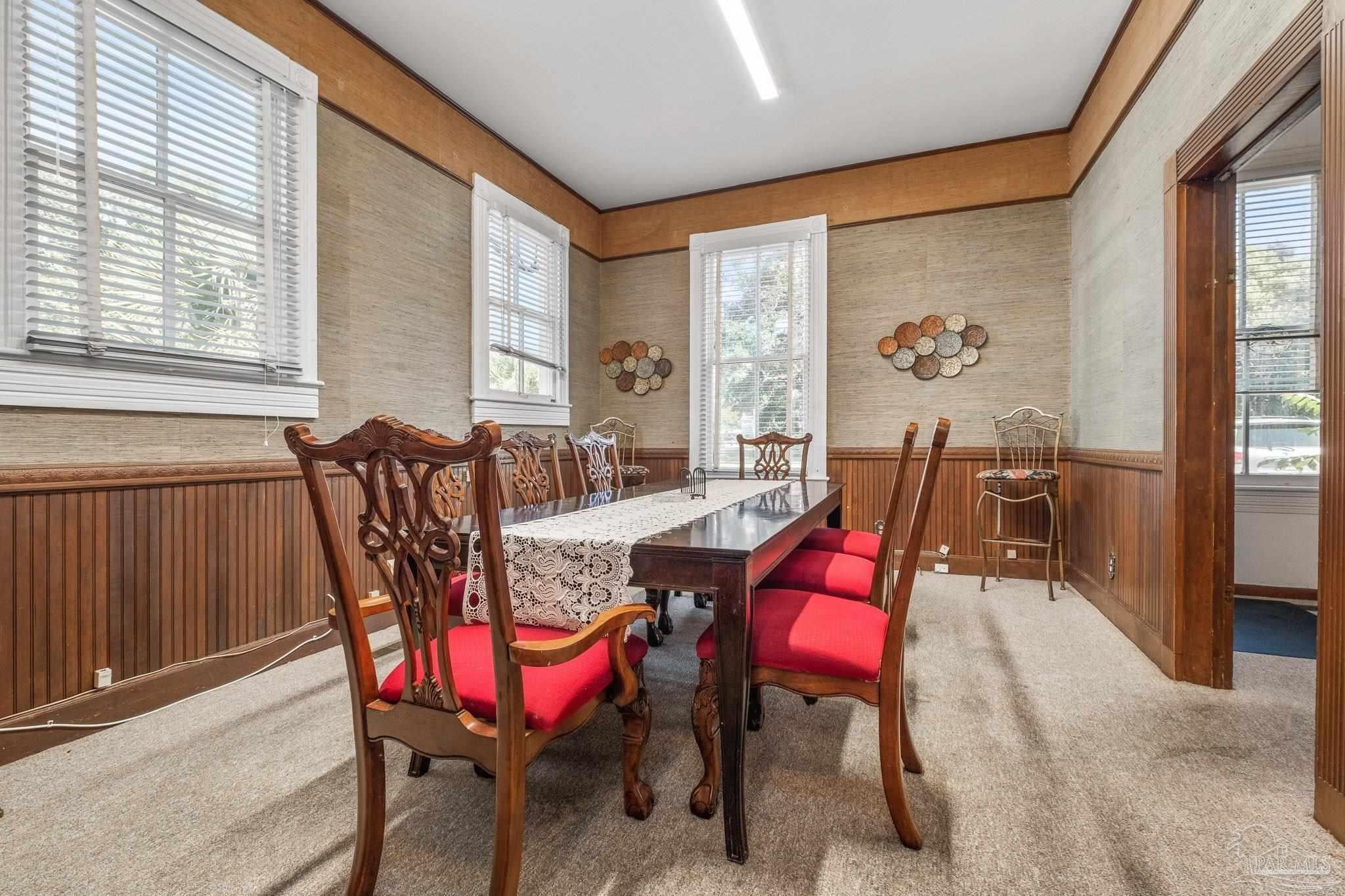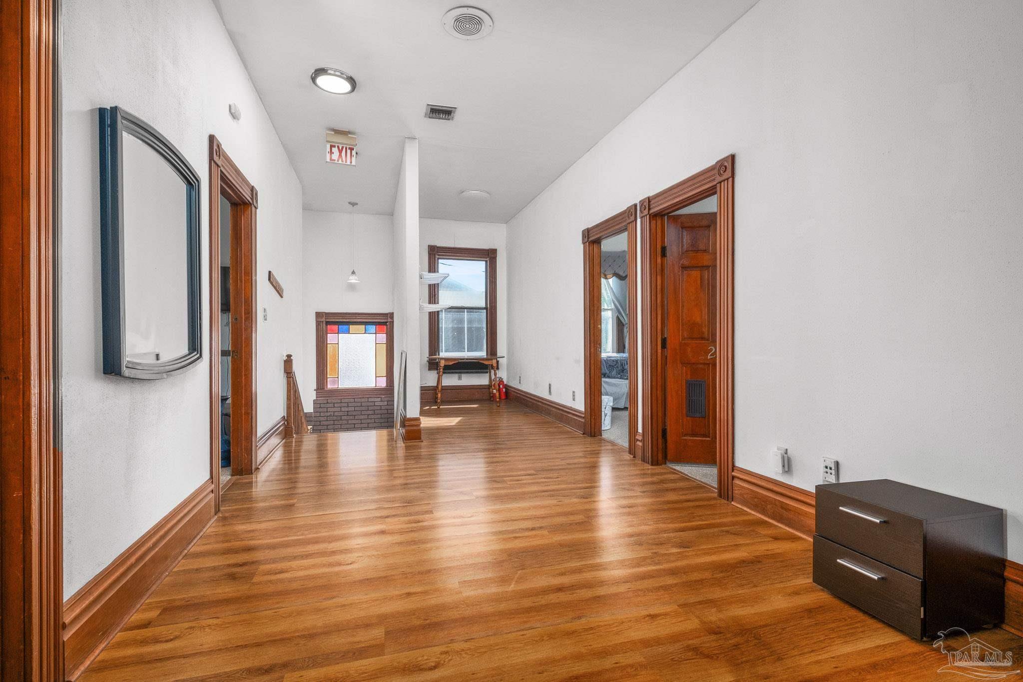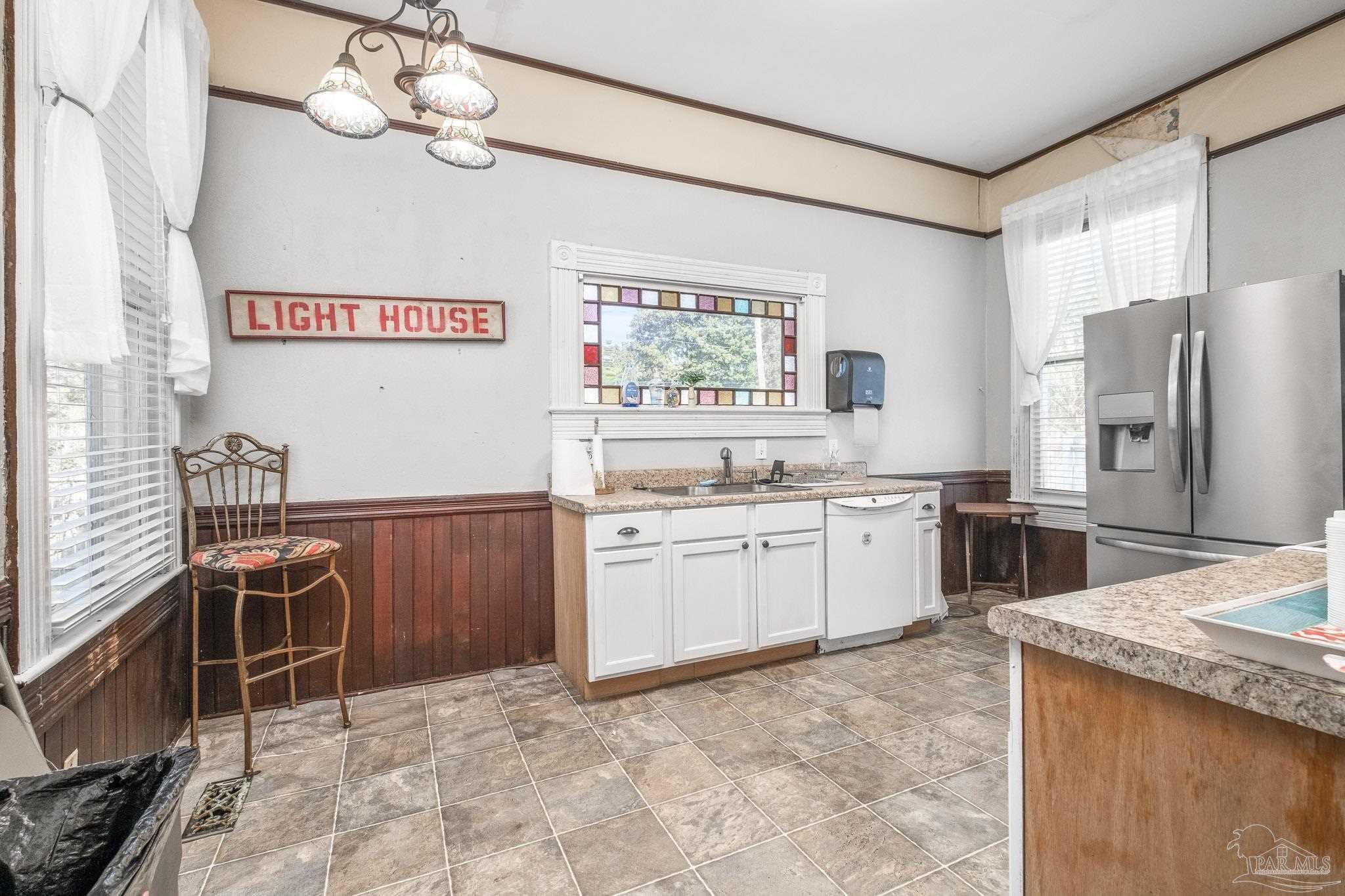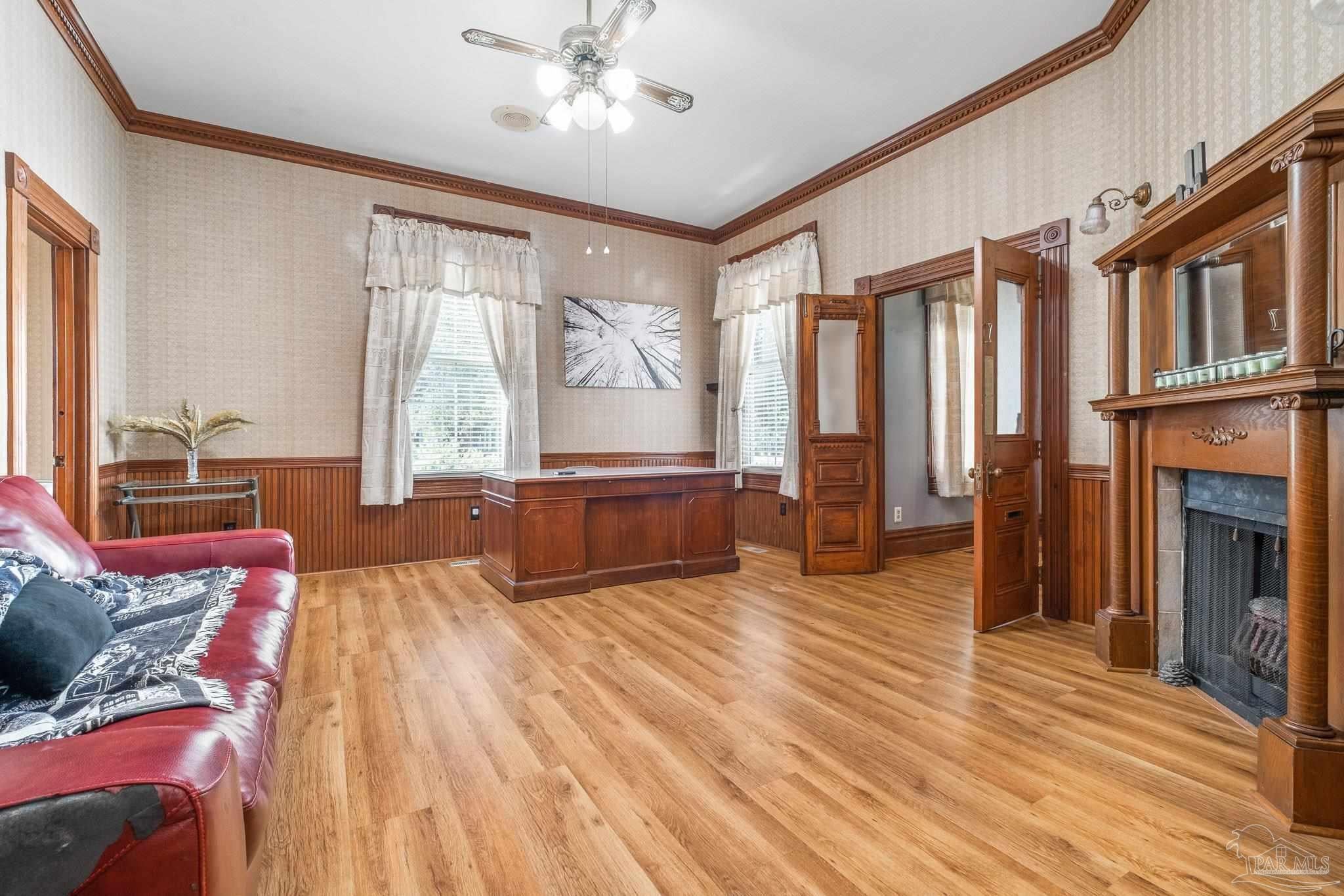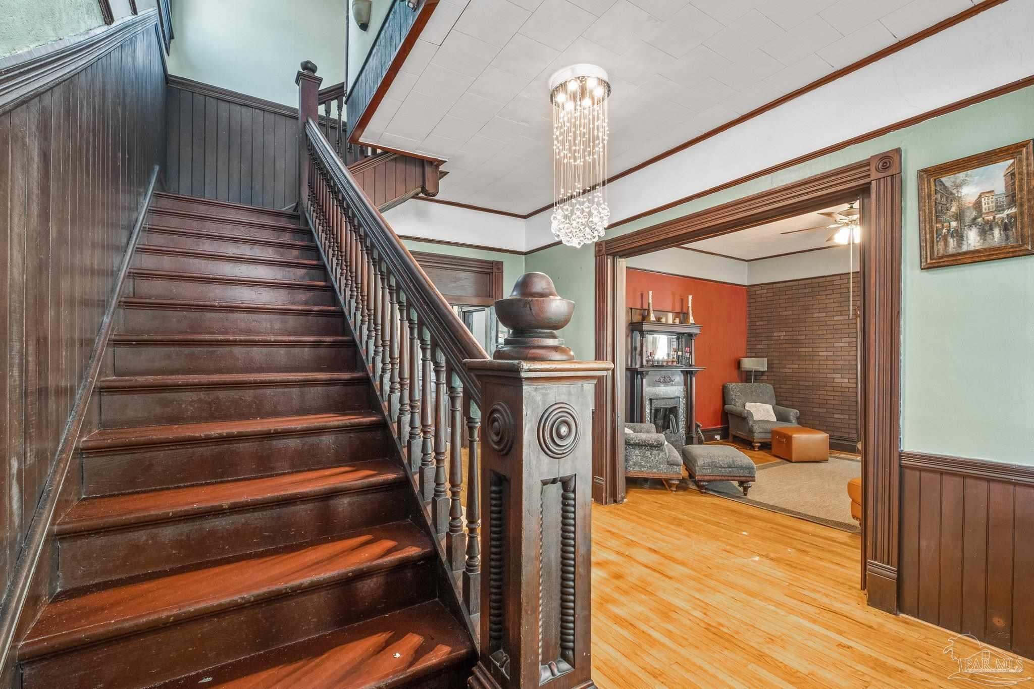 This hard to find two-story 1900 Victorian marvel boasts an impressive 13 bedrooms and 5 bathrooms(3 full 2 half), setting the stage for potentially grand living and endless possibilities. 2 Marbled double mantle fireplaces, one was a coal burning, 5 original stained glass windows, 10 ft ceilings. Home is built with red wood studs, thick solid wood chair railing. Potentially a bed & breakfast, or an esteemed law office, this residence. Elegant Craftsmanship. Step inside, and be welcomed by the majestic embrace of original oak and heart pine floors that infuse each corner with warmth and character. The spacious layout is complemented by an expansive butler's pantry, seamlessly fusing practicality with old-world sophistication. Embrace the Southern lifestyle on the inviting front porch, where gentle breezes beckon you to unwind while facing the South, sets the scene for sipping sweet tea enjoying Southern breezes. A side courtyard adorned with fruit trees, creating a serene oasis that perfectly complements the Victorian masterpiece. Convenience and Access. Ample Private off-street parking, adding to its practicality and desirability. With a history of serving as both distinguished office space and a successful Airbnb, this home embodies adaptability and prestige. A Neighborhood Steeped in History. Conveniently situated near Historic Downtown Pensacola and the picturesque Pensacola Bay, this potentially enchanting residence offers proximity to charming shops, gourmet dining, and cultural landmarks, enhancing your quality of life and embracing the essence of the area's rich heritage. Come and explore the blend of history, sophistication, and limitless potential that await within this iconic Victorian house. Some History on the Kirtz Building Build was completed 1860, major additions 1900 and 1973. upgrades: from 2004 through 2007. include 4 HVAC units 2024, added insulation, 22 windows, wiring 400 amp service and plumbing updates, some foam insulation, ,2021 roof.
