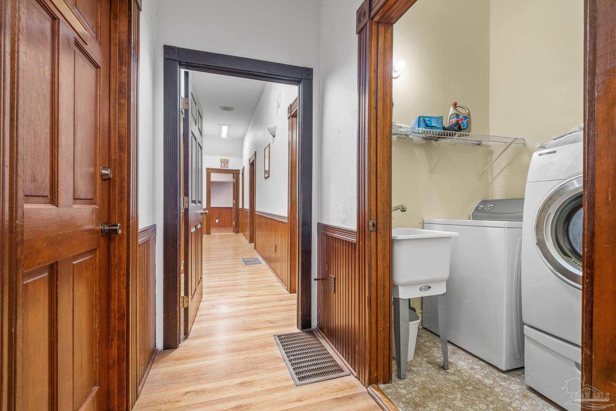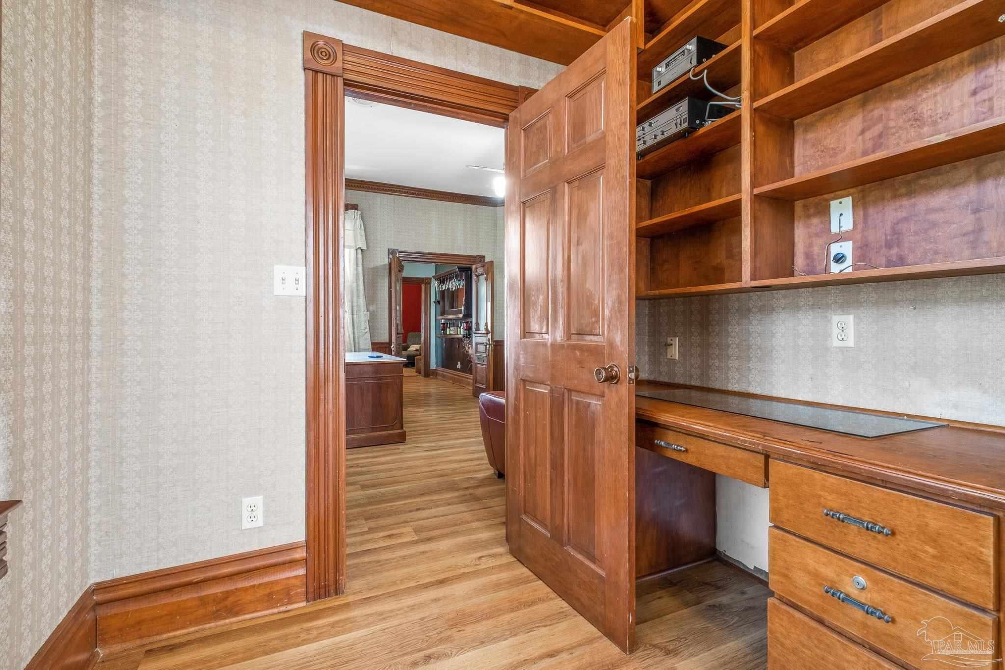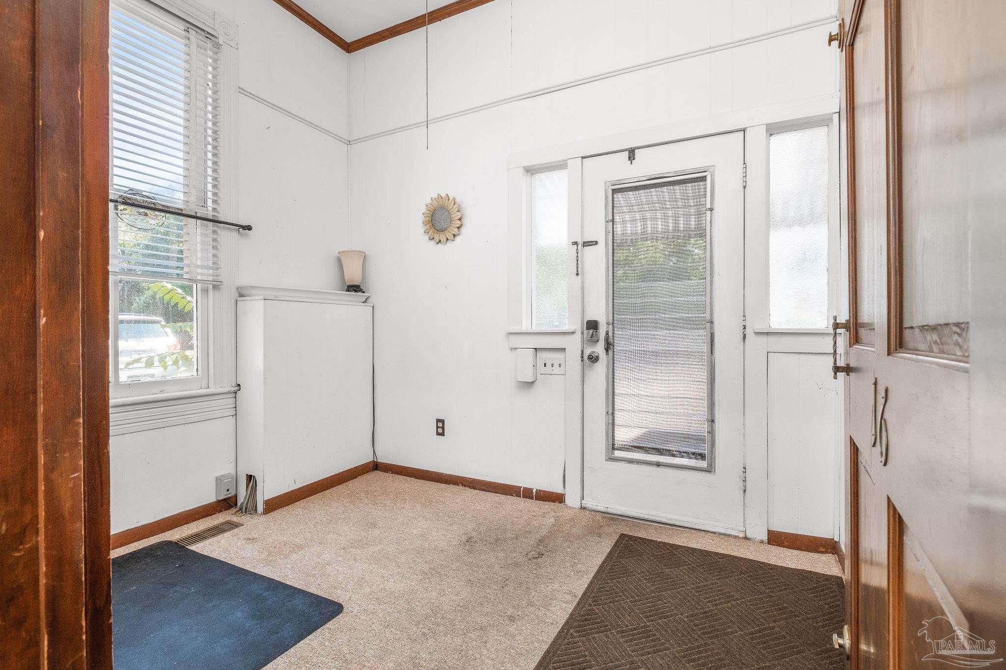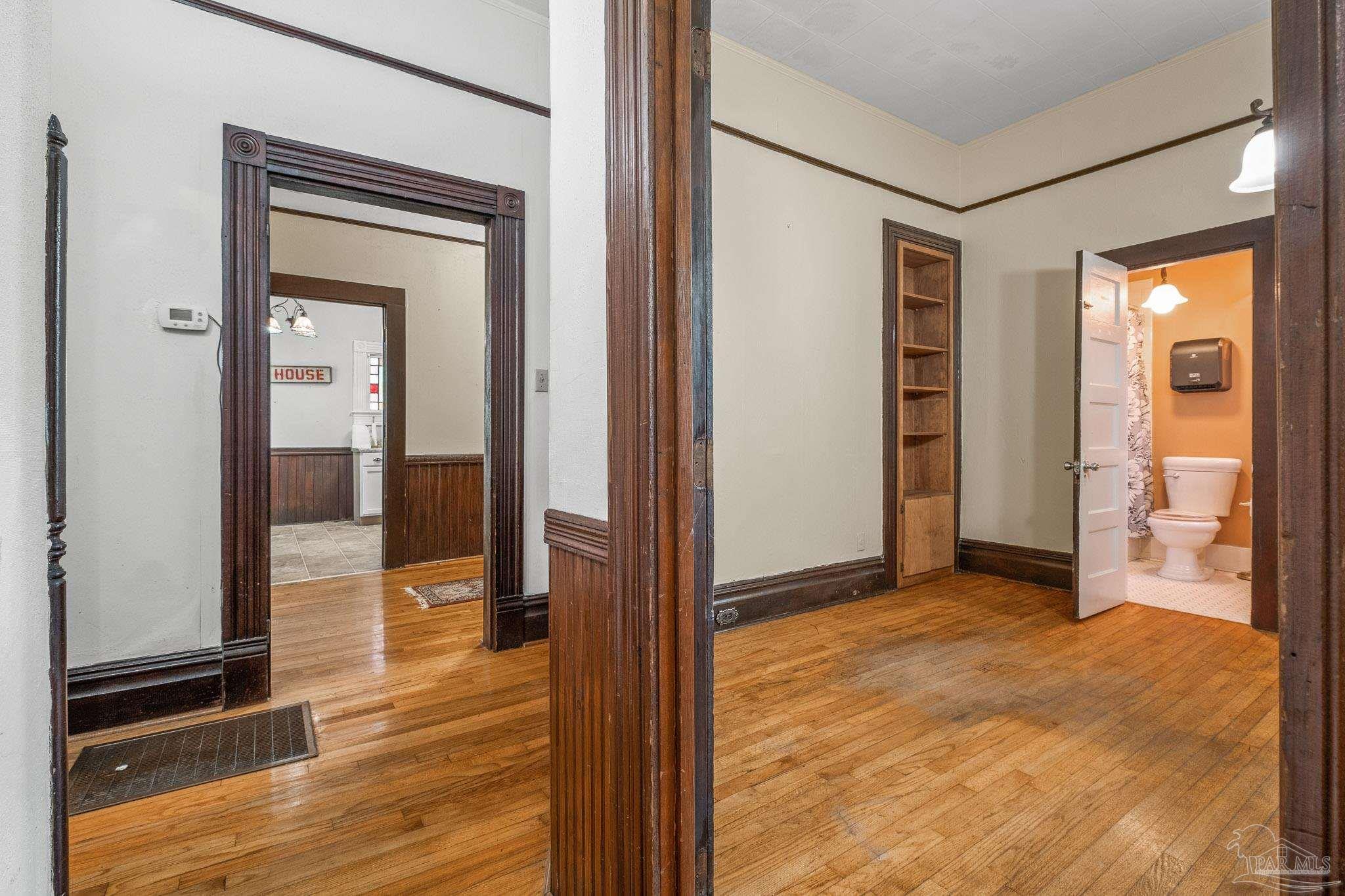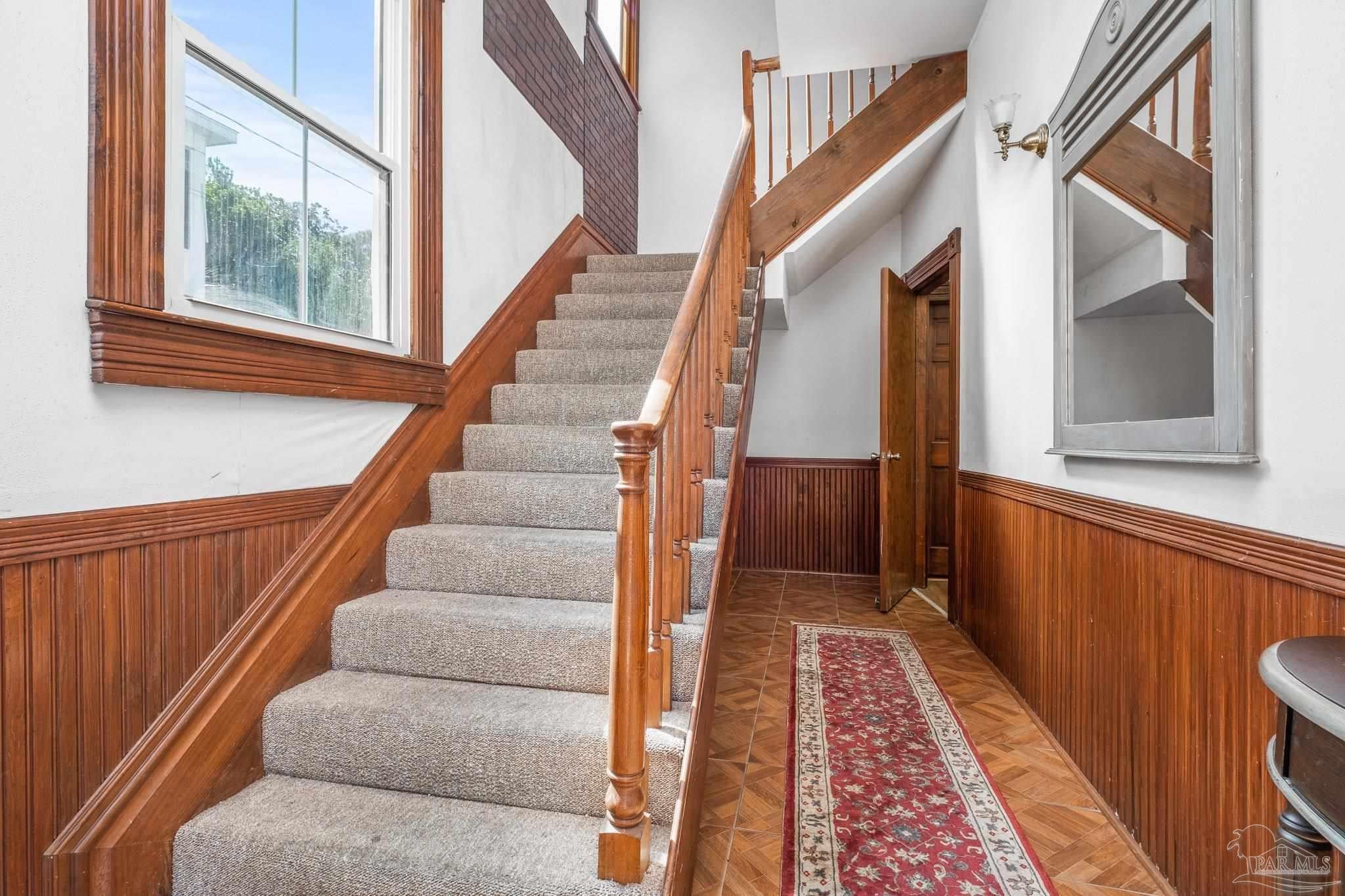 This hard to find two-story 1900 Victorian marvel boasts an impressive 13 bedrooms and 5 bathrooms(3 full 2 half), setting the stage for potentially grand living and endless possibilities. 2 Marbled double mantle fireplaces, one was a coal burning, 5 original stained glass windows, 10 ft ceilings. Home is built with red wood studs, thick solid wood chair railing. Potentially a bed & breakfast, or an esteemed law office, this residence. Elegant Craftsmanship. Step inside, and be welcomed by the majestic embrace of original oak and heart pine floors that infuse each corner with warmth and character. The spacious layout is complemented by an expansive butler's pantry, seamlessly fusing practicality with old-world sophistication. Embrace the Southern lifestyle on the inviting front porch, where gentle breezes beckon you to unwind while facing the South, sets the scene for sipping sweet tea enjoying Southern breezes. A side courtyard adorned with fruit trees, creating a serene oasis that perfectly complements the Victorian masterpiece. Convenience and Access. Ample Private off-street parking, adding to its practicality and desirability. With a history of serving as both distinguished office space and a successful Airbnb, this home embodies adaptability and prestige. A Neighborhood Steeped in History. Conveniently situated near Historic Downtown Pensacola and the picturesque Pensacola Bay, this potentially enchanting residence offers proximity to charming shops, gourmet dining, and cultural landmarks, enhancing your quality of life and embracing the essence of the area's rich heritage. Come and explore the blend of history, sophistication, and limitless potential that await within this iconic Victorian house. Some History on the Kirtz Building Build was completed 1860, major additions 1900 and 1973. upgrades: from 2004 through 2007. include 4 HVAC units 2024, added insulation, 22 windows, wiring 400 amp service and plumbing updates, some foam insulation, ,2021 roof.