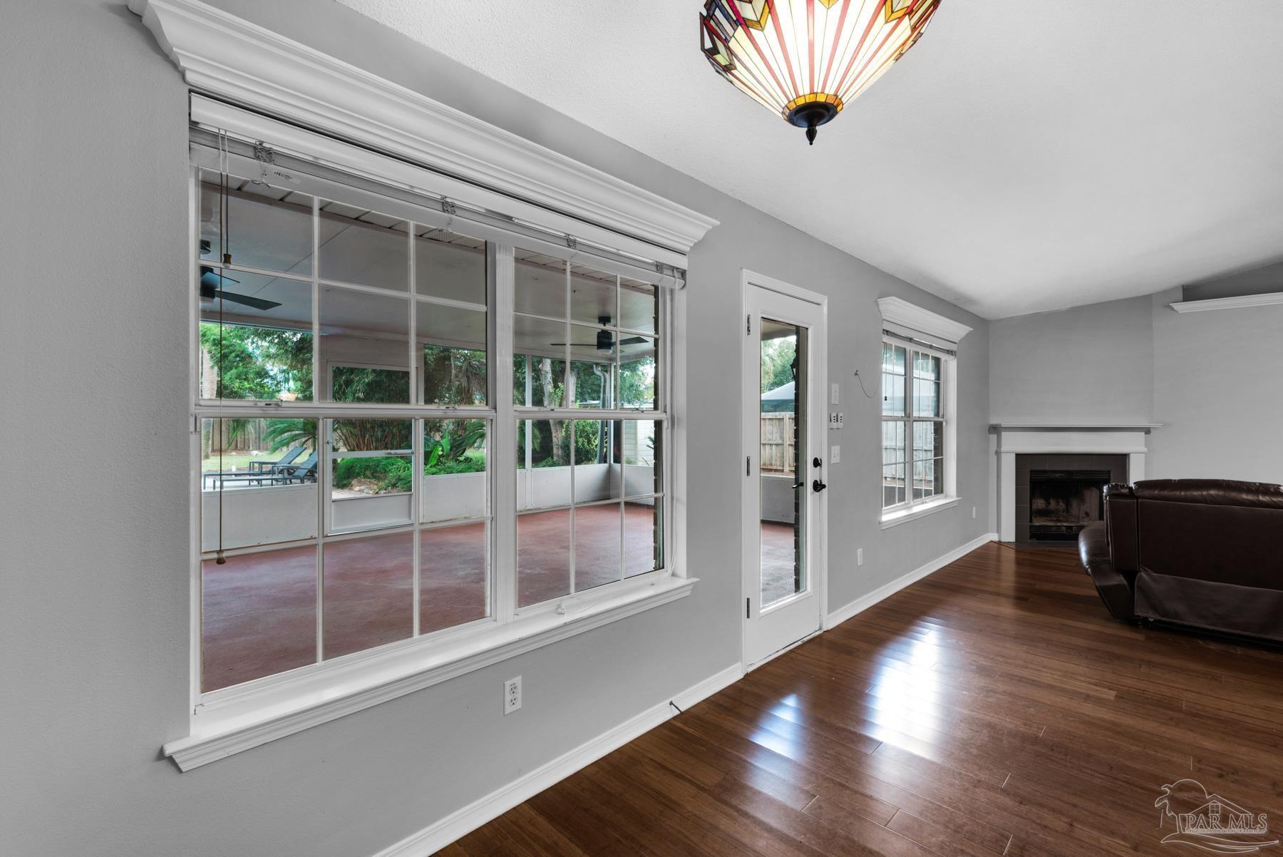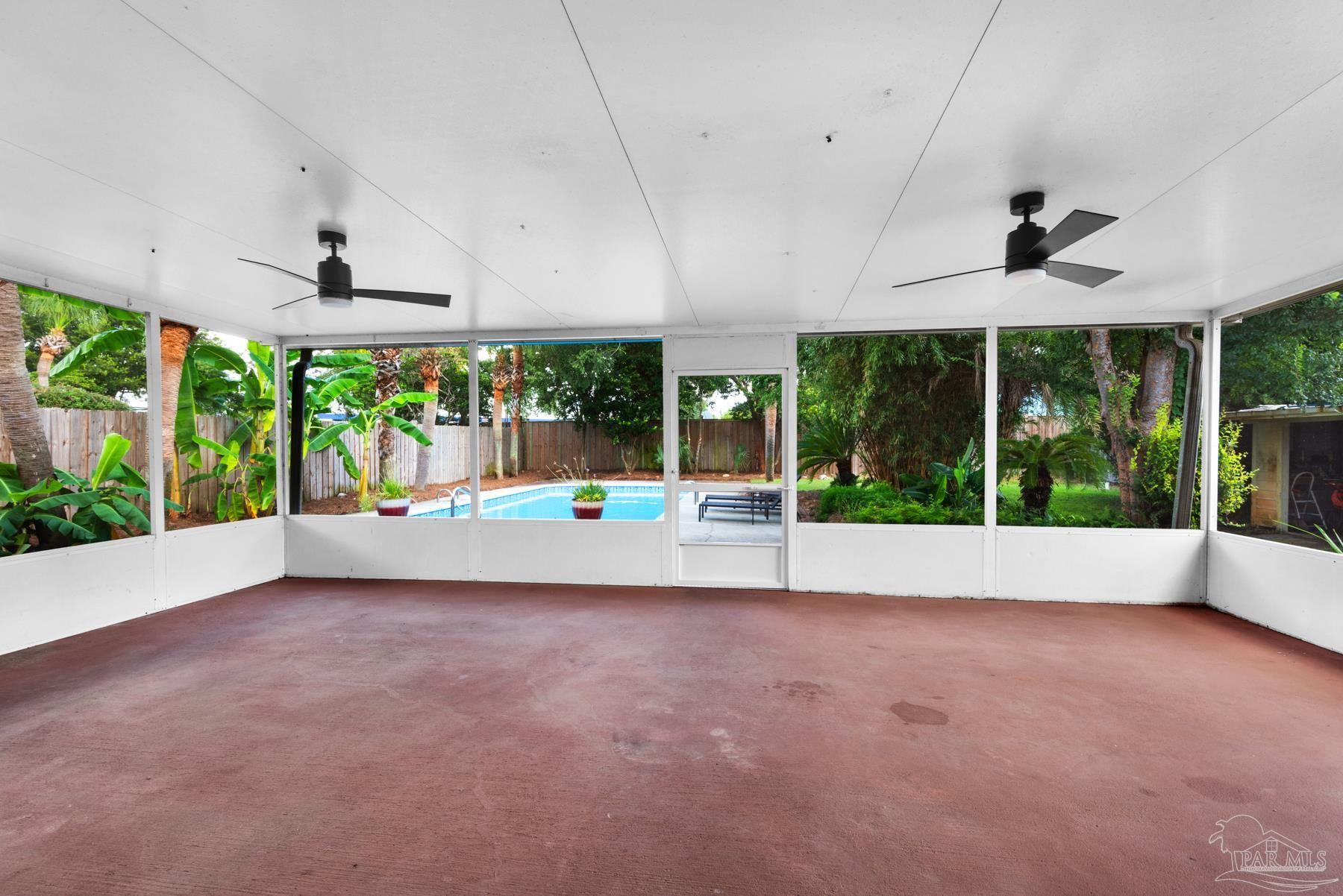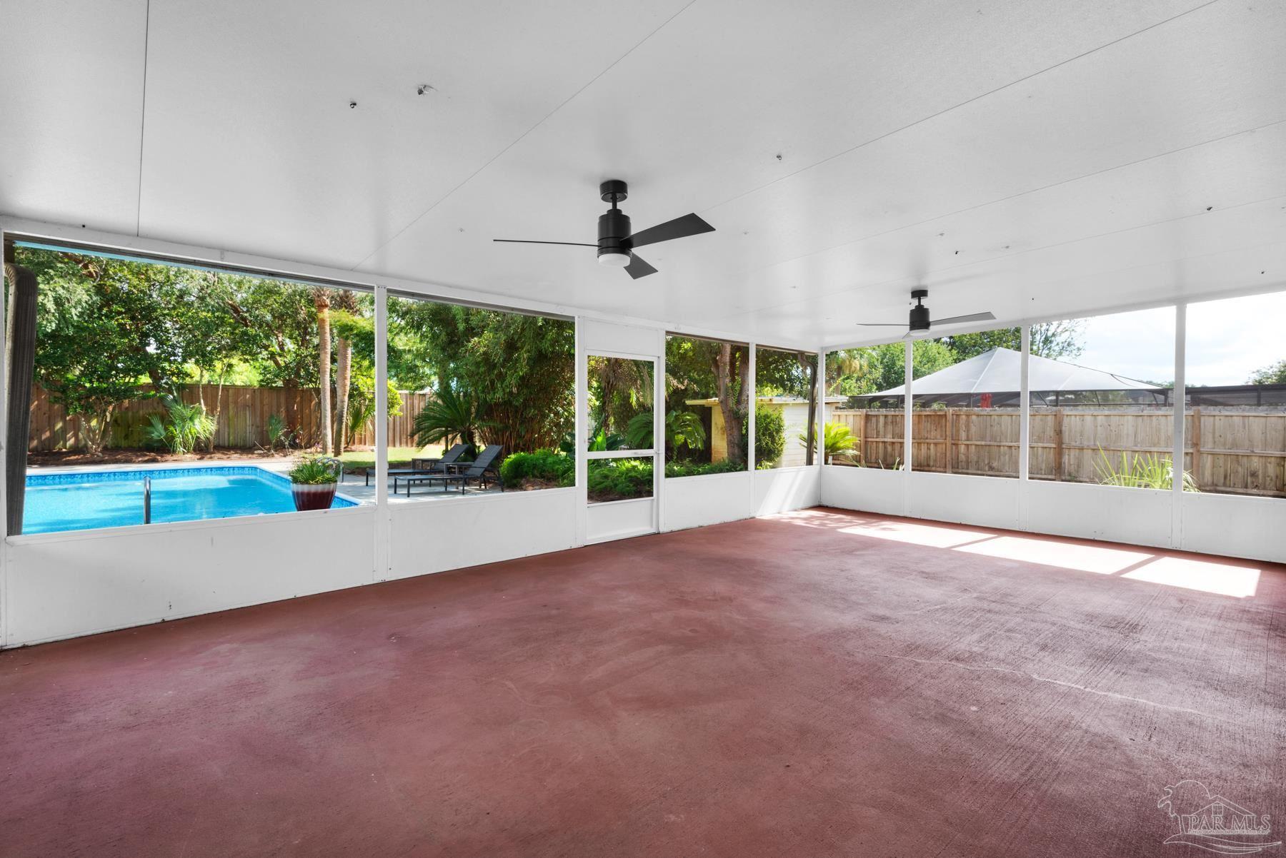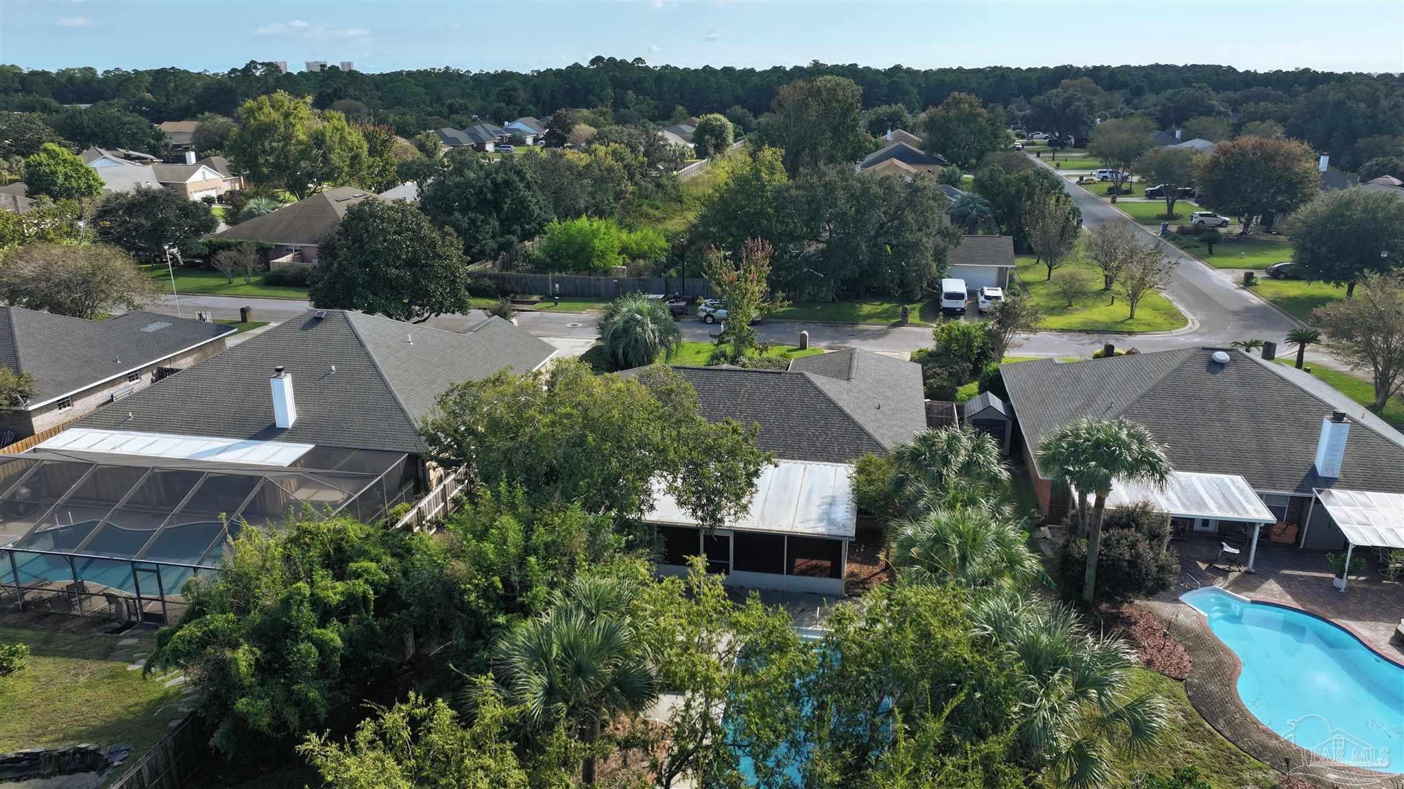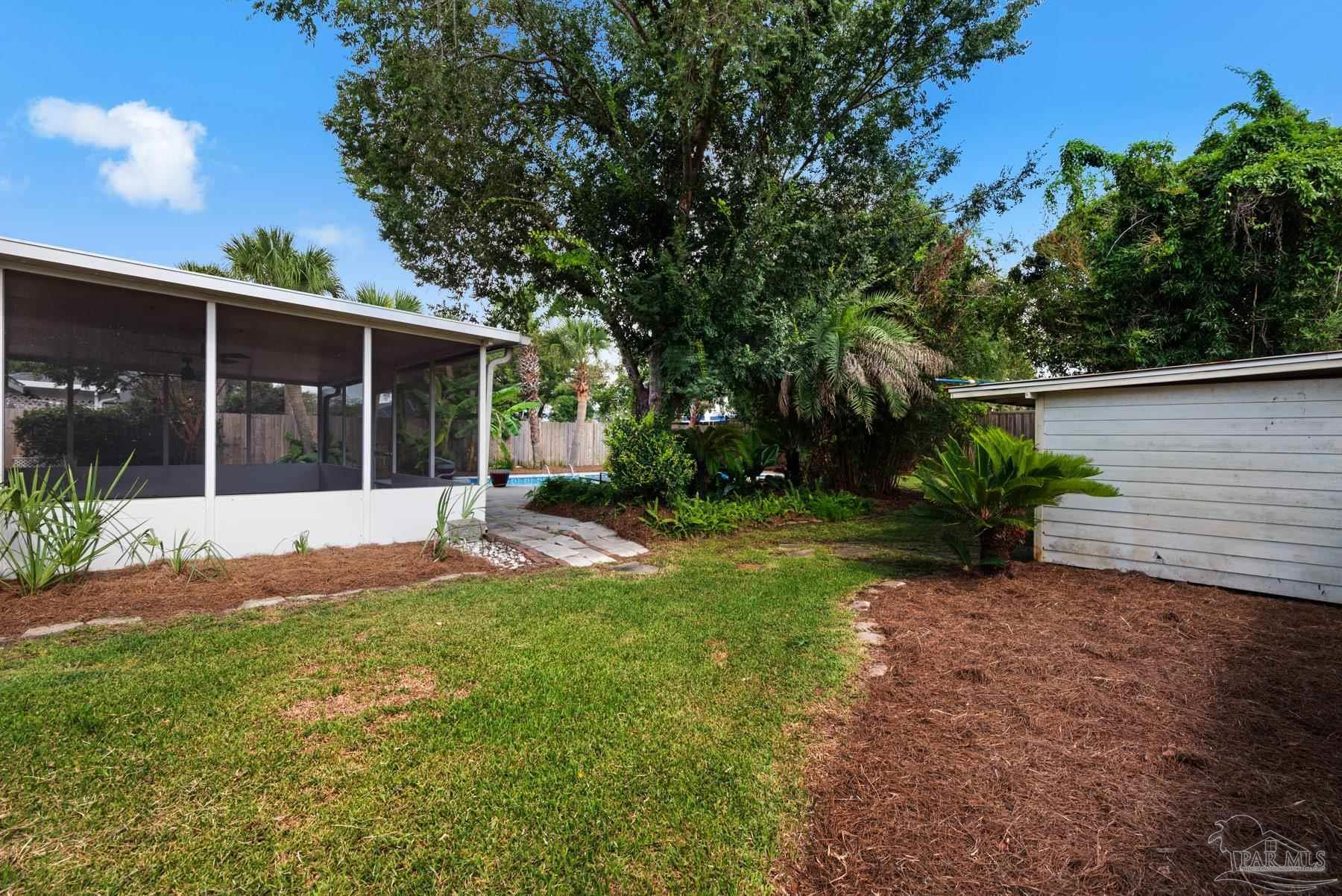PRICED WELL BELOW VALUE TO ALLOW FOR UPDATES! Live the dream in highly sought-after Crane Cove! This beautifully maintained 3-bedroom, 2-bath contemporary brick home features a sparkling pool surrounded by lush tropical landscaping and vibrant greenery — your own private paradise perfect for year-round entertaining and enjoyment. This kind of idyllic outdoor oasis would take years to recreate. Relax in the comfort of the expansive 448 sq ft screened patio, ideal for poolside lounging or dining al fresco! Inside, the split floor plan offers privacy and plenty of open space, with a spacious primary suite, featuring crown molding, two walk-in closets, dual vanities, a garden tub, separate shower and water closet. Natural light fills the great room, highlighted by a vaulted ceiling and a cozy corner fireplace. The kitchen and breakfast nook overlook the pool and patio, creating a peaceful and inviting atmosphere. The kitchen includes an electric range, microwave, and dishwasher. A convenient hop-up breakfast bar adds seating and functionality. Freshly painted formal dining and front bonus room that offer versatile space, perfect for a home office or extra lounge area. Hardwood and tile flooring throughout provide timeless style and easy upkeep. Key updates- new architectural roof in 2023, new pool liner in 2024, seasonal pool cover / leaf net in 2024, and pool pump motor and Polaris were replaced in 2024.In addition, Govee Permanent Outdoor (programmable) Lights were installed just in time for Holiday Season. Large double-car garage, extra parking, sprinkler system, well, and a storage/gardening shed. Crane Cove offers underground utilities, street lighting and traffic light access for ease of entry. Located in the top-rated Gulf Breeze school district and just 10 minutes from Pensacola Beach and 5 minutes from Gulf Breeze Hospital and the Andrews Institute, this location blends comfort, convenience, and coastal living. Don't miss this piece of paradise in Gulf Breeze!