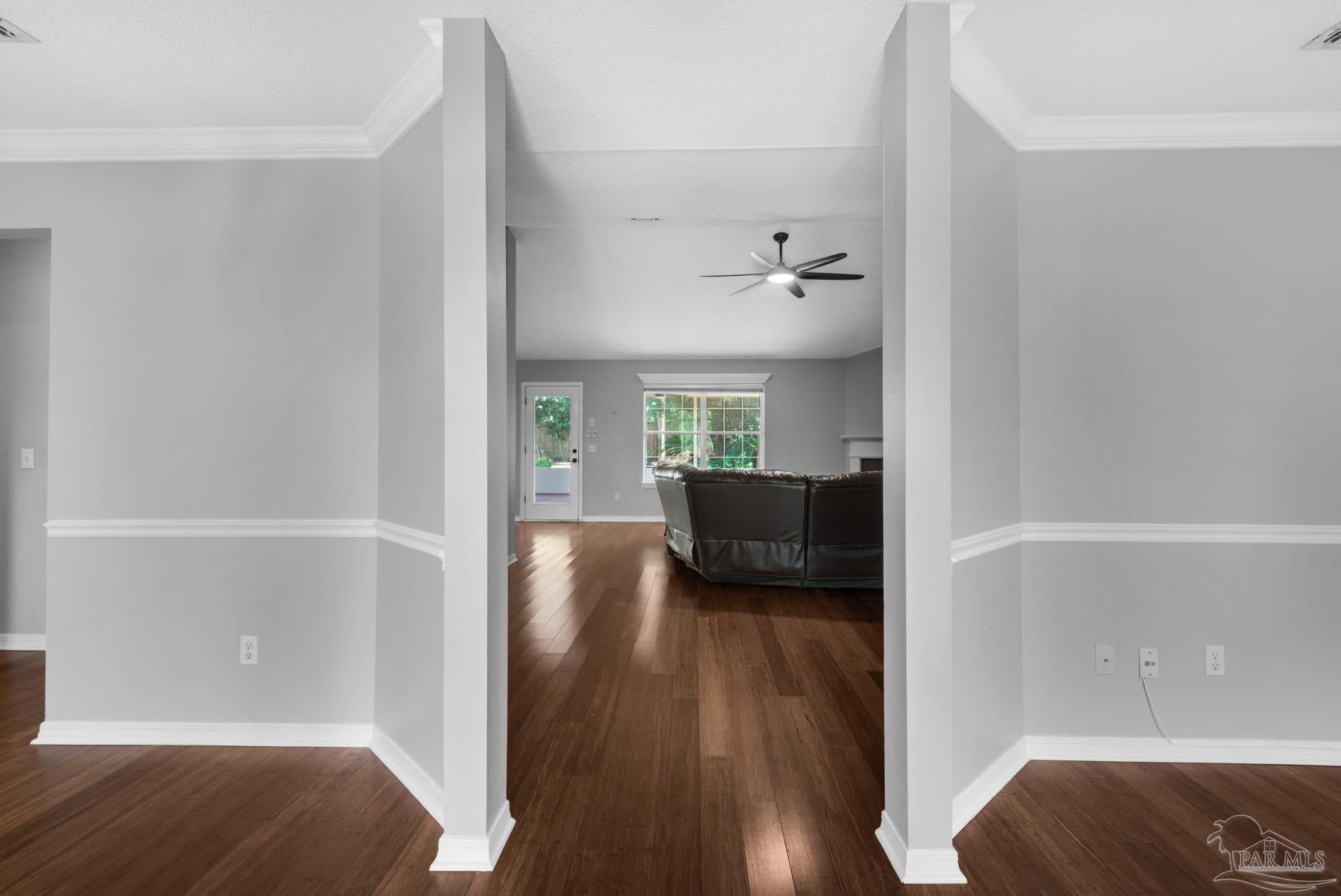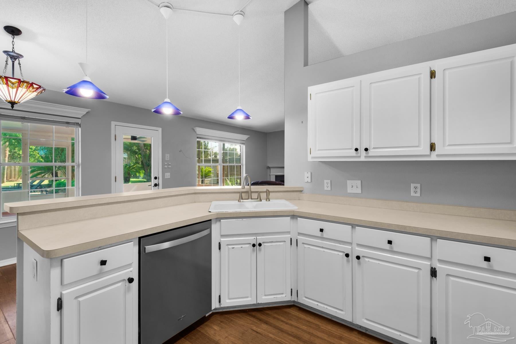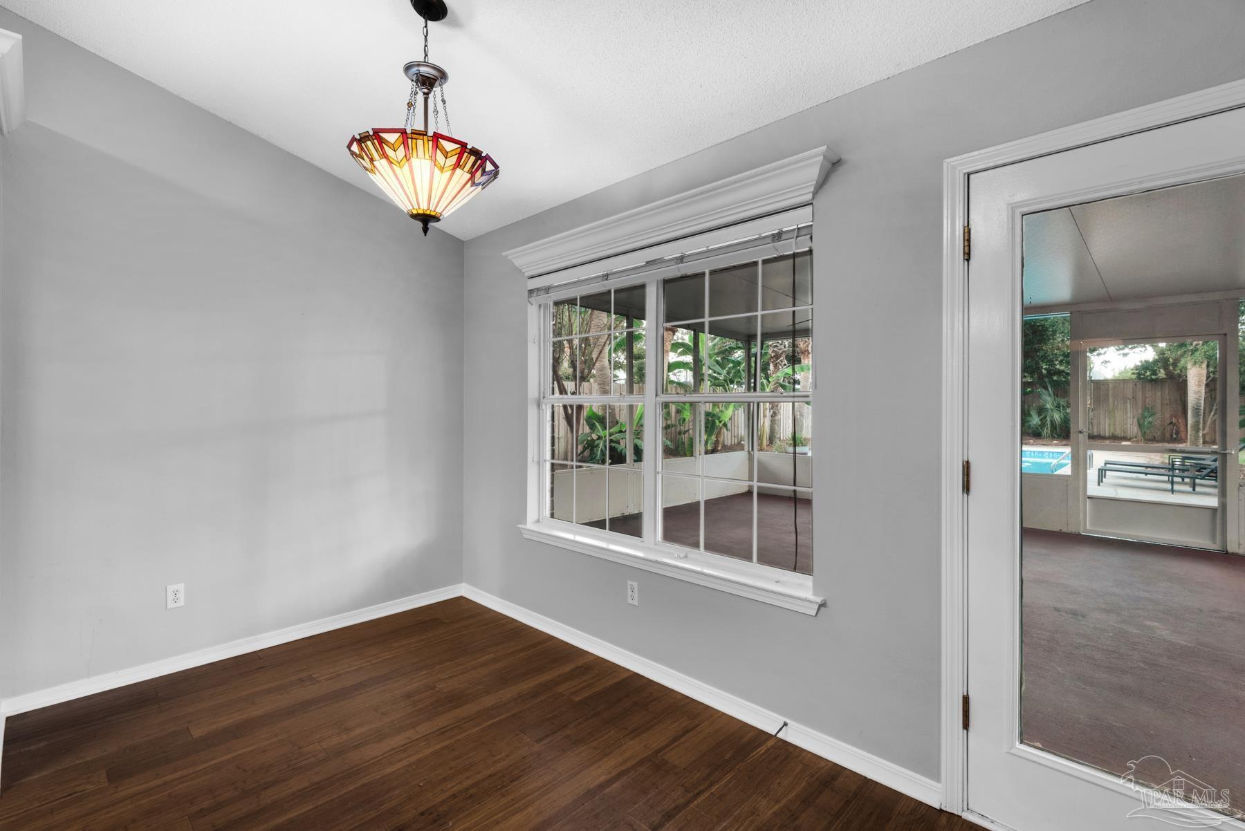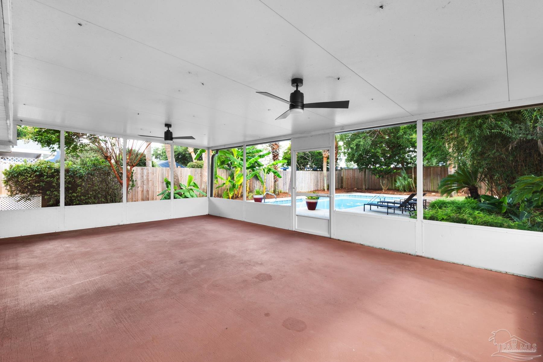 PRICED WELL BELOW VALUE TO ALLOW FOR UPDATES! Live the dream in highly sought-after Crane Cove! This beautifully maintained 3-bedroom, 2-bath contemporary brick home features a sparkling pool surrounded by lush tropical landscaping and vibrant greenery — your own private paradise perfect for year-round entertaining and enjoyment. This kind of idyllic outdoor oasis would take years to recreate. Relax in the comfort of the expansive 448 sq ft screened patio, ideal for poolside lounging or dining al fresco! Inside, the split floor plan offers privacy and plenty of open space, with a spacious primary suite, featuring crown molding, two walk-in closets, dual vanities, a garden tub, separate shower and water closet. Natural light fills the great room, highlighted by a vaulted ceiling and a cozy corner fireplace. The kitchen and breakfast nook overlook the pool and patio, creating a peaceful and inviting atmosphere. The kitchen includes an electric range, microwave, and dishwasher. A convenient hop-up breakfast bar adds seating and functionality. Freshly painted formal dining and front bonus room that offer versatile space, perfect for a home office or extra lounge area. Hardwood and tile flooring throughout provide timeless style and easy upkeep. Key updates- new architectural roof in 2023, new pool liner in 2024, seasonal pool cover / leaf net in 2024, and pool pump motor and Polaris were replaced in 2024.In addition, Govee Permanent Outdoor (programmable) Lights were installed just in time for Holiday Season. Large double-car garage, extra parking, sprinkler system, well, and a storage/gardening shed. Crane Cove offers underground utilities, street lighting and traffic light access for ease of entry. Located in the top-rated Gulf Breeze school district and just 10 minutes from Pensacola Beach and 5 minutes from Gulf Breeze Hospital and the Andrews Institute, this location blends comfort, convenience, and coastal living. Don't miss this piece of paradise in Gulf Breeze!