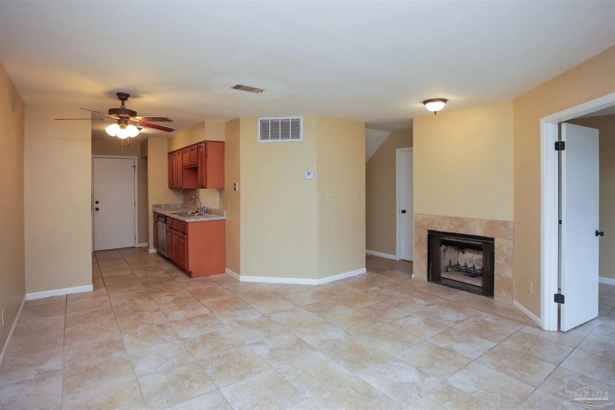 FANTASTIC INVESTMENT OPPORTUNITY or starter condo! First-floor, 2-bedroom, 1-bath condo, 902 sq ft located in NE Pensacola. Unfurnished, featuring tile flooring throughout, fireplace, kitchen equipped with dishwasher, stove, refrigerator, and in-unit washer and dryer. Includes a one-car garage plus an additional parking space. Community Amenities: Access to a common pool, with lawn care and trash service included; HOA-managed grounds maintenance. NO Short-Term Rentals, but long term rental information available. Won't last long.