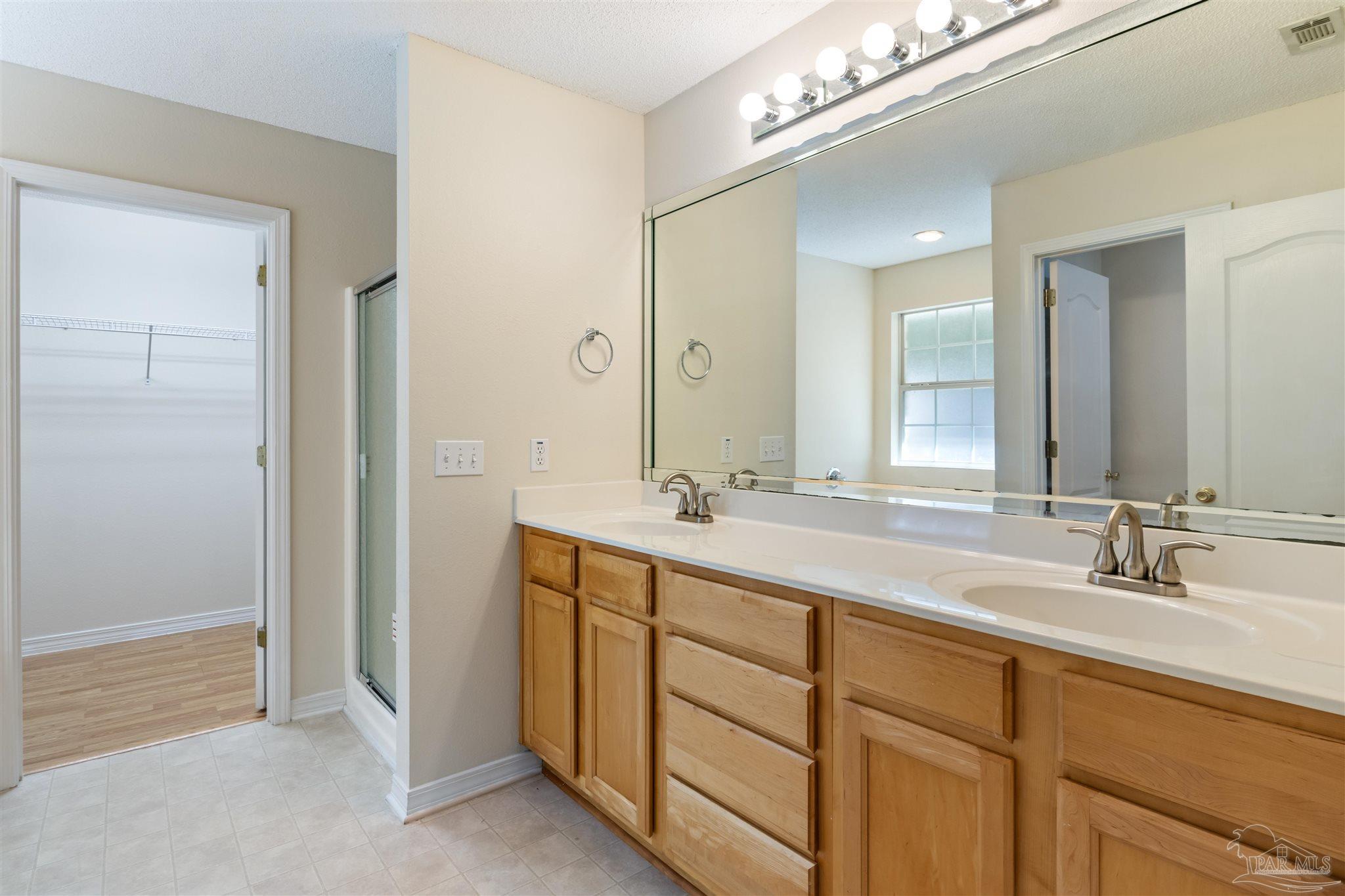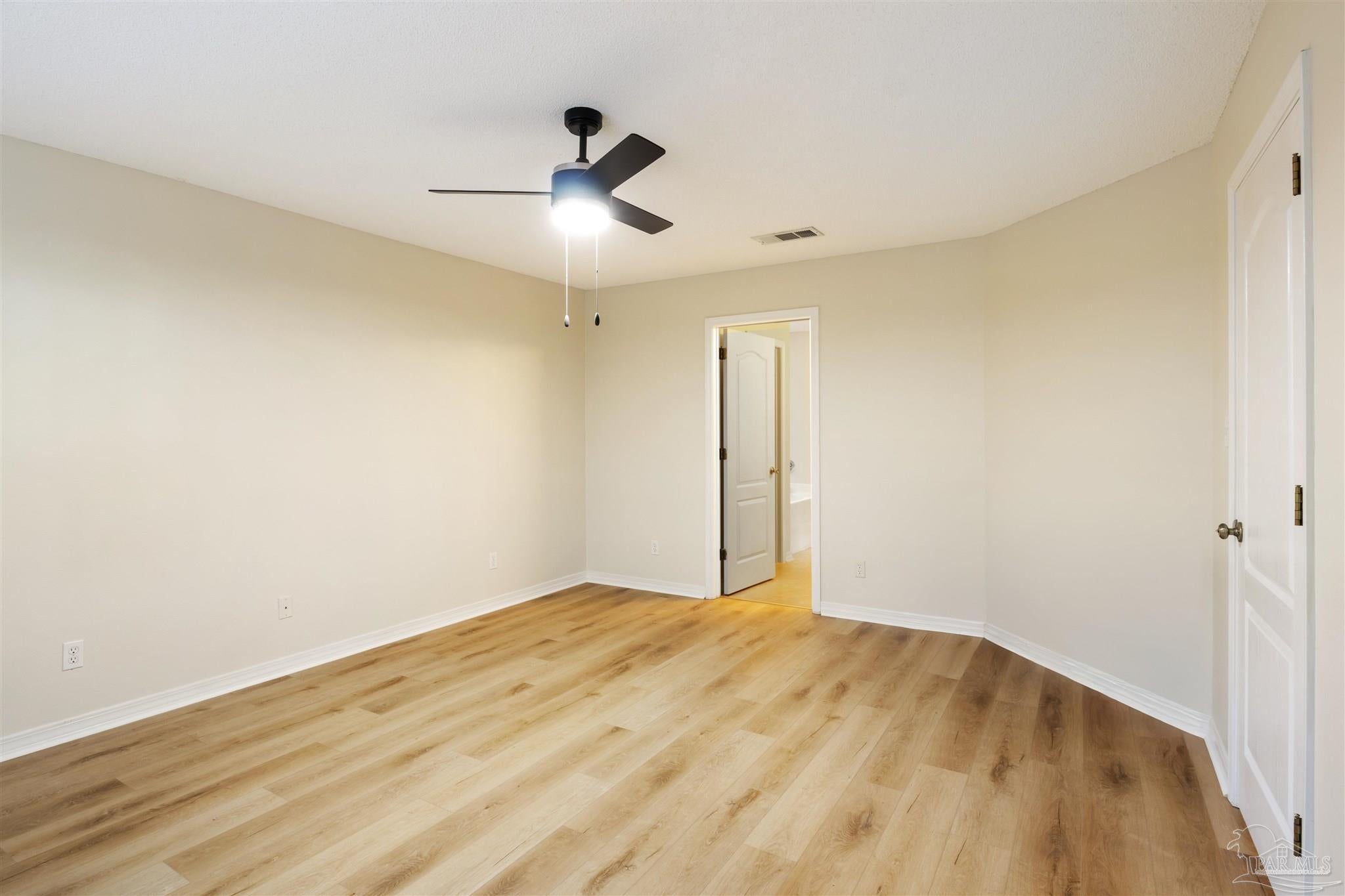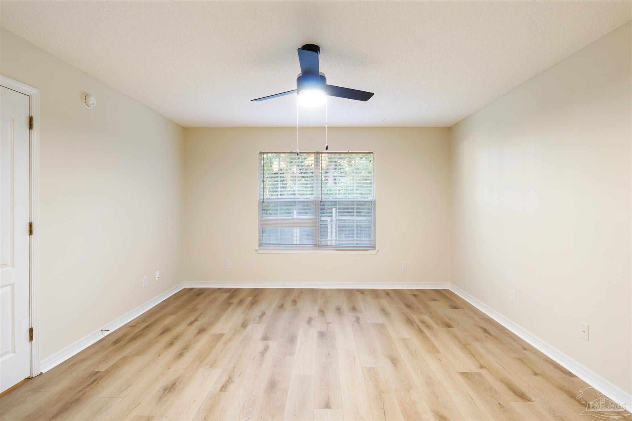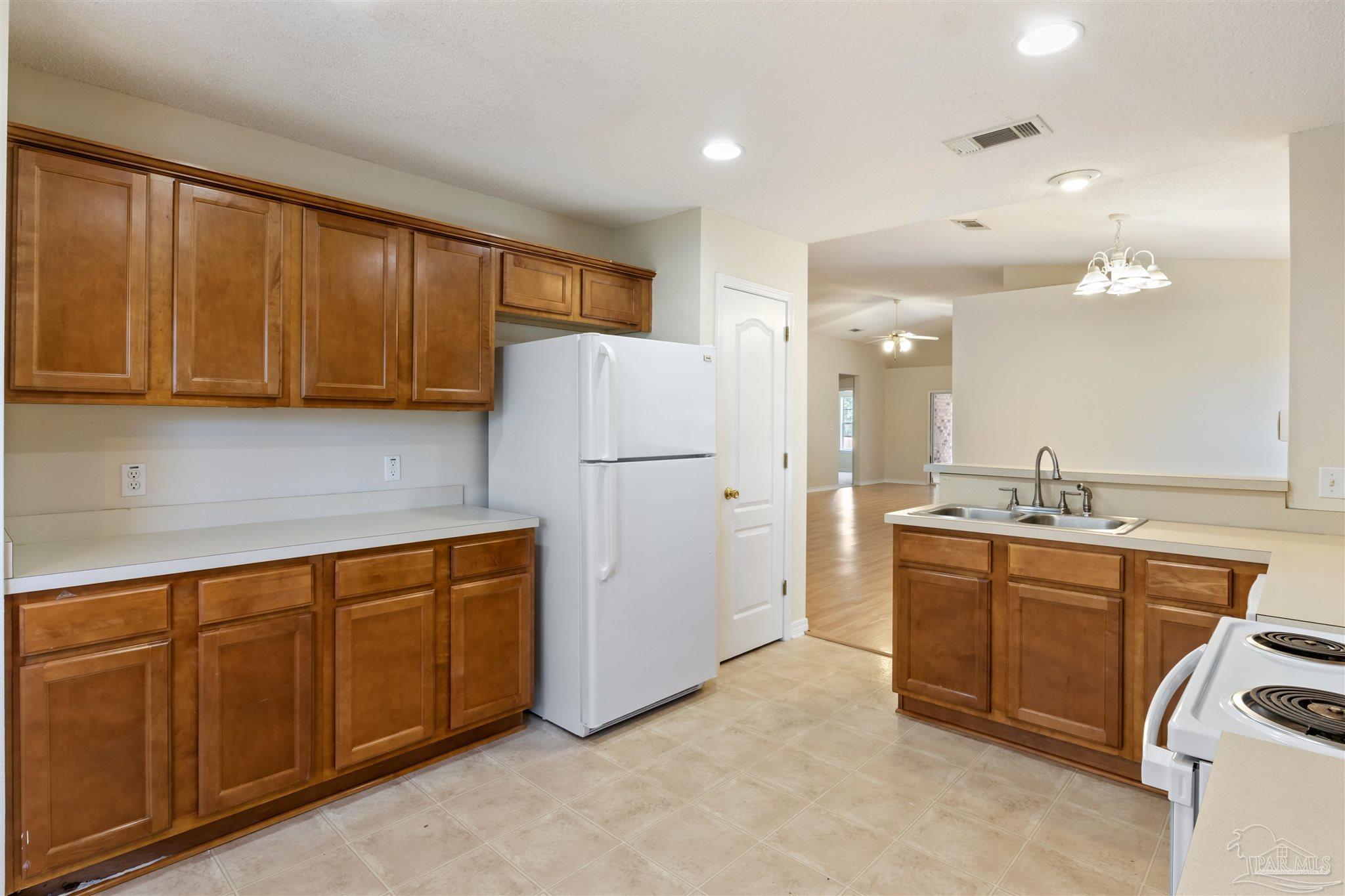 This contemporary 4-bedroom, 2-bathroom home in the Estates at Emerald Shores has been refreshed with brand-new luxury vinyl plank (LVP) flooring in the living areas and primary bedroom! Conveniently located in southwest Pensacola, just minutes from the back gate of NAS, this spacious home offers over 1,900 square feet of comfortable living space. Step inside to a bright, open living room featuring vaulted ceilings, plant ledges, and sliding glass doors that open to a covered back porch perfect for relaxing or entertaining. The updated kitchen provides ample cabinet and counter space, an electric stove, refrigerator, and dishwasher, plus a cozy breakfast nook. A separate formal dining room offers additional space for gatherings. The primary suite boasts new LVP flooring, a ceiling fan, and an ensuite bathroom with a double vanity, garden tub, separate shower, and a large walk-in closet. Three additional bedrooms with generous closets share a full hall bathroom. Enjoy the fully fenced backyard that extends beyond the back fence, offering even more outdoor space than meets the eye. A 2-car garage and no HOA dues make this move-in-ready home an excellent find in a well-established neighborhood.