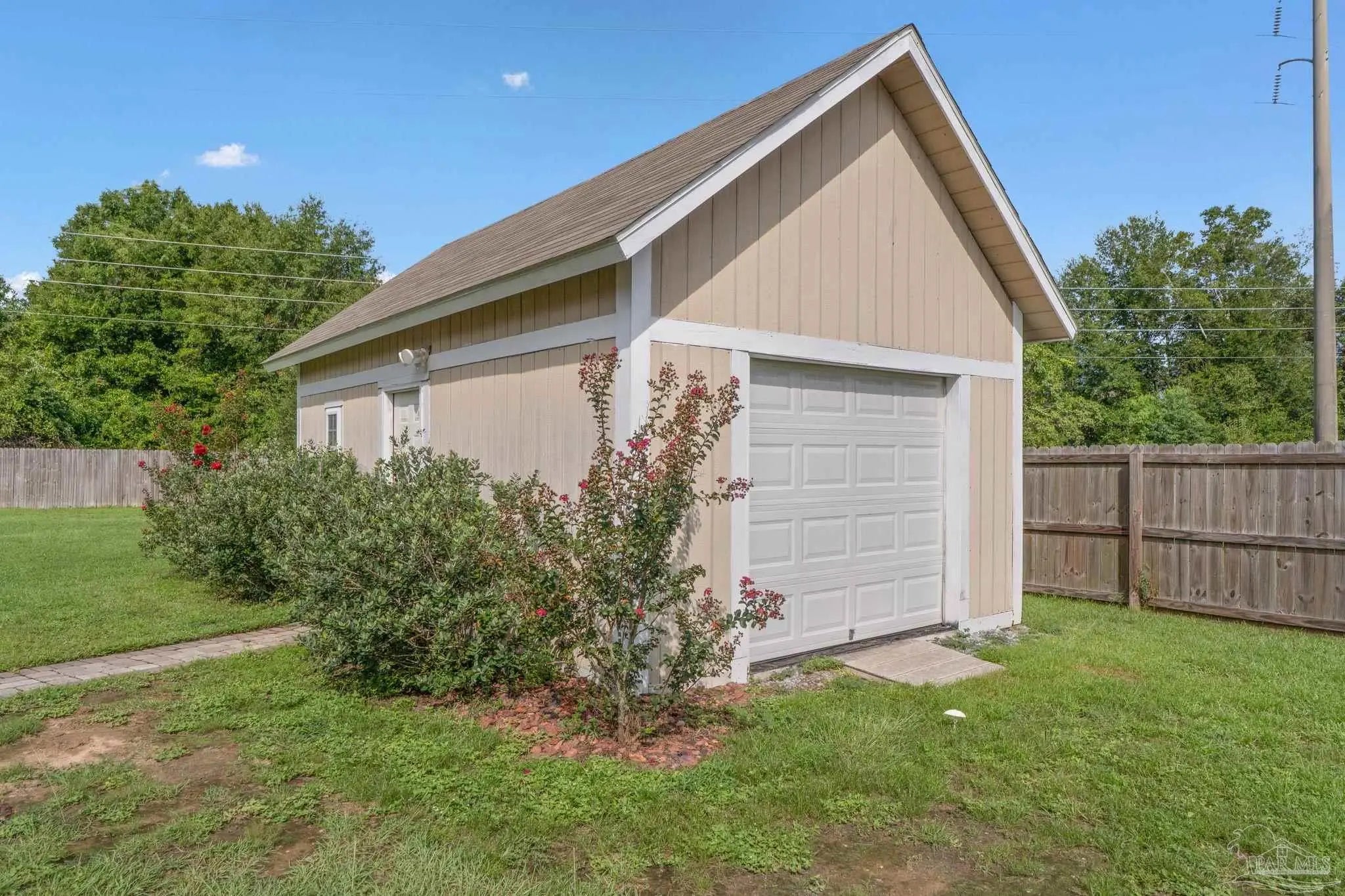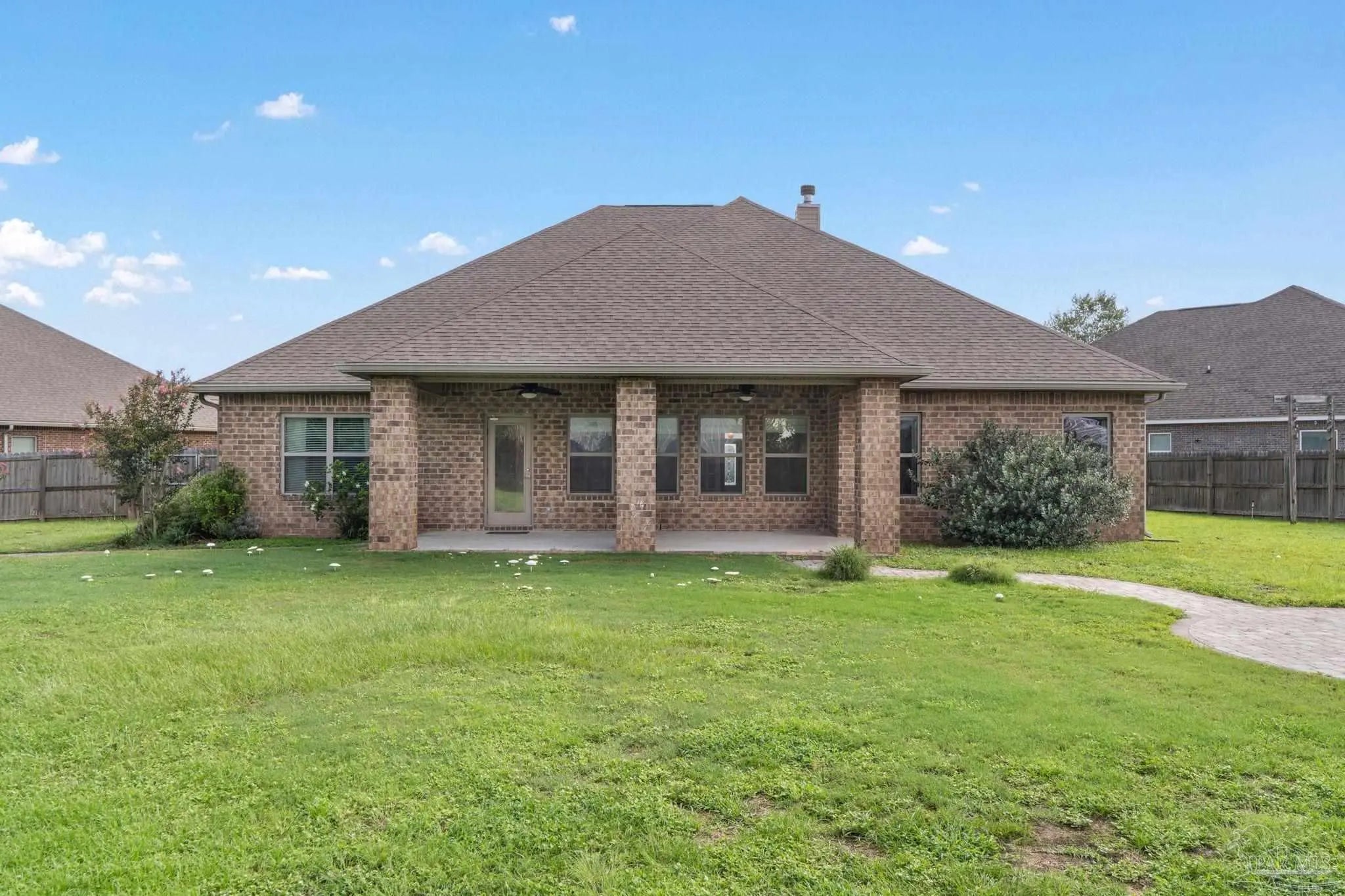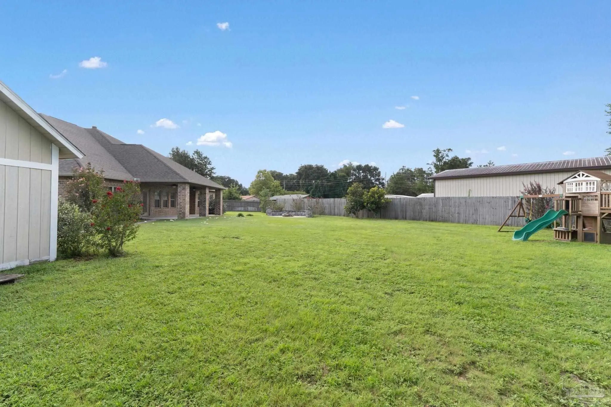 Welcome home to this stunning McKinsey Model located in Spencer’s Ridge, one of Pace’s most desirable locations! This spacious 5-bedroom, 3-bath home sits on a beautifully landscaped half-acre lot, offering the perfect blend of comfort, functionality, and outdoor living. Step inside to find an inviting open floor plan featuring high ceilings, elegant finishes, and abundant natural light. The extended playroom/bonus room includes custom built-in bookcases, making it an ideal space for a media room, home office, or children’s retreat. The gourmet kitchen boasts granite countertops, stainless steel appliances, a large island with breakfast bar, and a walk-in pantry—perfect for entertaining family and friends. The master suite is a true retreat with a spacious ensuite bath featuring dual vanities, a soaking tub, separate shower, and a generous walk-in closet. Enjoy the Florida lifestyle in your private backyard oasis! Relax around the custom firepit or get creative in the detached workshop—ideal for hobbies, storage, or DIY projects. With plenty of room to add a pool or garden, this property offers endless possibilities. Additional highlights include: Split floor plan for added privacy, two-car garage, covered patio, convenient location close to Pace schools, shopping, and NAS Whiting Field. This home truly has it all - space, style, and prime location.