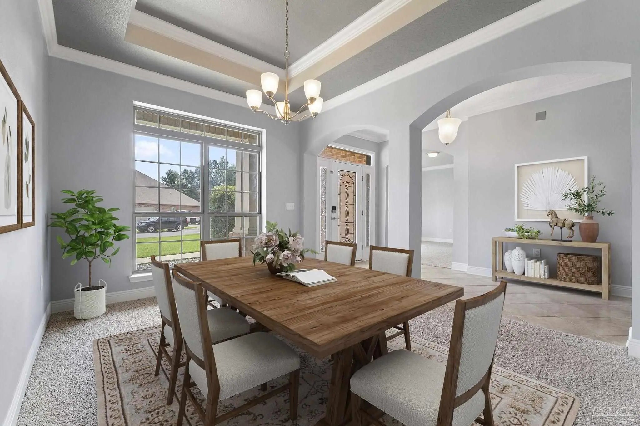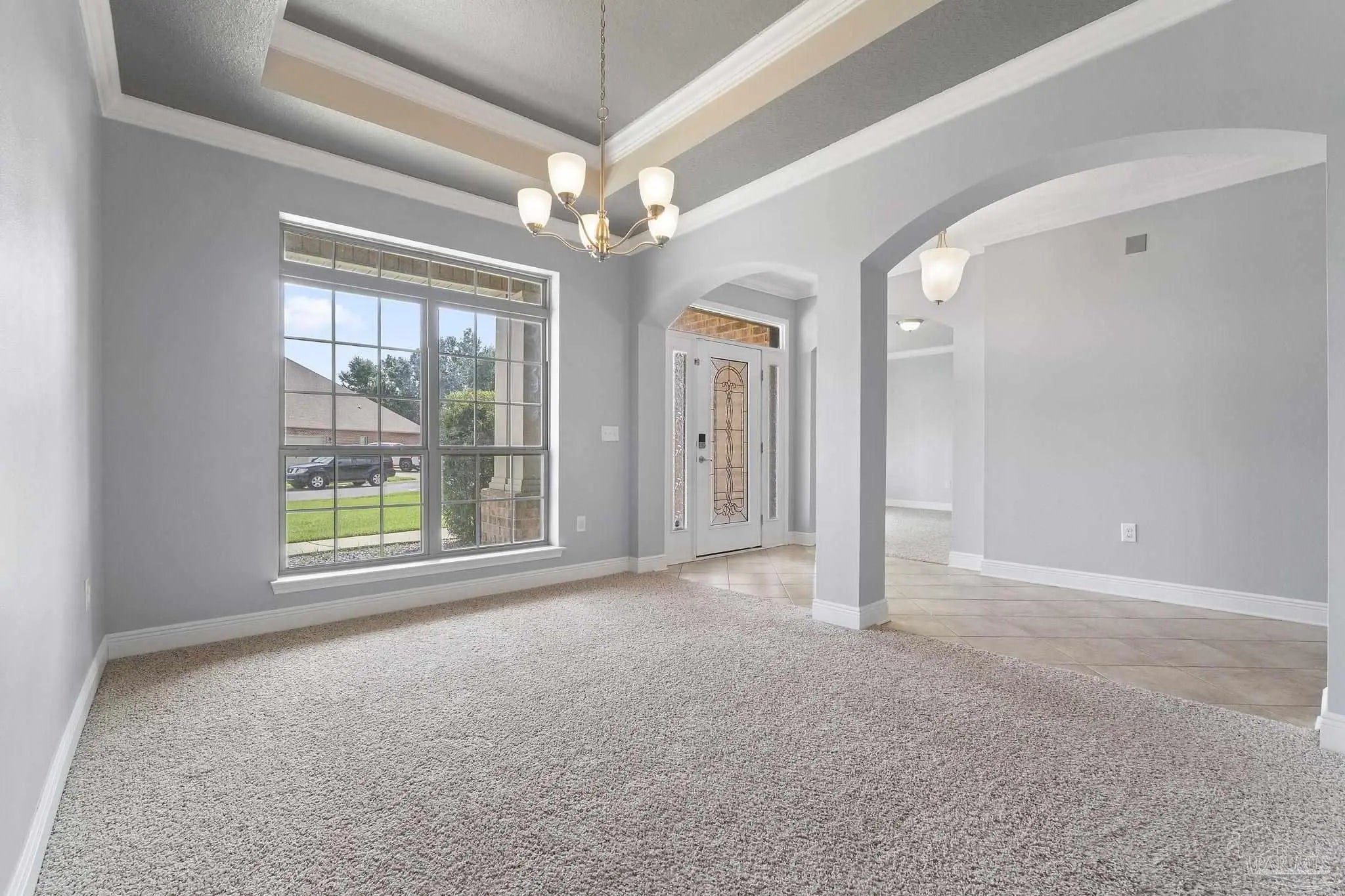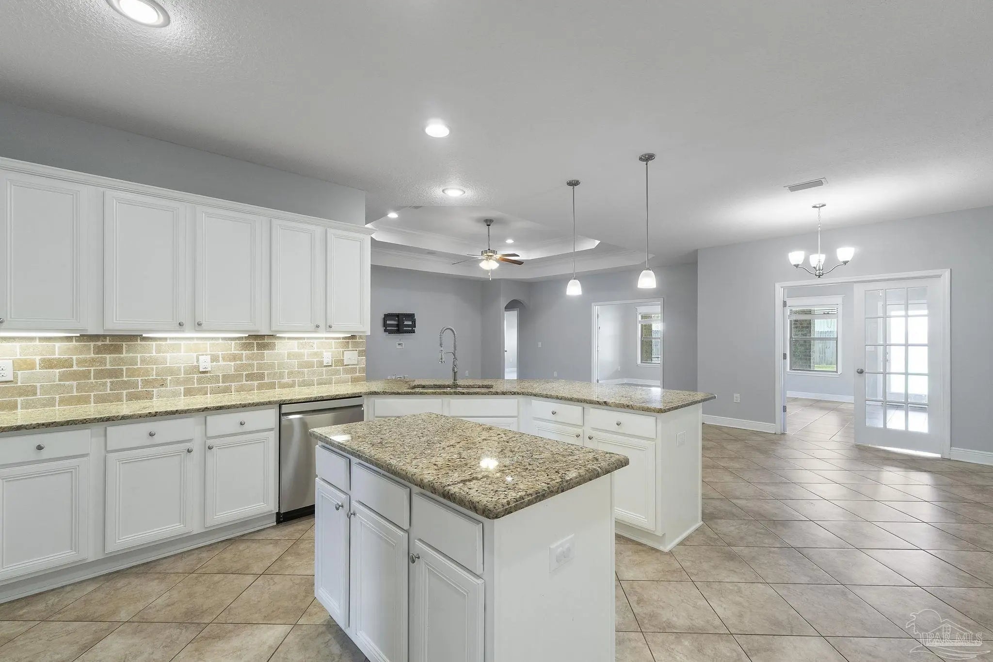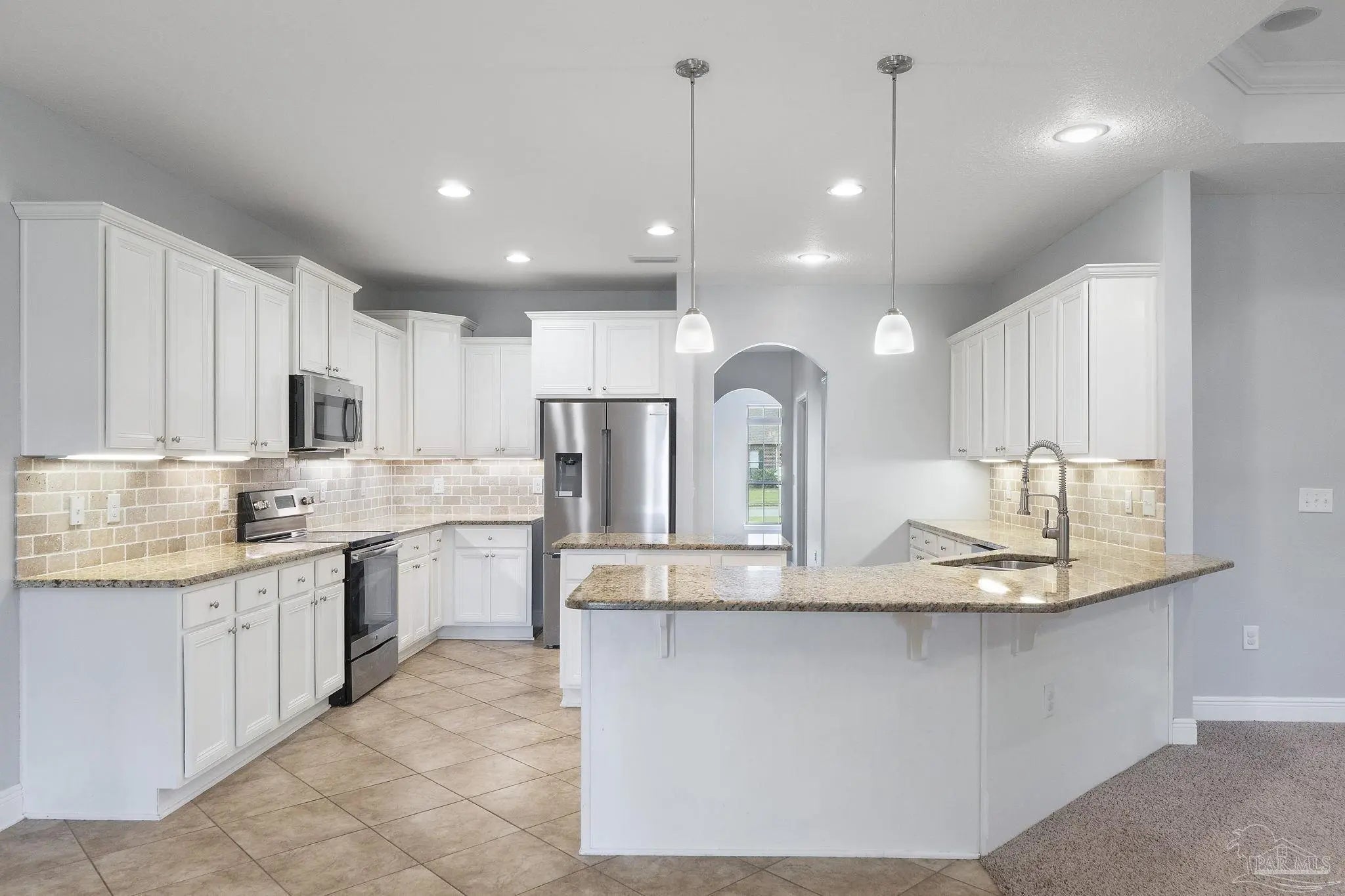 Welcome home to this stunning McKinsey Model located in Spencer’s Ridge, one of Pace’s most desirable locations! This spacious 5-bedroom, 3-bath home sits on a beautifully landscaped half-acre lot, offering the perfect blend of comfort, functionality, and outdoor living. Step inside to find an inviting open floor plan featuring high ceilings, elegant finishes, and abundant natural light. The extended playroom/bonus room includes custom built-in bookcases, making it an ideal space for a media room, home office, or children’s retreat. The gourmet kitchen boasts granite countertops, stainless steel appliances, a large island with breakfast bar, and a walk-in pantry—perfect for entertaining family and friends. The master suite is a true retreat with a spacious ensuite bath featuring dual vanities, a soaking tub, separate shower, and a generous walk-in closet. Enjoy the Florida lifestyle in your private backyard oasis! Relax around the custom firepit or get creative in the detached workshop—ideal for hobbies, storage, or DIY projects. With plenty of room to add a pool or garden, this property offers endless possibilities. Additional highlights include: Split floor plan for added privacy, two-car garage, covered patio, convenient location close to Pace schools, shopping, and NAS Whiting Field. This home truly has it all - space, style, and prime location.