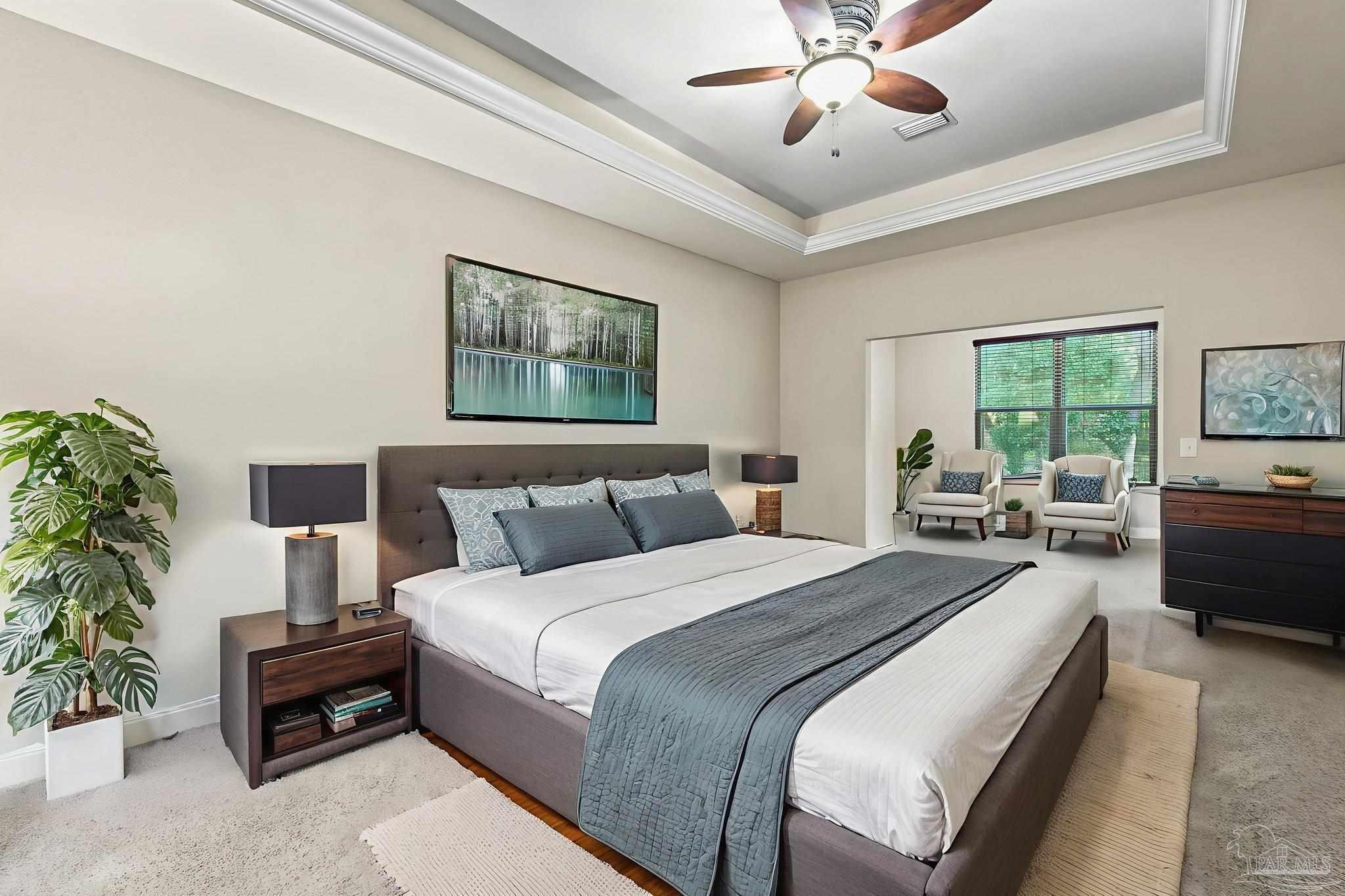 Stylish Brick Home in Coastal Navarre - Your Florida Dream Starts Here! Step into comfort, style, and coastal charm with this beautifully maintained 4-bedroom, 2-bath brick home located in one of Navarre’s most sought-after communities. This property isn’t just move-in ready—it’s packed with features that make everyday living feel like a getaway. From the moment you enter, soaring 12-foot ceilings and elegant finishes set the tone. The formal dining room, recessed lighting, and a mix of laminate wood, tile, and carpeted flooring create a warm, inviting atmosphere. The kitchen is a showstopper - granite countertops, stainless steel appliances, ample cabinetry, and a spacious breakfast bar make it perfect for hosting or relaxing at home. The oversized primary suite is a true retreat, complete with tray ceilings, up-lighting, and an attached bonus room that offers flexible use - ideal for a nursery, home office, fitness space, or quiet reading nook. The en-suite bath offers spa-like luxury with a custom tile shower, soaking tub, dual vanities, and a generous walk-in closet. A split floor plan ensures privacy, with three additional bedrooms and a second full bath thoughtfully placed. The living room features French doors that open to a large patio, inviting you to enjoy Florida’s outdoor lifestyle year-round. The fenced backyard is a peaceful oasis with fruit trees and plenty of space for gardening, relaxing, or entertaining. Located just minutes from the sugar-white sands and emerald waters of Navarre Beach, this home offers the perfect blend of tranquility and convenience. Enjoy easy access to parks, shopping, dining, and nearby military installations including Hurlburt Field and Eglin AFB. Whether you're searching for a forever home, a coastal escape, or a smart investment - this property delivers. Schedule your showing today and experience the lifestyle you’ve been waiting for.