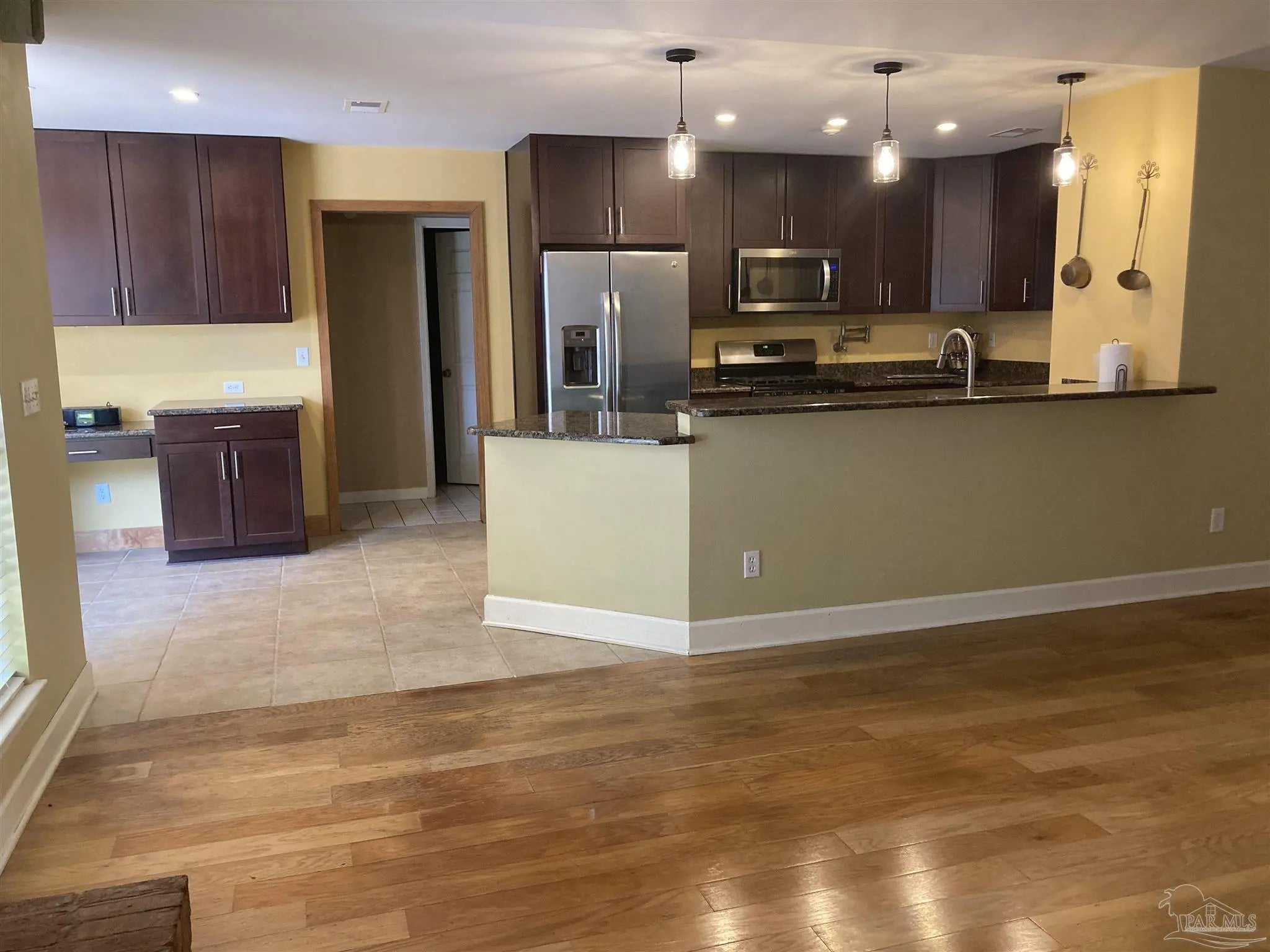 Experience coastal living in this charming Pensacola home situated in the highly sought after and well maintained La Mirage subdivision just off Spanish Trail. The 4 Bedroom, 3 Bath, 2567 SF home offers elegant and comfortable living. The spacious interior features wood and laminate flooring, a wood burning fireplace, recessed and pendant lighting. Enjoy the arched ceiling in the living/family room area which includes a build in interior/exterior sound system. Off the family room is the home office/study. Eat-in kitchen boasts granite counter tops with a breakfast bar. The kitchen is equipped with a large pantry. This open concept kitchen has all stainless-steel appliances to include a wine refrigerator and a chef's pot filler. The master suite offers a double vanity, separate shower and a soaking tub. The 3 additional bedrooms are generous in size. Enjoy the view from the sliding glass doors in the guest bedroom. A total of 3 full bathrooms. Enjoy your backyard oasis by swimming in the pool, relaxing, grilling, or just having friends or family over. New outside screen enclosure in 2025. This home is convenient to downtown, hospitals, airport, malls, and the beaches. Call today for your private tour.