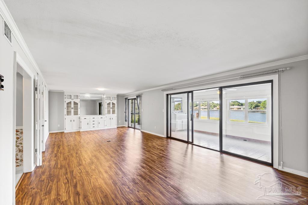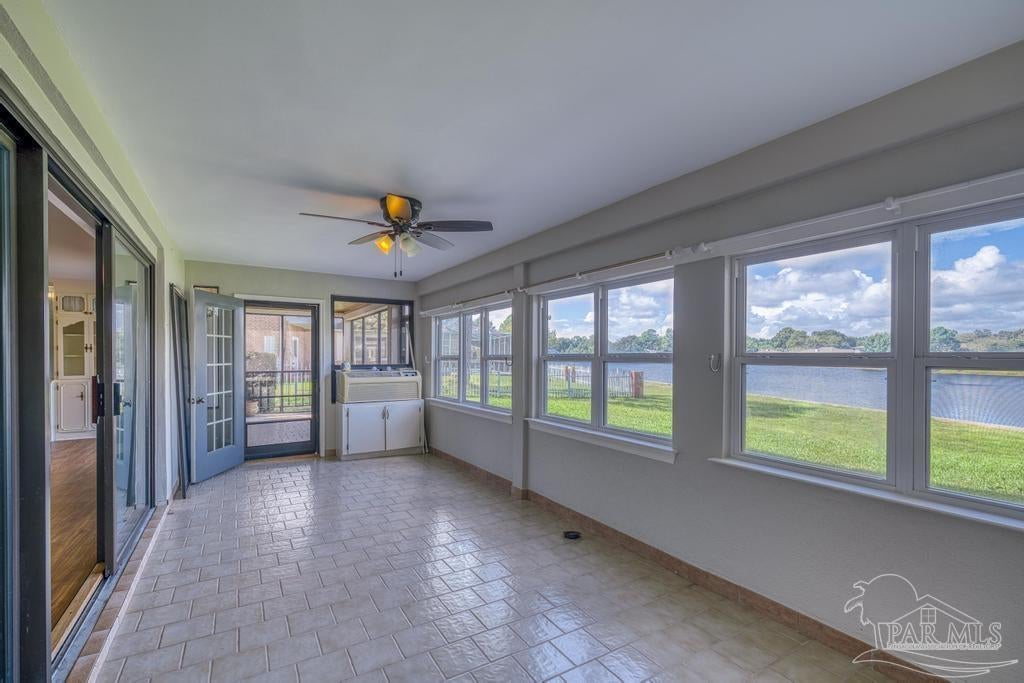 OPEN HOUSE SUNDAY 9/22 1-3PM! Rare opportunity to own luxurious and spacious waterfront condo on Lake Charlene! Previously owned by the builder of these condos, this unit was meticulously designed to include all the fine upgrades and unobstructed view of the sunset each night! This bottom floor, end-unit offers you a sprawling layout with 3 bedrooms, heated and cooled sunroom, a screened in porch and a 2 car garage. Enjoy water views from the eat in kitchen that boasts beautiful and rare St Charles cabinetry, quartz countertops, stainless steel appliances and pantry. The living room has custom built cabinets with a wet bar, a desk area and storage. Primary bedroom has oversized double closet and the en suite also offers two additional closets and a climate control storage closet, storage space will be no challenge here! Large vanity are, tiled shower a more custom cabinetry. Both additional bedrooms are generously sized and one offers an opportunity for a great office or work out space with custom built in cabinets. Home features hurricane protection devices for windows and doors adding peace of mind to your purchase Enjoy the community park, tennis courts, bbq pavilion or tossing a line in the water to fish! These units don’t come for sale often and won’t last long!