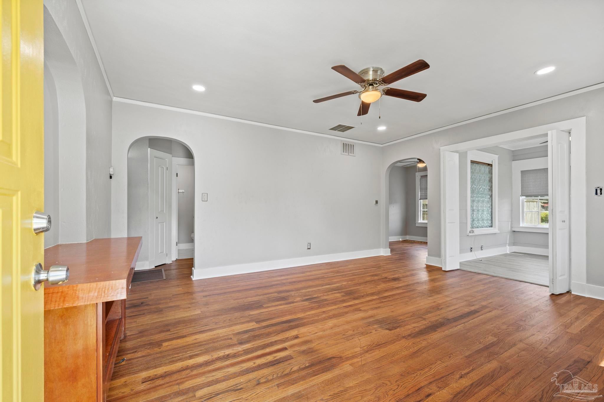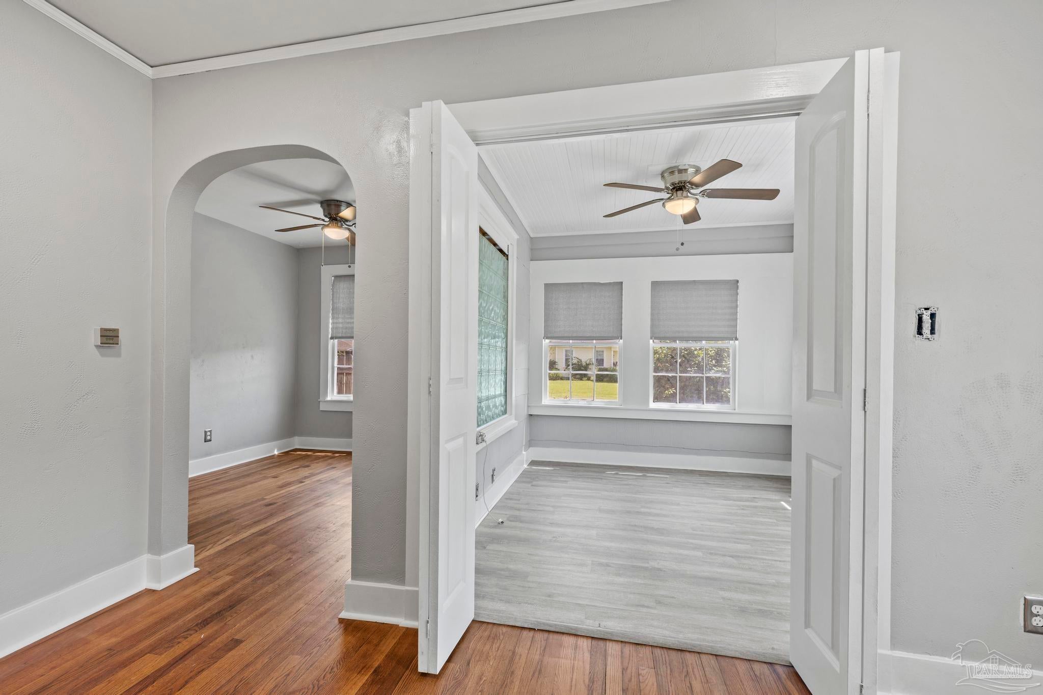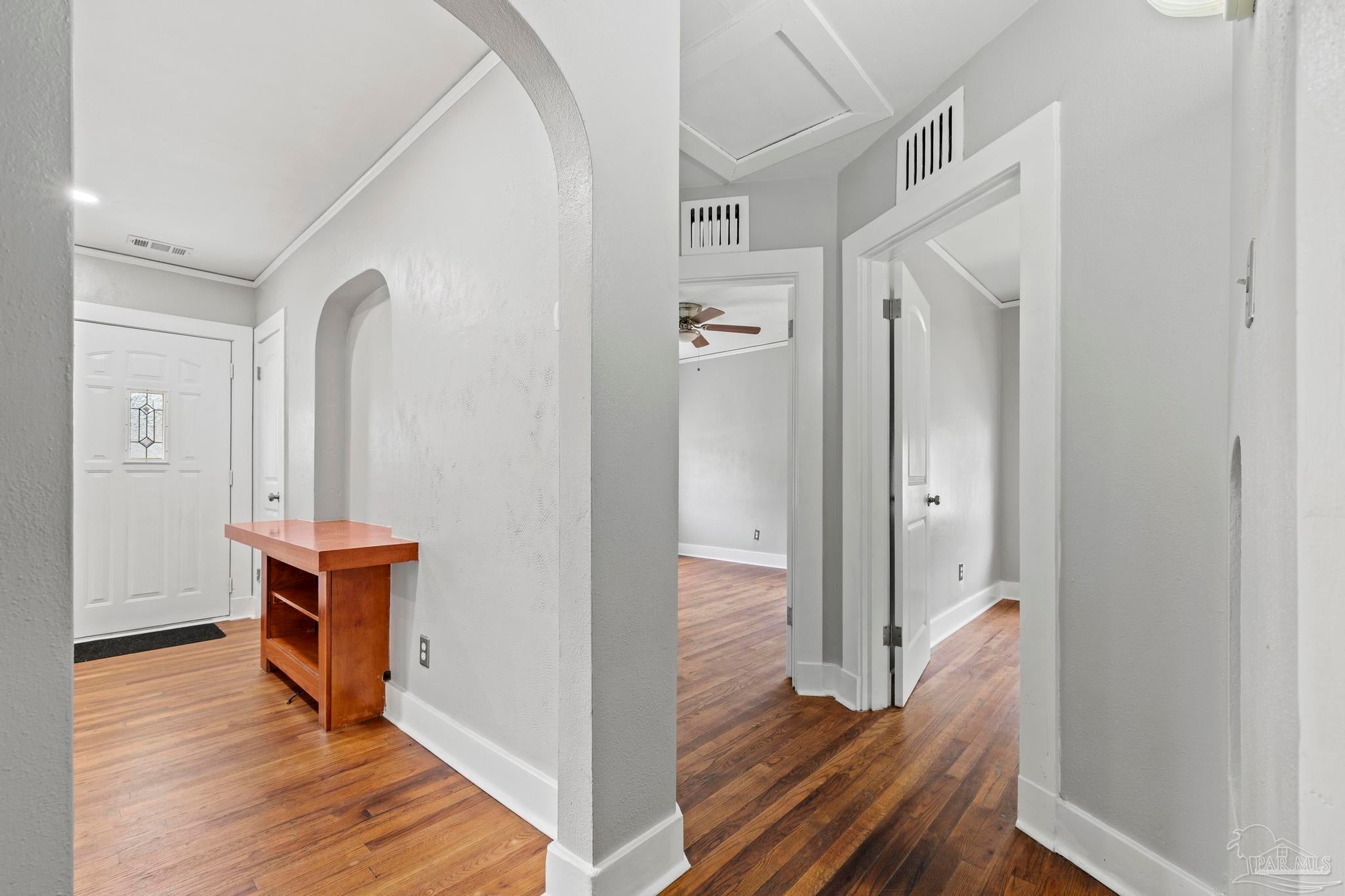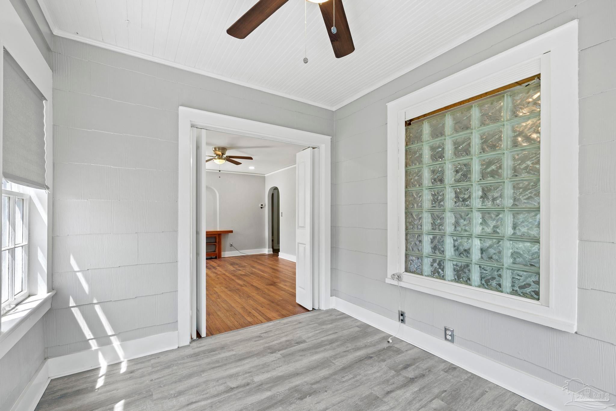Step into timeless charm with this beautifully updated 1940s cottage, located just minutes from downtown Pensacola. This 3-bedroom, 2-bath home offers the perfect mix of warmth, character, and functionality. Inside, you’ll find refinished hardwood floors, fresh neutral paint and modern bathrooms. The kitchen offers stainless steel appliances, backslash, and a pantry. The home features three comfortable bedrooms and two full bathrooms, including a private primary suite with a large closet. A bonus office or sunroom provides flexible space for working from home, a playroom, or a quiet retreat. Outside you can enjoy a spacious backyard perfect for entertaining, gardening, or relaxing under the Florida sky. You’ll also find a detached storage building, ideal for a workshop, creative studio, or extra storage. All of this just a short drive from downtown shops, restaurants, festivals, and parks. This home offers a rare combination of location, history, and modern comfort.