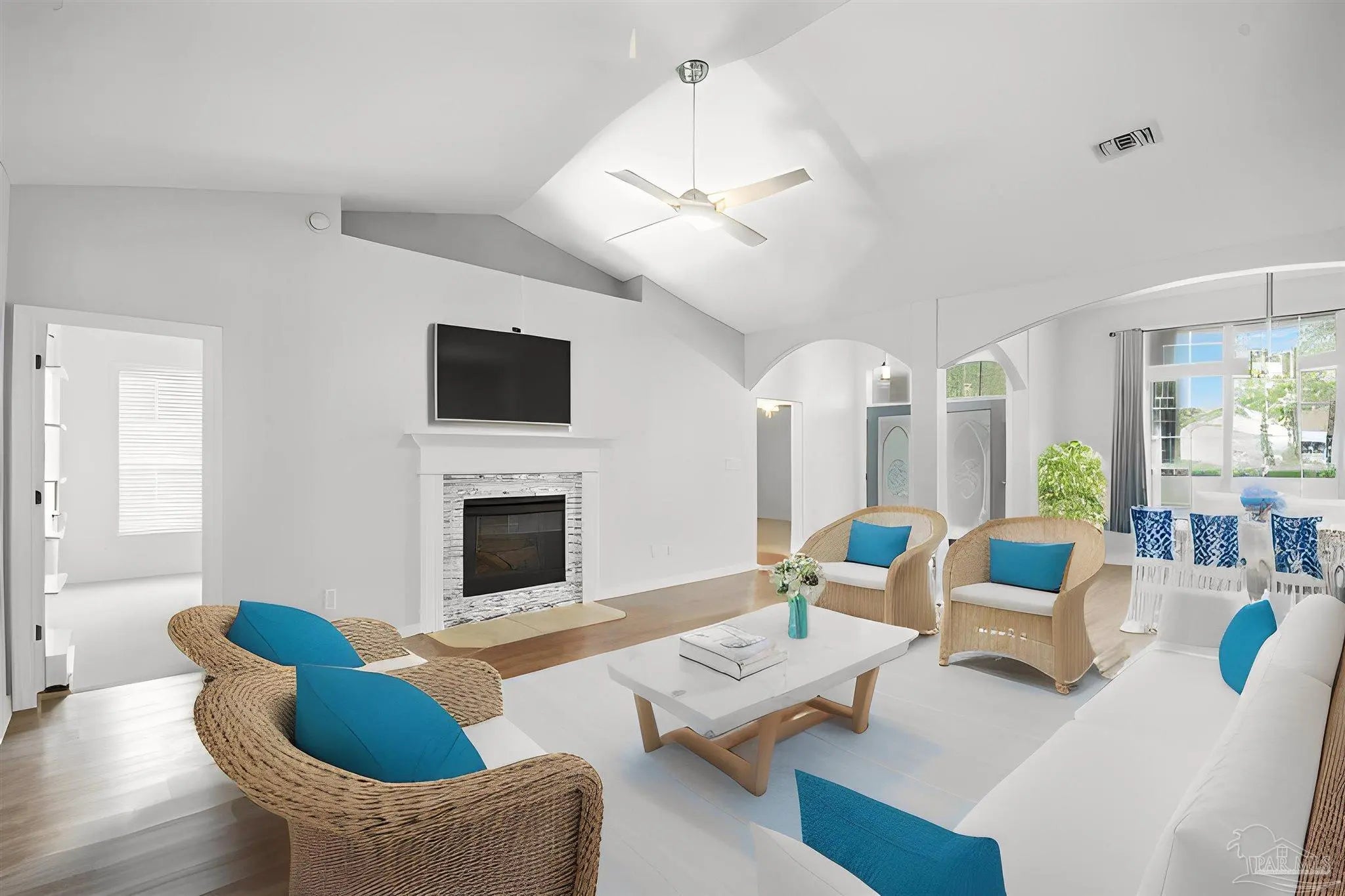 **Seller Offering a Buyer's Concession**4 Bedroom/2 Bath Home*** Beautiful Home with a very functional Floor Plan. Whether it's the arched Doorways with high ceilings or the blue hues found woven throughout the Home, you are sure to enjoy your spacious Oasis minutes from the Emerald Coast. The Master Suite has a three-tiered sliding glass door opening to a separate Porch. The 4th Bedroom is through the pocket door on the other side of the Master Bath (which would make an AWESOME Office!!). While lounging in the Master Suite, soak in the jetted tub, basking in natural light. The additional Bedroom has a Bay Window with a view of the shaded front yard. A huge, three-tiered, sliding glass door leads to the Bonus area opening to an expansive back Porch. There's even a Pear Tree in the Backyard with a side Utility Shed. Come this wonderful "Coastal Living" Home TODAY!! Seller will entertain ALL reasonable Offers.