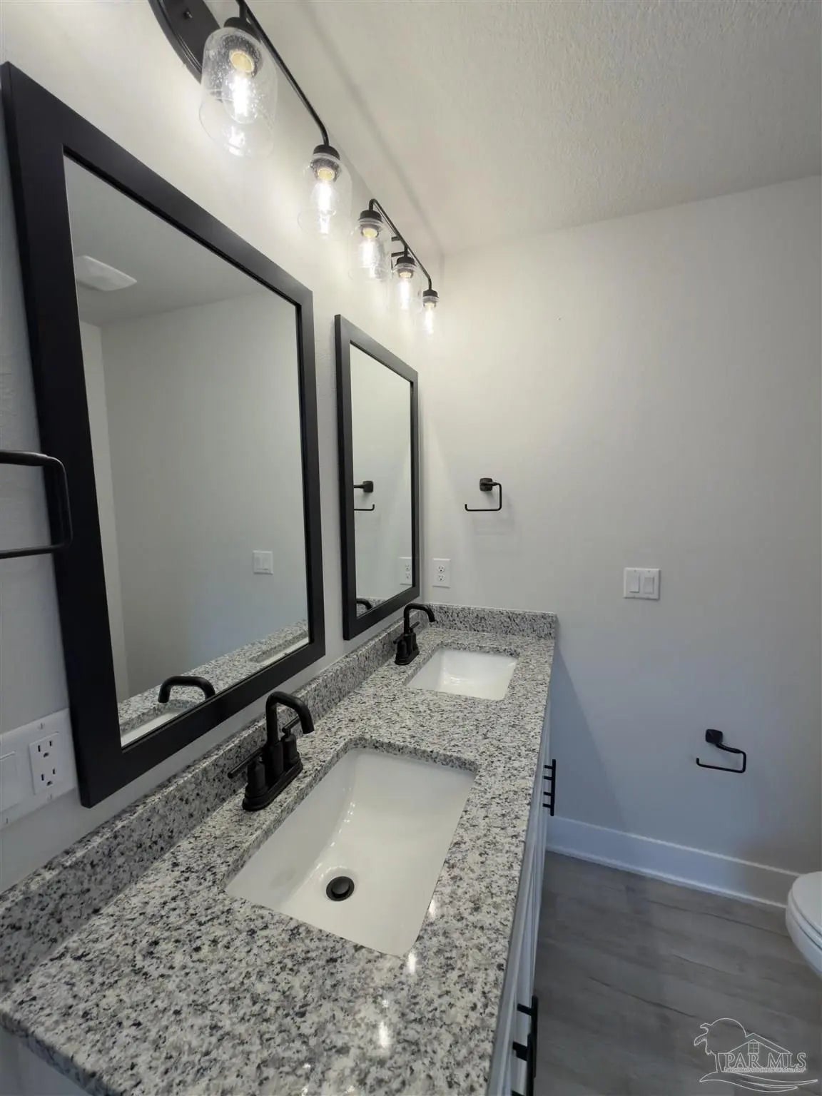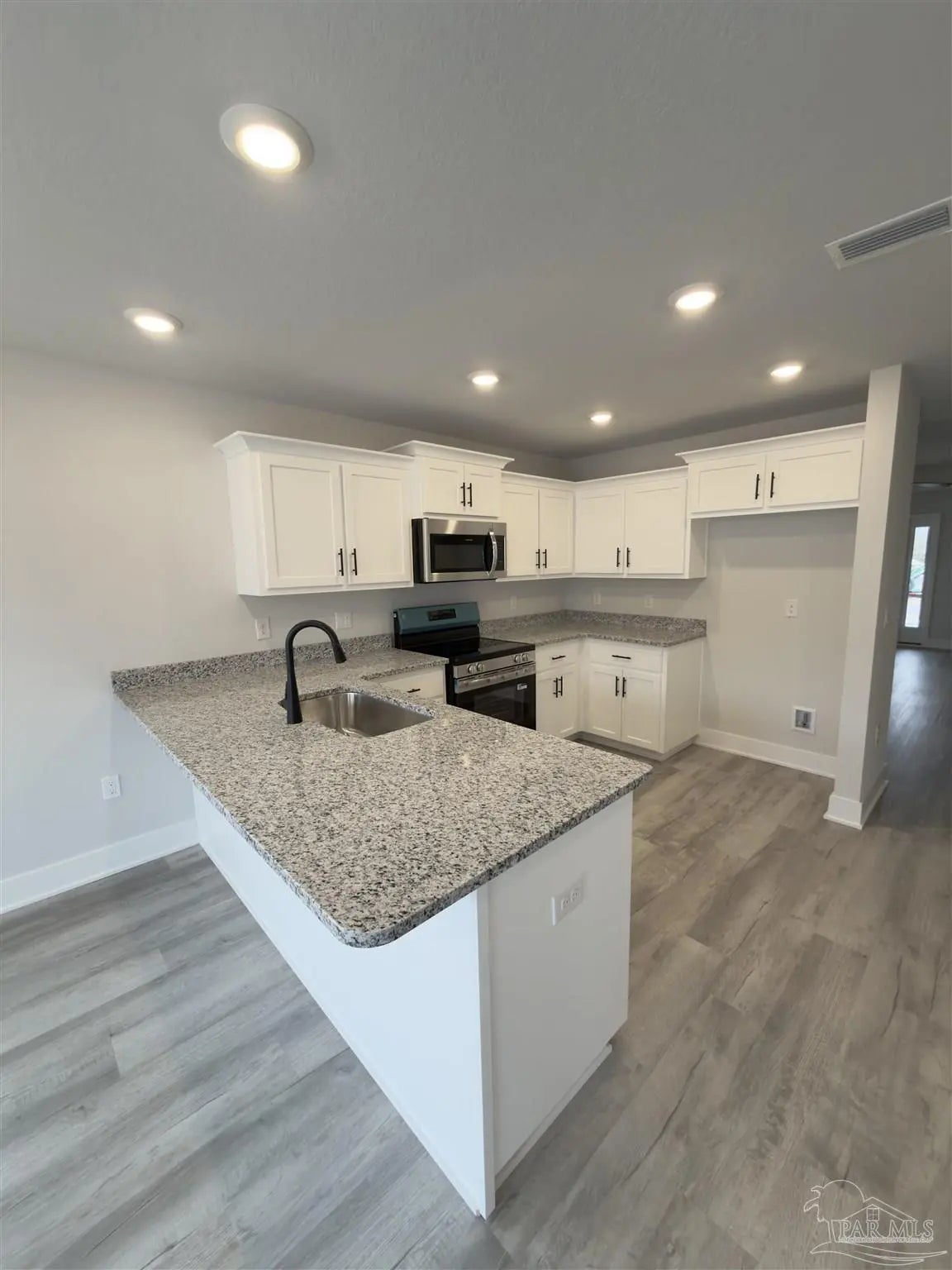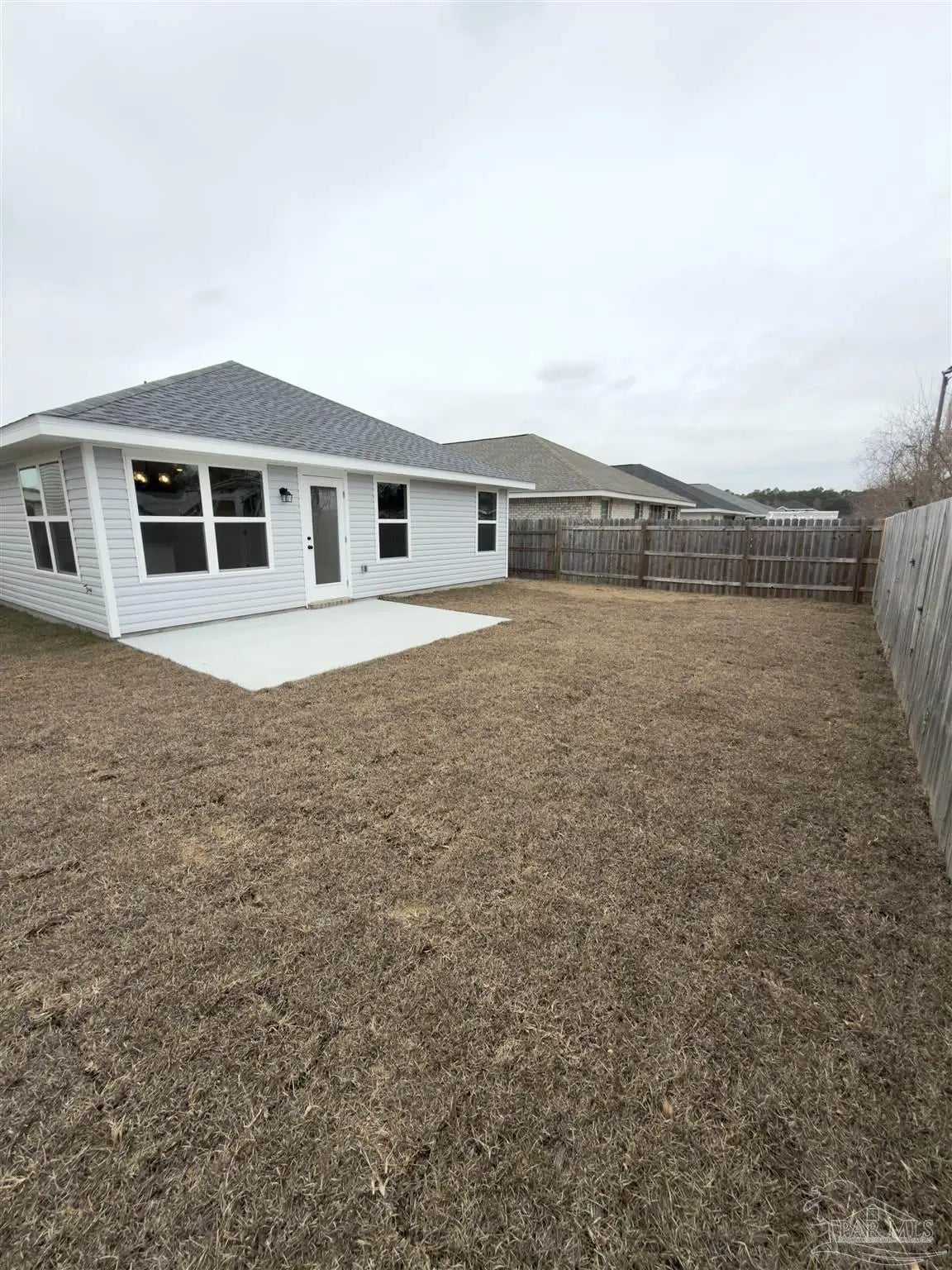 Move in Ready!! Here you will find the 1317 square foot 3 bedroom 2 bath home. Upon entering the home, you will notice that there is vinyl plank flooring throughout with no carpet! The living room is spacious and has a ceiling fan as well as a closet for household items. Exiting from the living room, you enter into the kitchen at the back of the home. Within the kitchen, you have beautiful granite counter tops, white shaker style cabinets and stainless steel appliances. There is a counter height bar for additional seating and makes entertaining easy while cooking in the kitchen. The dining area is part of the kichen and is separated by the counter height bar. In the dining area, you have a single French door that leads onto a patio that is perfect for grilling or star gazing on one of those clear Florida evenings. The master bedroom is off of the dining area with a tray ceiling, ceiling fan and contains a walk-in closet. The master bath has double sinks with granite counter tops and has a tub/ shower combo. The additional two bedrooms are ample size and share a bath within their hall way. The hall bath has a single sink and shower/ tub combo. There is an inside laundry room within the hall and a linen closet for additional storage. The double car garage has a garage door opener and attic access. Don't delay in seeing this amazing home today.