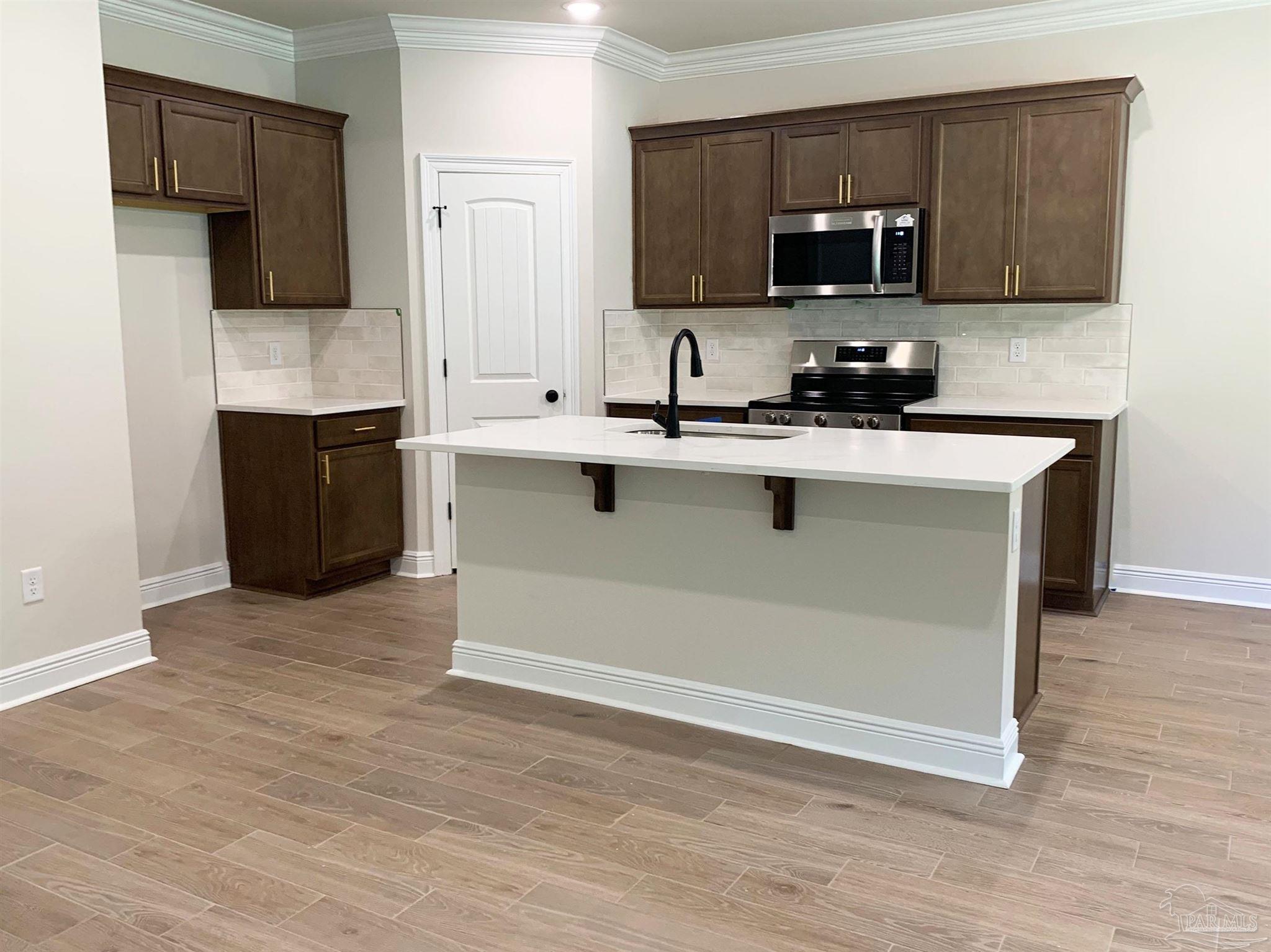 The CORNEL IV J in Sentinel Ridge community offers a 3 bedroom, 2 full bathroom, open and split design. Upgrades for this home include wood look ceramic tile flooring throughout, blinds for the windows, quartz countertops, upgraded kitchen backsplash, LED coach lights on each side of the garage, and more! Features: double vanity, garden tub, separate shower, and walk-in closet in master bath, kitchen island, walk-in pantry, walk-in closet at garage entry, covered porches, undermount sinks, crown molding, recessed lighting, ceiling fans in living and master, custom framed mirrors in all baths, smoke and carbon monoxide detectors, automatic garage door with 2 remotes, landscaping, architectural 30-year shingles, and more! Energy Efficient Features: water heater, kitchen appliance package with electric range, vinyl low E MI windows, and more! Energy Star Partner.