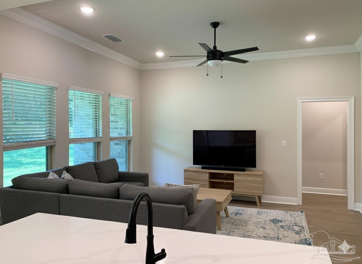 - Baseboards, Ceiling Fan(s), Crown Molding, High Ceilings, Recessed Lighting