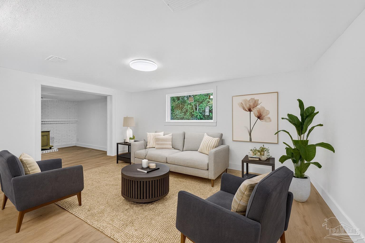 **PRICE DROP** This charming hardy block home, fully renovated with taste, is now for sale! Enjoy the convenience of being close to a nearby boat launch, shopping, schools, and I-10. This home offers a family and entertaining oriented floorpan with two living areas, a large kitchen, and outdoor living. The lot is adorned with plentiful parking space, a covered carport, an additional storage building, and lovely crepe myrtles & lilys. You will truly love the tranquility this location offers. Brand new windows, 2021 30 yr roof, 2021 HVAC, and new 2024 water heater. Don't miss your chance to live in a beautiful home, with land, and privacy for such a low price!