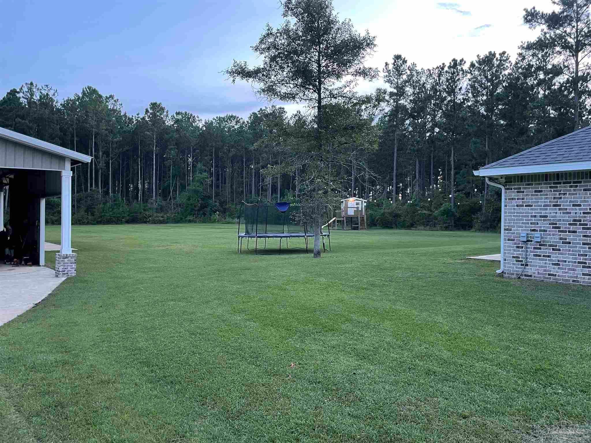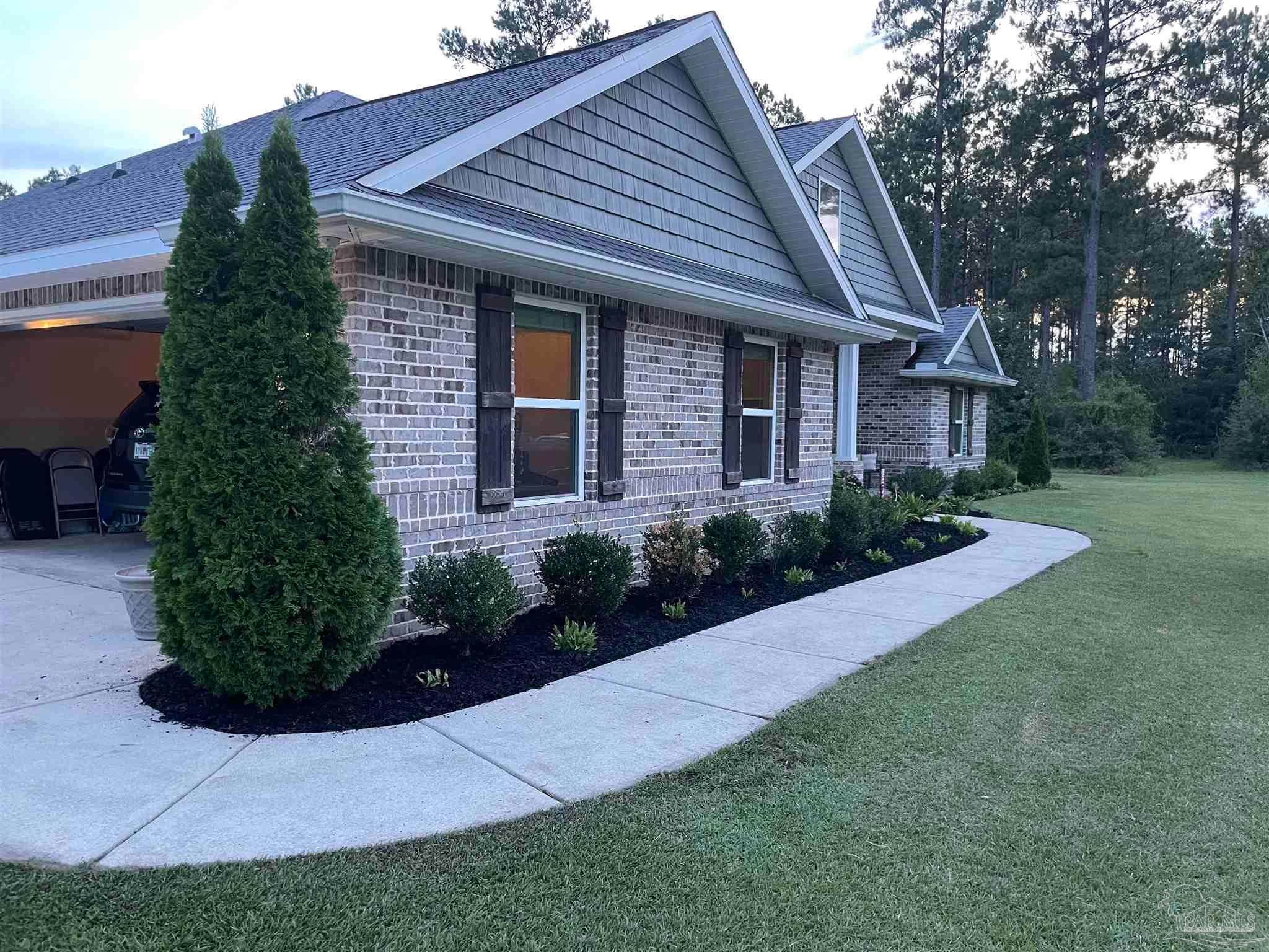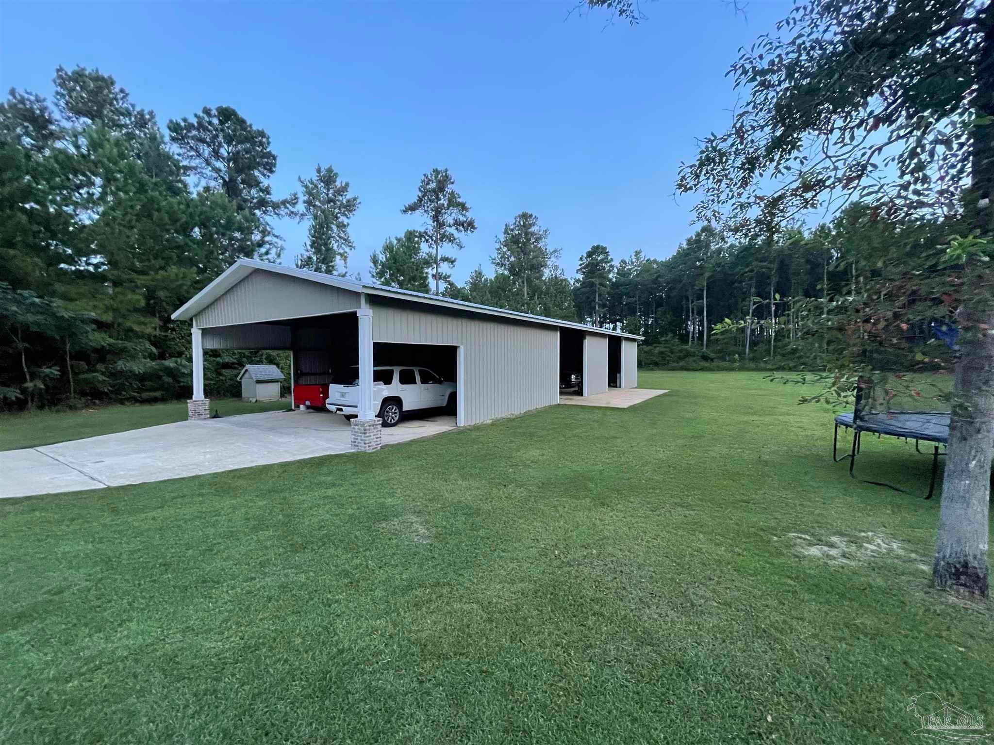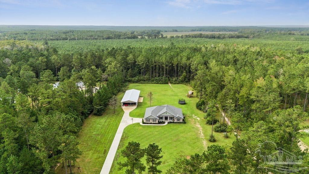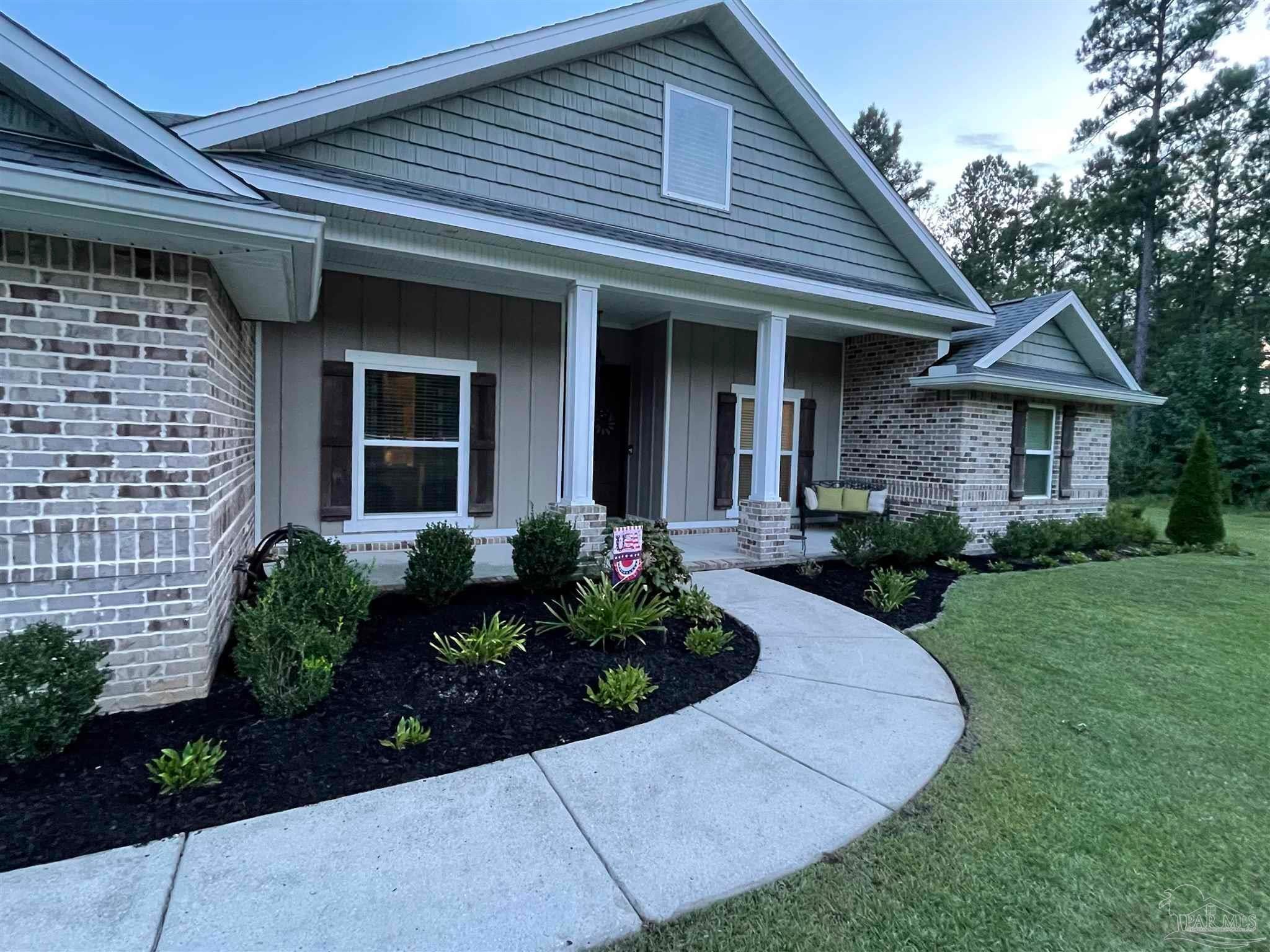 Beautiful custom home in Chumuckla Florida on 3 acres! Home features 4 bedrooms and 2.5 baths, open floor plan with beautiful finishes. 10-foot ceilings with 2x6 framing in the common areas with crown molding, electric fireplace finished in shiplap with 220v heater. Custom lighting finishes through the home as well as a custom electrical package. A 72 inch windmill fan finishes out the living room in great style. LVP flooring in the common areas and carpet in the bedrooms. In addition to the bedrooms off the foyer there is a flex room with tray ceiling that could be used for an office, a piano, or formal dining area. The kitchen features stainless whirpool appliances with a hop up bar that seats up to 7. Spacious front and rear porches overlook the large front and back yard. The 3 acres is cleared except for hedge rows for privacy. The front of the property is lined with a PVC rail fence that really adds to the curb appeal of the home. Home features a 300 foot concrete driveway with oversized parking pad that ties into the 32/84 metal truss pole barn with concrete floor and 100 amp power service installed. a 30 amp breaker is also present on the side of the home for a future pool. The 2 car garage is oversized for full size vehicles. Great place for horses, walking, riding bikes and raising kids. Property is very private and well maintained. This is a beautiful turn key like new home that would be great for a family. Please contact me for a showing today!