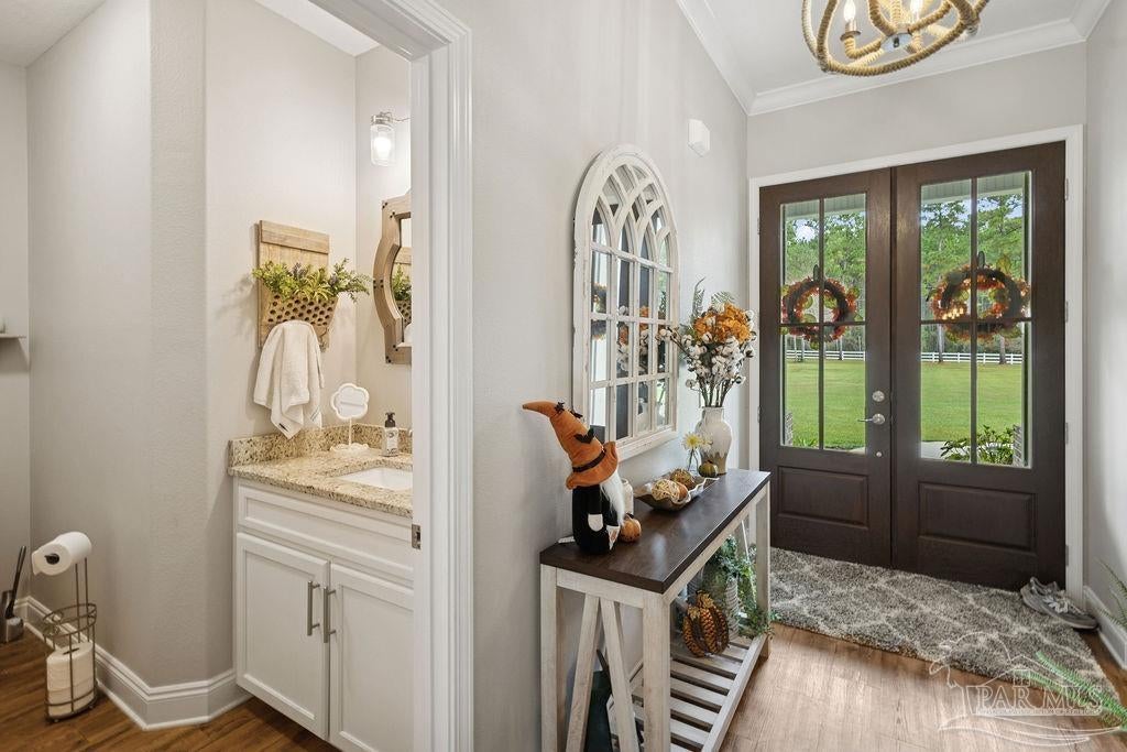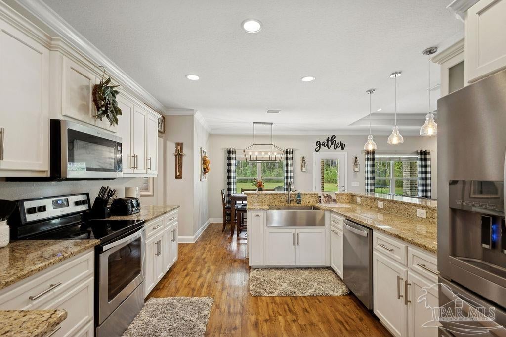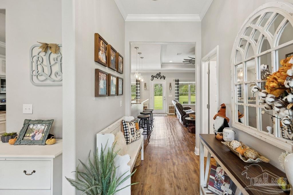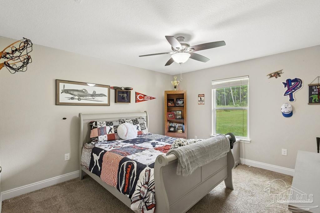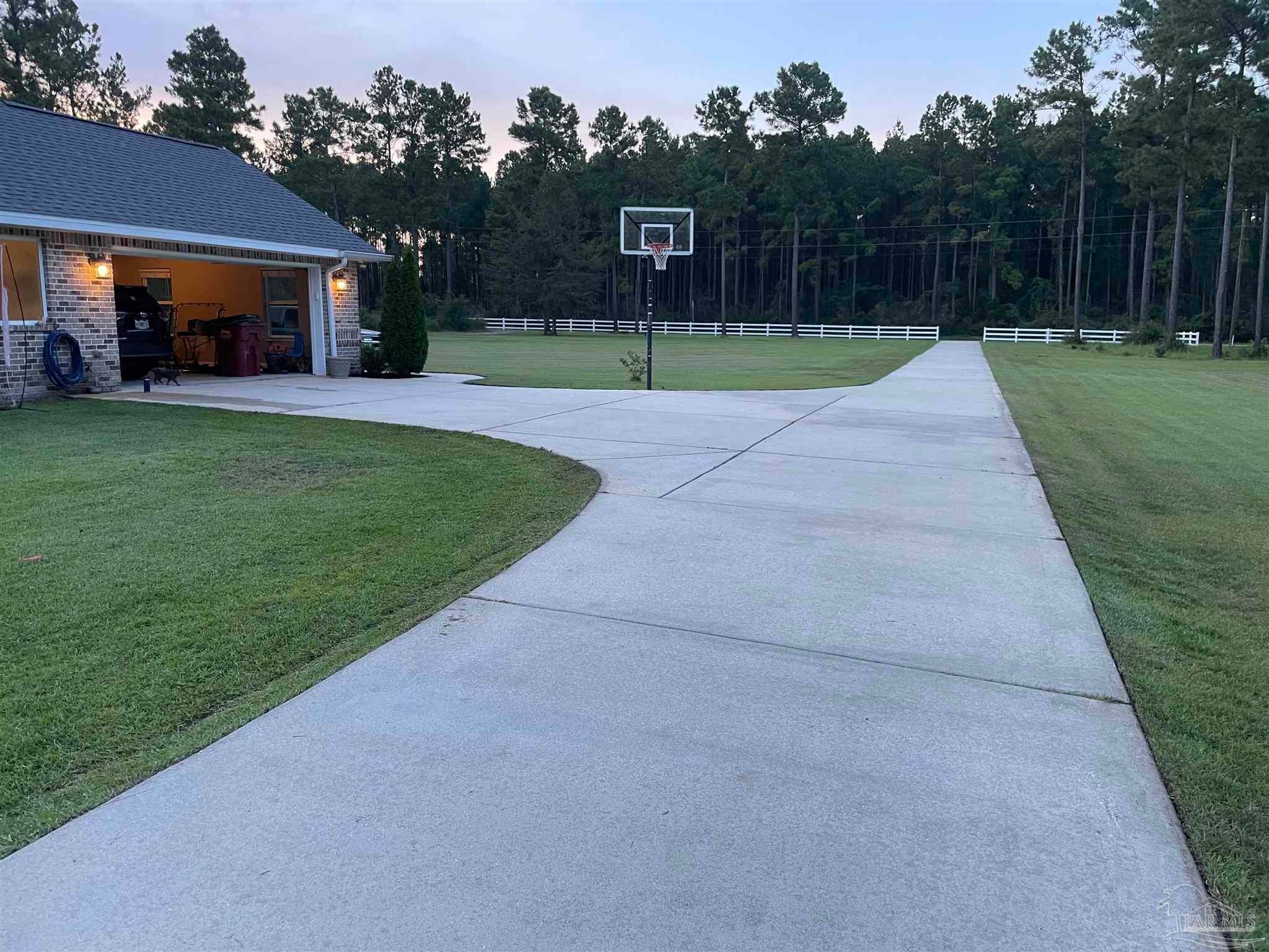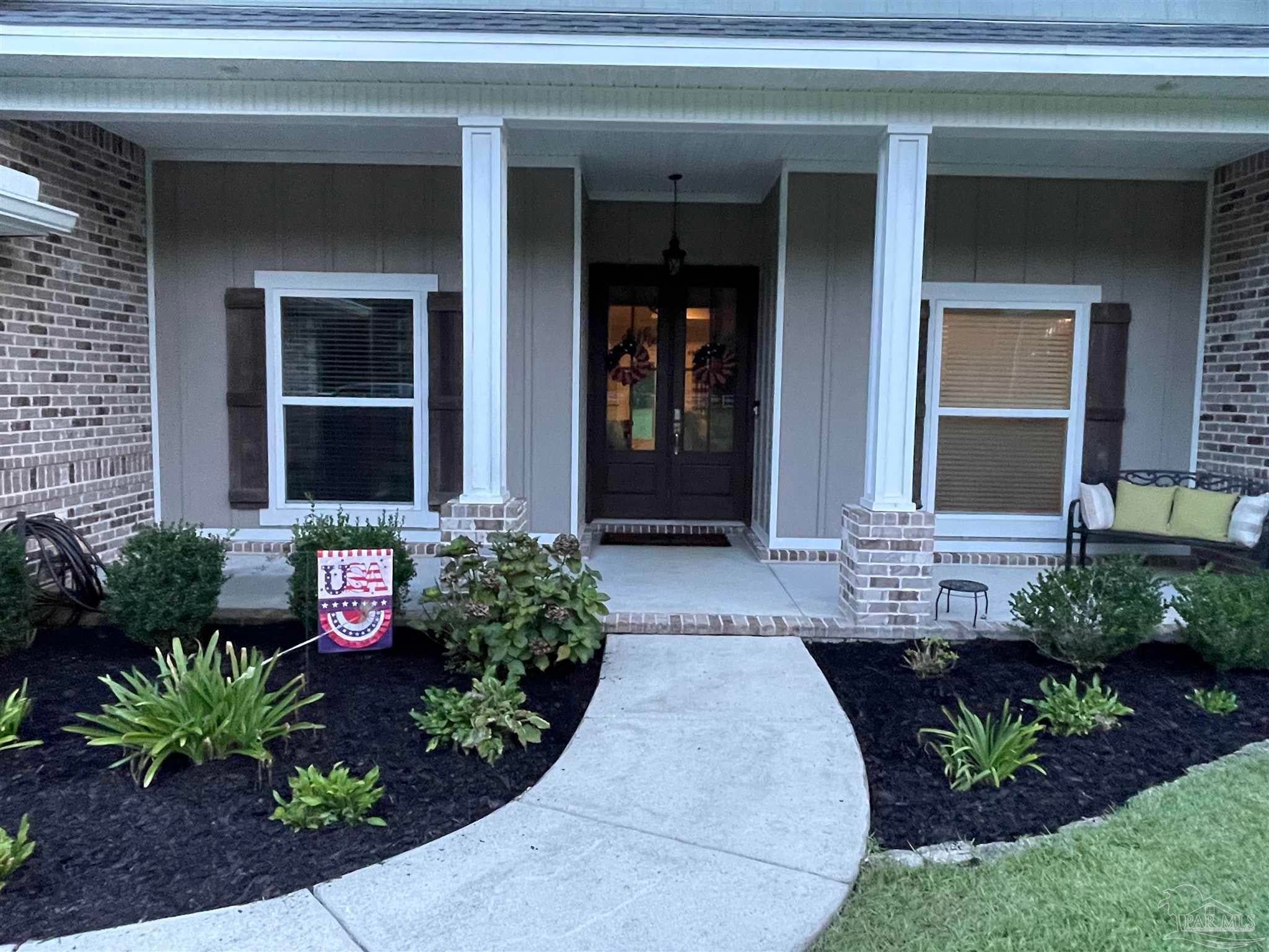 Beautiful custom home in Chumuckla Florida on 3 acres! Home features 4 bedrooms and 2.5 baths, open floor plan with beautiful finishes. 10-foot ceilings with 2x6 framing in the common areas with crown molding, electric fireplace finished in shiplap with 220v heater. Custom lighting finishes through the home as well as a custom electrical package. A 72 inch windmill fan finishes out the living room in great style. LVP flooring in the common areas and carpet in the bedrooms. In addition to the bedrooms off the foyer there is a flex room with tray ceiling that could be used for an office, a piano, or formal dining area. The kitchen features stainless whirpool appliances with a hop up bar that seats up to 7. Spacious front and rear porches overlook the large front and back yard. The 3 acres is cleared except for hedge rows for privacy. The front of the property is lined with a PVC rail fence that really adds to the curb appeal of the home. Home features a 300 foot concrete driveway with oversized parking pad that ties into the 32/84 metal truss pole barn with concrete floor and 100 amp power service installed. a 30 amp breaker is also present on the side of the home for a future pool. The 2 car garage is oversized for full size vehicles. Great place for horses, walking, riding bikes and raising kids. Property is very private and well maintained. This is a beautiful turn key like new home that would be great for a family. Please contact me for a showing today!