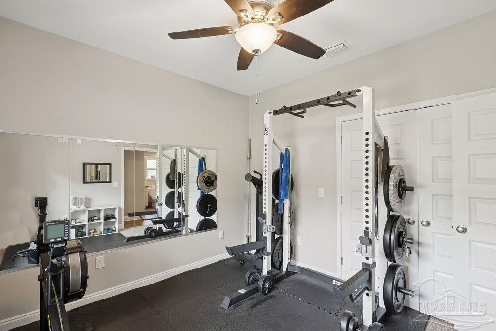 - Baseboards, Ceiling Fan(s), Crown Molding, High Ceilings, Recessed Lighting, Office/Study