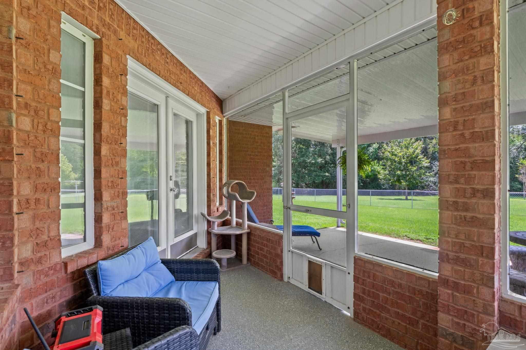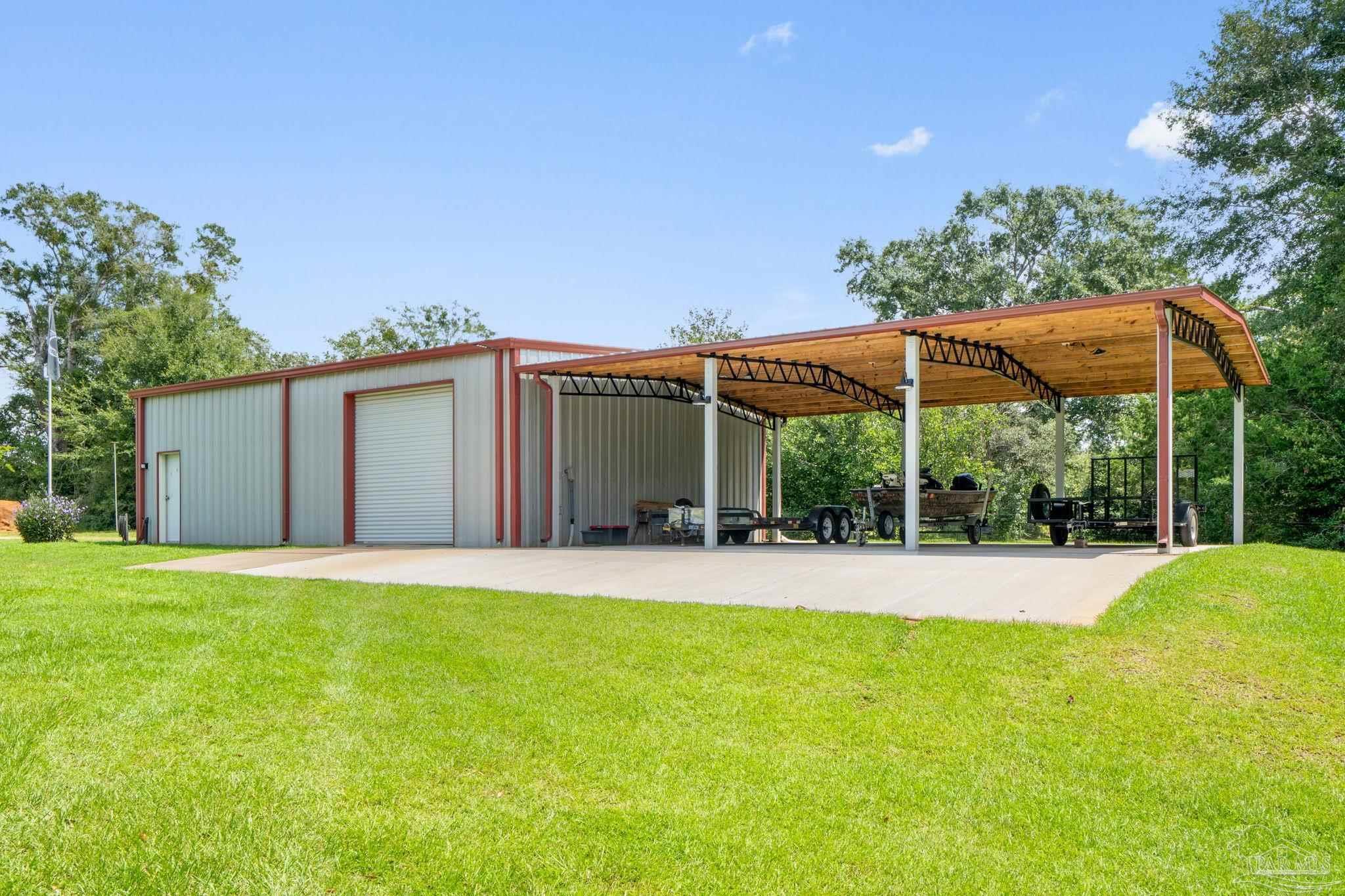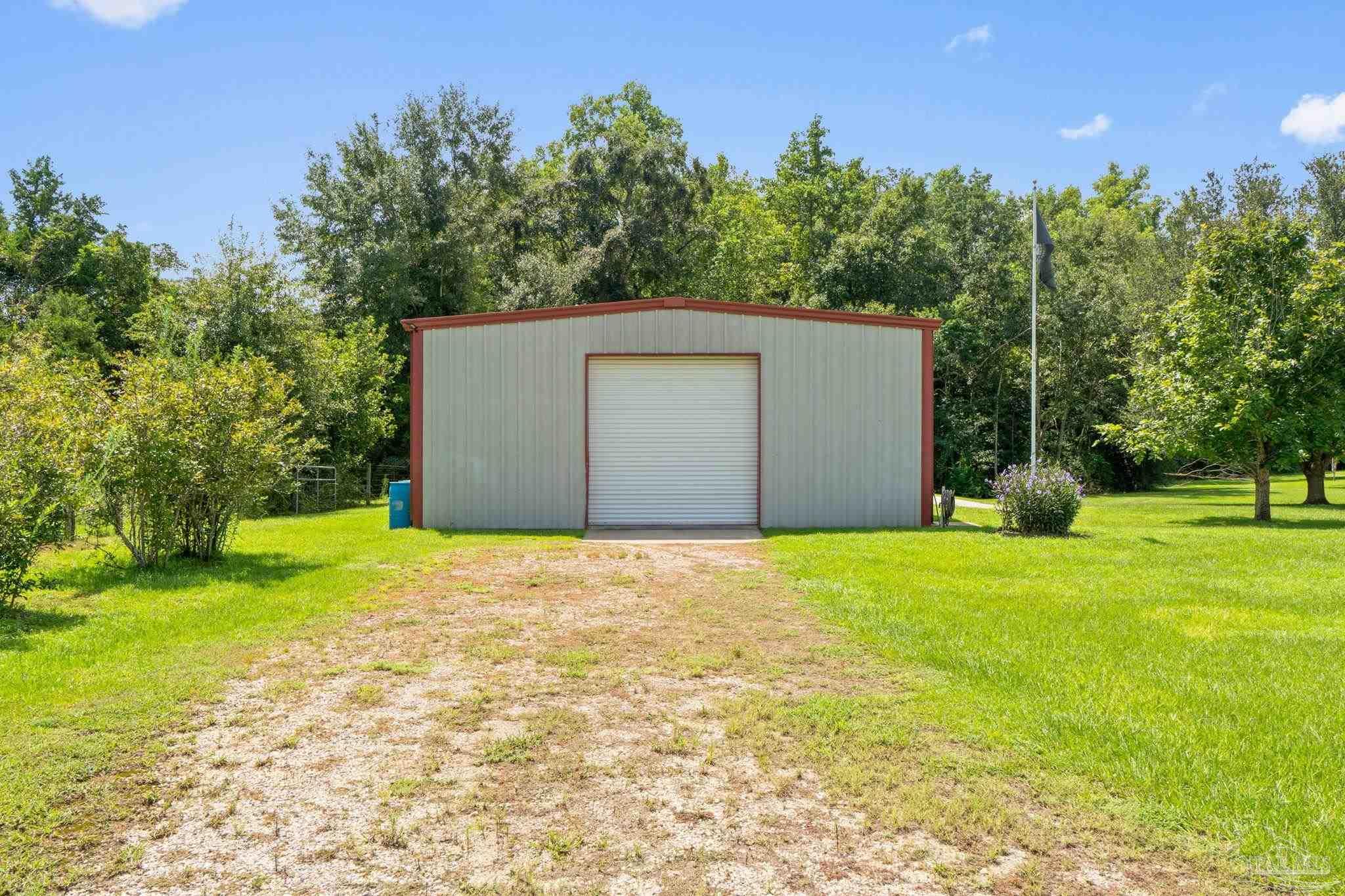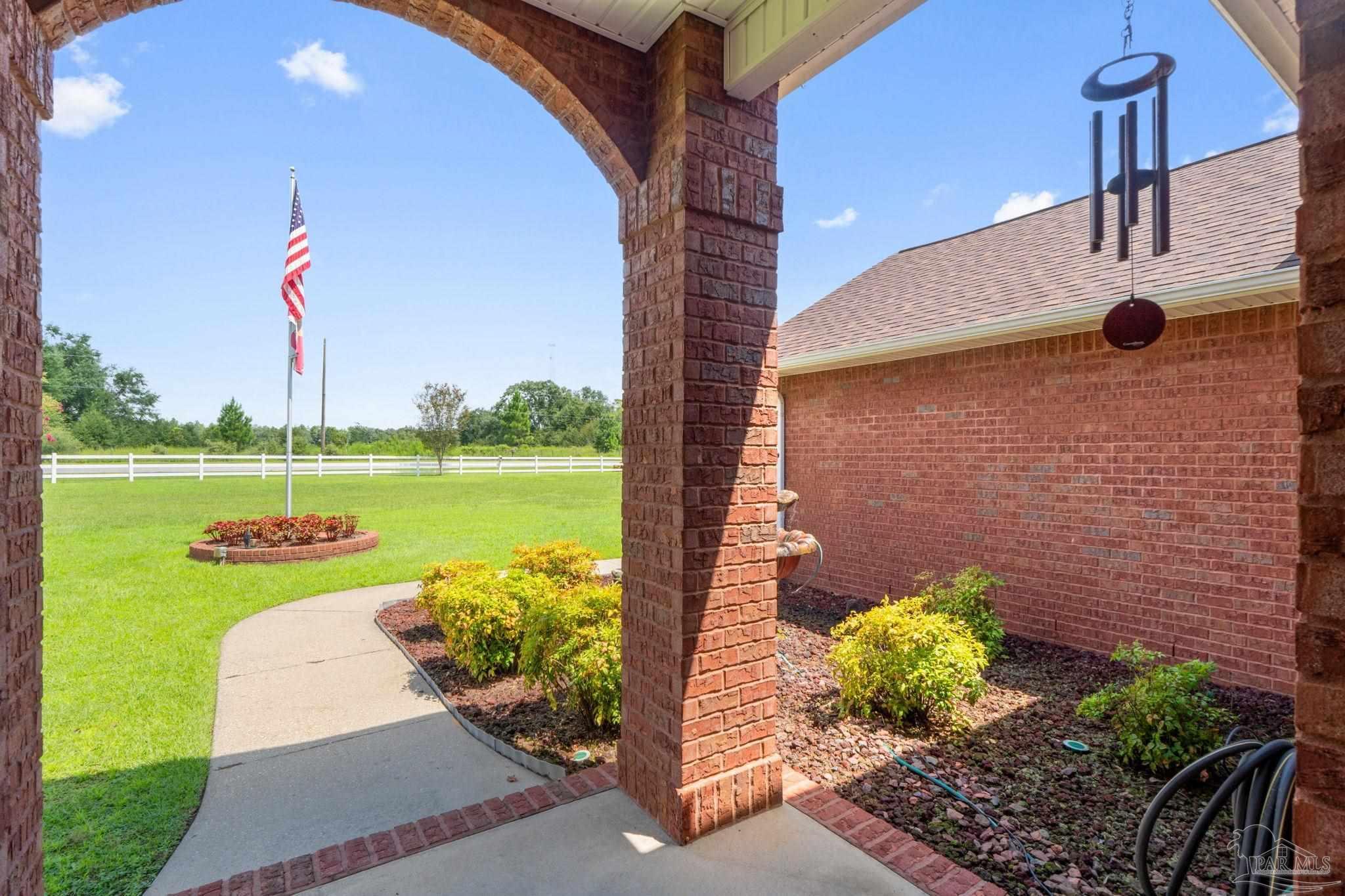 Beautiful Brick Country Estate on 7.5 Acres! Welcome to 4381 Molino Road, a charming brick country estate with space, character, and modern updates. Built in 2006, this 3-bedroom, 2-bath home offers 2,432 square feet of comfortable living space, set on 4 acres plus an adjoining 3.5 parcel for a total of 7.5 acres included in this listing. From the moment you arrive, you’ll be struck by the curb appeal: lush grass, classic white horse fencing along the road, a flagpole out front, and charming landscaping. Step inside to a warm foyer with rich hardwood floors, architectural windows, arched doorways, and a living room with a tray ceiling, and electric fireplace. The bright dining room and large kitchen are made for gathering, with stainless steel appliances, a pantry closet, and a spacious breakfast nook that fits a full-sized table. The primary suite features 2023 luxury vinyl plank flooring, its own tray ceiling, double doors to the screened porch, and a spa-like ensuite with a separate soaking tub and abundant natural light. Two additional bedrooms with plush carpet offer plenty of comfort for family or guests. Out back, you’ll enjoy a screened-in porch, covered patio, and expansive yard. The property also includes a large detached metal building and attached pole barn with 3 11ft bays that has both power and water, perfect for a workshop, storage, or hobbies. There is also another pole barn at the back of the property. Recent updates provide peace of mind: roof (2022), HVAC (2021), water heater (2022), concrete driveway, termite bond, and fabric hurricane shutters. This rare combination of acreage, upgrades, and country charm makes 4381 Molino Road a true fine. Don’t miss it!
