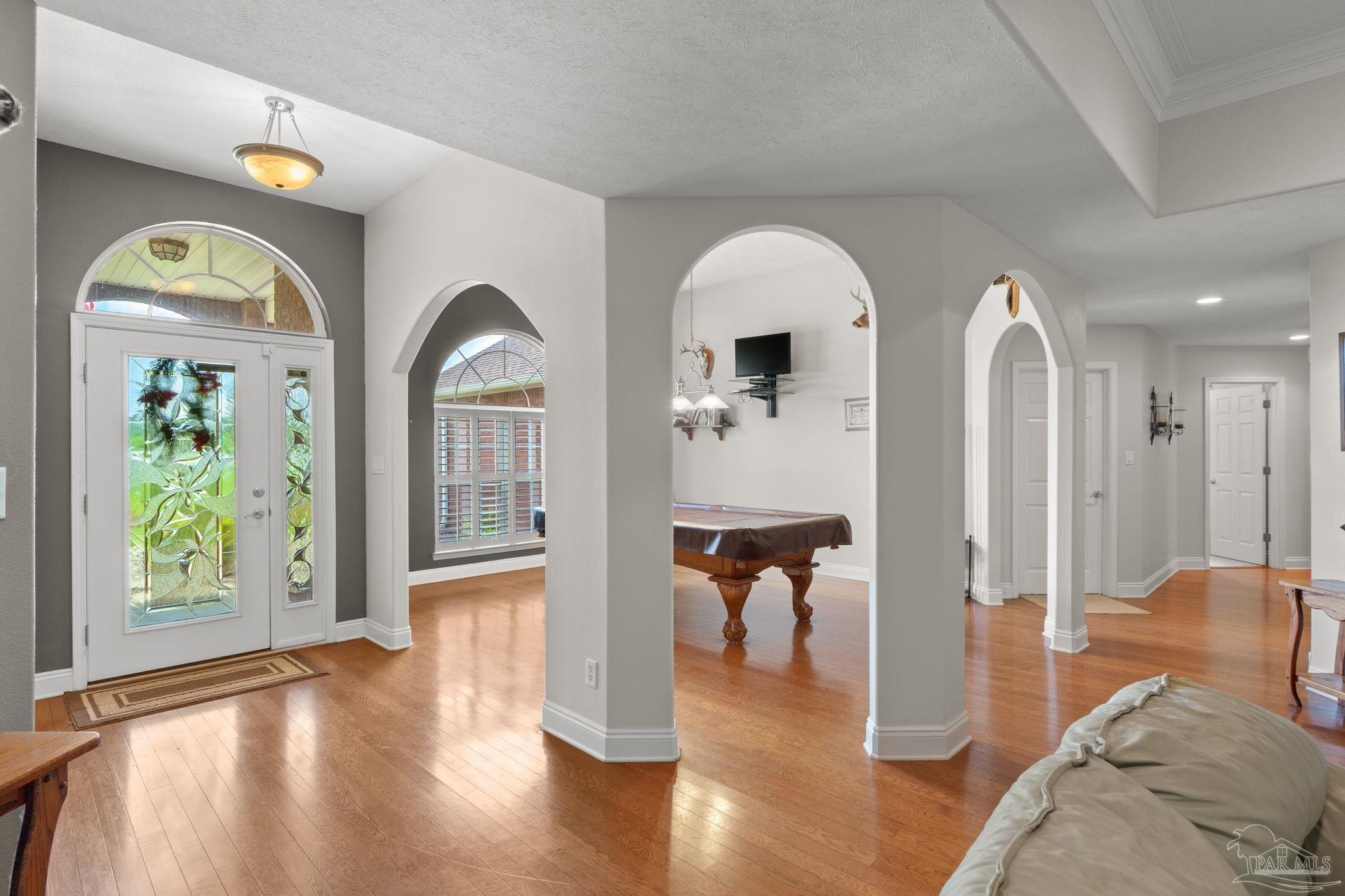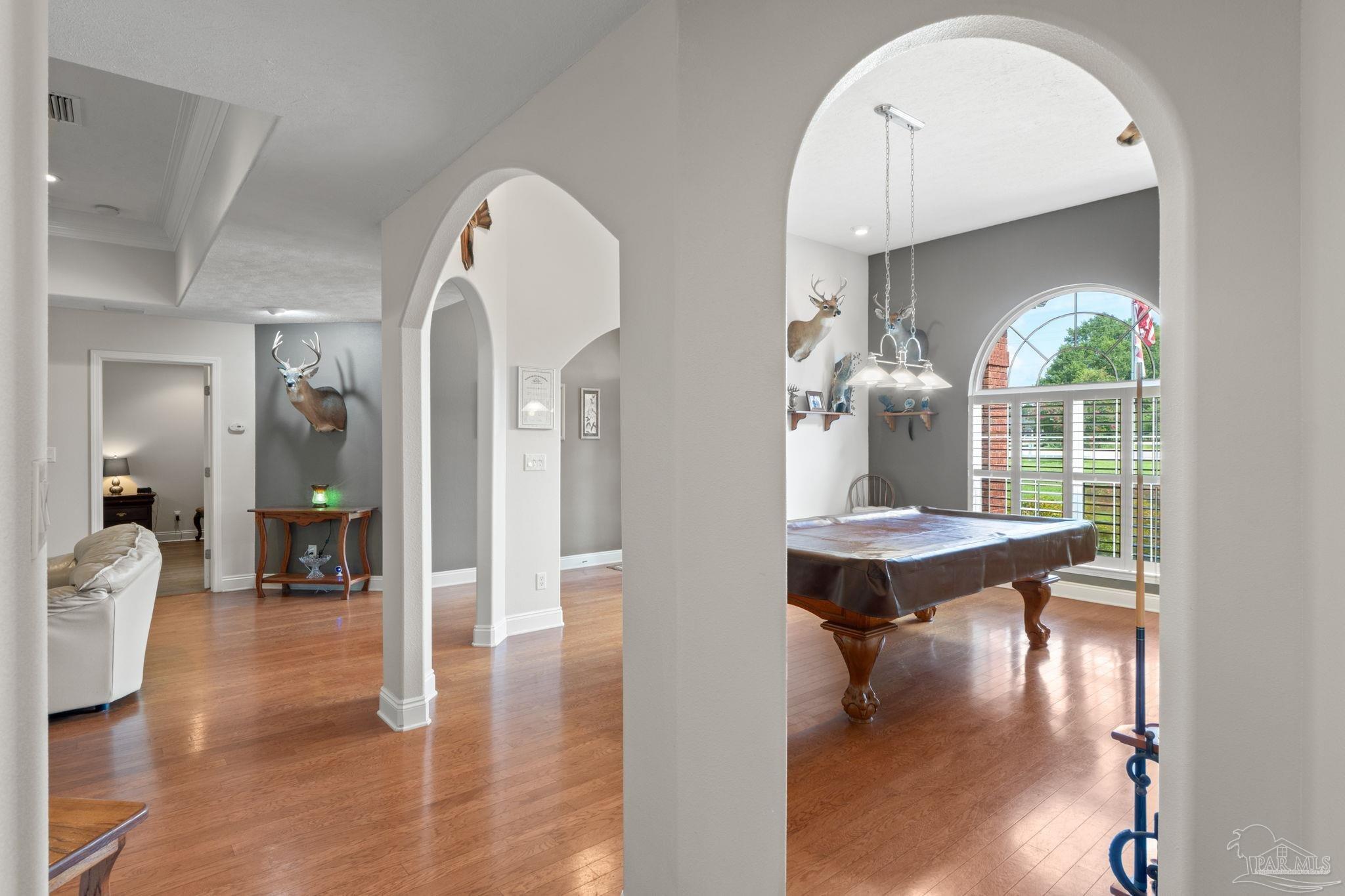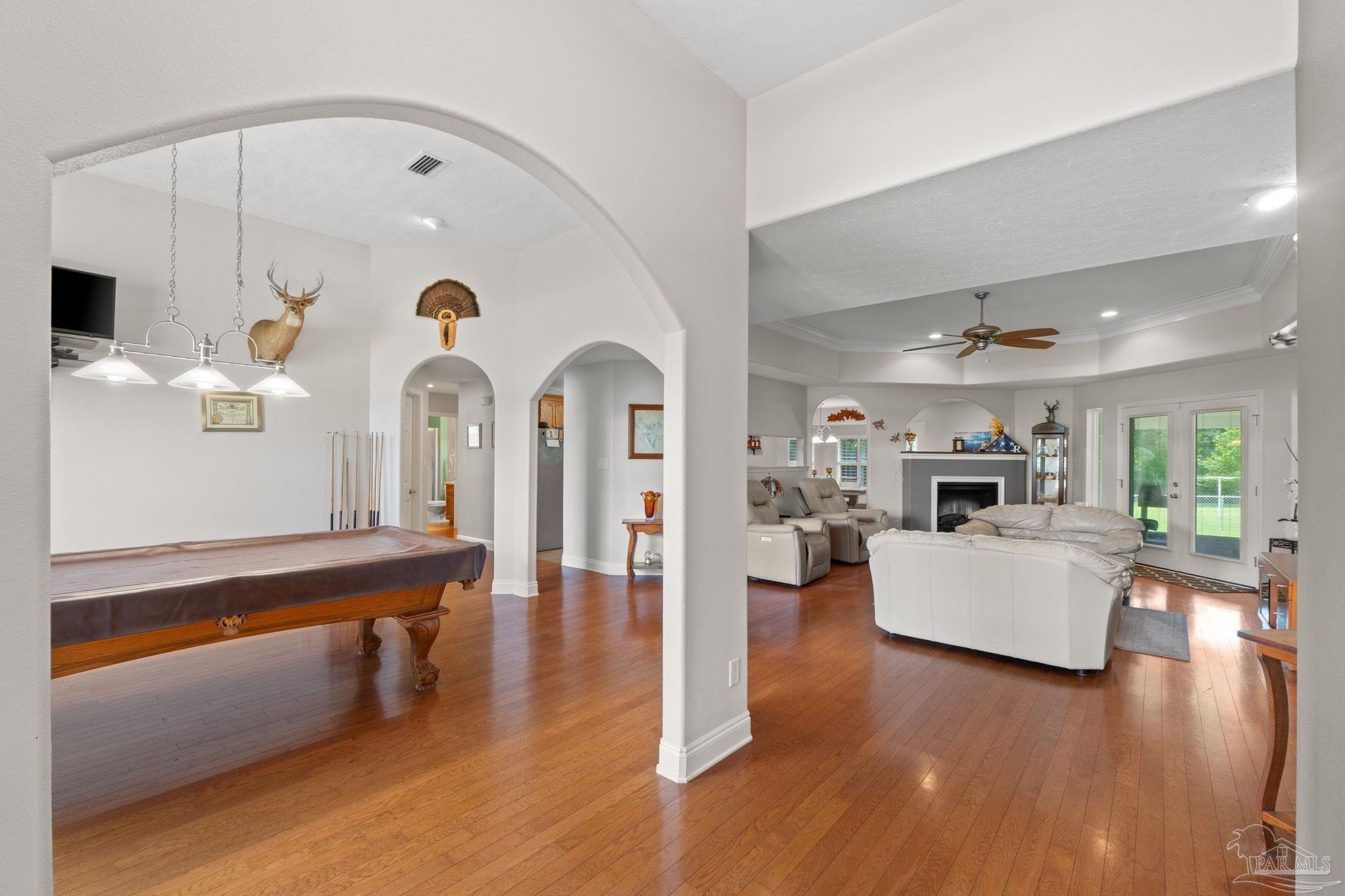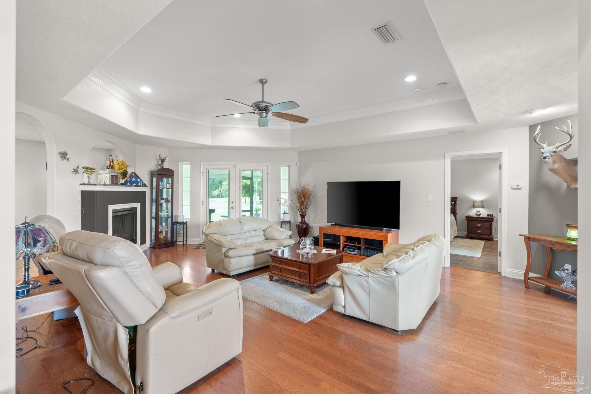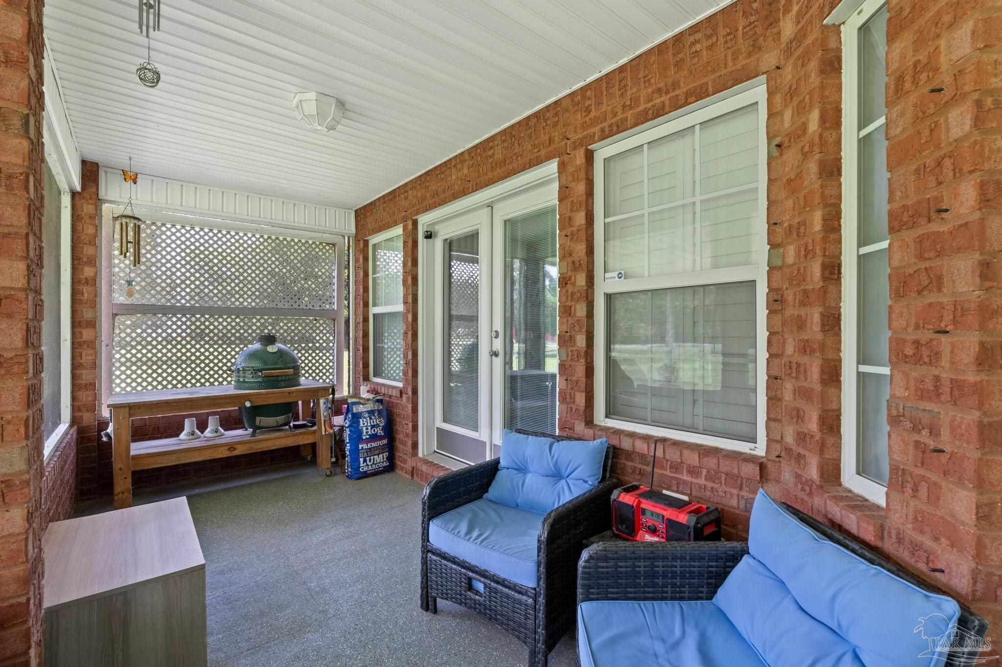 Beautiful Brick Country Estate on 7.5 Acres! Welcome to 4381 Molino Road, a charming brick country estate with space, character, and modern updates. Built in 2006, this 3-bedroom, 2-bath home offers 2,432 square feet of comfortable living space, set on 4 acres plus an adjoining 3.5 parcel for a total of 7.5 acres included in this listing. From the moment you arrive, you’ll be struck by the curb appeal: lush grass, classic white horse fencing along the road, a flagpole out front, and charming landscaping. Step inside to a warm foyer with rich hardwood floors, architectural windows, arched doorways, and a living room with a tray ceiling, and electric fireplace. The bright dining room and large kitchen are made for gathering, with stainless steel appliances, a pantry closet, and a spacious breakfast nook that fits a full-sized table. The primary suite features 2023 luxury vinyl plank flooring, its own tray ceiling, double doors to the screened porch, and a spa-like ensuite with a separate soaking tub and abundant natural light. Two additional bedrooms with plush carpet offer plenty of comfort for family or guests. Out back, you’ll enjoy a screened-in porch, covered patio, and expansive yard. The property also includes a large detached metal building and attached pole barn with 3 11ft bays that has both power and water, perfect for a workshop, storage, or hobbies. There is also another pole barn at the back of the property. Recent updates provide peace of mind: roof (2022), HVAC (2021), water heater (2022), concrete driveway, termite bond, and fabric hurricane shutters. This rare combination of acreage, upgrades, and country charm makes 4381 Molino Road a true fine. Don’t miss it!