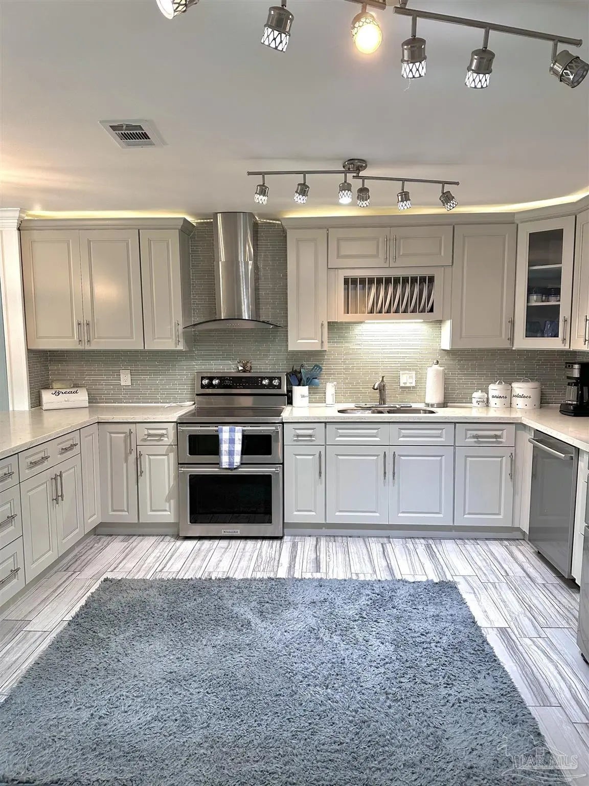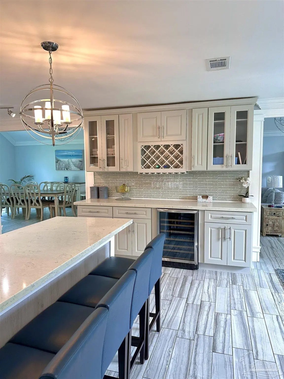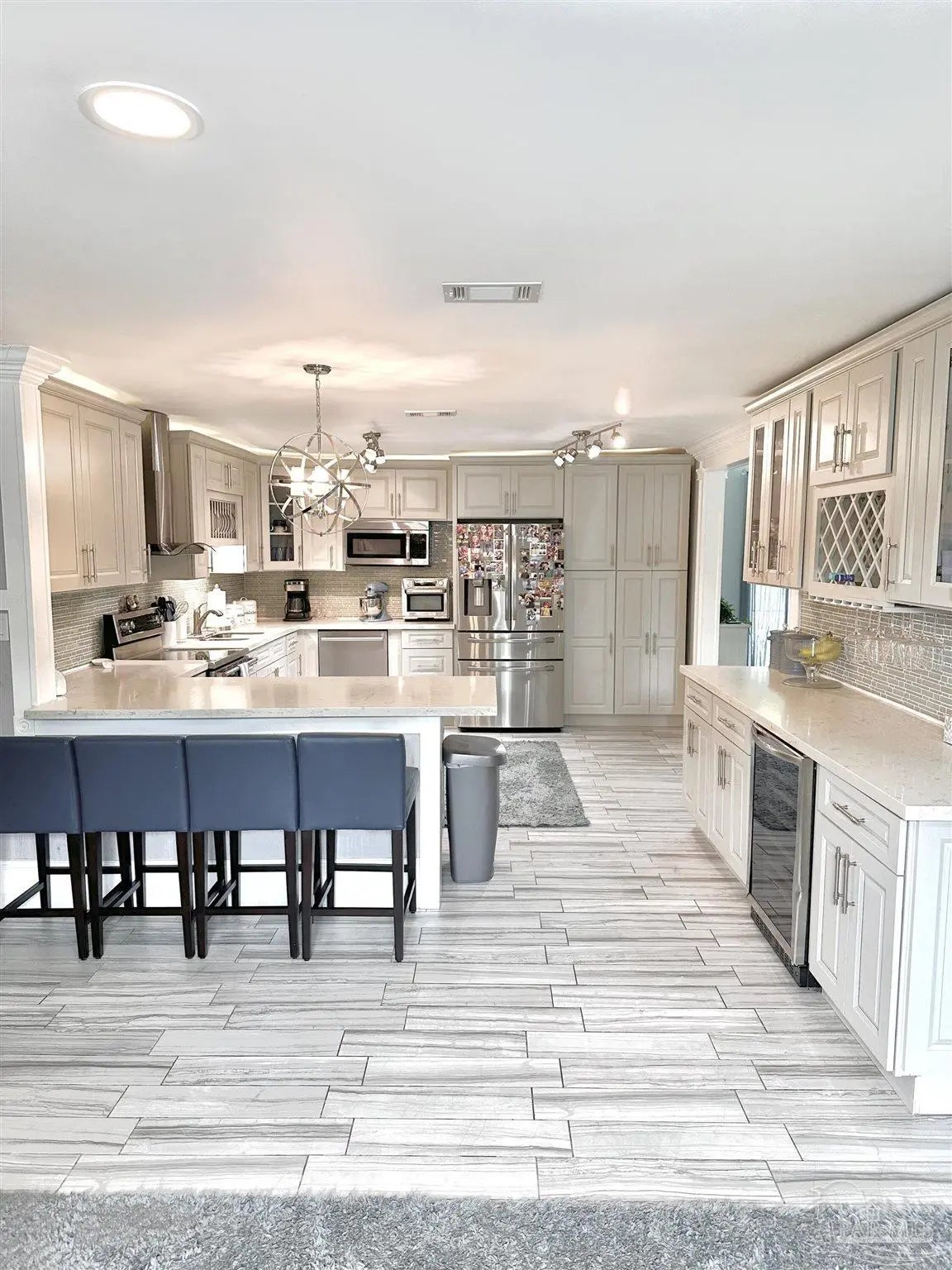 Live the Gulf Coast dream in this stunning 5-bed, 3-bath home with 3,262 sq. ft., den, and heated/cooled Florida sunroom—all backing to a serene bird preserve just 1 mile from Perdido Bay! Soaring vaulted ceilings, luxury tile floors, and a fully renovated quartz kitchen with stainless appliances set the stage. Entertain in style with a pergola dining area, 24x12 pool, and 60x20 party space with granite bar and sink. Relax in the private primary suite with jetted tub and walk-in closet. Newer roof, HVAC, and appliances, plus fenced yard with shed, lush landscaping, and mini vineyard. Gutted in 2019, and major remodeling done again in 2024 you don't want to miss this one! Available only due to relocation! This home in a quiet, no-through-traffic community near NAS is move-in ready and loaded with upgrades!