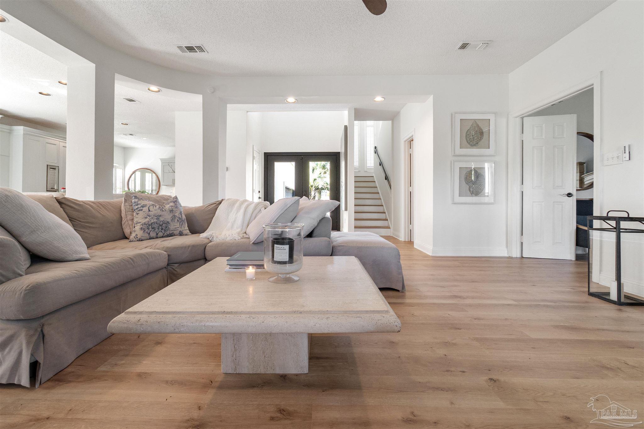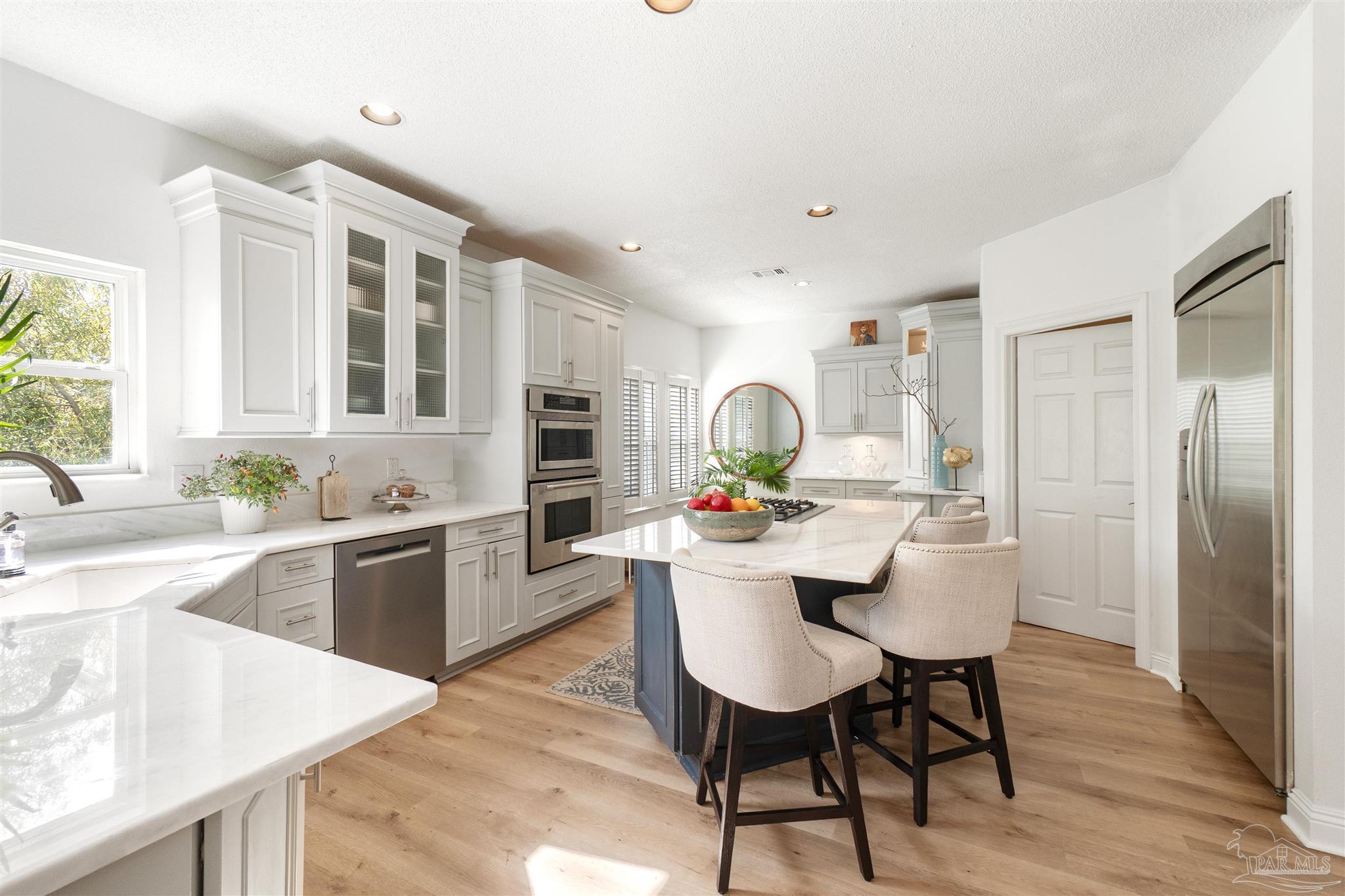 Seller offering $10,000 towards closing costs or rate buy down! Stunning custom home with water views of the soundside in sought-after Deer Point and Gulf Breeze Proper. Location is everything! Walk to Shoreline Park with nature trails and beach access. Only 4 miles to Pensacola Beach & 10 min to downtown Pensacola. Bright, open living with hardwood floors, gas fireplace, and screened lanais on both levels overlooking serene wetlands (protected and unbuildable), giving a private oasis. Chef’s kitchen with Thermador/Bosch appliances, built-in fridge, and new dolomite counters. Main-level master with 2 walk-in closets, garden tub & shower; upstairs in-law suite plus 2 more spacious bedrooms. Major 2023–24 updates: full interior paint, refinished floors, new marble bath tops, 2 smart HVAC systems, Two car garage, Wi-Fi irrigation, New Water Heater, roof reseal and so much more. Approved pool plans available. Zoned for all 3 top-rated Gulf Breeze schools in the heart of Gulf Breeze Proper. Schedule a private tour!