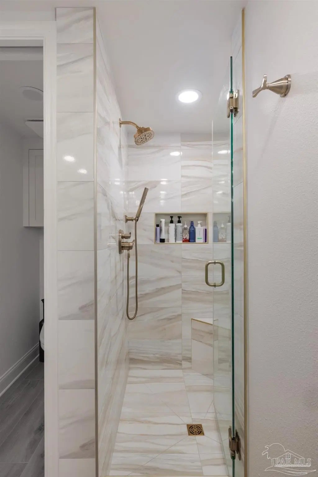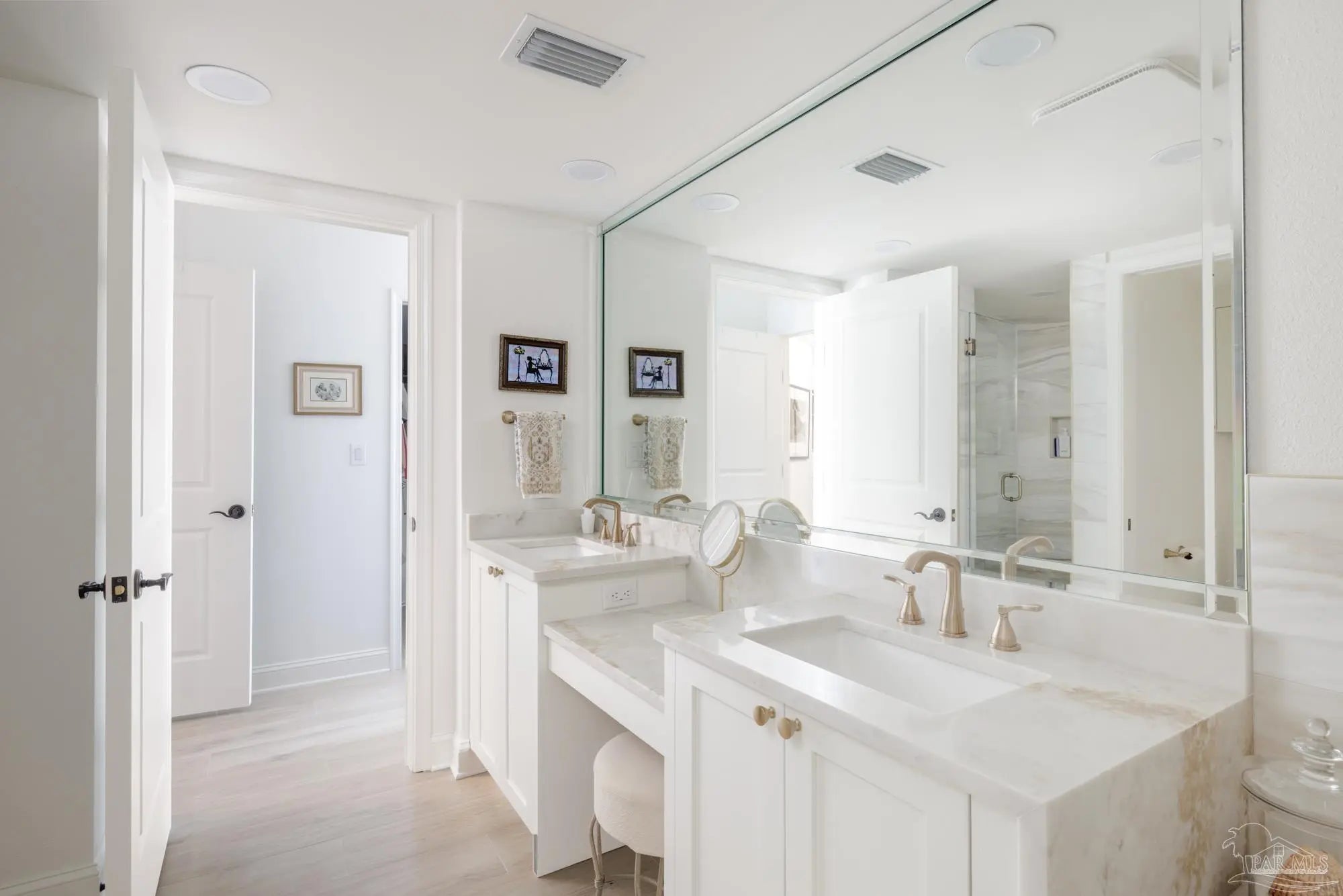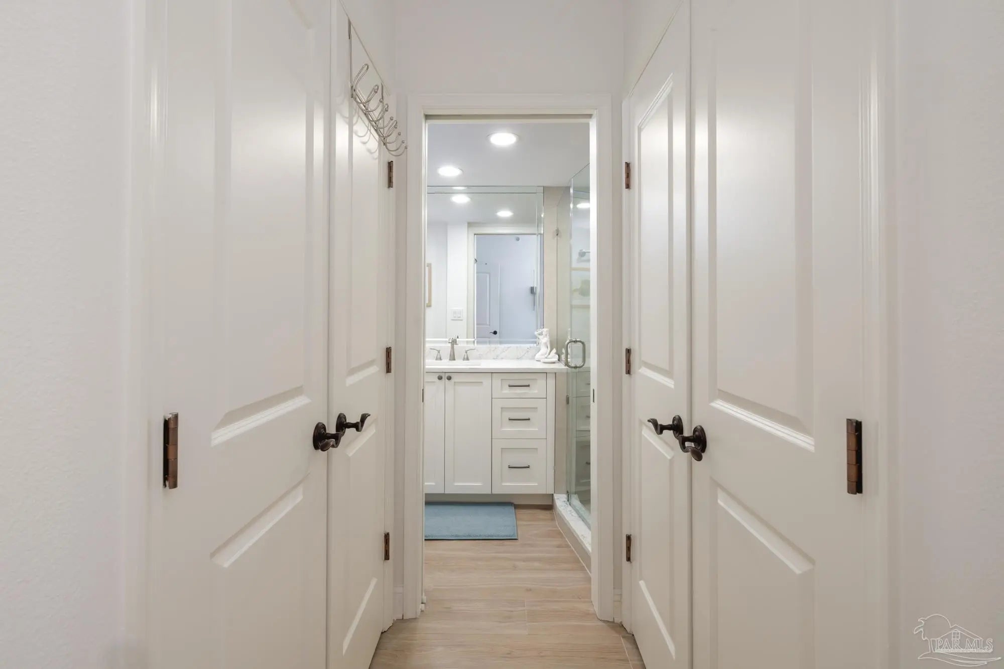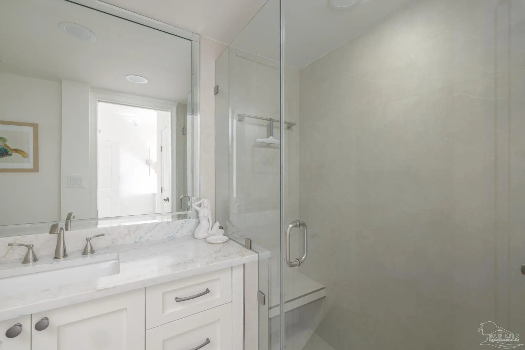 From the moment you enter this stunning Portofino condo, you’re surrounded by paradise. Expansive sapphire-blue water views fill every window, wrapping the home in coastal tranquility while complementing the thoughtfully designed interior. This three-bedroom residence in Tower One has been transformed into a timeless, contemporary retreat. Step through the foyer into open living spaces, where the newly remodeled kitchen (2025) flows seamlessly into the dining and living areas. The kitchen features stainless Café appliances—including a range with hood, ice maker, and wine fridge—set against elegant quartz and quartzite surfaces, a custom backsplash, and abundant cabinetry. A walk-in pantry provides added storage. Pocket doors off the kitchen lead to one of three bedrooms, complete with terrace views and convenient access to a full bath—ideal for guests. The living room showcases a built-in fireplace and entertainment center, all while offering sweeping views of both the Gulf of Mexico and Santa Rosa Sound. Sliding floor to ceiling glass doors that open to an expansive corner balcony. Out here, two spacious sitting areas and a built-in outdoor grill create the perfect setting for year-round entertaining. The primary suite offers direct terrace access, a walk-in closet, and a beautifully updated bath with granite waterfall counters and marble accents. A second bedroom opens to its own terrace, featuring twin closets and access to a third full bath. A laundry room completes the interior. Beyond the residence itself, enjoy the exclusive Portofino lifestyle—resort pools, on-site dining, and the beach just steps away. This is a rare opportunity to own a sophisticated coastal retreat with unmatched views and luxurious finishes.