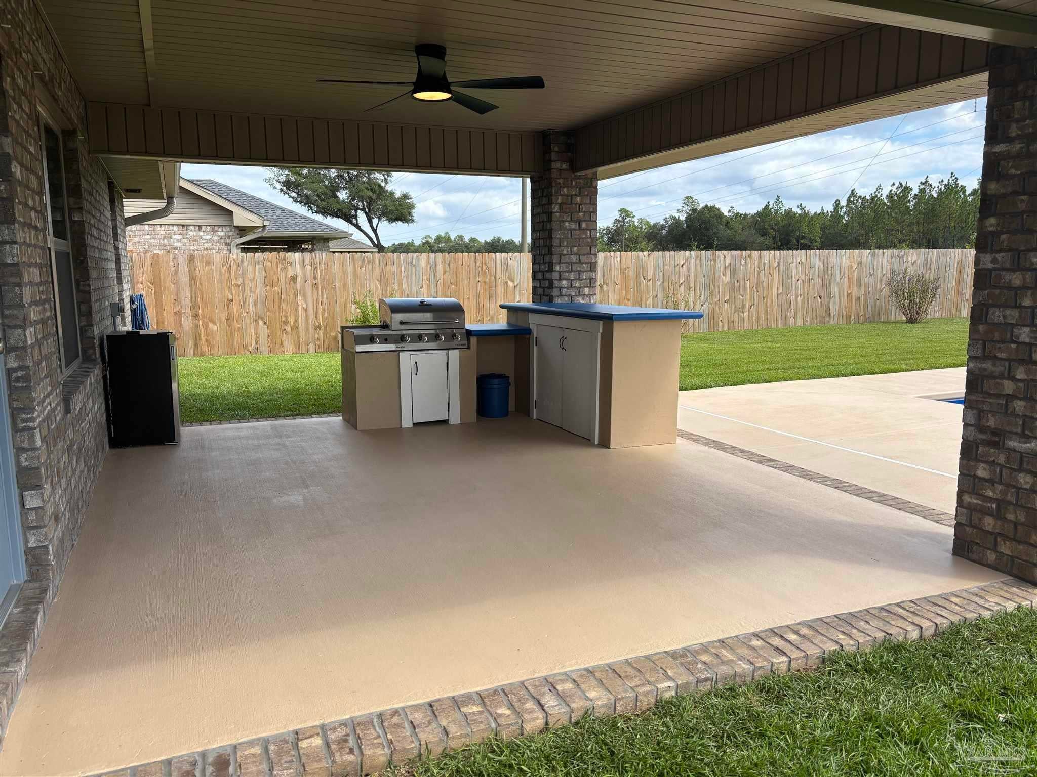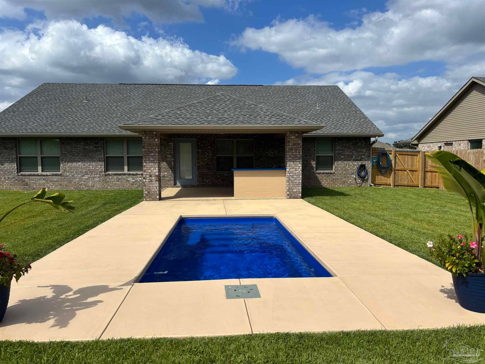 Pool has so many possibilities. It is a pool? hot tub? or cold plunge!! Beautiful home! Better then new!! Everything is done for you!! Ready to move in!! You'll love this beautiful Craftsman style all brick 4 bedroom 2-bath home. As you approach the home you are welcomed by an inviting covered front porch. Step inside and you will notice wains coating in the foyer and dining room. LVP flooring throughout the home. Beautiful accent beam has been added to the living area. The kitchen features custom made white shaker cabinets with beautiful granite countertops, tile backsplash and stainless steel Kitchen aide appliances. Microwave is also an air fryer! Step inside the laundry room and you will find stackable LG washer and dryer and custom made folding table. Retreat to the tranquil owners suite, a sanctuary of comfort and serenity. The owners ensuite bathroom has a double vanity, granite countertops with undermount sinks, a separate shower, and a garden tub with an obscure window over the tub. It is an oasis where you can unwind. The spacious walk-in closet will make all your organizational dreams come true. The remaining three bedrooms are also well-sized and offer flexibility for use as a guest room, home office, or playroom. The guest bathroom offers beautiful granite countertops as well. Home features wood blinds throughout. Step outside to an upgraded 14' x 16' covered back porch that is a perfect spot for outdoor cooking with a built in grill and bar. Outdoor refrigerator will hold all your beverages. Beyond porch you will be amazed by the fiberglass salt water heated or cooled plunge pool!!! Ready for you to sit and enjoy despite the outside temperature. Pool can be cooled to 42 degrees, or up to 104 degrees. Back yard is fully fenced in with 6 foot privacy fence. Home has gutters and sprinkler system. Vivint security system!! There is nothing left to do but move in!!!