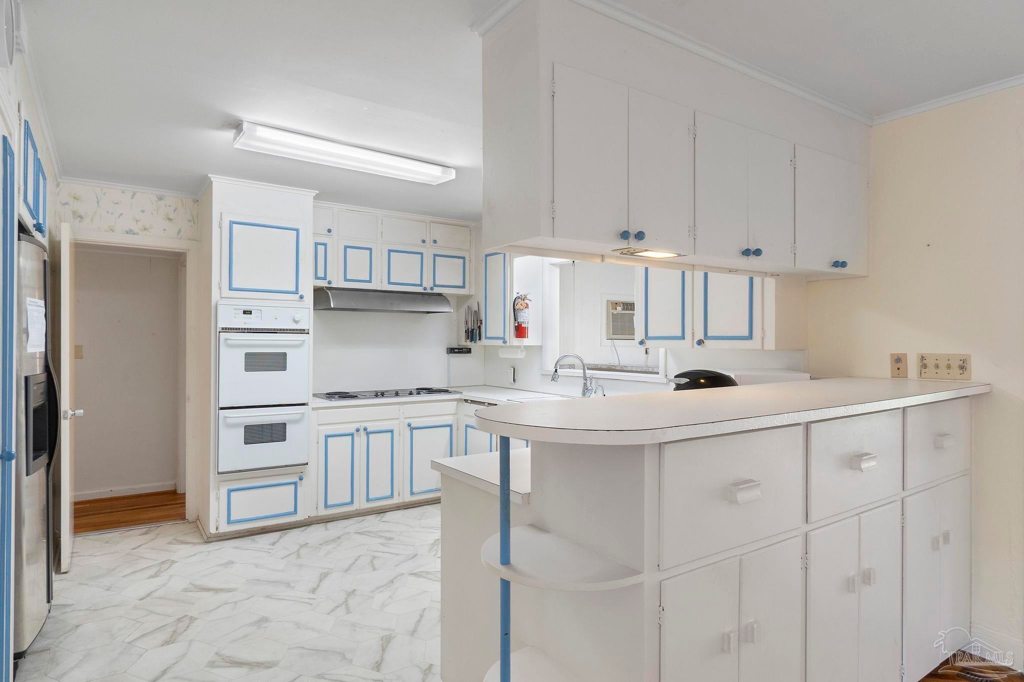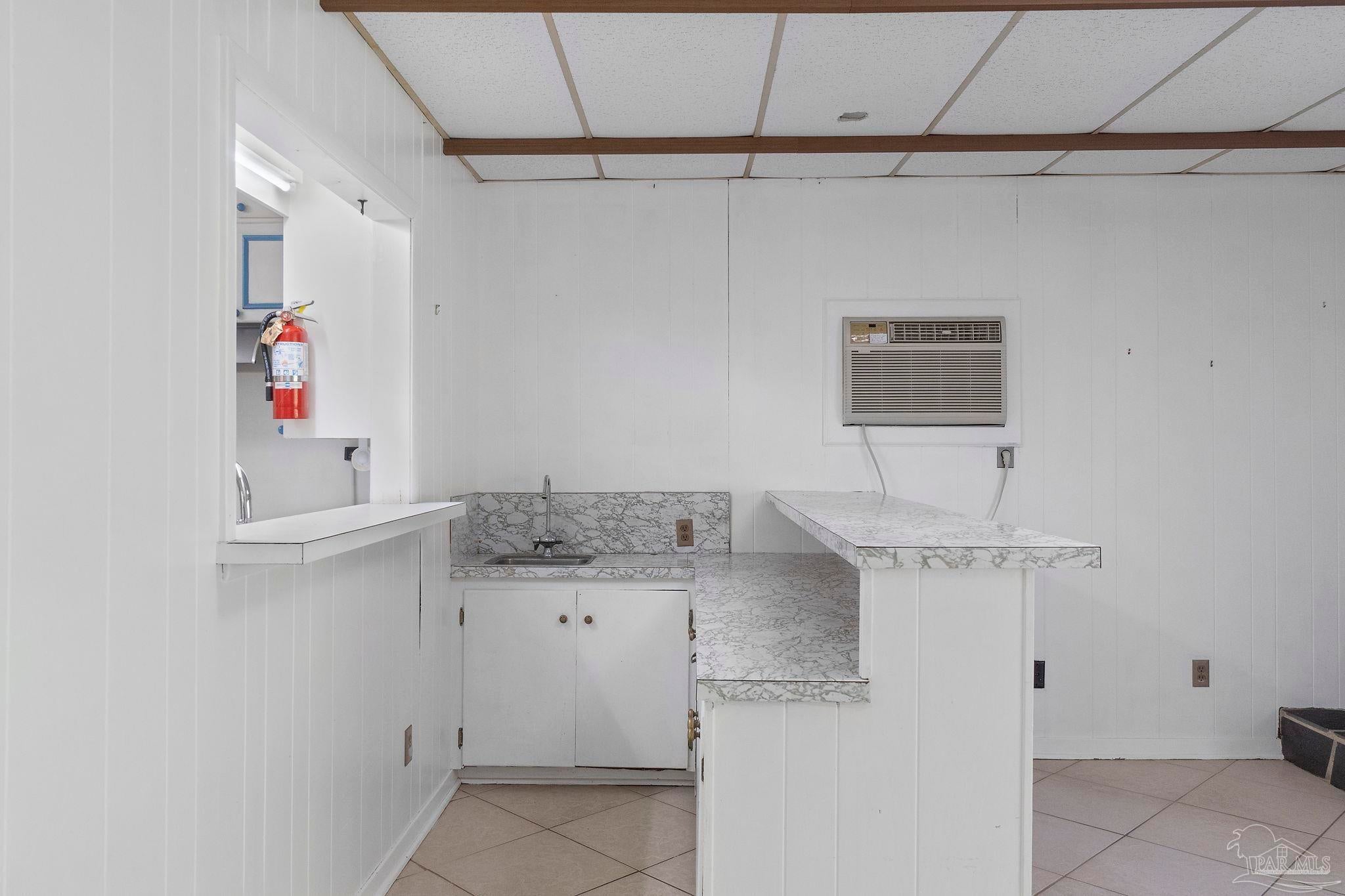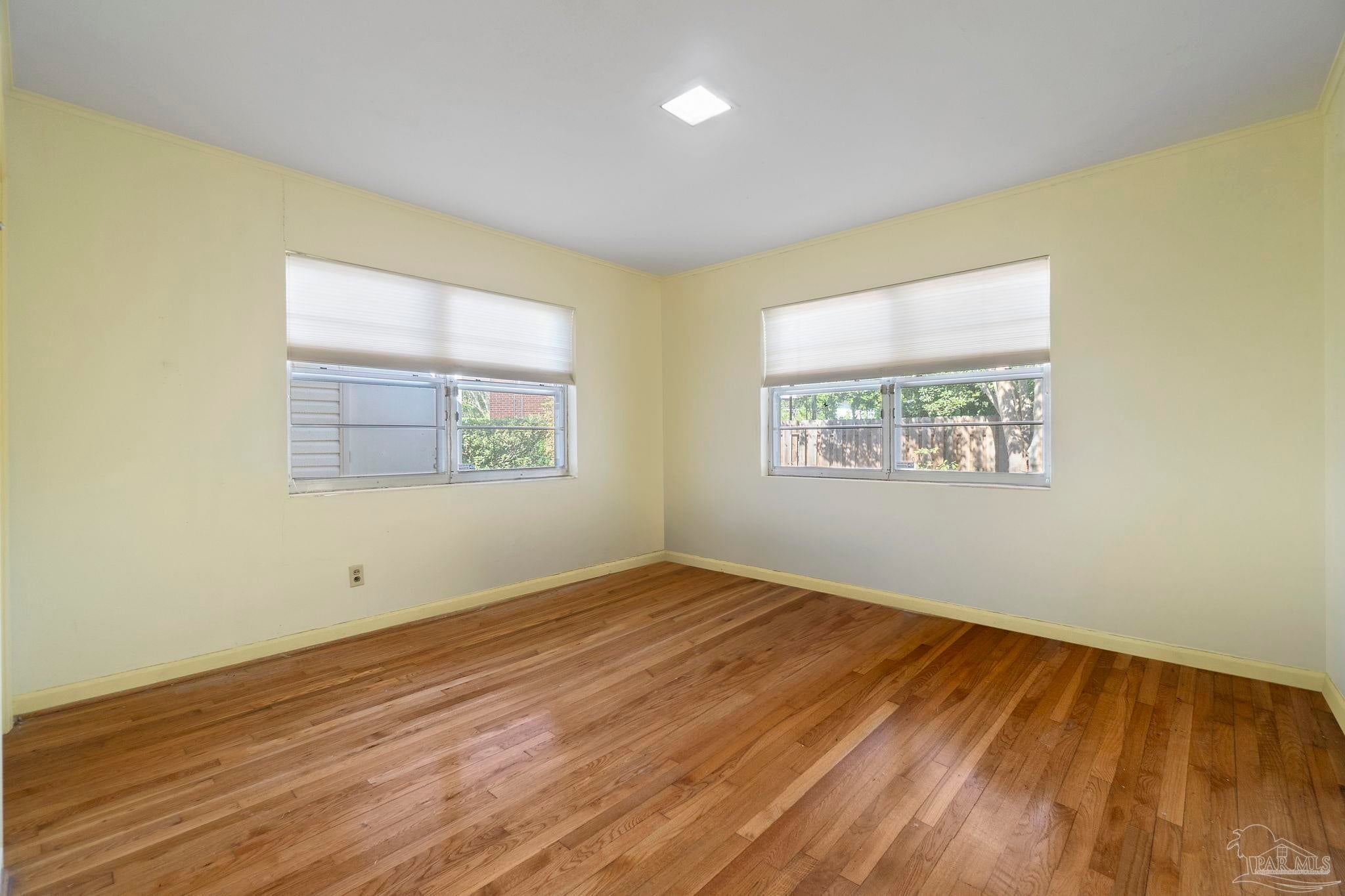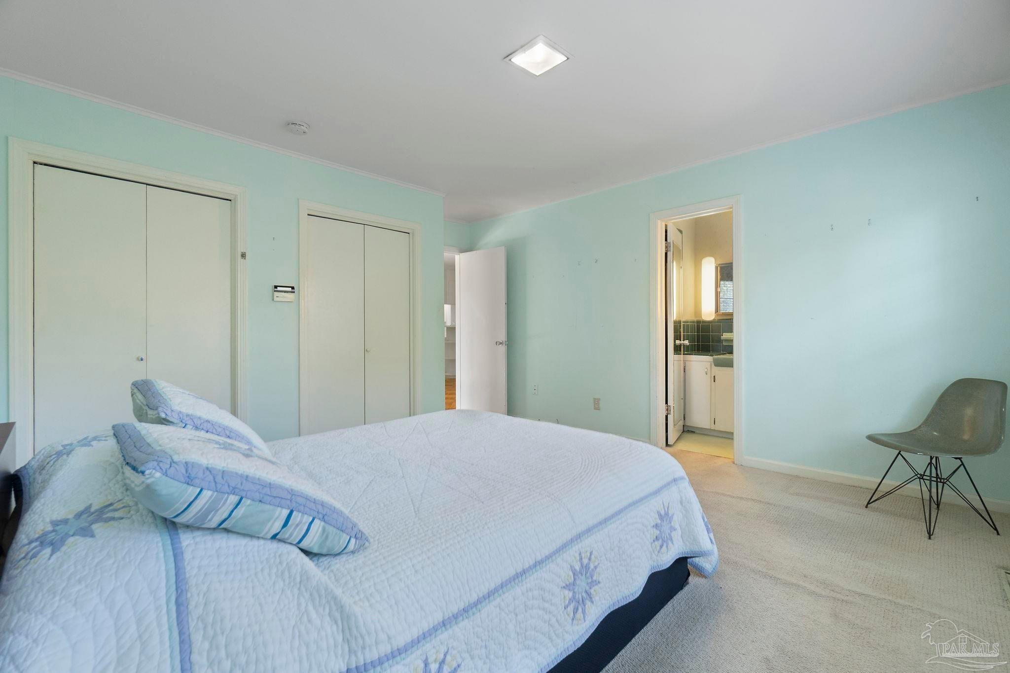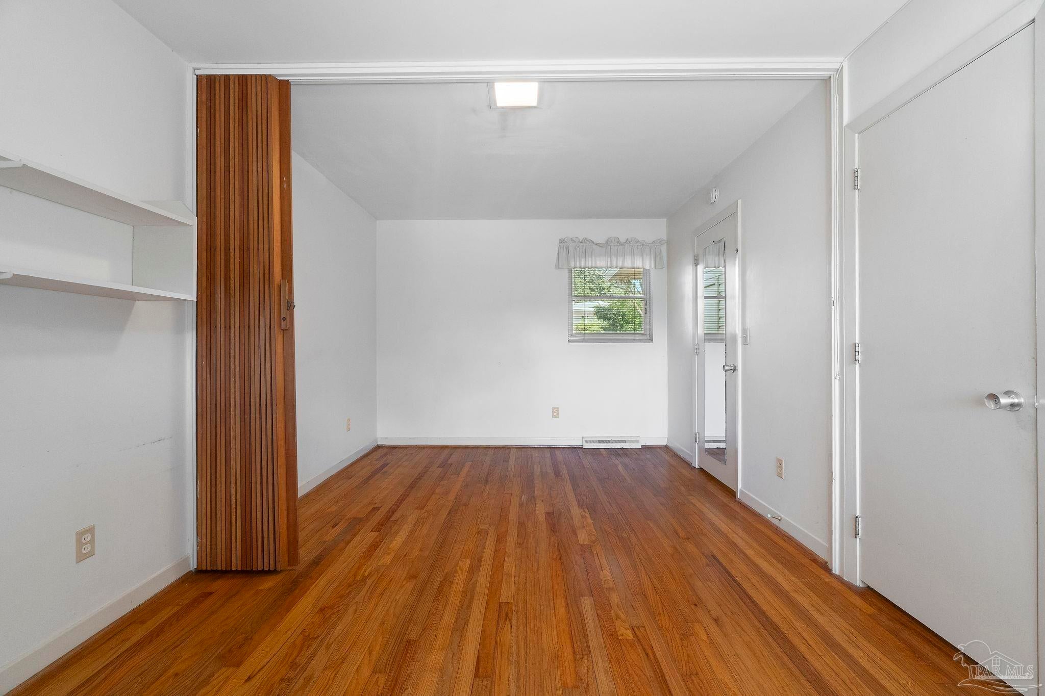 Welcome to this charming 5-bedroom, 2.5-bathroom home located on a desirable corner lot in beautiful Pensacola. This residence showcases distinctive Frank Lloyd Wright-inspired architectural elements that add both character and allure. Upon entering, you will appreciate the inviting living area, featuring a cozy wood-burning fireplace, built in fish tank with a large, picturesque window to let in the natural light & hardwood parquet-style flooring. Underneath the existing carpeting in the home, the hardwood flooring presents an opportunity for elegant restoration. The thoughtfully designed split floor plan places a primary suite on each side of the home, enhancing privacy and functionality. At the rear, a spacious family room awaits, complete with exquisite built-in shelves, electric fireplace and a wet bar, perfect for entertaining or casual gatherings. This room is illuminated by natural light, thanks to its access to the lush, fully fenced backyard, providing a serene outdoor escape. The backyard is highlighted by extensive landscaping, offering a vivid array of plants that create a picturesque setting for relaxation or outdoor activities. Additionally an exterior shed for tools and garden supplies and a workshop area catering to hobbyists or those needing extra space. An intriguing aspect of this property is the bomb shelter located in the side yard, available for viewing upon signing a hold harmless agreement. This unique feature adds an element of historical interest and functionality. This home’s remarkable features combined with its ideal location with a park across the street with beautiful mature large oak trees, trails, and that property will never be built on make it a perfect choice for those seeking both character and comfort. Don’t miss the opportunity to make this distinctive property your own!