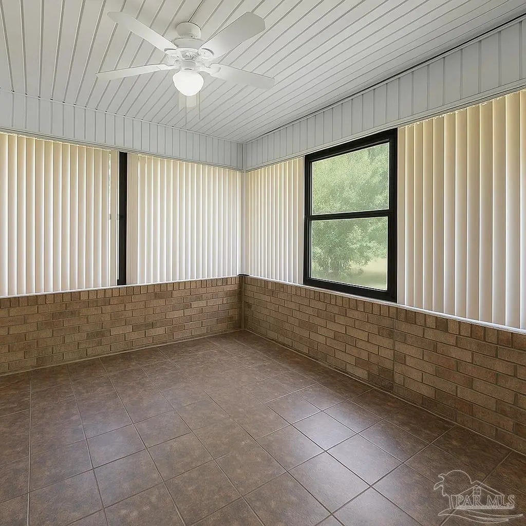 - Baseboards, Cathedral Ceiling(s), Ceiling Fan(s), High Ceilings, Sun Room