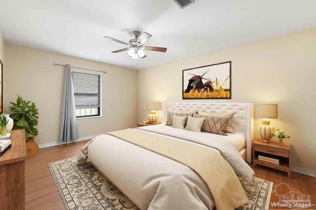 Say hello to easy living in this comfortable 3 bedroom 2 bathroom home located in the desirable Cooper Forest Estates neighborhood. This peaceful community offers privacy, mature trees, and beautiful landscaping, with each home featuring its own unique character. Conveniently located near I-10, it provides easy access to shopping, dining, and everything the Pensacola area has to offer. The large front porch is perfect for morning coffee and sets a welcoming tone right from the start. Inside, you’ll find an inviting entryway that leads into a bright living room with a cozy gas fireplace and ceiling fan to keep things comfortable. The kitchen and dining area flow nicely together and include plenty of cabinet space, updated appliances, and access to the Florida room ideal for relaxing or entertaining. The split floor plan gives the primary suite some extra privacy and includes double closets, a ceiling fan, access to the Florida room, and an ensuite bath with a double vanity and a large walk-in shower. Other highlights include an indoor laundry room, a spacious covered patio out back, and a fully fenced backyard with plenty of room to enjoy the outdoors. The roof and water heater were replaced in 2023, and the kitchen appliances have been updated as well. Call today to schedule your personal tour of this wonderful home in Cooper Forest Estates.