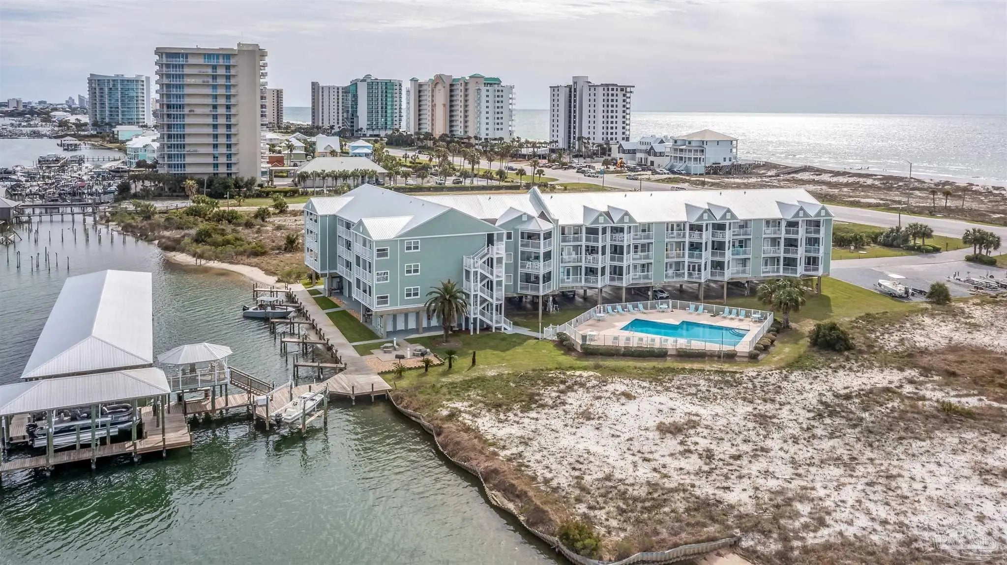 Waterfront Living at its finest! This pristine condo is situated along the Intracoastal Waterway, offering captivating water views from every room. Relax on the spacious, tiled balcony as boats glide past, or step inside to a beautifully appointed kitchen featuring custom cabinetry and granite countertops. The condo features durable tile and luxury vinyl plank flooring throughout, complemented by a tasteful neutral color scheme. Hurricane-rated sliding glass doors connect both the living area and primary suite to the balcony. Located in the sought-after, low-density Jubilee Landing, this property offers quick Gulf access and is less than a mile from the iconic Flora-Bama. Owners enjoy covered parking, exterior storage lockers, boat and trailer storage, and first-come, first-serve boat slips! Short-term rentals are permitted, making this an ideal investment or personal retreat. Don’t miss this opportunity—schedule your showing today!