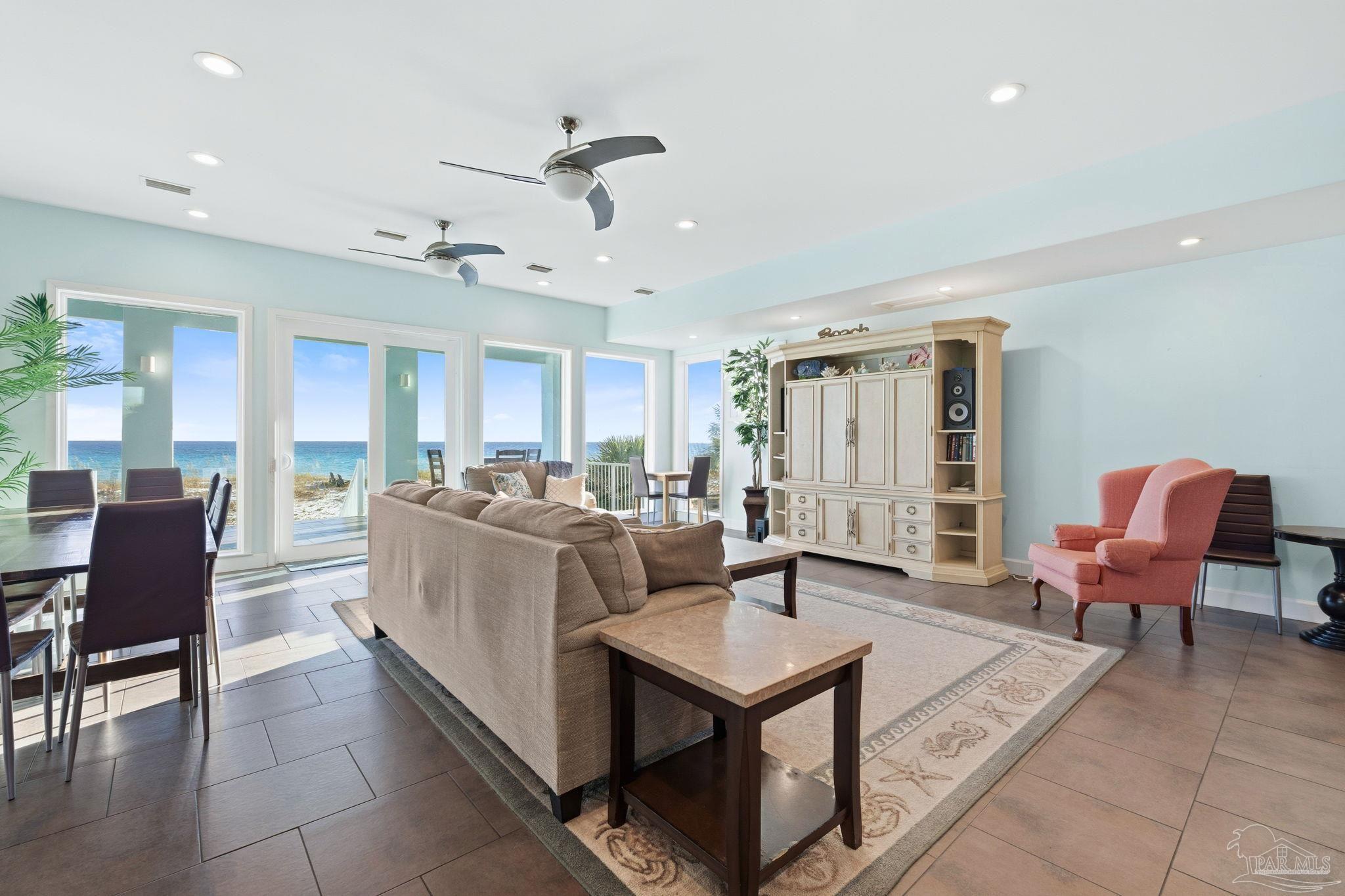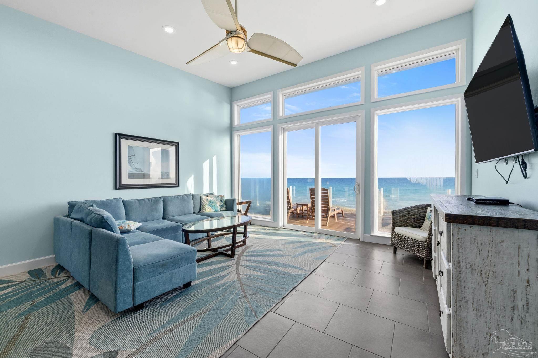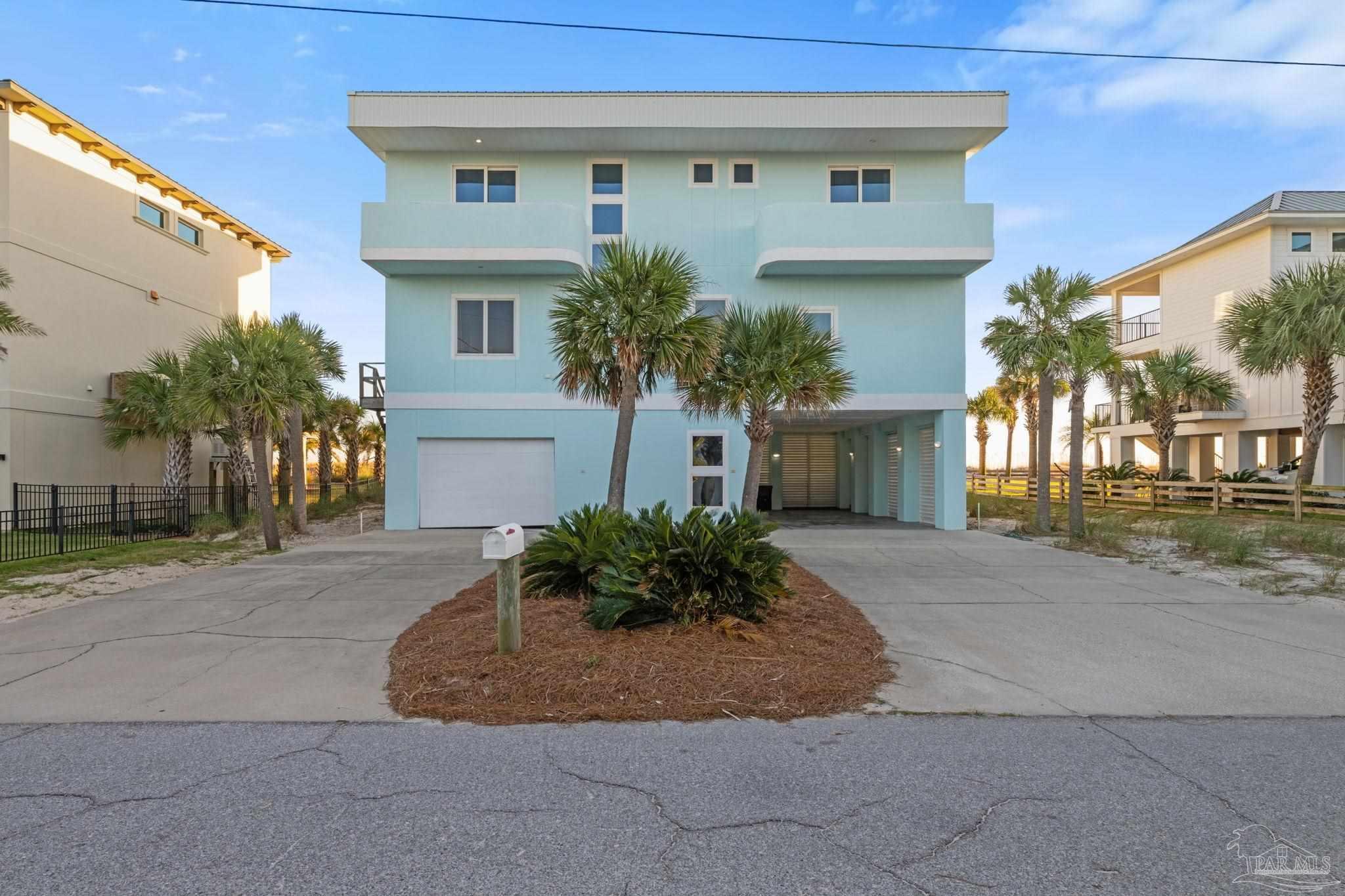 WOW — you can’t get closer to the Gulf, and the view from this stunning home will take your breath away. Located in the coveted first residential block of Ariola Drive, this impressive 4,000+ square foot home sits directly on the sand and offers unmatched access to the emerald waters, sugar-white beaches, and the vibrant dining and entertainment scene. With six bedrooms, five of them featuring en-suite bathrooms, and two expansive living spaces, the home was designed for both comfort and convenience. The first level welcomes you with ample private parking for up to six cars, an outdoor shower, and a grilling area. Upstairs, the main floor features a spacious open-concept living and dining area with seating for large gatherings, a full-size kitchen with bar seating, a wet bar, and a laundry room. A king suite with en-suite bath, an additional guest bedroom, and a full bathroom complete the space. Massive covered decks extend the living area outdoors, where you can enjoy panoramic views and the soothing sound of the waves. The second floor offers a second living area with an efficiency-style kitchen, perfect for additional guests or entertaining. Here you’ll also find four bedrooms, including two gulf-front king suites with private baths and balcony access, a third king suite with en-suite bath, and a versatile guest room with a queen bed and twin bunk and en suite. Enjoy being the closest you can be to the Gulf and Restaurants!