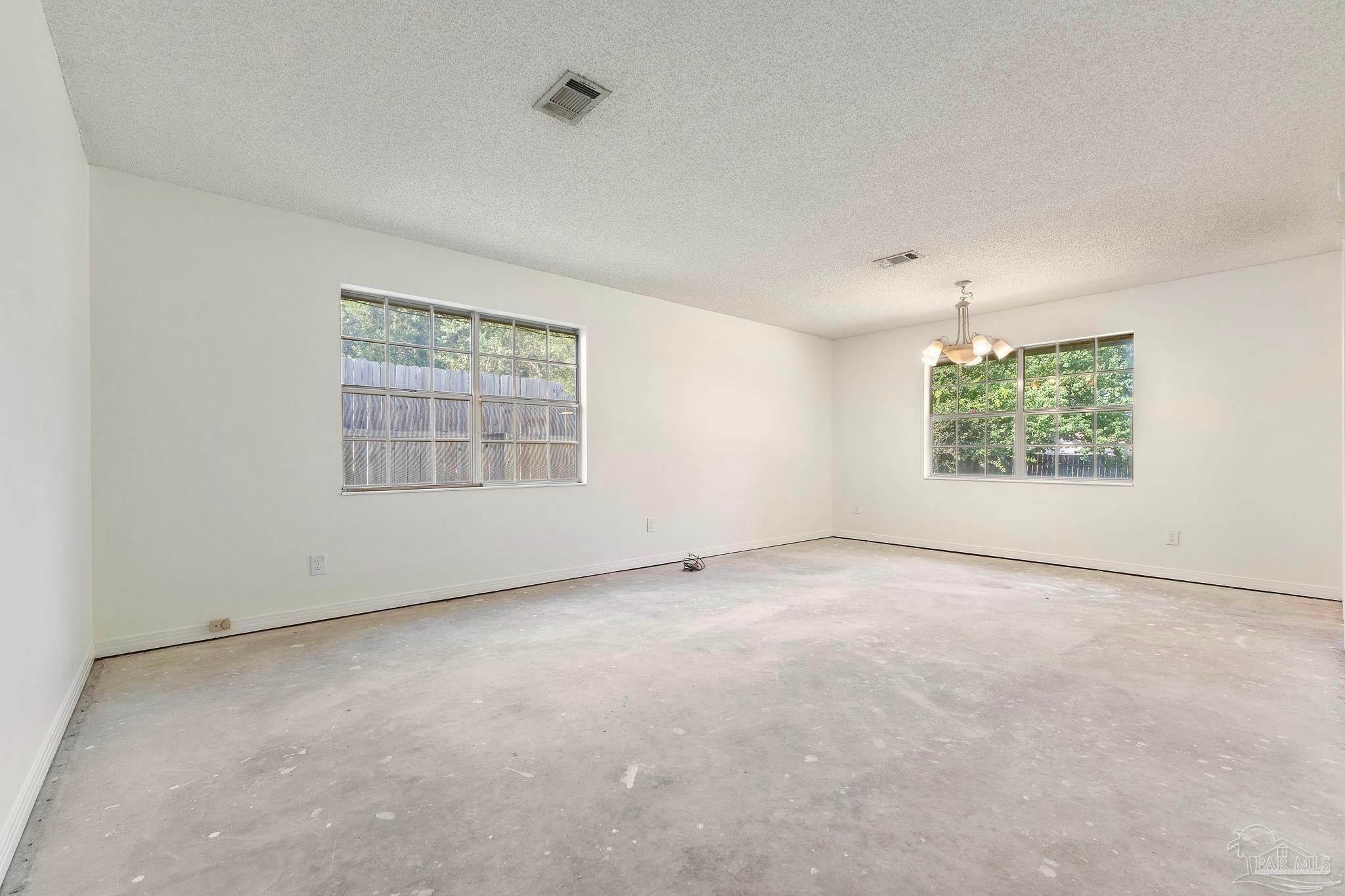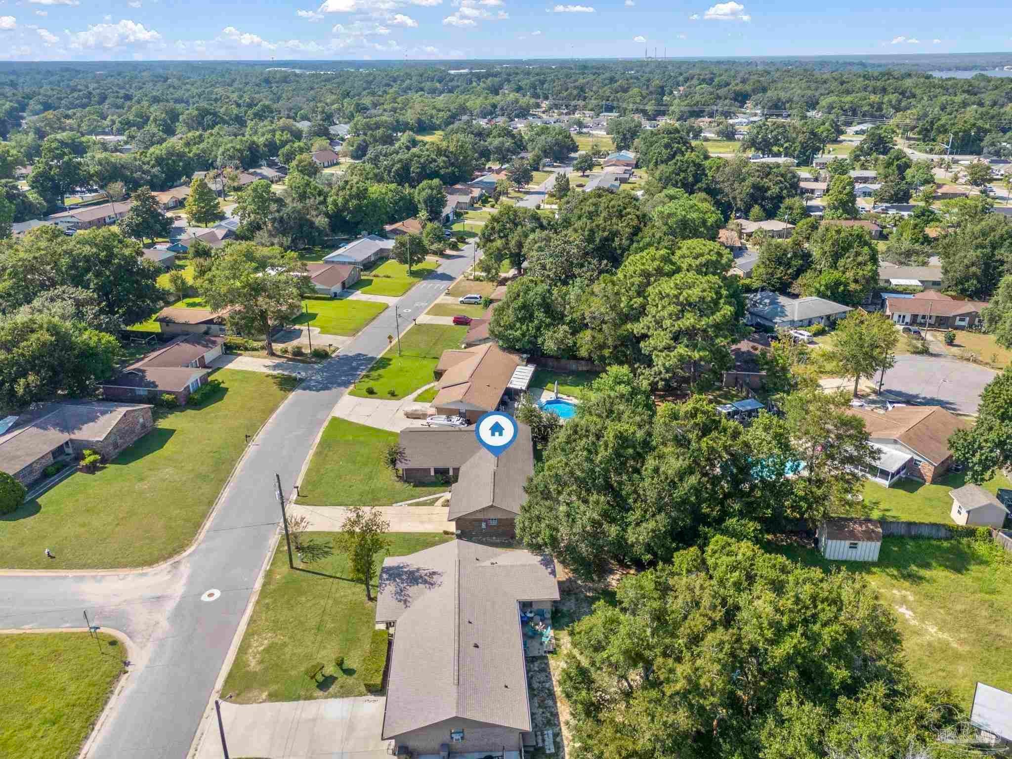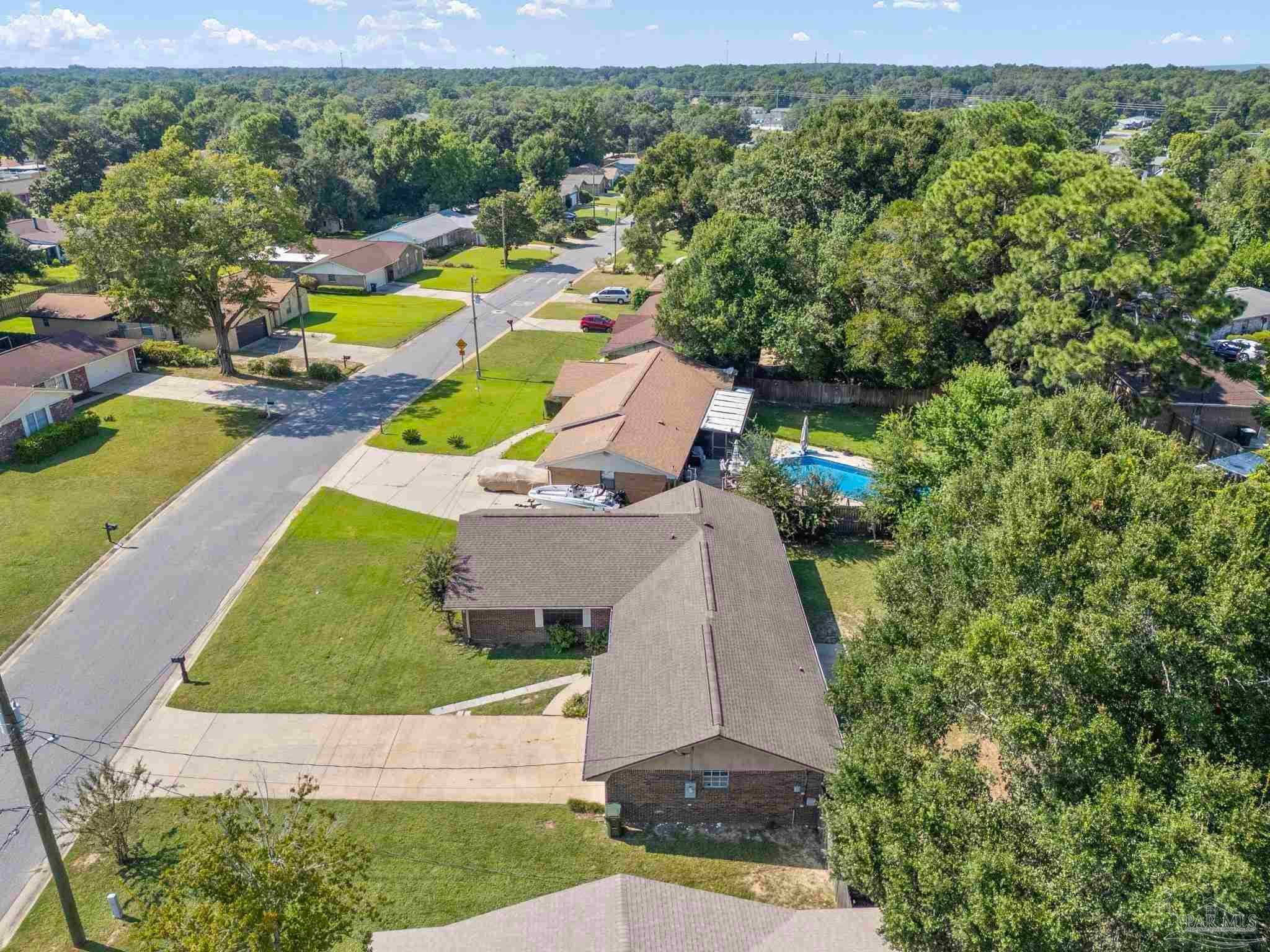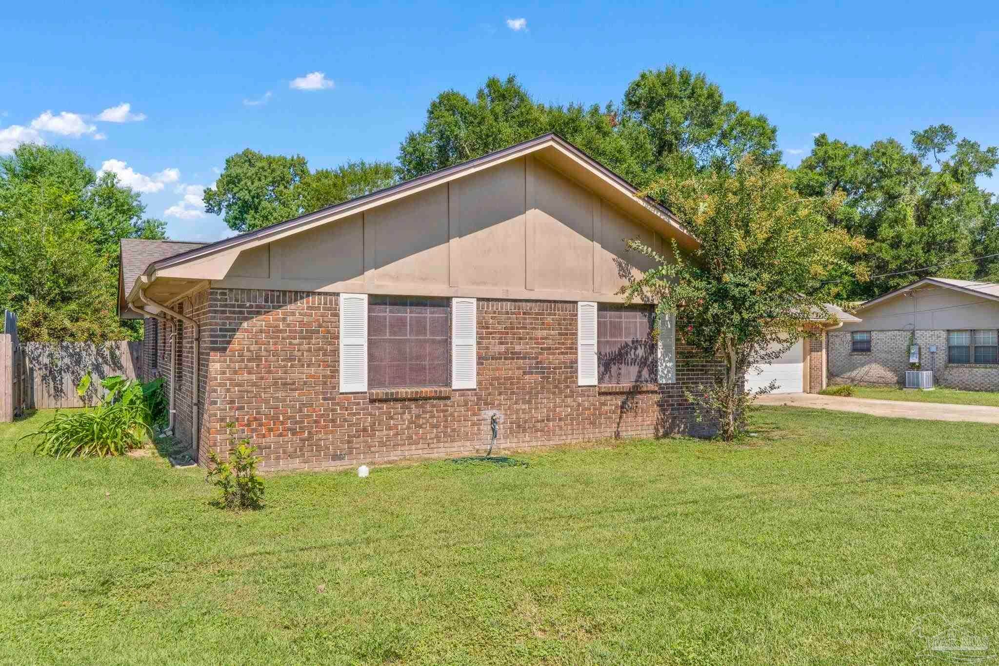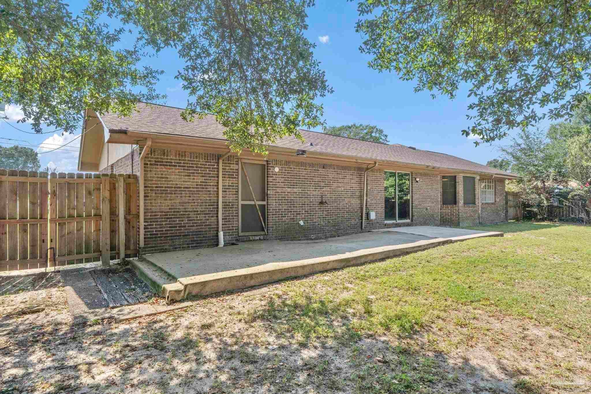 WOW! NEW PRICE! This all-brick home has already had the heavy lifting done—newer roof (2020), HVAC (2018), full electrical rewire (2020), and brand-new water heater (2025)—so you can focus on the fun stuff: flooring, finishes, and style. Inside, you’ll find a freshly painted backdrop that’s basically a clean slate for your ideas. The layout is roomy and flexible with a spacious living/dining combo, bonus den with retro wood paneling (hello, mid-century makeover!), and an eat-in kitchen with a sweet bump-out window. Some appliances are in place if you want them—but imagine the sleek new set you could slide right in! The primary suite has its own bath and spacious closet, while the hall bath is set up and waiting for your glow-up. Most of the flooring is already out, saving you the demo work and making it ridiculously easy to drop in the style you love. Step through the sliding doors and you’ve got a backyard made for gatherings, with camellias adding charm and a neighboring oak bringing shade. Add a grill, some string lights, and you’ve got instant weekend vibes - with plenty of room for a pool or the outdoor kitchen of your dreams! Practical perks like gutters, multiple closets, garage storage, and washer/dryer hookups keep daily life running smoothly, while the location puts you minutes from shopping, schools, restaurants, and commuter routes. Regency Park is just down the street too! This 10-acre community park has a covered pavilion, playground, .33-mile exercise path, Lonnie G. Jones dog park, basketball court, security lights and picnic area. The park also has lots of open space for other recreational activities. Think of this as the perfect project without the scary stuff: the big-ticket updates are done, the blank canvas is waiting, and the creative control is all yours. This home is ready for its next chapter—are you?