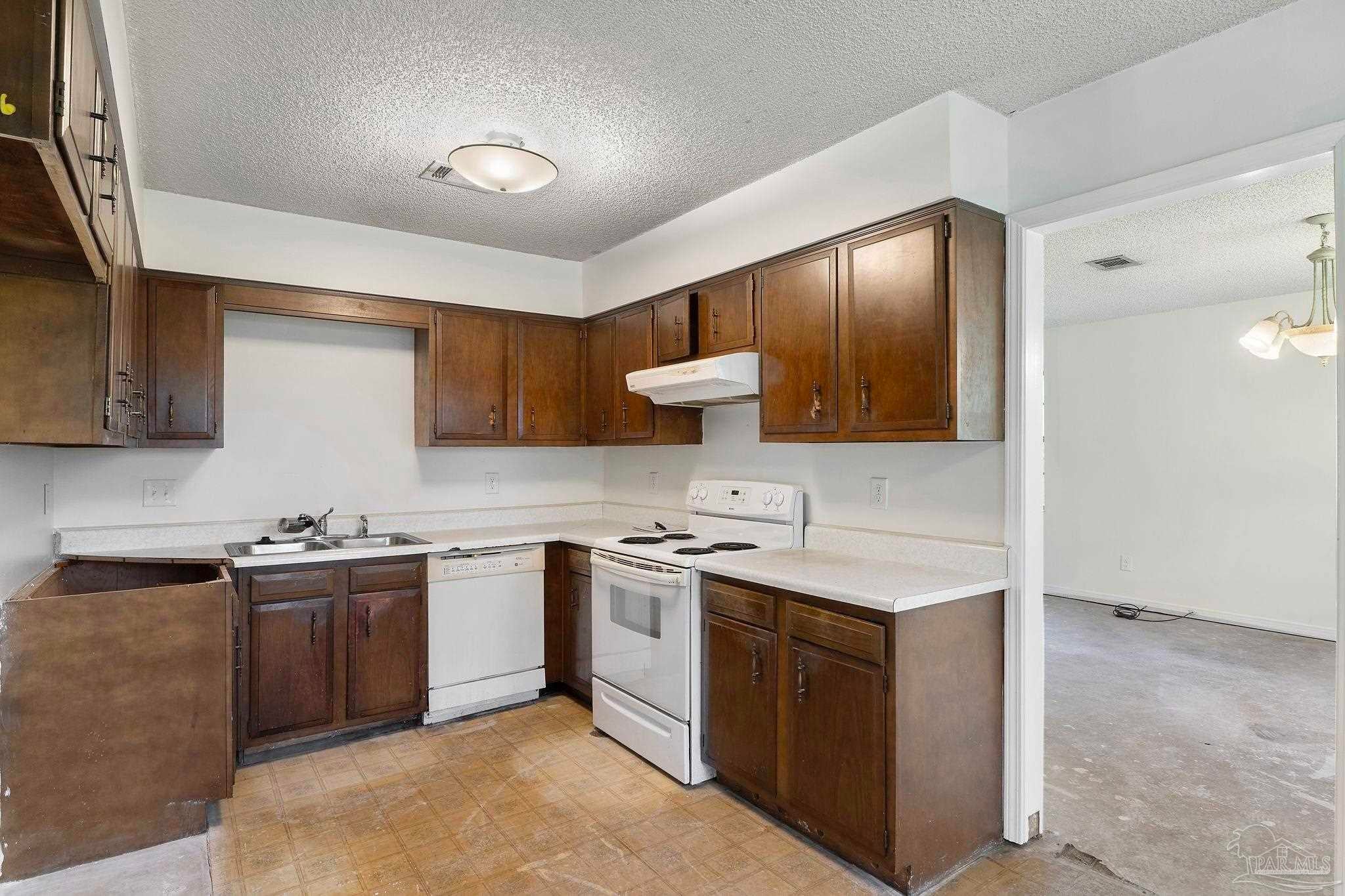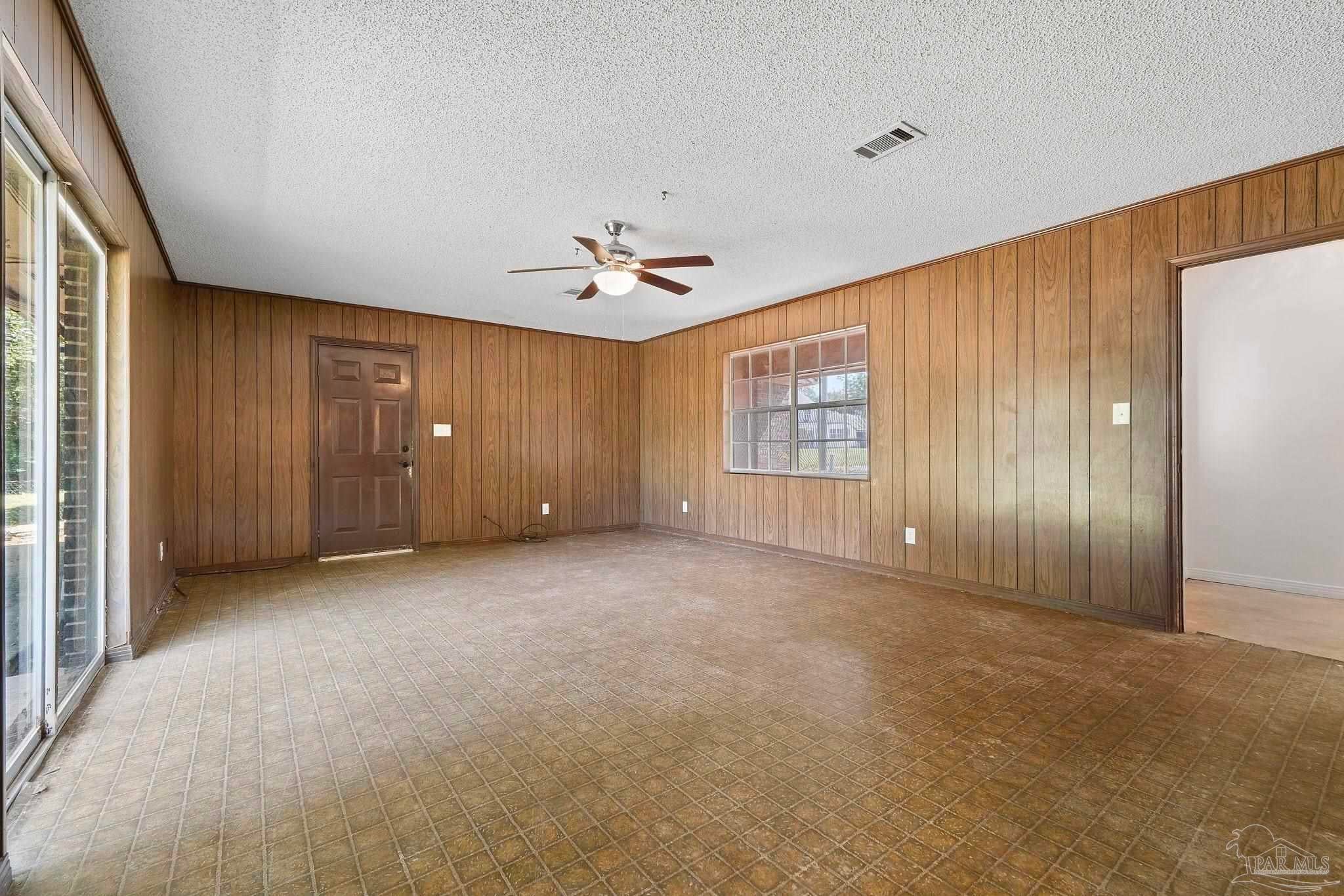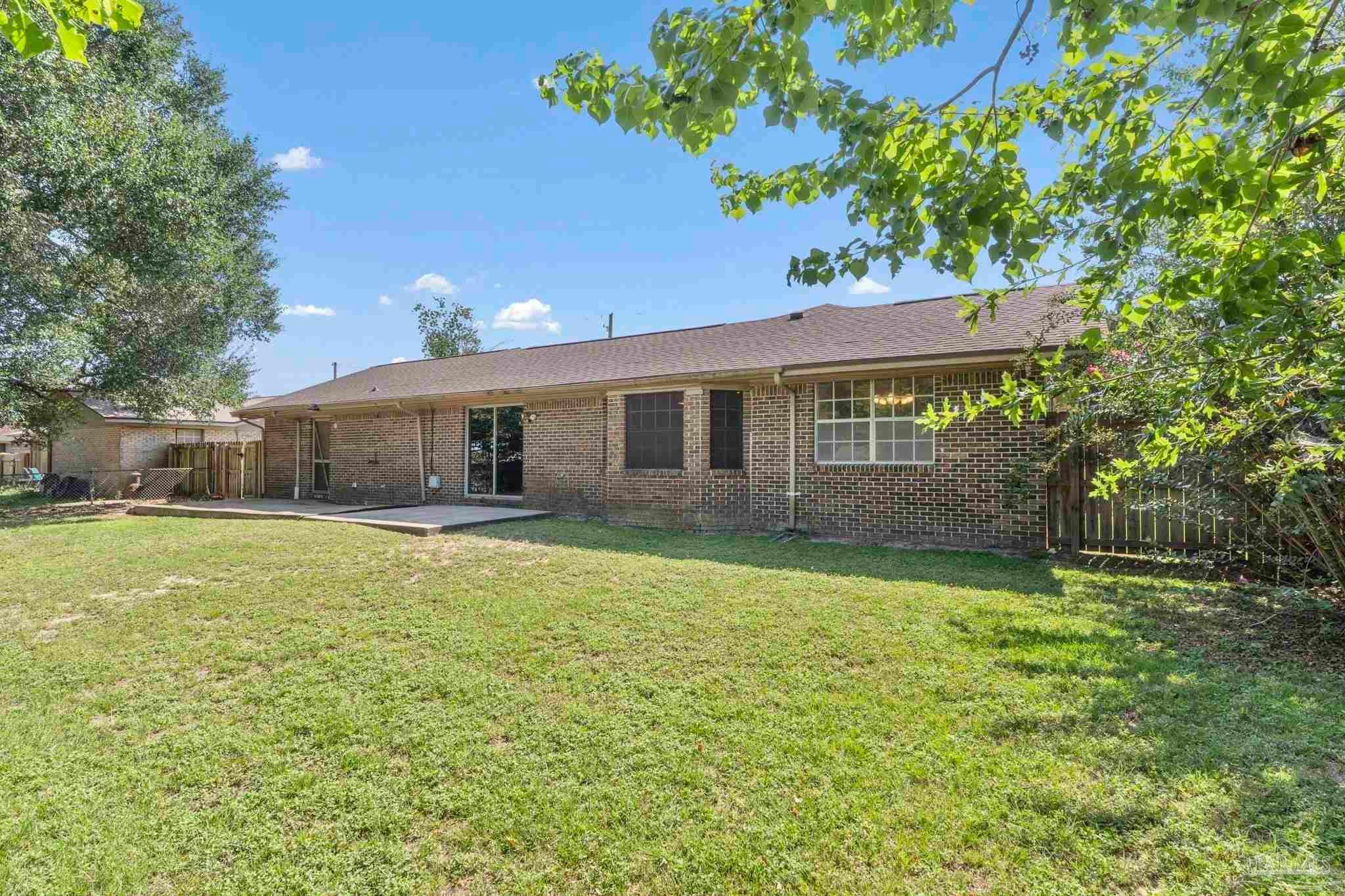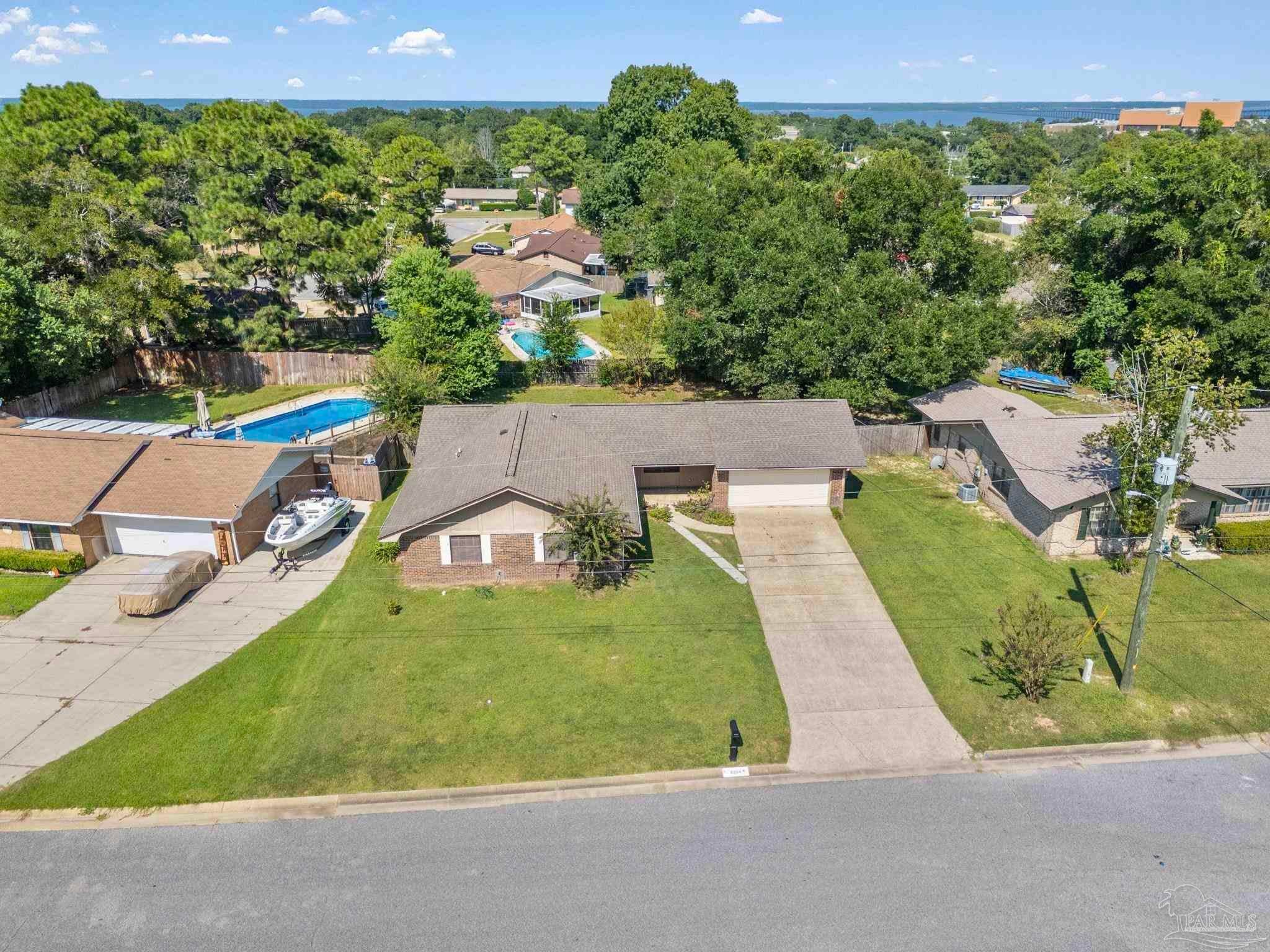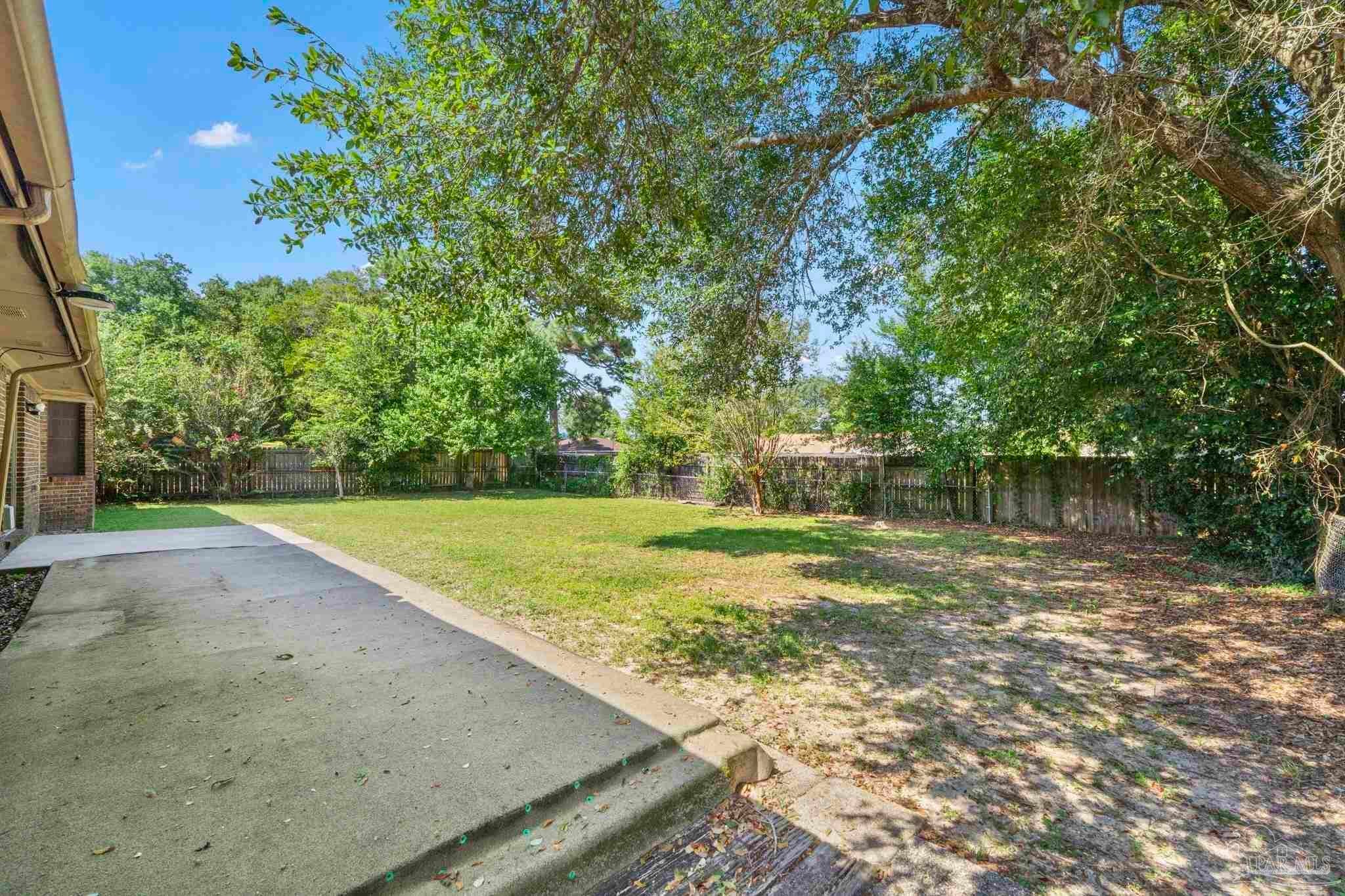 WOW! NEW PRICE! This all-brick home has already had the heavy lifting done—newer roof (2020), HVAC (2018), full electrical rewire (2020), and brand-new water heater (2025)—so you can focus on the fun stuff: flooring, finishes, and style. Inside, you’ll find a freshly painted backdrop that’s basically a clean slate for your ideas. The layout is roomy and flexible with a spacious living/dining combo, bonus den with retro wood paneling (hello, mid-century makeover!), and an eat-in kitchen with a sweet bump-out window. Some appliances are in place if you want them—but imagine the sleek new set you could slide right in! The primary suite has its own bath and spacious closet, while the hall bath is set up and waiting for your glow-up. Most of the flooring is already out, saving you the demo work and making it ridiculously easy to drop in the style you love. Step through the sliding doors and you’ve got a backyard made for gatherings, with camellias adding charm and a neighboring oak bringing shade. Add a grill, some string lights, and you’ve got instant weekend vibes - with plenty of room for a pool or the outdoor kitchen of your dreams! Practical perks like gutters, multiple closets, garage storage, and washer/dryer hookups keep daily life running smoothly, while the location puts you minutes from shopping, schools, restaurants, and commuter routes. Regency Park is just down the street too! This 10-acre community park has a covered pavilion, playground, .33-mile exercise path, Lonnie G. Jones dog park, basketball court, security lights and picnic area. The park also has lots of open space for other recreational activities. Think of this as the perfect project without the scary stuff: the big-ticket updates are done, the blank canvas is waiting, and the creative control is all yours. This home is ready for its next chapter—are you?