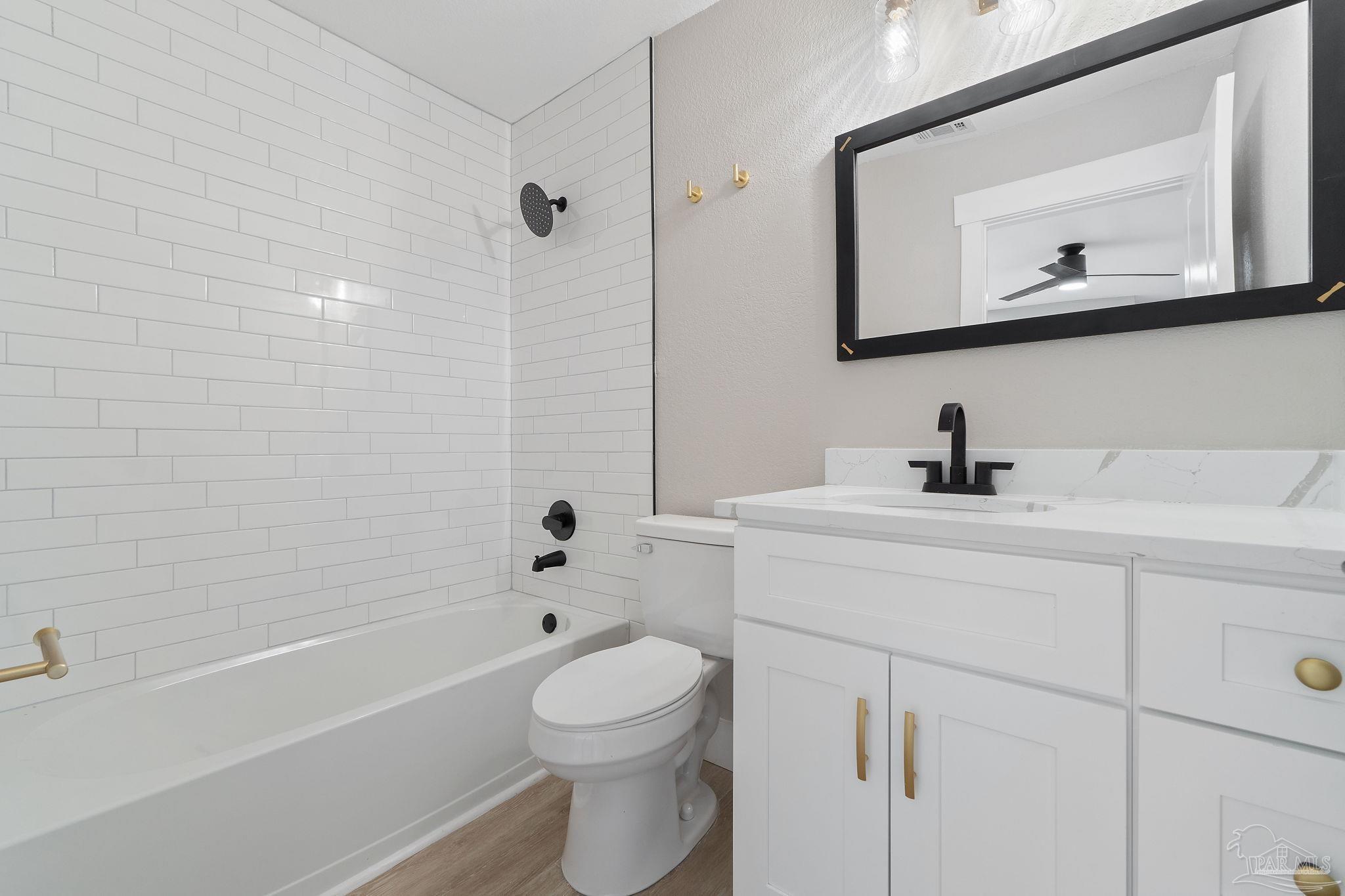 OPEN HOUSE - Sunday 10/12/25 (12pm-3pm). Step inside this extensively remodeled 2,419 sq. ft. home located in the Magnolia Manor community. From top to bottom, this residence has been thoughtfully updated to combine modern comfort with timeless style - all within a highly rated school district. The open floor plan welcomes you with natural light, luxury vinyl plank flooring, new paint, new windows, and upgraded lighting throughout. Major improvements give peace of mind, including a new roof, updated electrical system with new panel, modern plumbing fixtures, and a new septic system. The heart of the home is its chef-inspired kitchen, featuring quartz countertops, a spacious island with seating, two-tone shaker cabinetry with soft-close finishes, and a full suite of stainless steel appliances. Perfect for hosting, the kitchen flows seamlessly into the dining and living areas, creating a warm and inviting atmosphere. Retreat to the primary suite, where you’ll find a spa-like bath complete with a walk-in shower, double vanity, and generous storage. With 4 bedrooms and 4 full bathrooms, this home provides plenty of space for both everyday living and entertaining. Outside, you’ll enjoy being part of a neighborhood known for its welcoming atmosphere, convenience, and charm. Located just minutes from beautiful beaches, local dining, shopping, and top-ranked schools, this home truly checks every box.