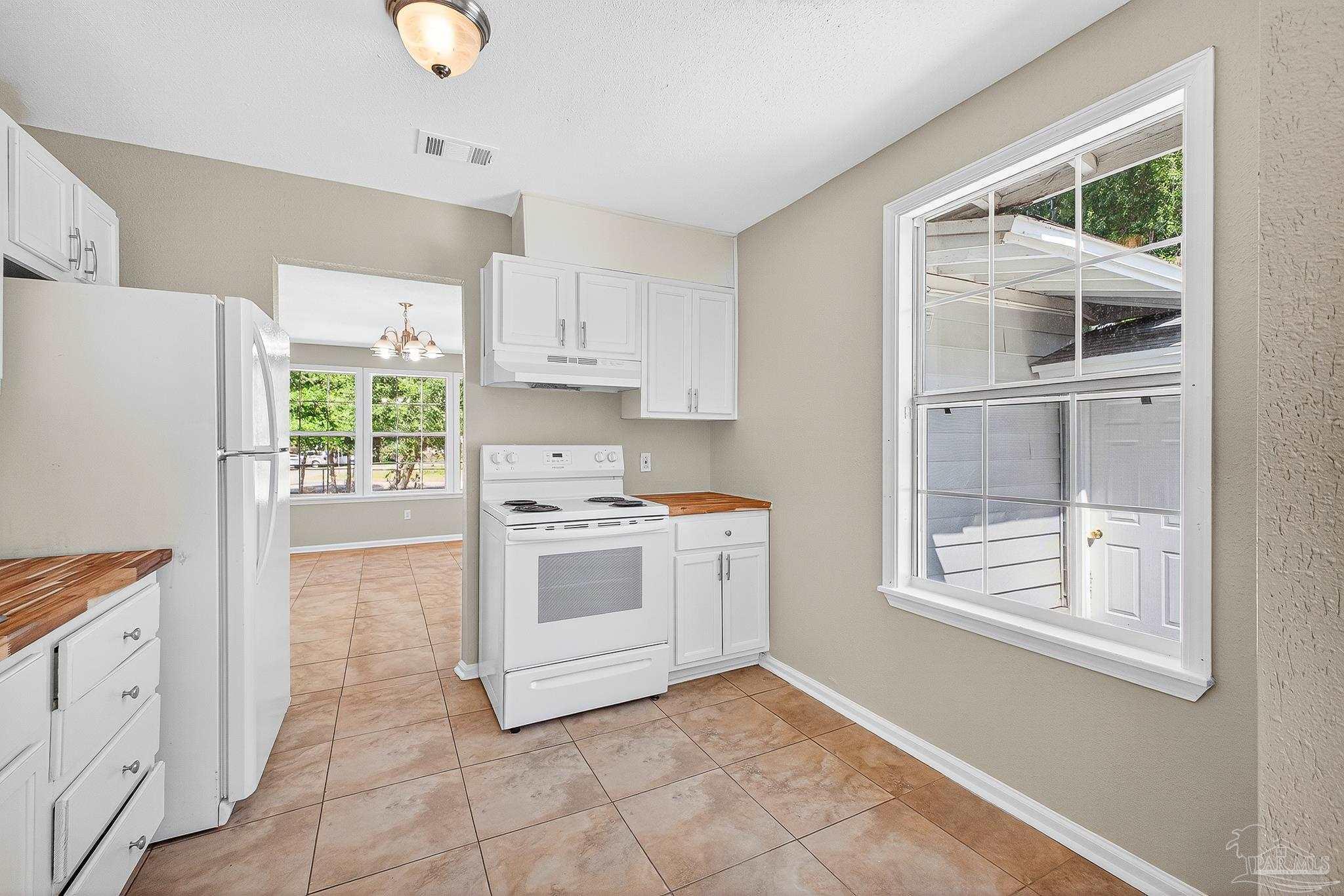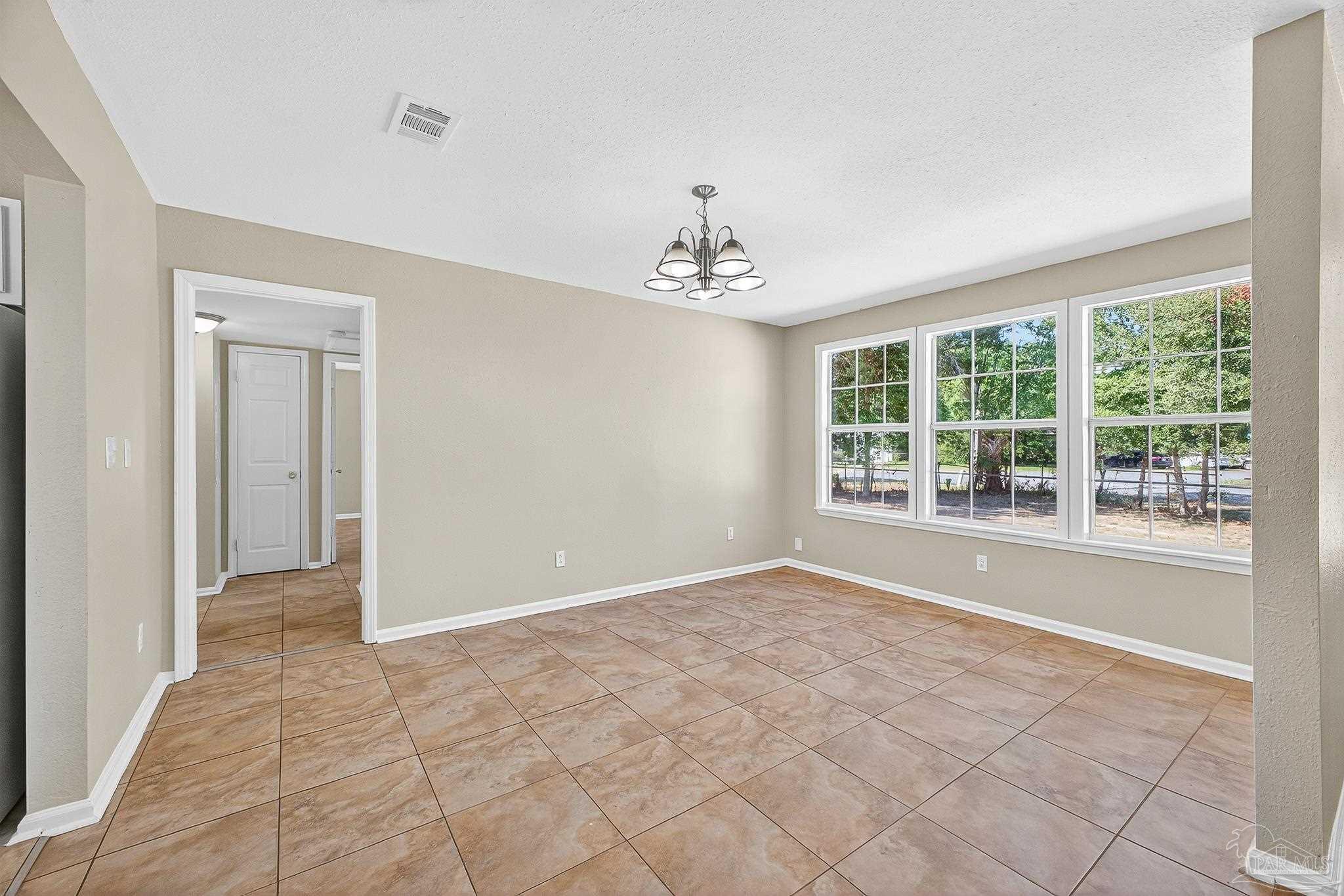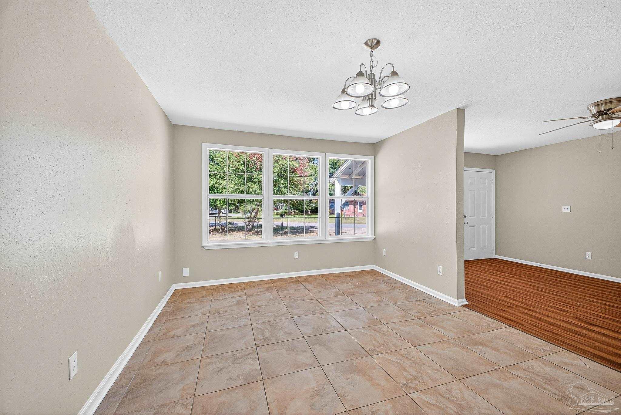 This well-maintained home offers plenty of space both inside and out. Featuring tile flooring throughout, a large open-concept living and dining area, and a generously sized kitchen with an adjacent laundry area for added convenience. All three bedrooms offer ample space, and there's a large bonus room—perfect for a home office, playroom, fourth bedroom, or extra living area. Enjoy the outdoors in the huge fully fenced yard, ideal for relaxing, entertaining, or pets. Conveniently located near NAS Pensacola, shopping, and schools.