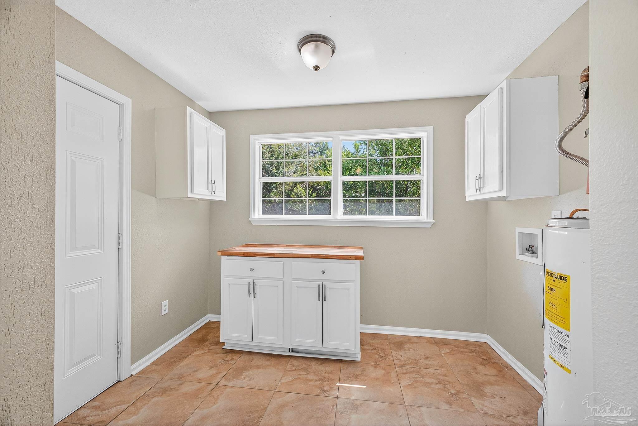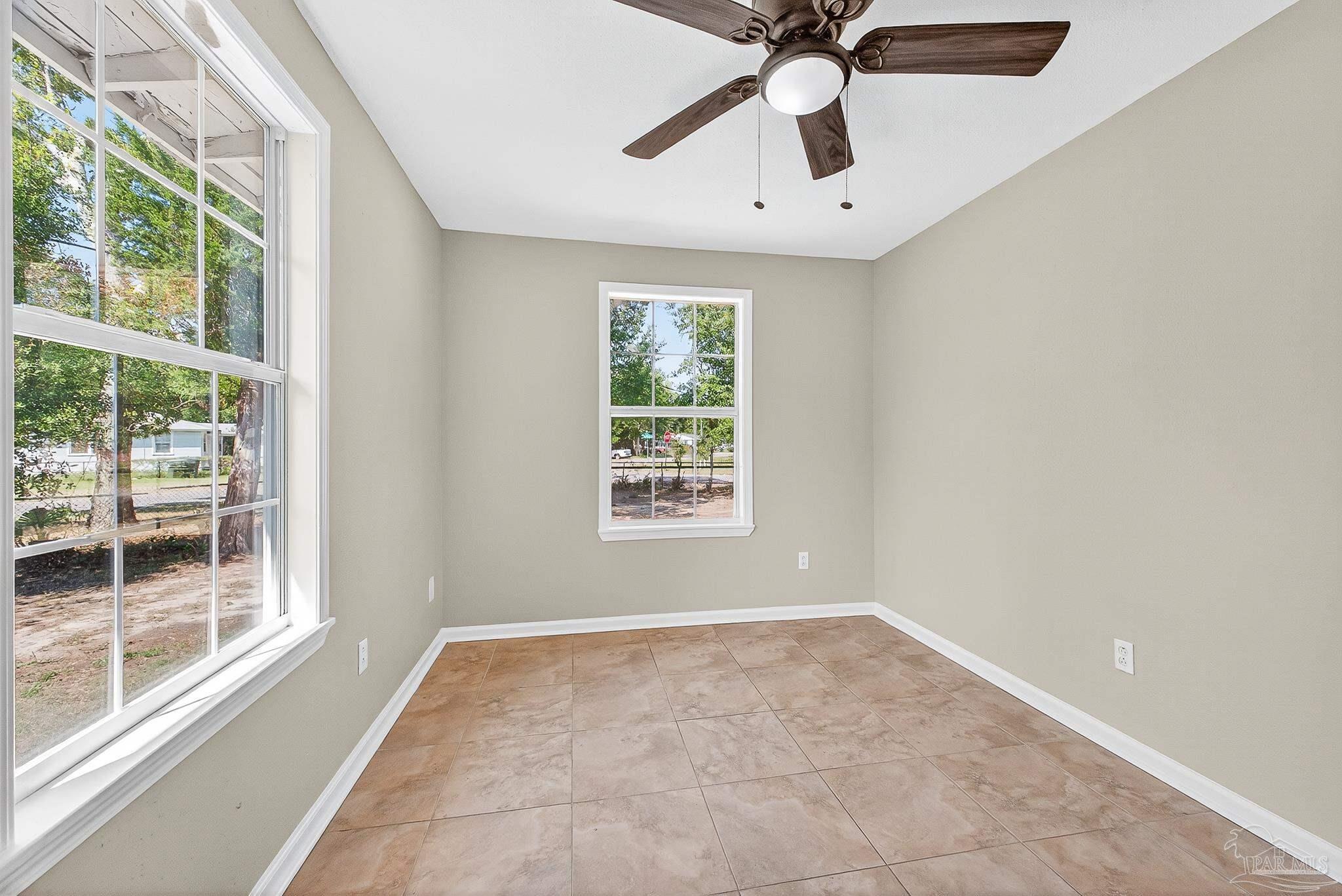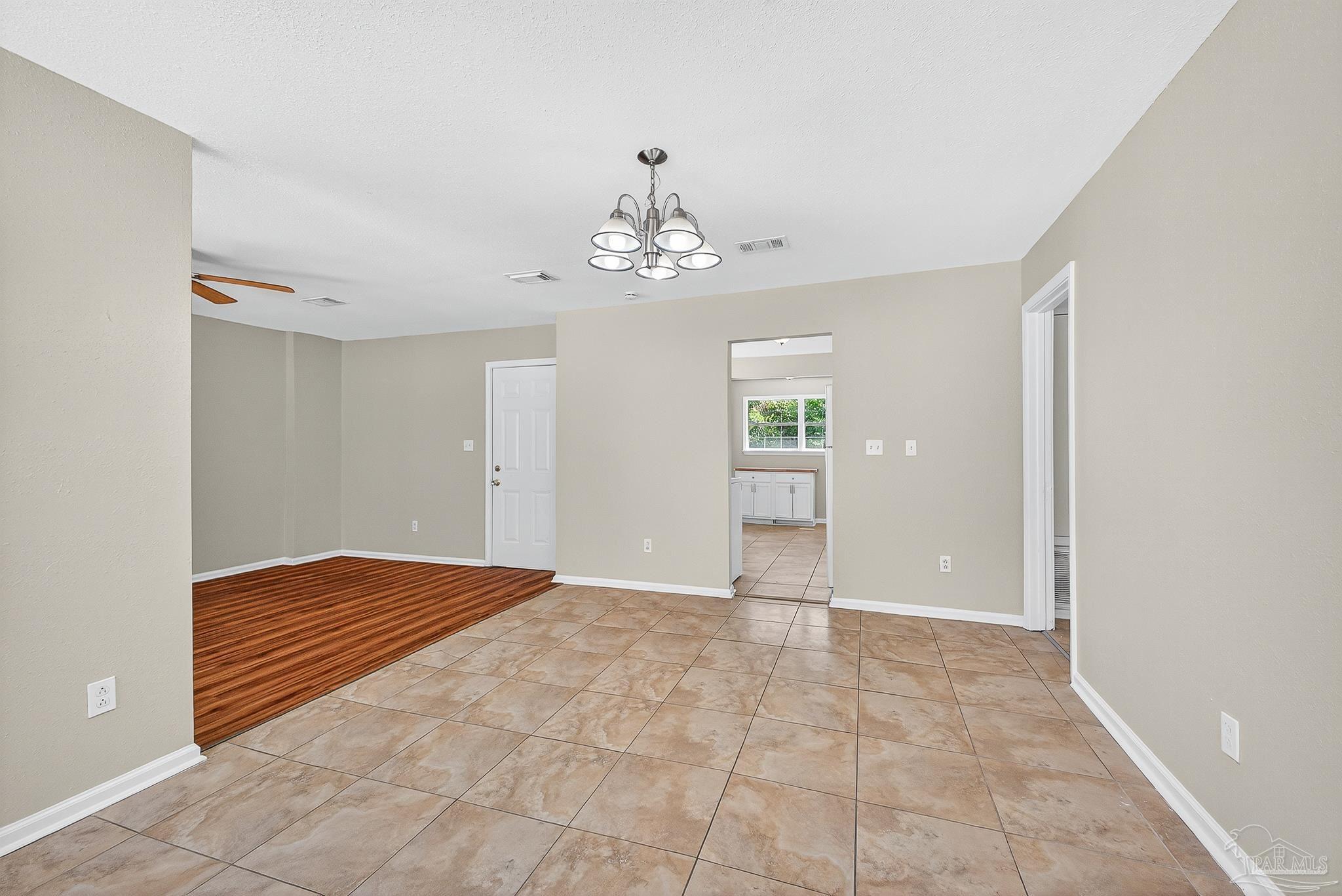 This well-maintained home offers plenty of space both inside and out. Featuring tile flooring throughout, a large open-concept living and dining area, and a generously sized kitchen with an adjacent laundry area for added convenience. All three bedrooms offer ample space, and there's a large bonus room—perfect for a home office, playroom, fourth bedroom, or extra living area. Enjoy the outdoors in the huge fully fenced yard, ideal for relaxing, entertaining, or pets. Conveniently located near NAS Pensacola, shopping, and schools.