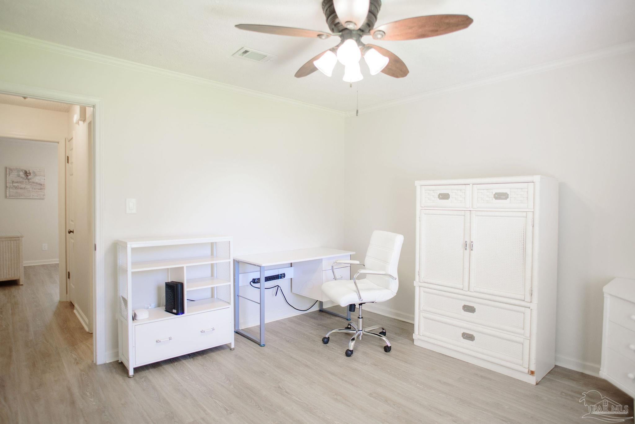 - Baseboards, Ceiling Fan(s), Crown Molding, Sun Room