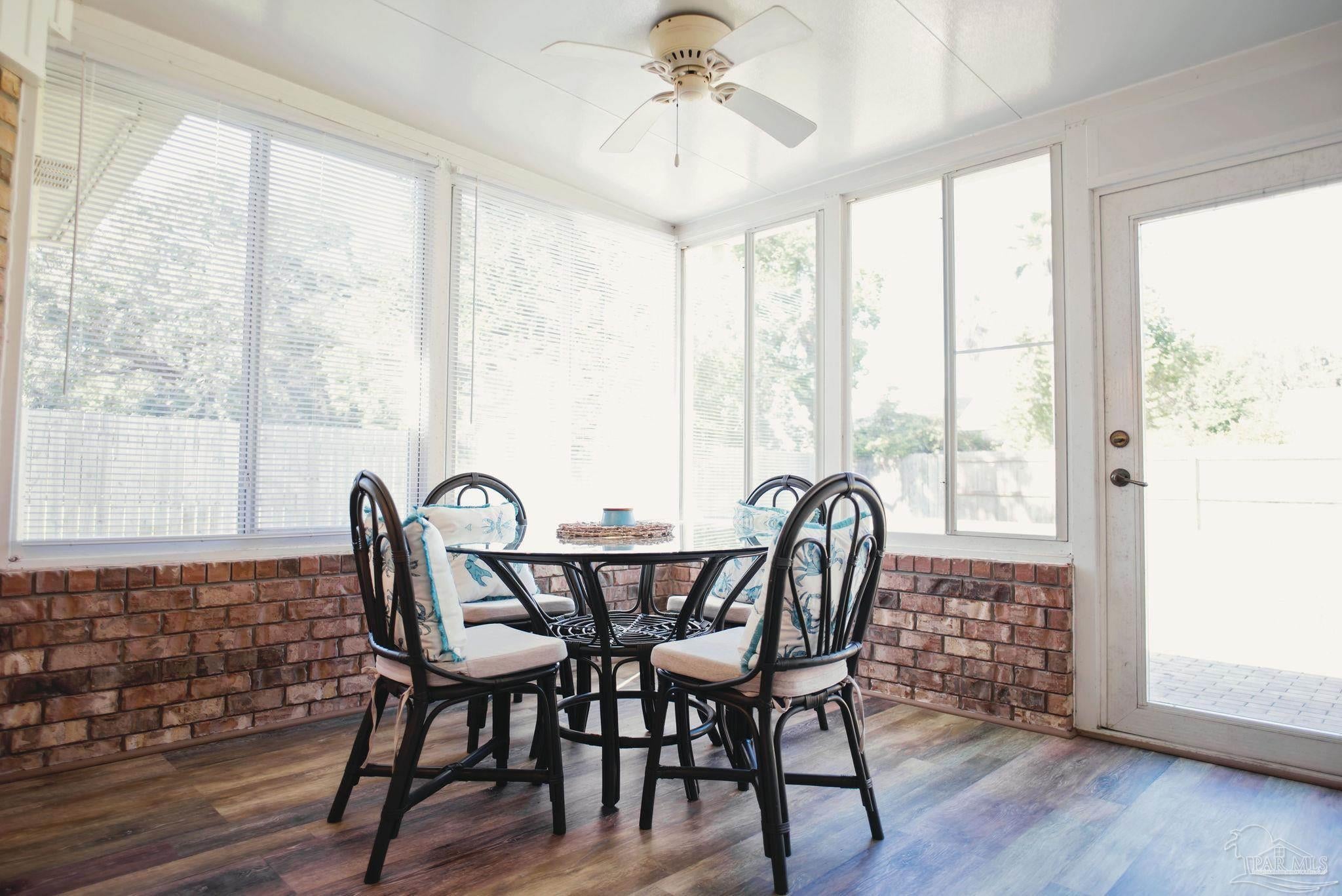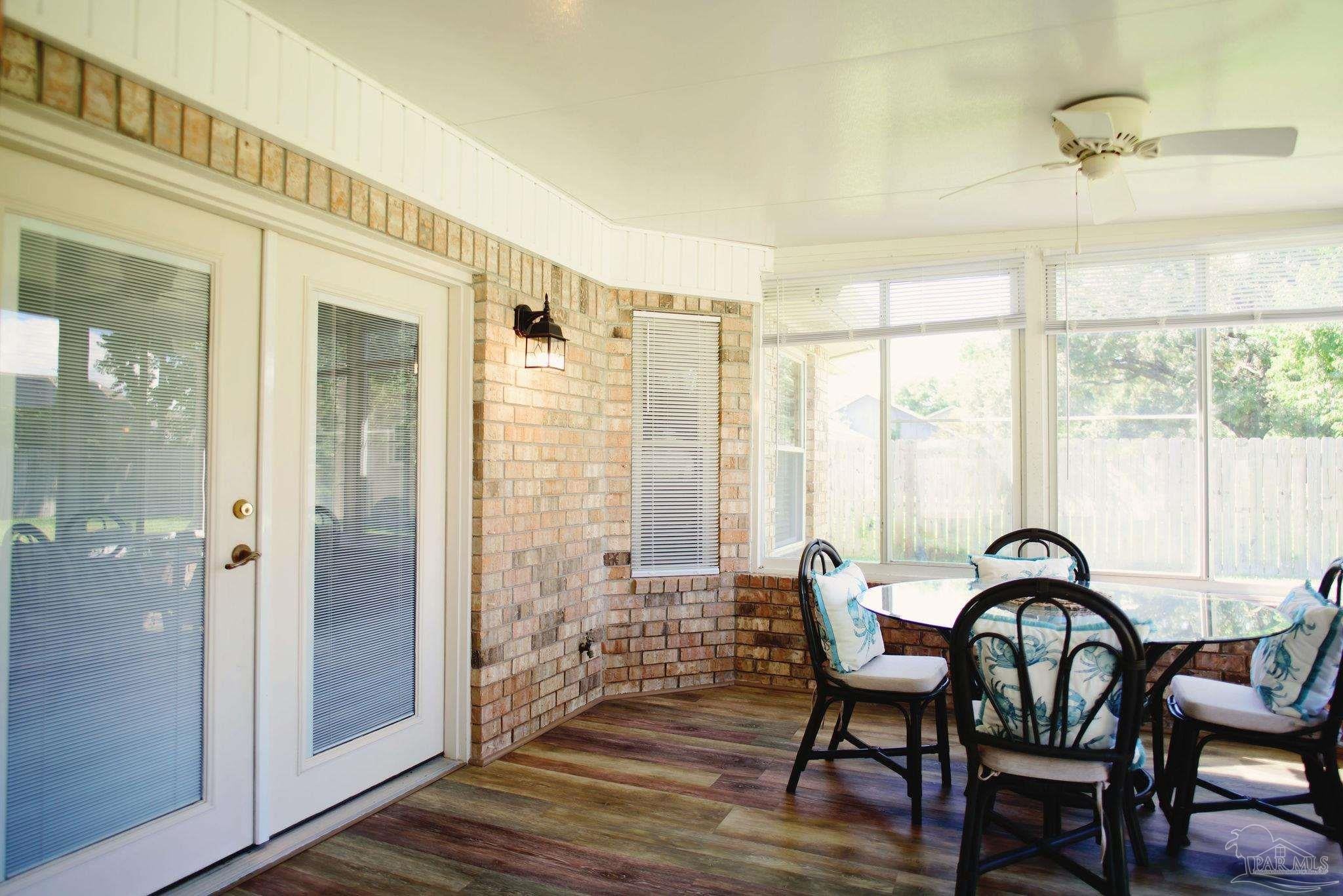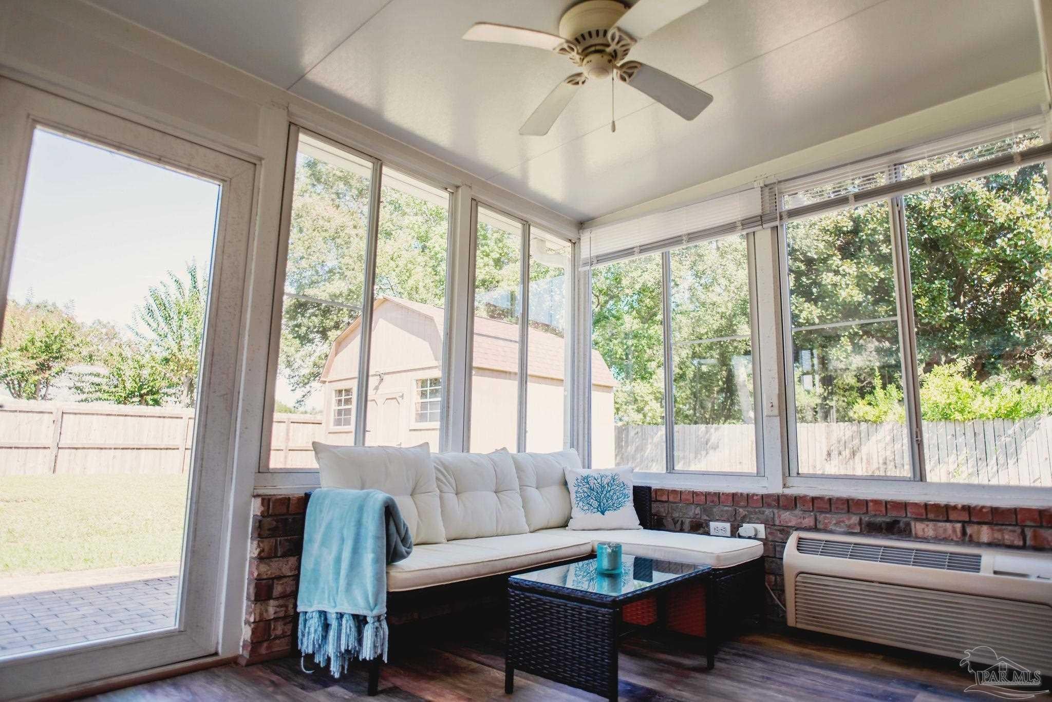 Escape to paradise in this beautifully updated home located in the serene Paradise Bay community. Thoughtfully designed living space. with a cheery sunroom for extra relaxation, this property offers the perfect blend of modern updates, comfort, and convenience. The split floor plan provides privacy and functionality, making it ideal for families, retirees, or anyone seeking a peaceful coastal retreat. Step inside to bright, inviting interiors featuring an open floor plan, a cozy gas fireplace that's perfect for those rare cooler evenings, a fully fenced in backyard with a large workshop. Recent upgrades ensure worry-free living, including a 2019 roof, 2016 HVAC system, 2020 water heater, and a 2022 new septic tank. Plus, enjoy the added peace of mind with a transferable termite bond, hurricane shutters, and the property is not in a flood zone. This move-in-ready home just minutes from the sugar-white sands and turquoise waters of Pensacola Beach is primed for new owners to unpack and start enjoying the Florida lifestyle immediately – no major projects needed!