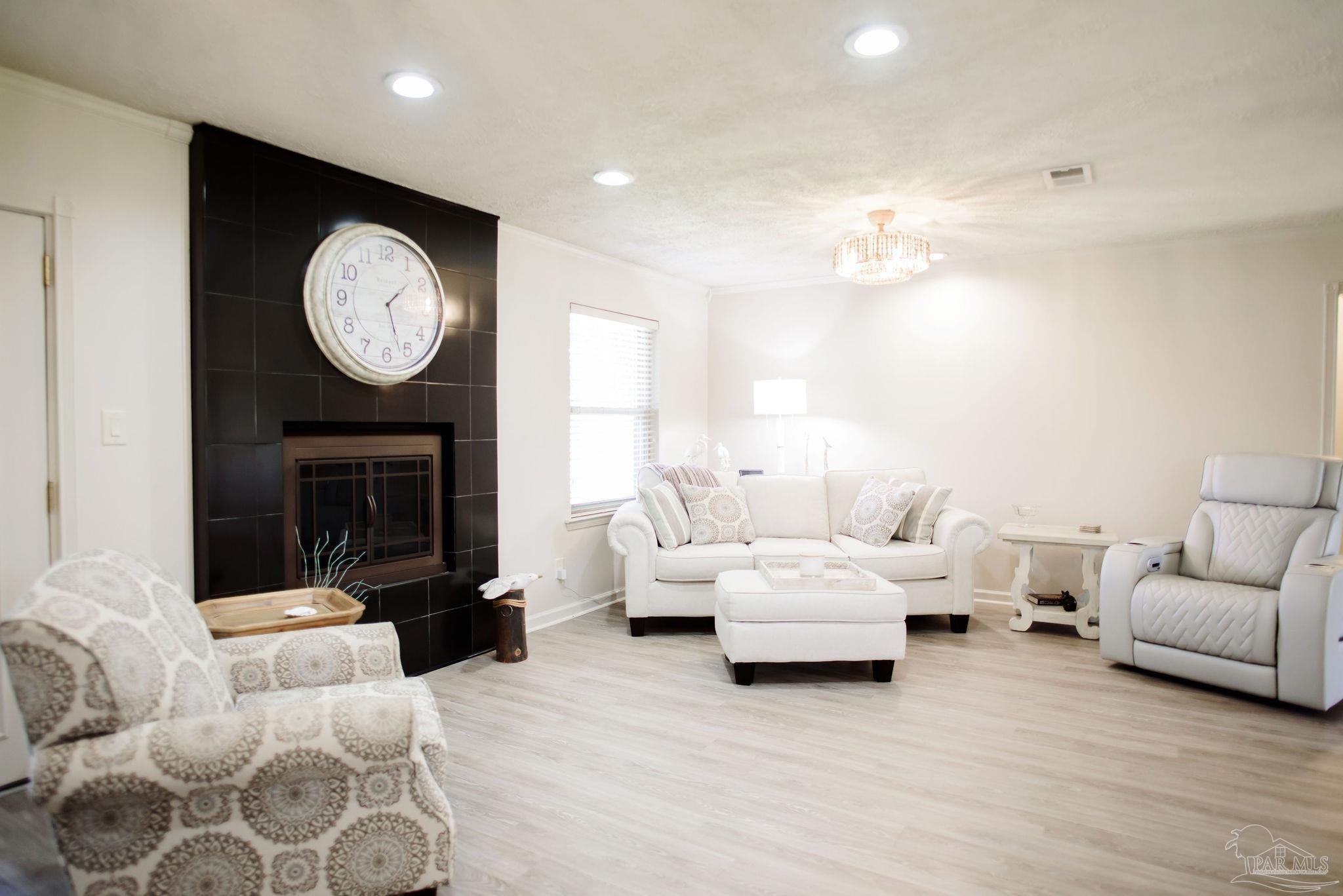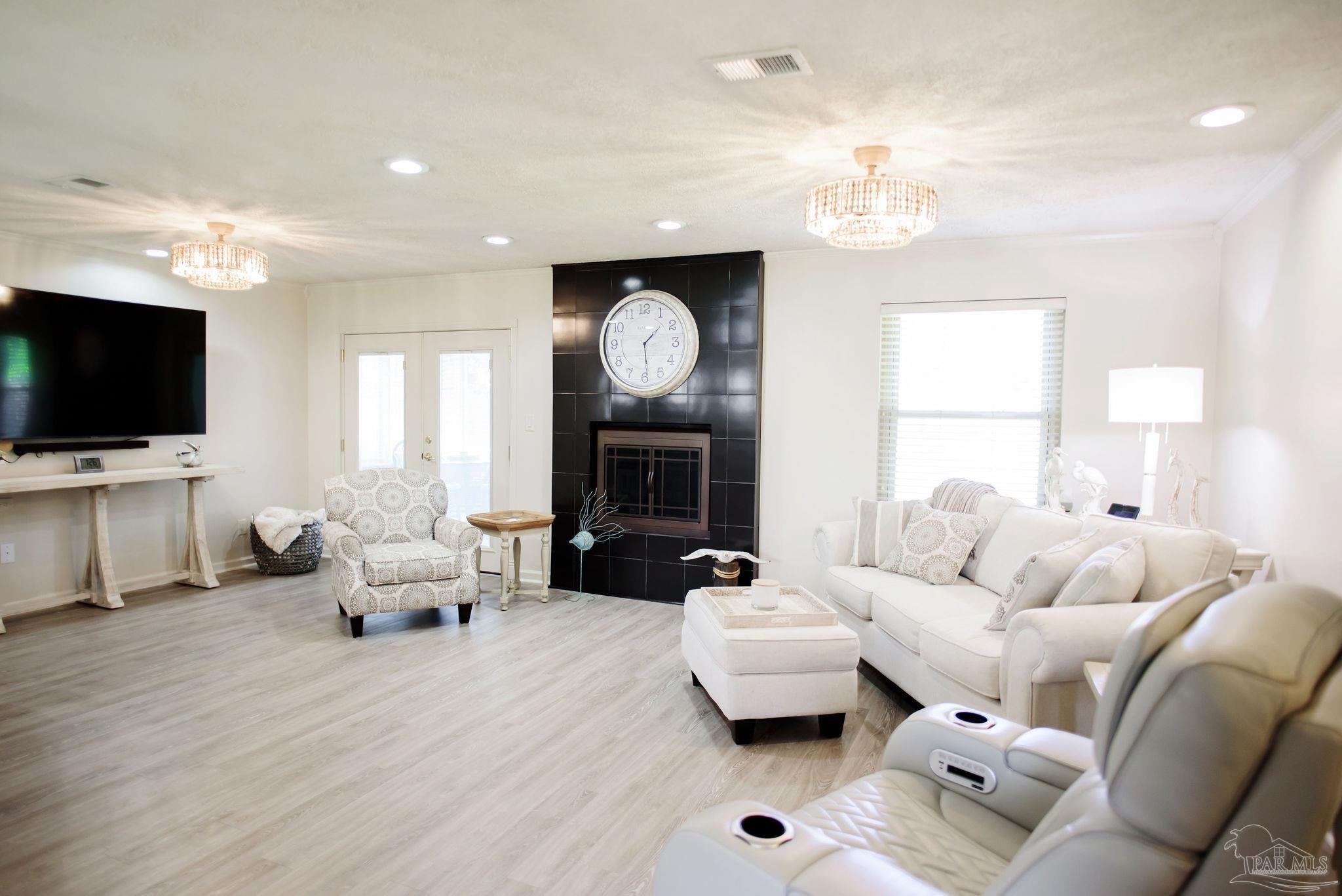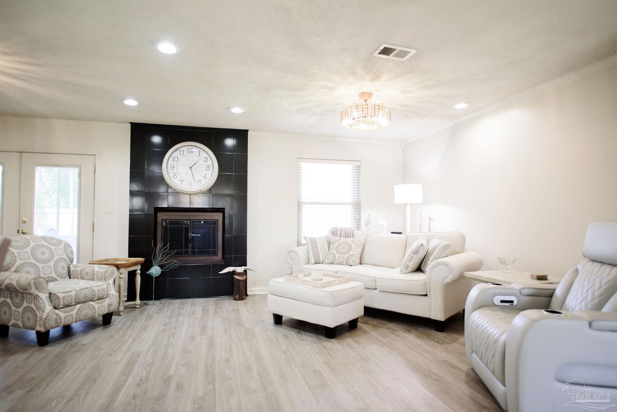 Escape to paradise in this beautifully updated home located in the serene Paradise Bay community. Thoughtfully designed living space. with a cheery sunroom for extra relaxation, this property offers the perfect blend of modern updates, comfort, and convenience. The split floor plan provides privacy and functionality, making it ideal for families, retirees, or anyone seeking a peaceful coastal retreat. Step inside to bright, inviting interiors featuring an open floor plan, a cozy gas fireplace that's perfect for those rare cooler evenings, a fully fenced in backyard with a large workshop. Recent upgrades ensure worry-free living, including a 2019 roof, 2016 HVAC system, 2020 water heater, and a 2022 new septic tank. Plus, enjoy the added peace of mind with a transferable termite bond, hurricane shutters, and the property is not in a flood zone. This move-in-ready home just minutes from the sugar-white sands and turquoise waters of Pensacola Beach is primed for new owners to unpack and start enjoying the Florida lifestyle immediately – no major projects needed!