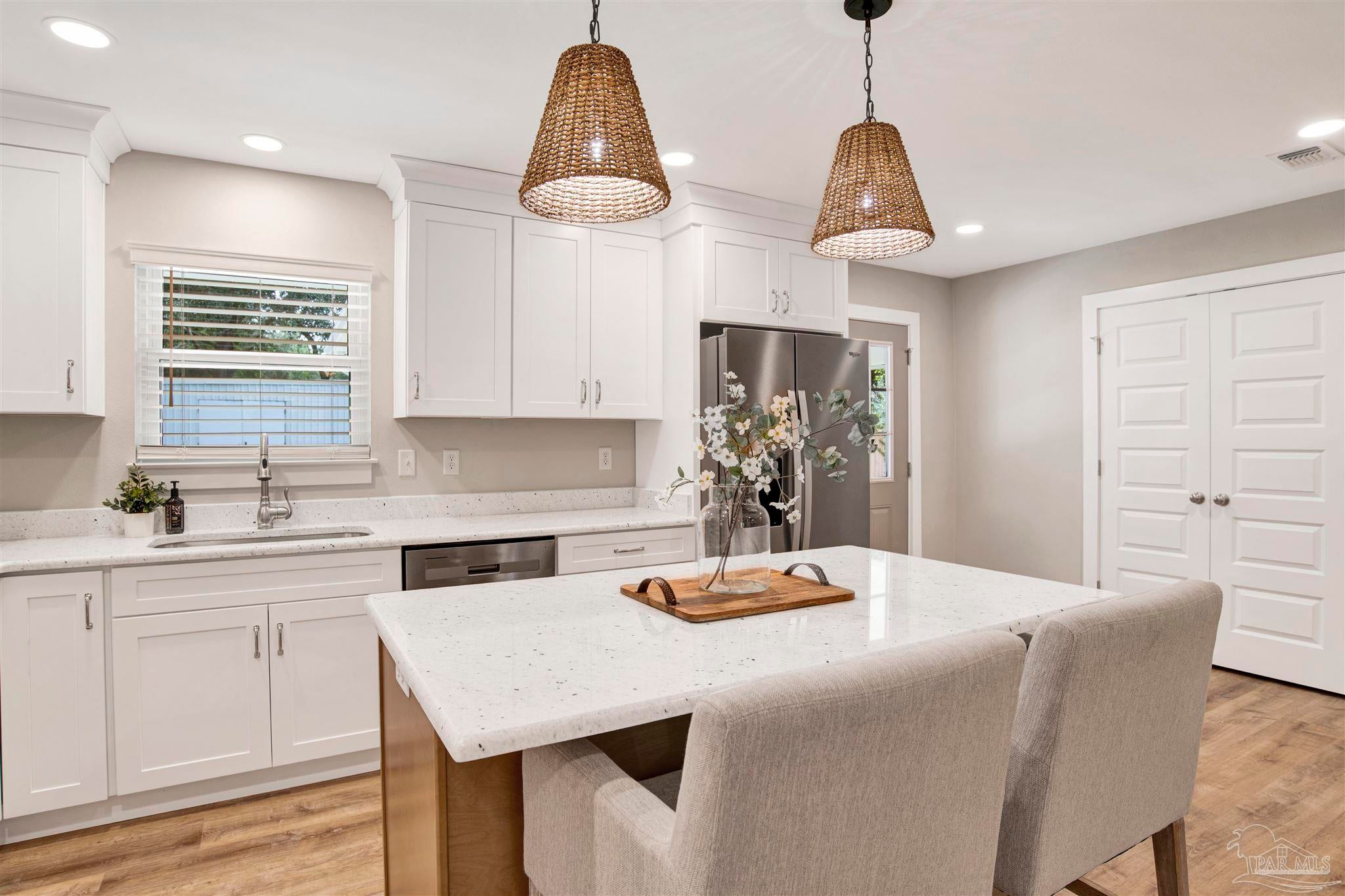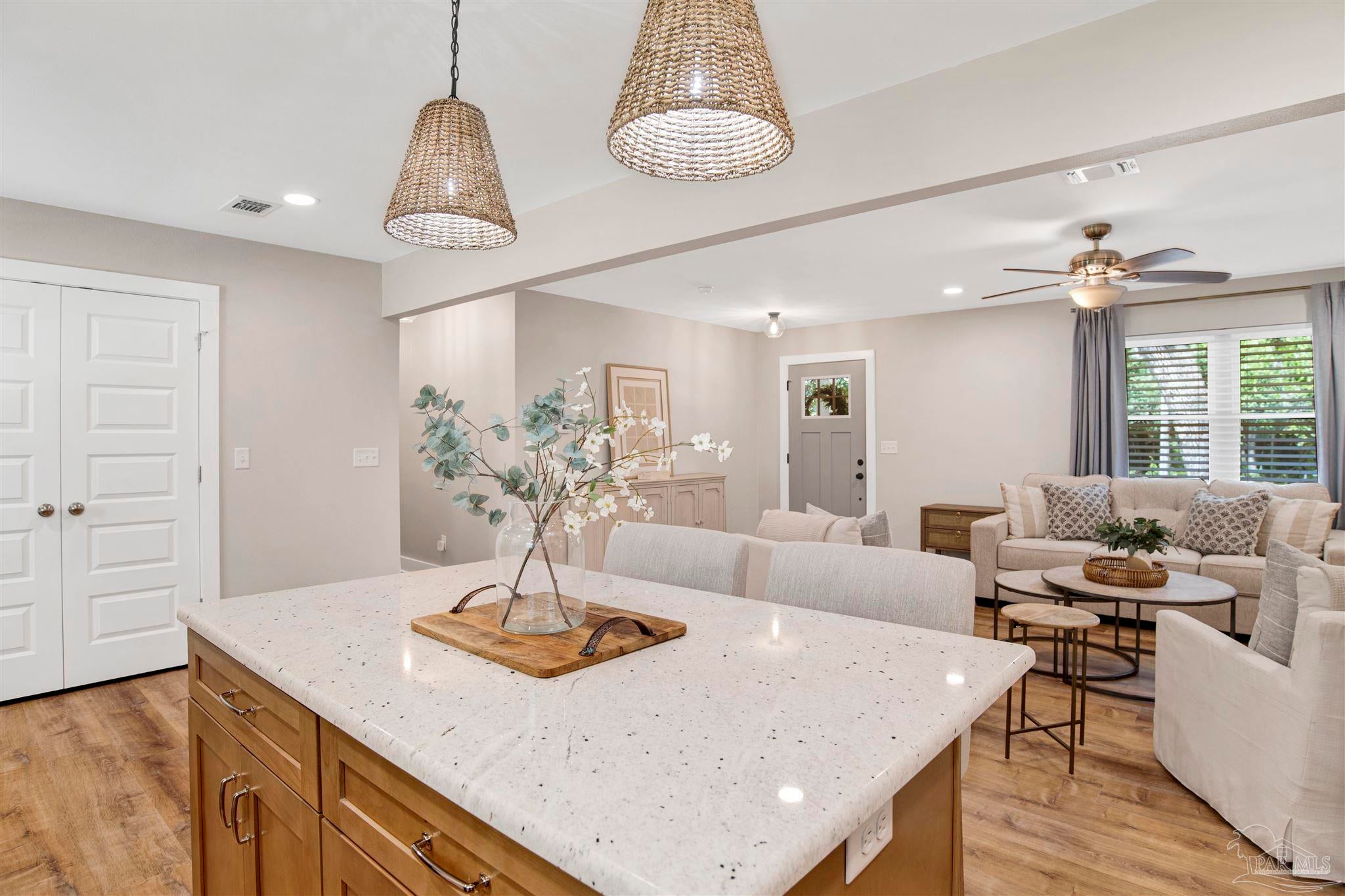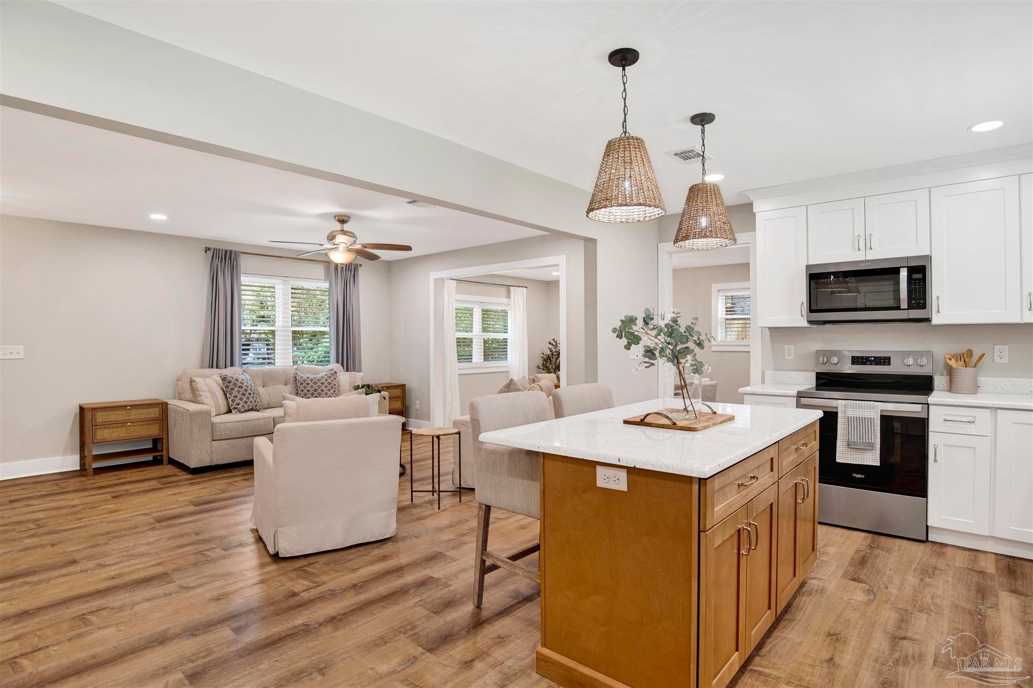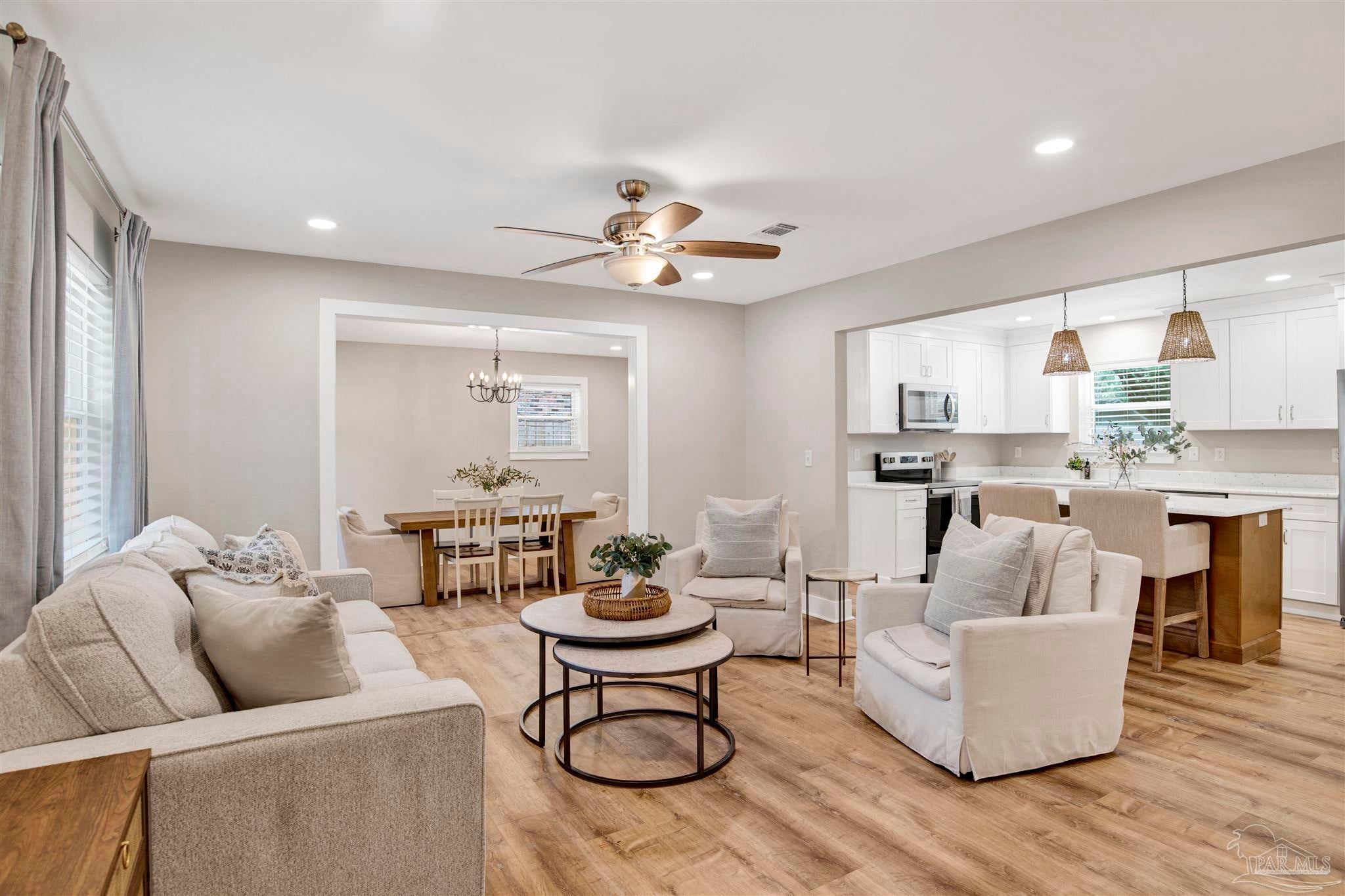 Welcome Home to this beautifully renovated 3-bedroom, 2-bath home that blends modern comfort with everyday functionality! From top to bottom, this home has been completely updated, giving you peace of mind and a fresh, move-in ready experience. Step inside to discover an open-concept layout featuring brand new luxury vinyl plank flooring throughout. The kitchen is the heart of the home, complete with soft-close cabinets, granite countertops, a large center island perfect for entertaining, and a generous pantry offering plenty of storage. The fully fenced backyard is newly sodded and features the real showstopper: a massive 21x35 detached 2-car garage/workshop with an attached 19x21 shed - both powered and ready for your next project! Whether you’re a craftsman, hobbyist, fitness enthusiast, or just need space to store your gear -this setup is unmatched. Enjoy the benefits of NO HOA and a spacious circular driveway, ideal for guests, a boat, or extra vehicles. Located between two public boat ramps and just minutes to Perdido Key’s white sandy beaches, you also have easy access to Alabama’s charming farms and local shopping. Come see it in person and imagine the possibilities! New Roof (on home and garage/workshop): 2023, Updated Electrical: 2024, Water Heater:2024, Plumbing:2024, HVAC: 2024, Windows:2024, all work permitted!